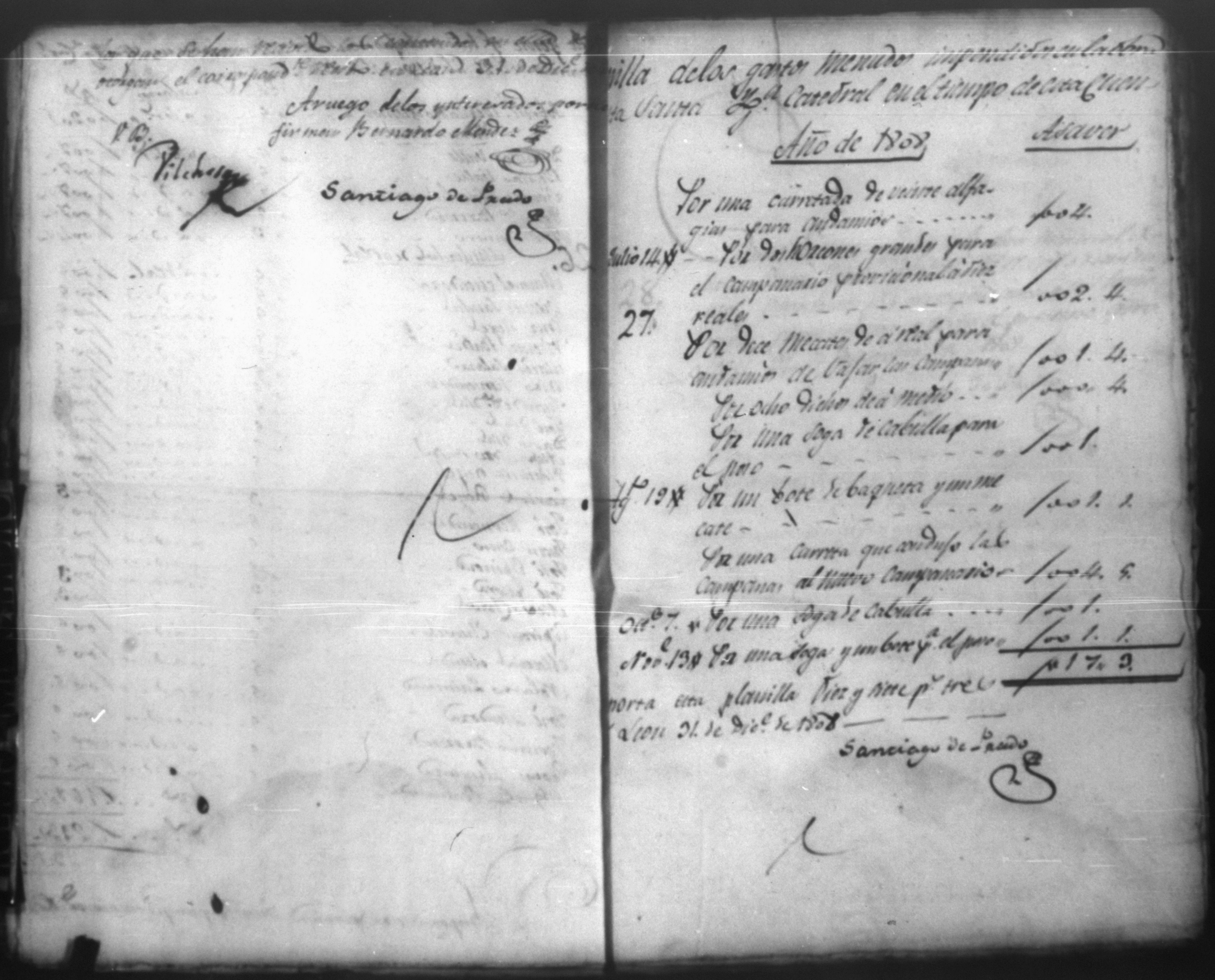 Temática: Cuaderno que comprende cuarenta y un comprobantes de cargo y data que acompañan a la cuenta de la obra material de esta Santa Iglesia Catedral de León correspondiente al año 1808