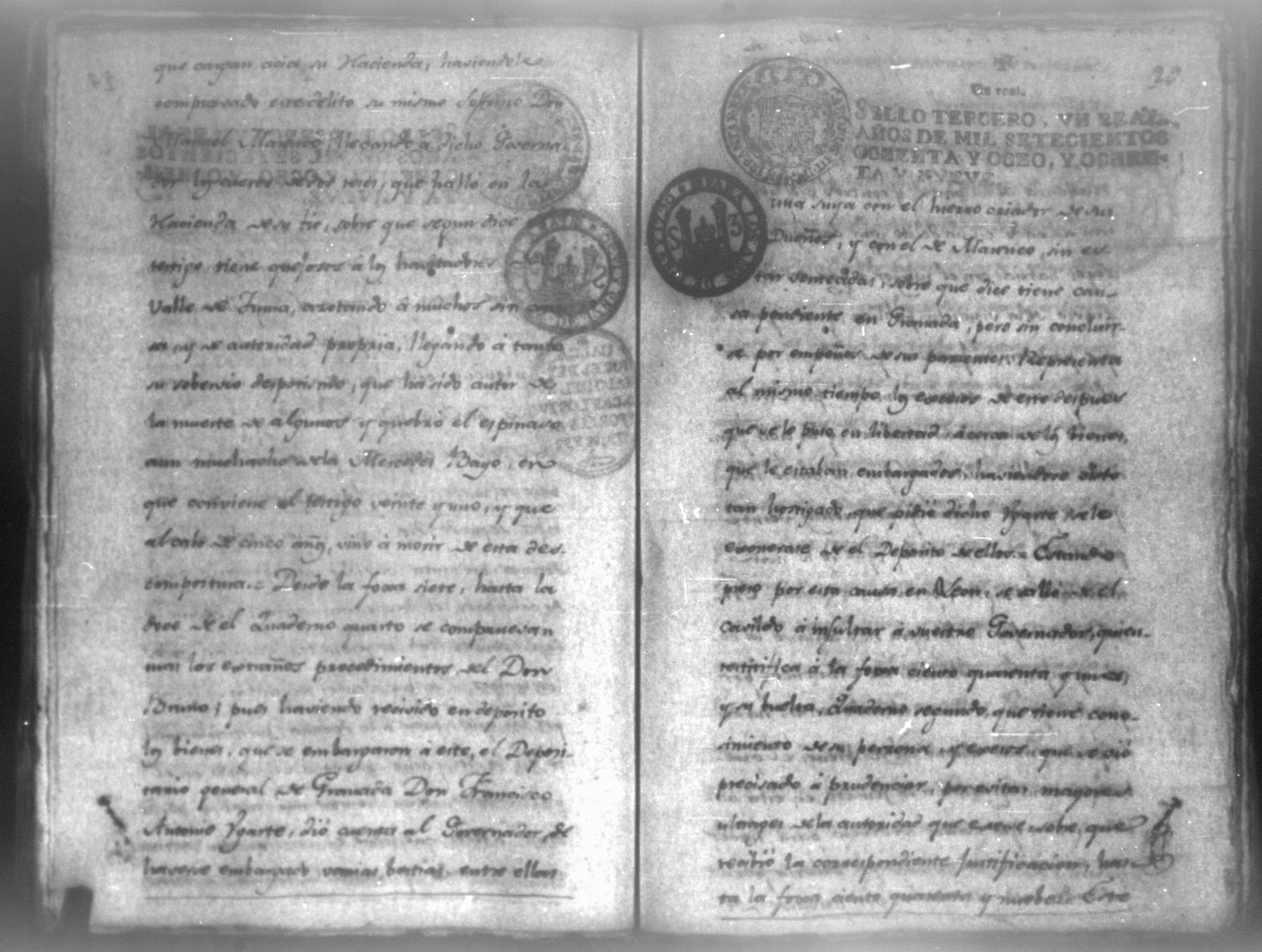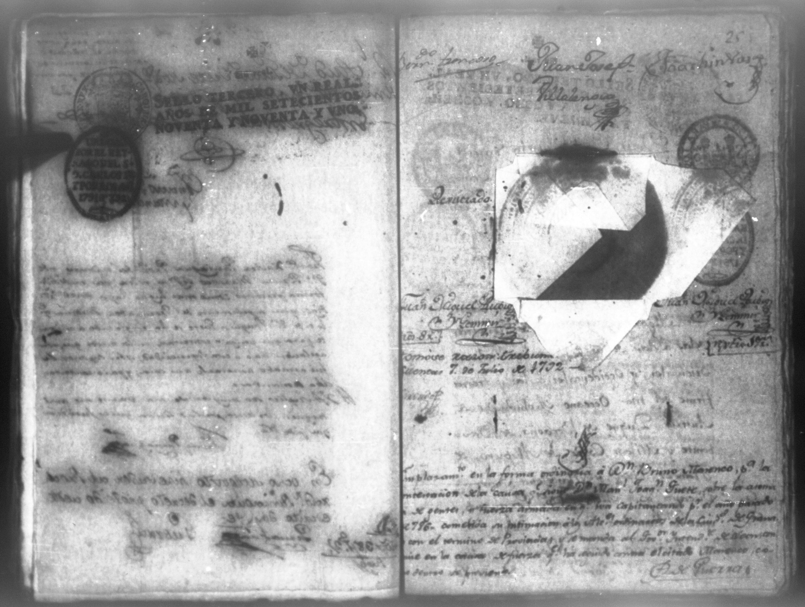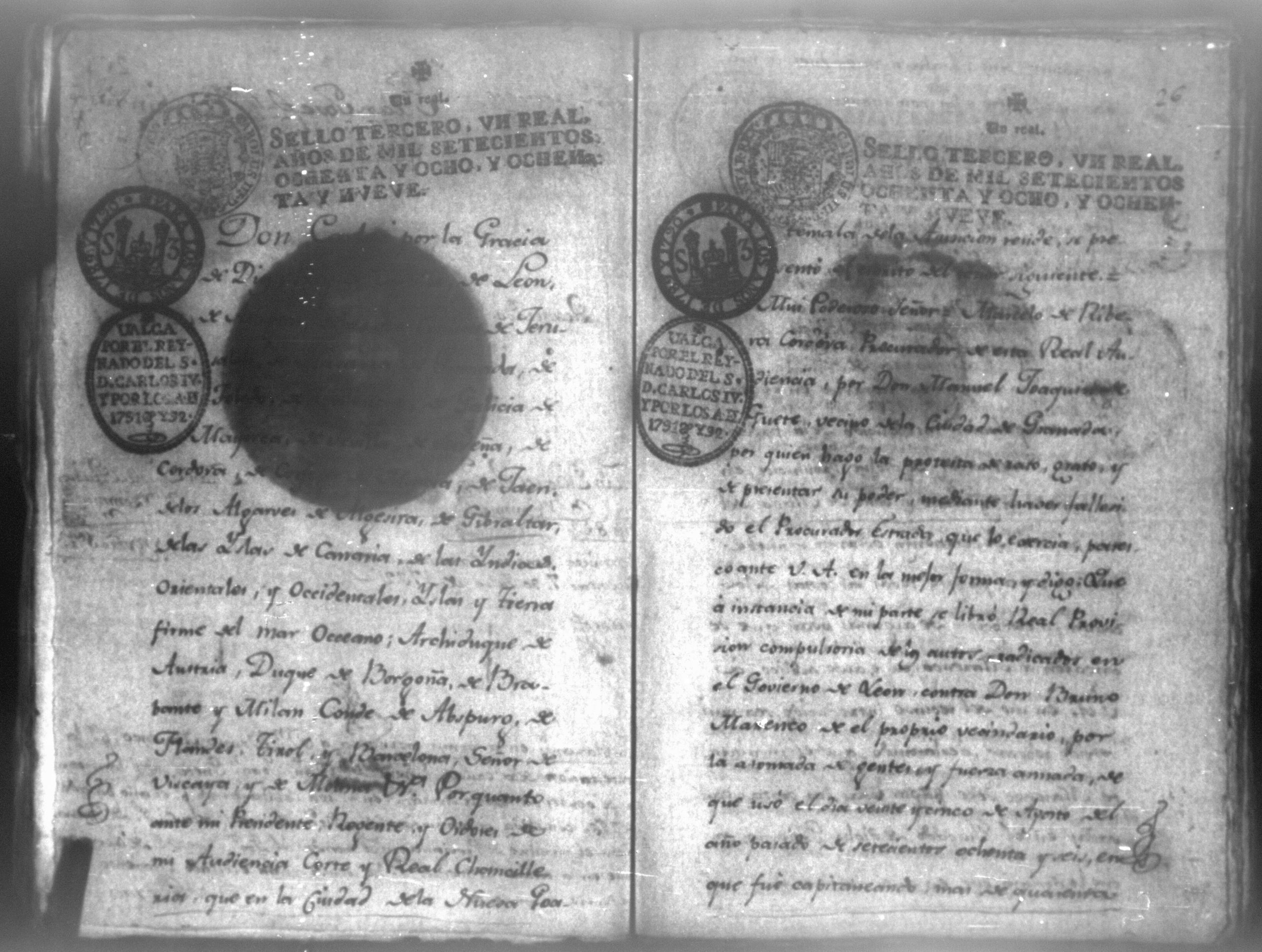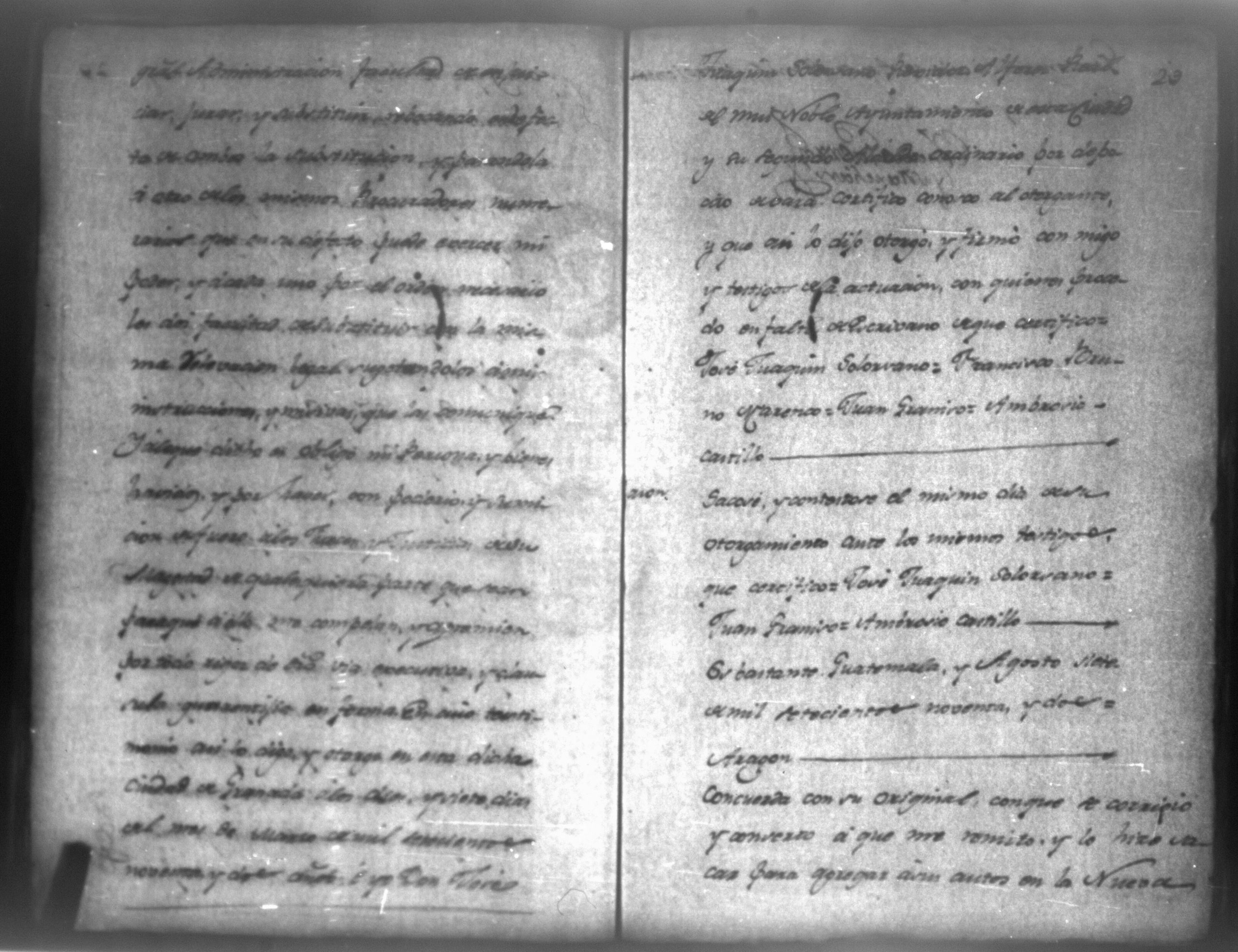 Temática: León, 1790. Compulsorio pedido por don Manuel Juaquin de Guete de los autos contra don Bruno Marenco. "En la Ciudad de Leon de veinte de Febrero de mil setecientos noventa ante mi el Escribano y testigos parecio presente Don Mariano Yglecias Procurador de la Yntendencia de esta Provincia y manifestó el poder general que a la letra dice asi: Notorio sea de todos los que la presente carta vieren como Don Manuel Joaquin de Gueto vecino de la Ciudad de Granada Provincia de Nicaragua otorgo mi poder cumplido como se requiere al Don Mariano José Yglecias Procurador numerario de la Yntendencia de esta Provincia generalmente para todos mis asuntos pleitos y causas civiles y criminales ecleciasticas y seglares comenzadas y por comenzar [...] (Extracto del folio 1)