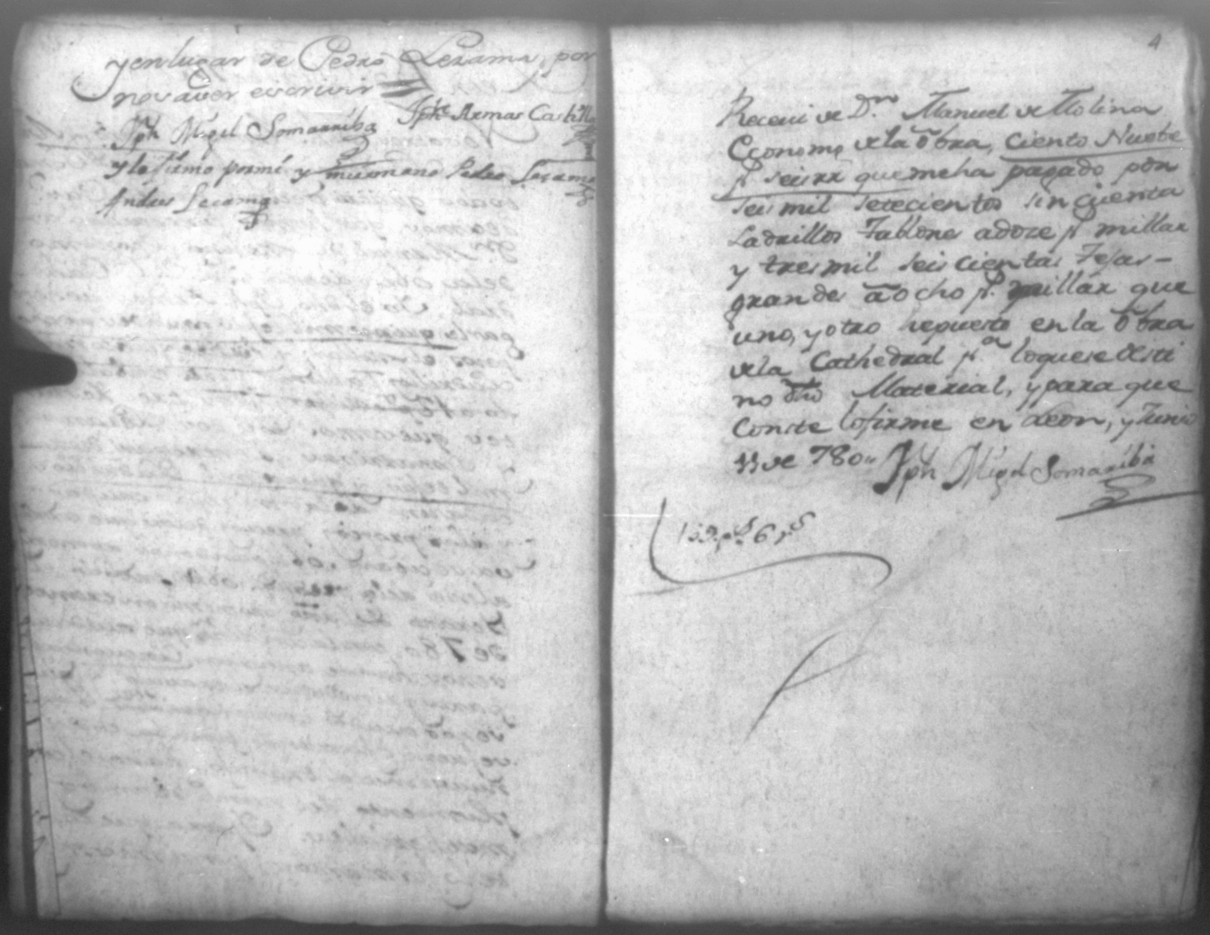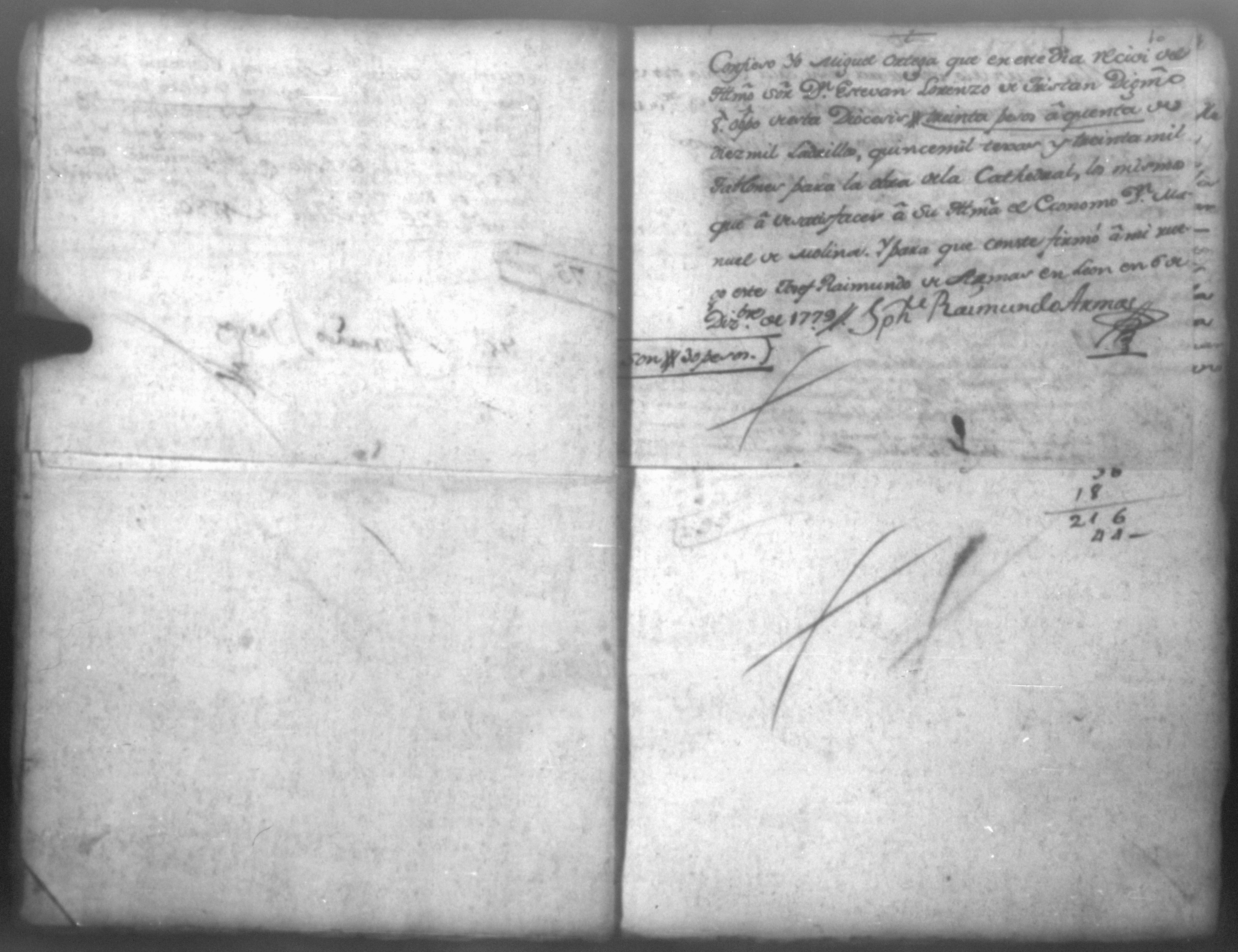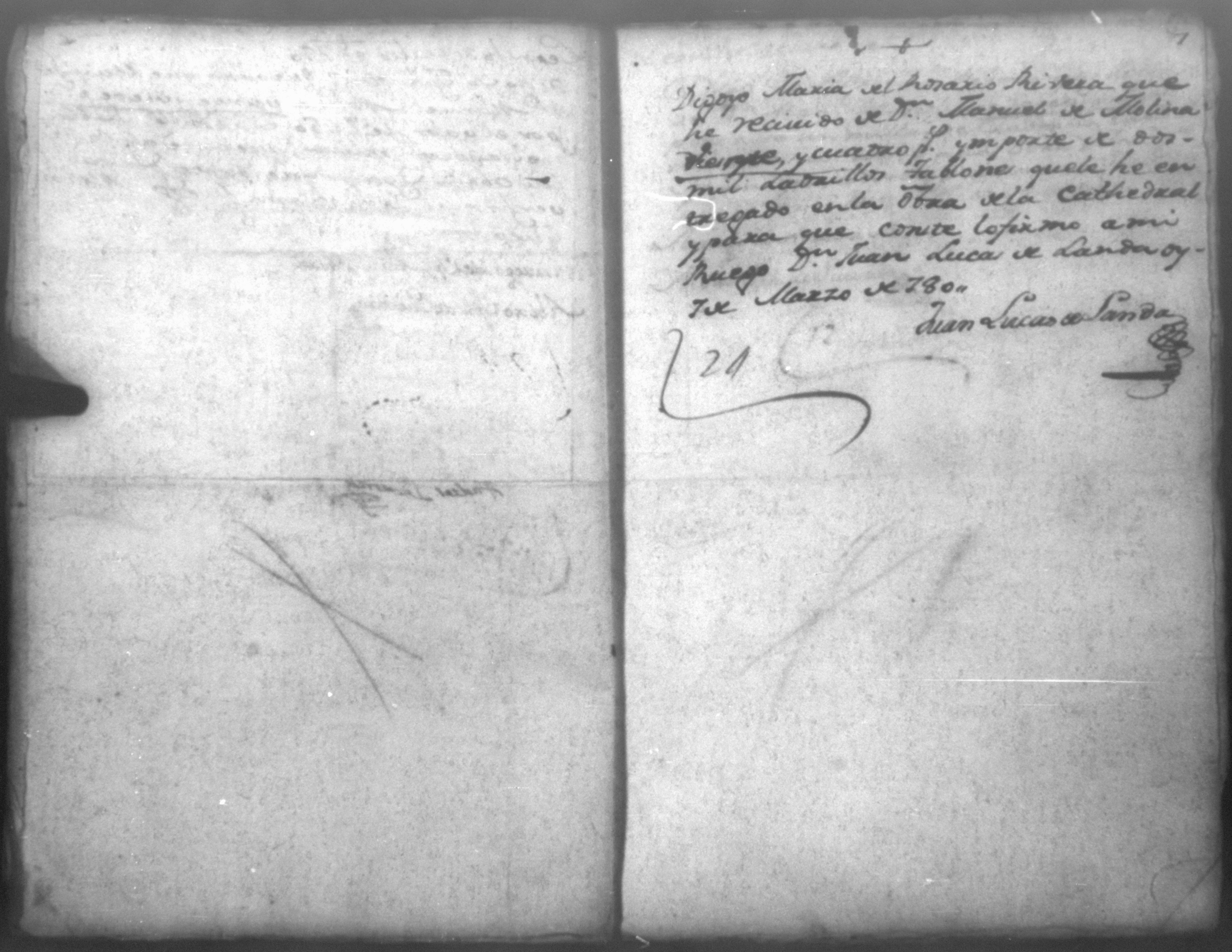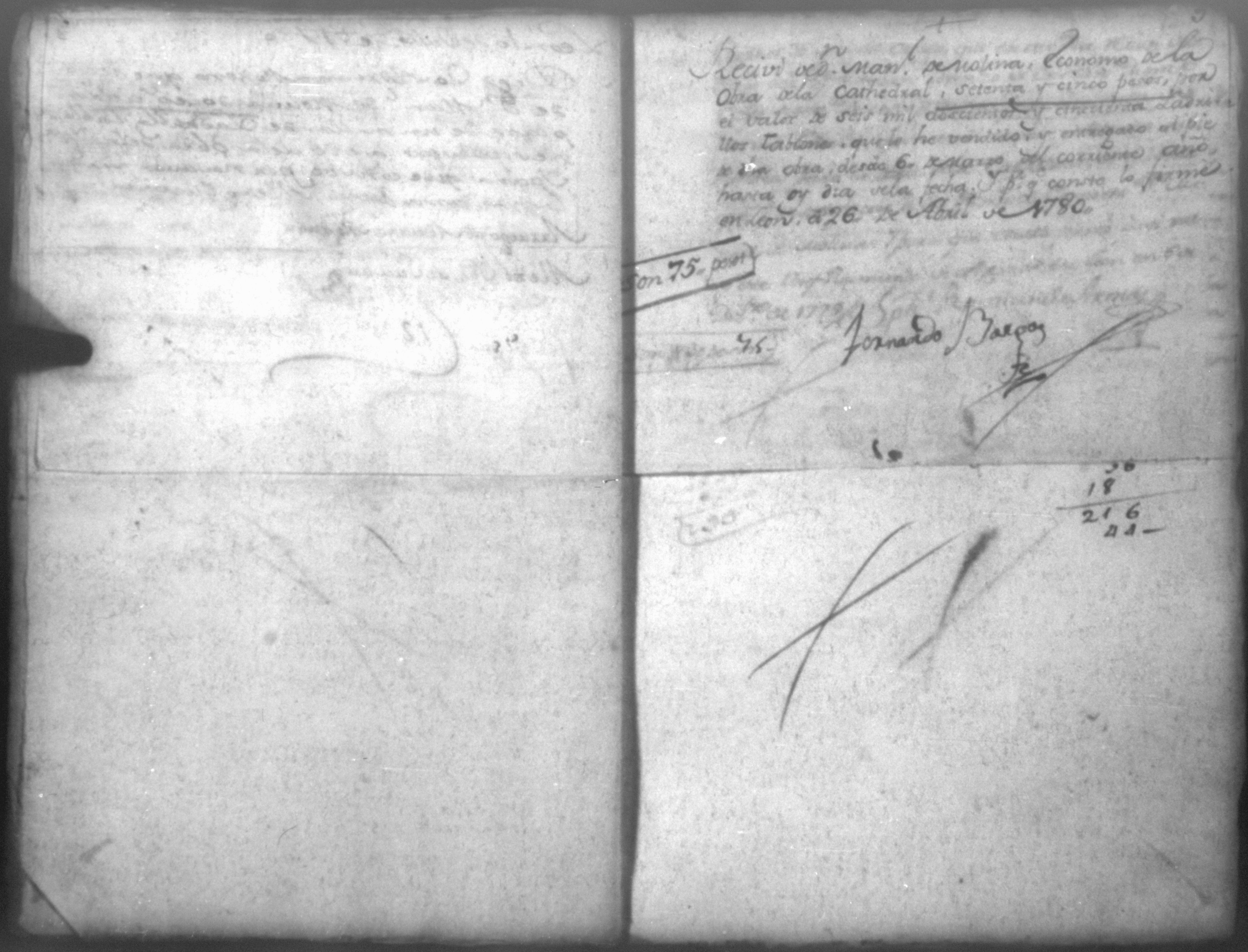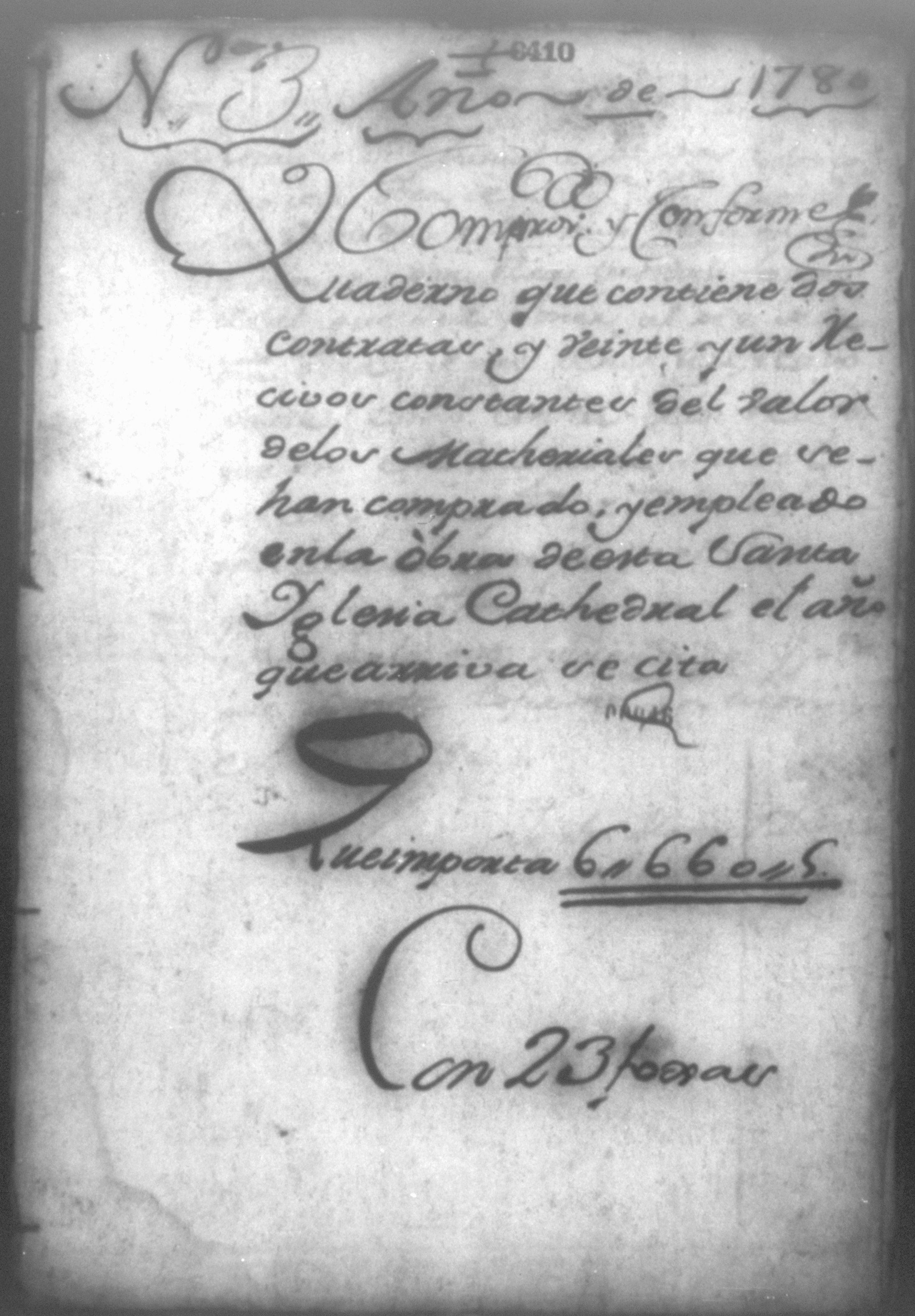 Temática: Año de 1780. Cuaderno que contiene dos contratos y veinte y un recibos constantes del valor de los materiales que se han comprado y empleado en la obra de esta Santa Iglesia Cathedral.