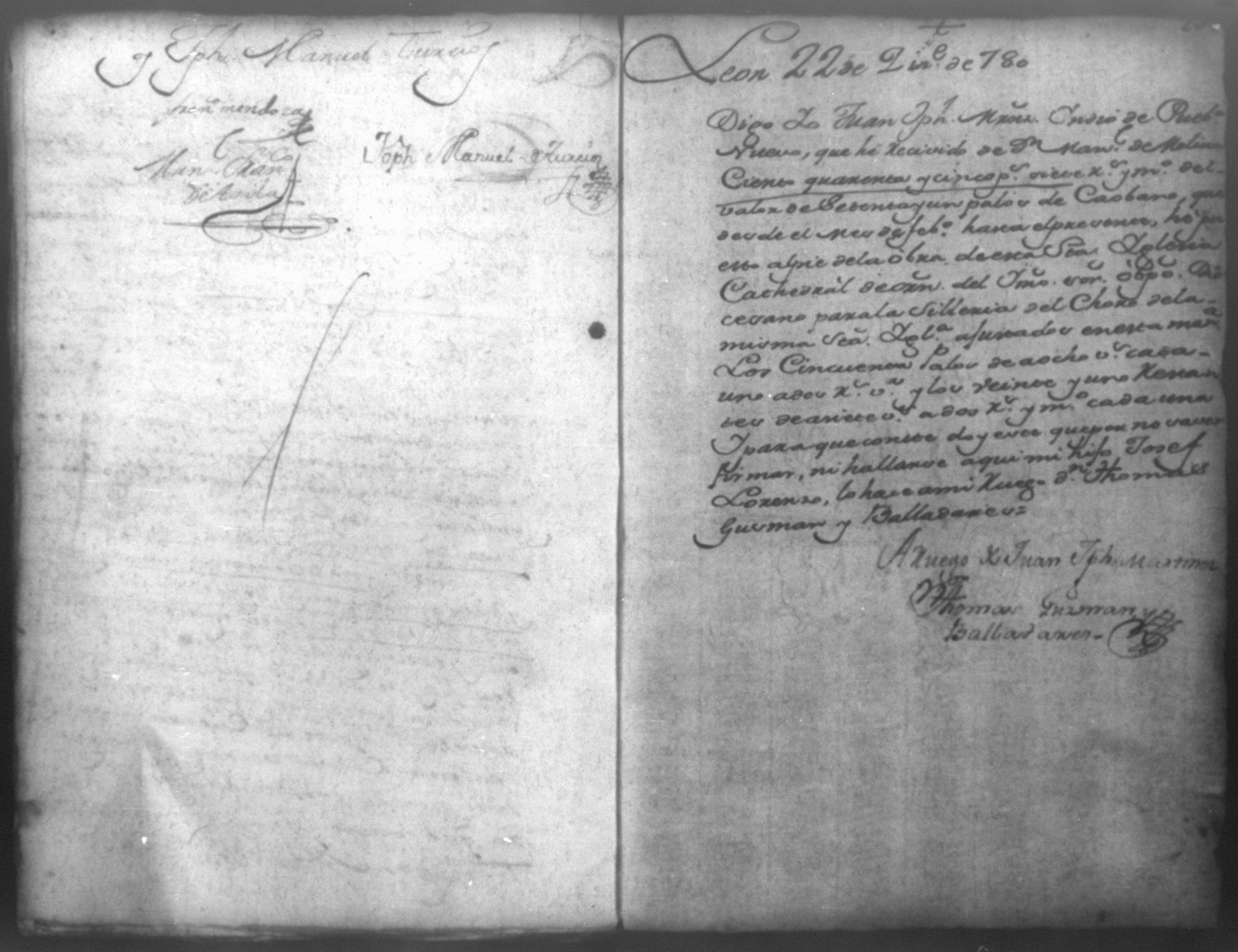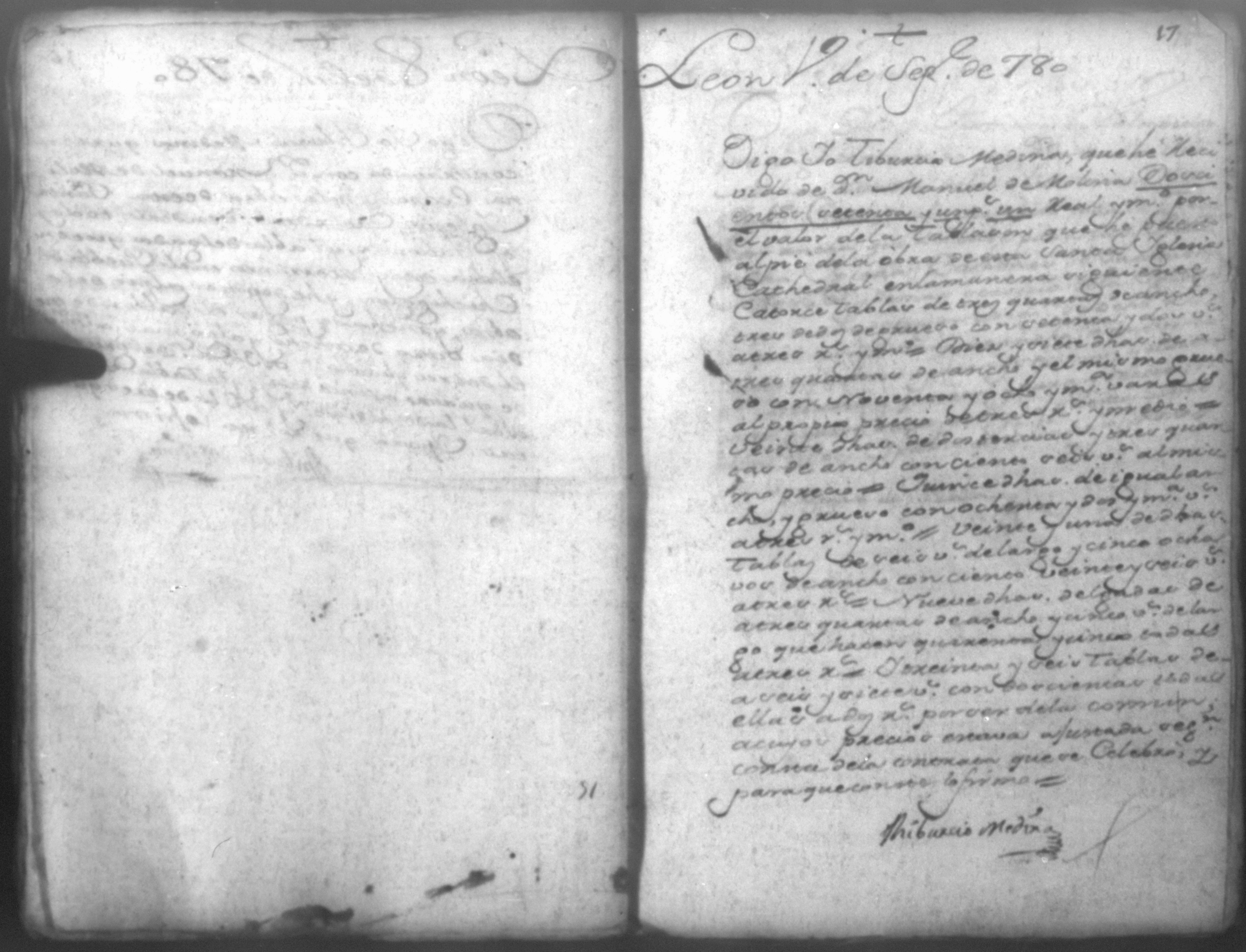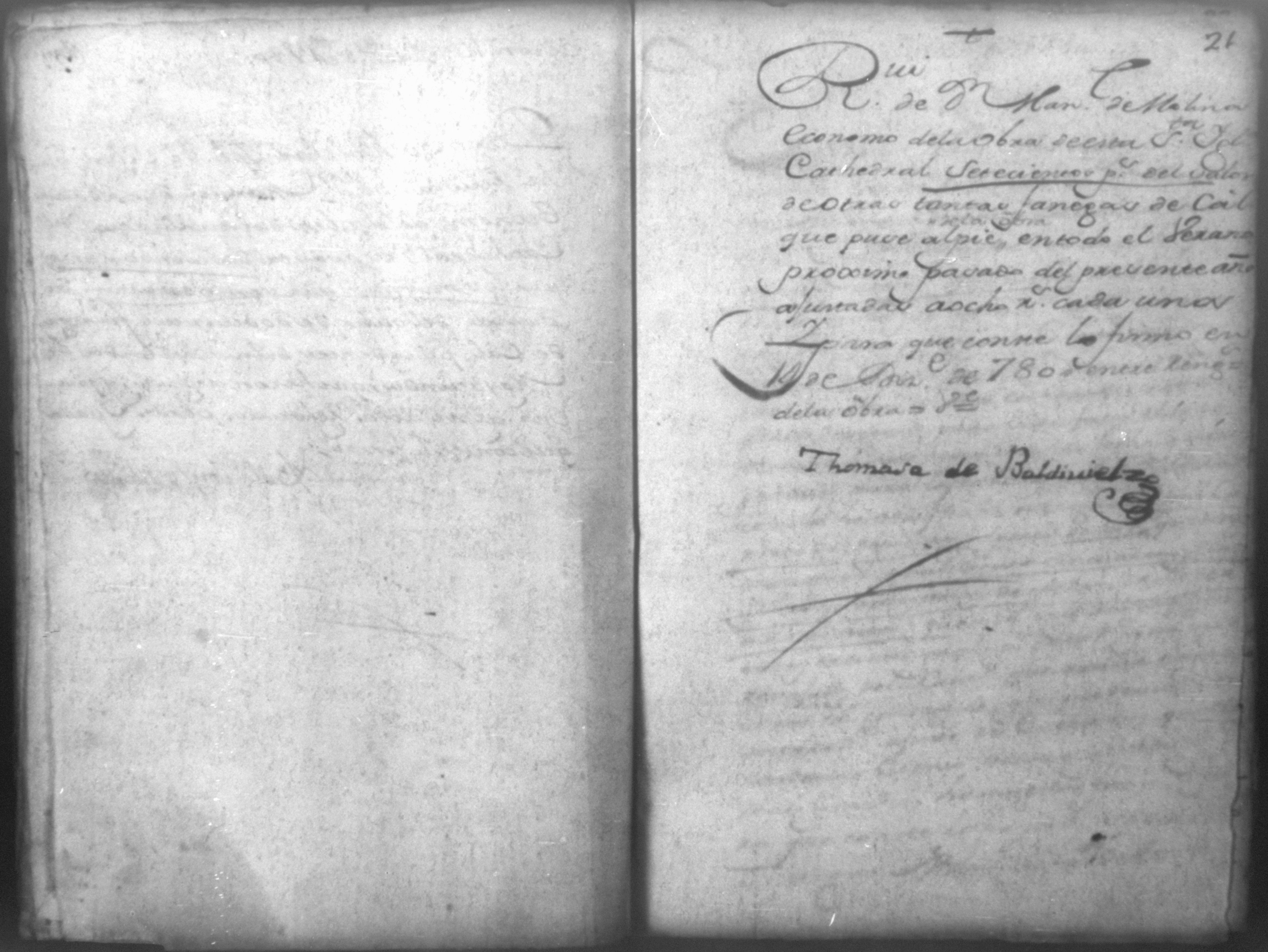Temática: Año de 1780. Cuaderno que contiene dos contratos y veinte y un recibos constantes del valor de los materiales que se han comprado y empleado en la obra de esta Santa Iglesia Cathedral.