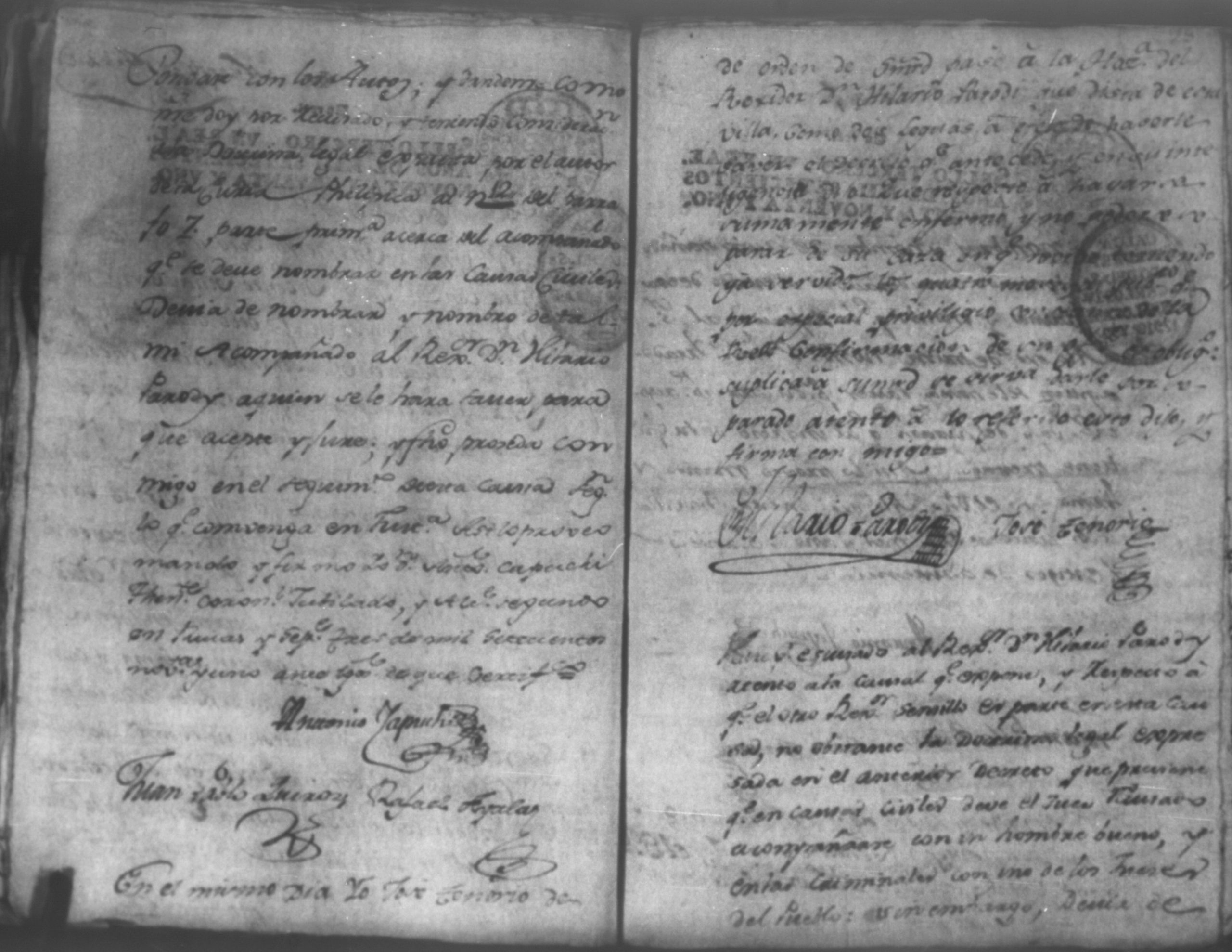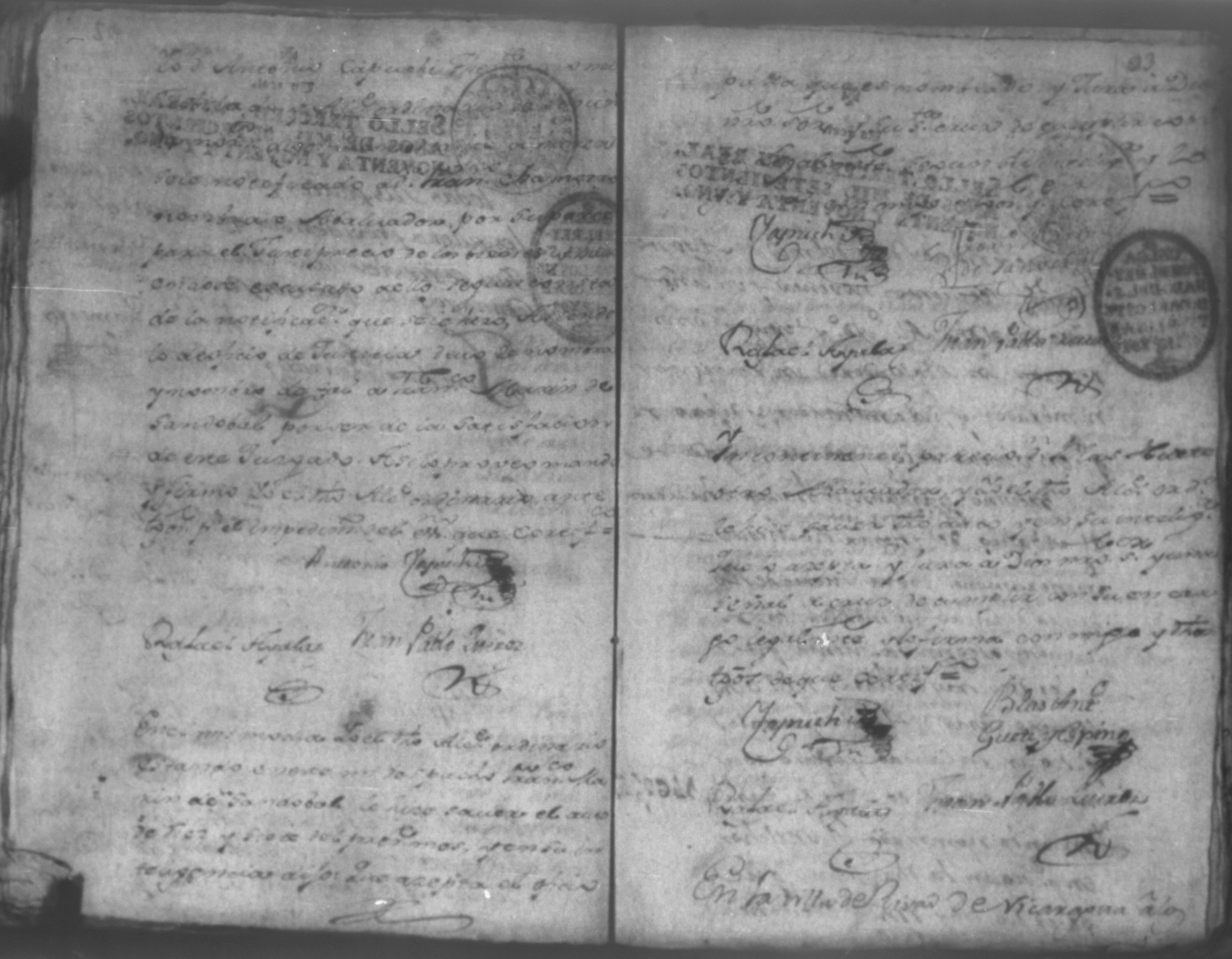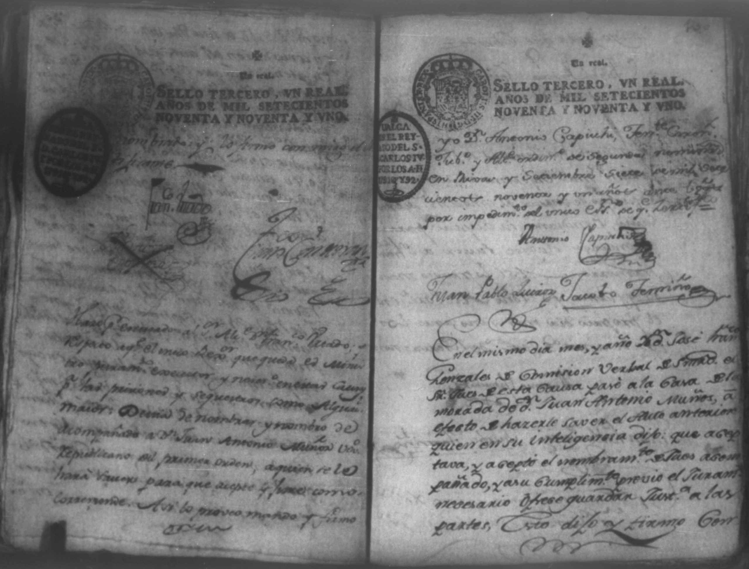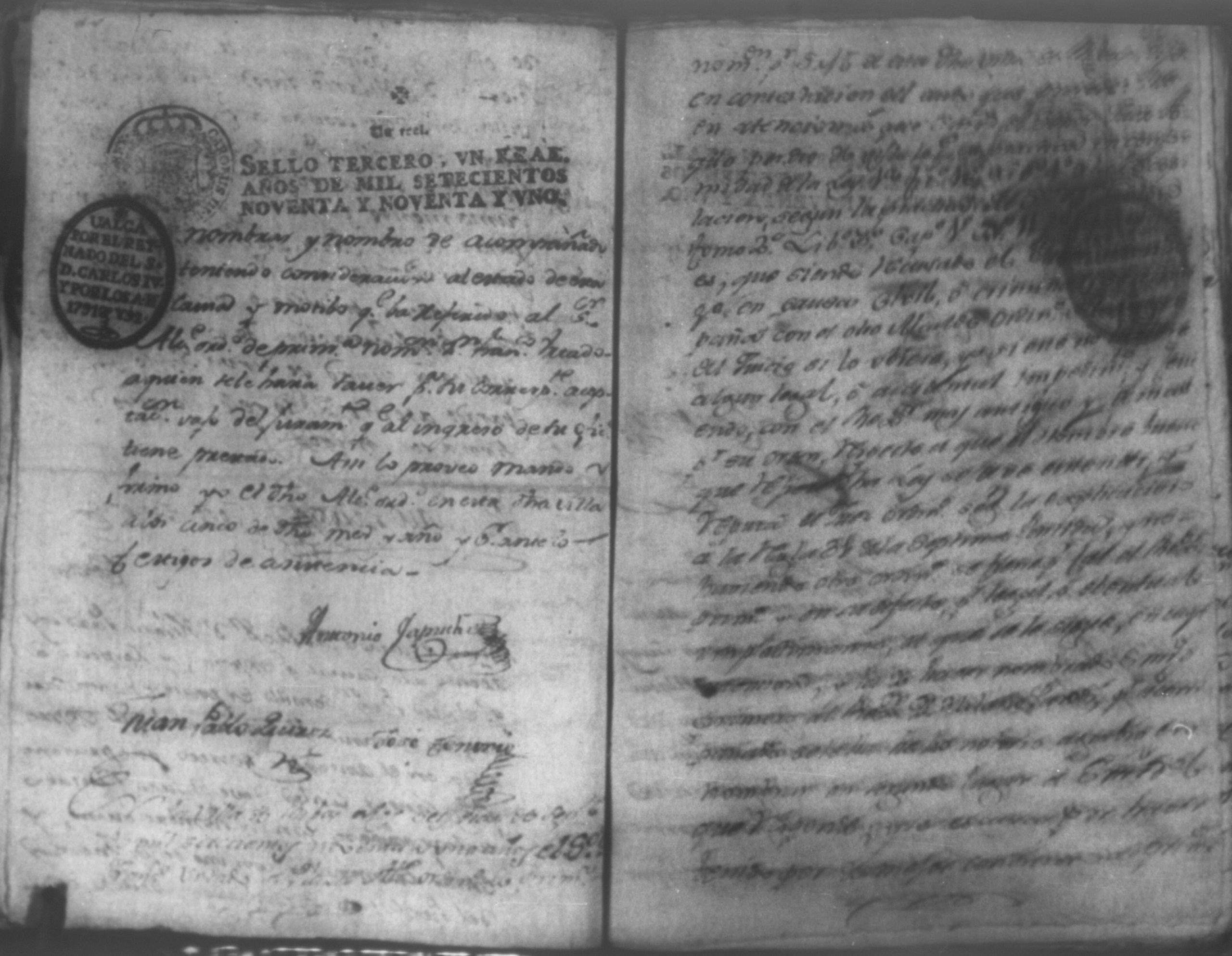 Temática: León, 1792. Correspondiente a la causa de don Juan de Villacorta, con don Francisco Chamorro. Incluye el Artículo de oposición por Don Francisco Chamorro y consorte, en la ejecución que le sigue Don Juan Visente Villacorta. "Señor Alcalde Ordinario. Don Juan Vizente Villacorta del Comercio en esta Provincia en la execucion que contra a Francisco Chamorro y doña Marcelina Martinez Montaña, por cantidad de tres mil pesos, sigo en la mejor forma ante vuestra majestad digo; que por opocicion que el referido Chamorro hiso al remate de la Hacienda (que a cubierta del general y costas que las demando, se aya embargada) se le entregaron los autos en traslado el veinte, y ocho del corriente para que dentro de segundo dia expuciese las essecciones que dise le favorecen, á impedir el enunciado remate, y siendo ya pasado el termino, por contar oy treinta, y uno de este mismo mes de Mayo, en la forma que haya lugar á cuio esta y es el dia, por primera. segunda y tercera vez [...]" (Extracto de los folios 4 y 4v.).