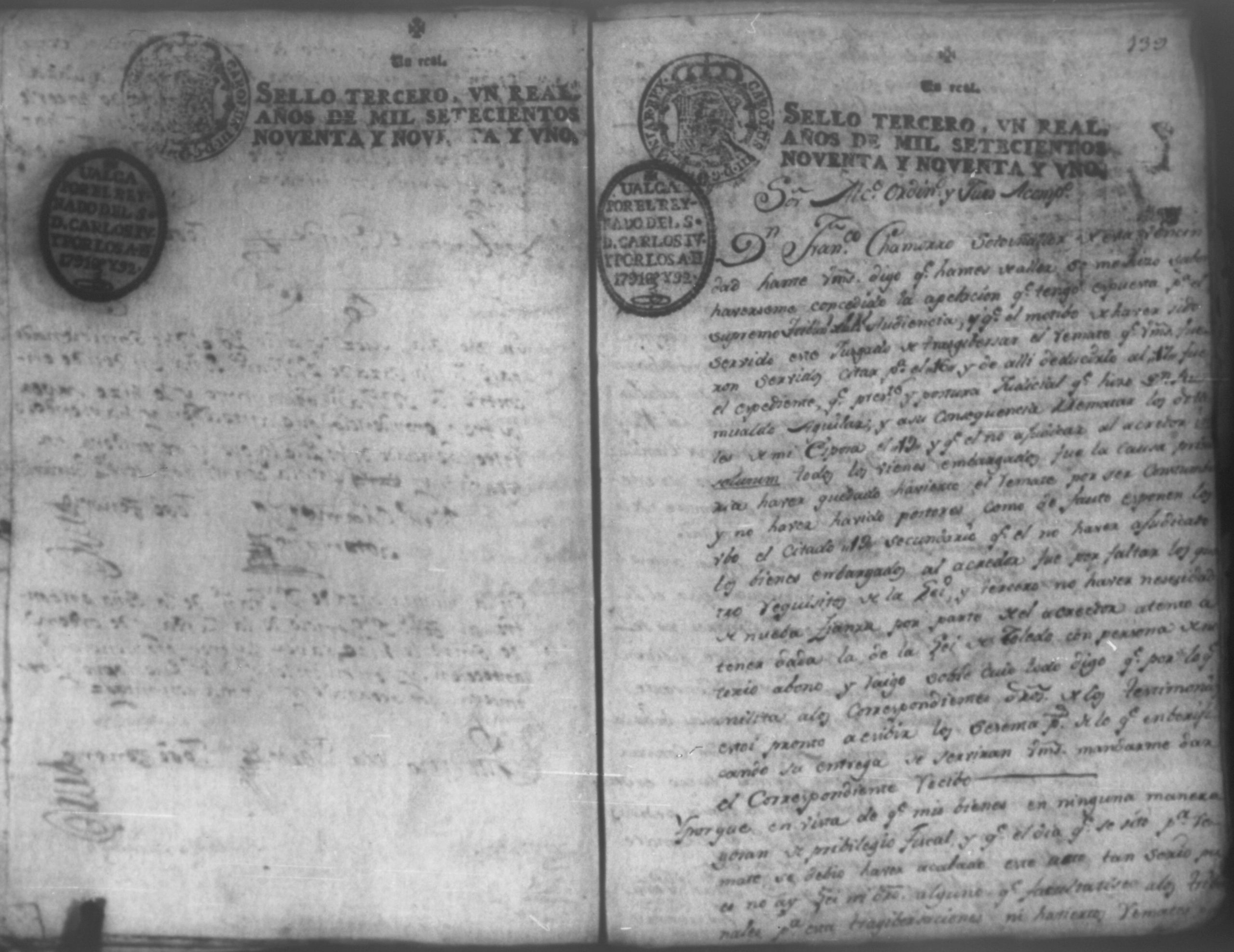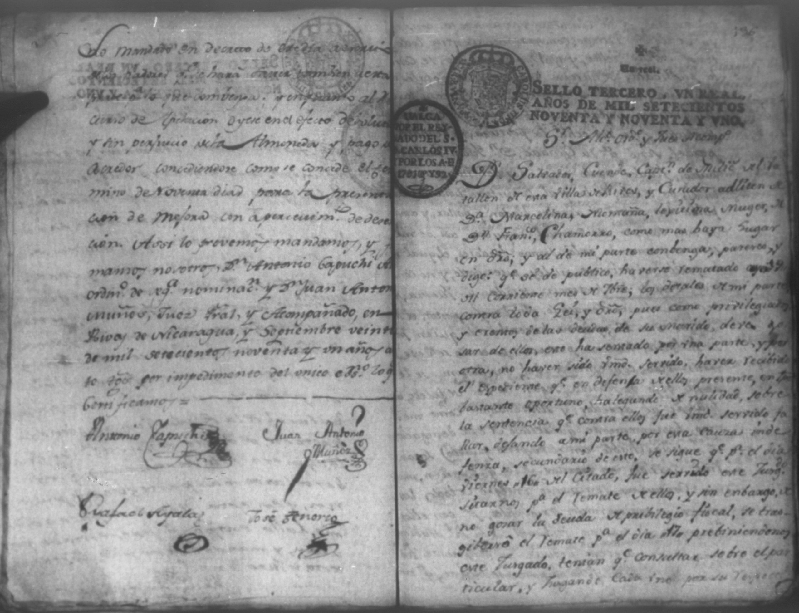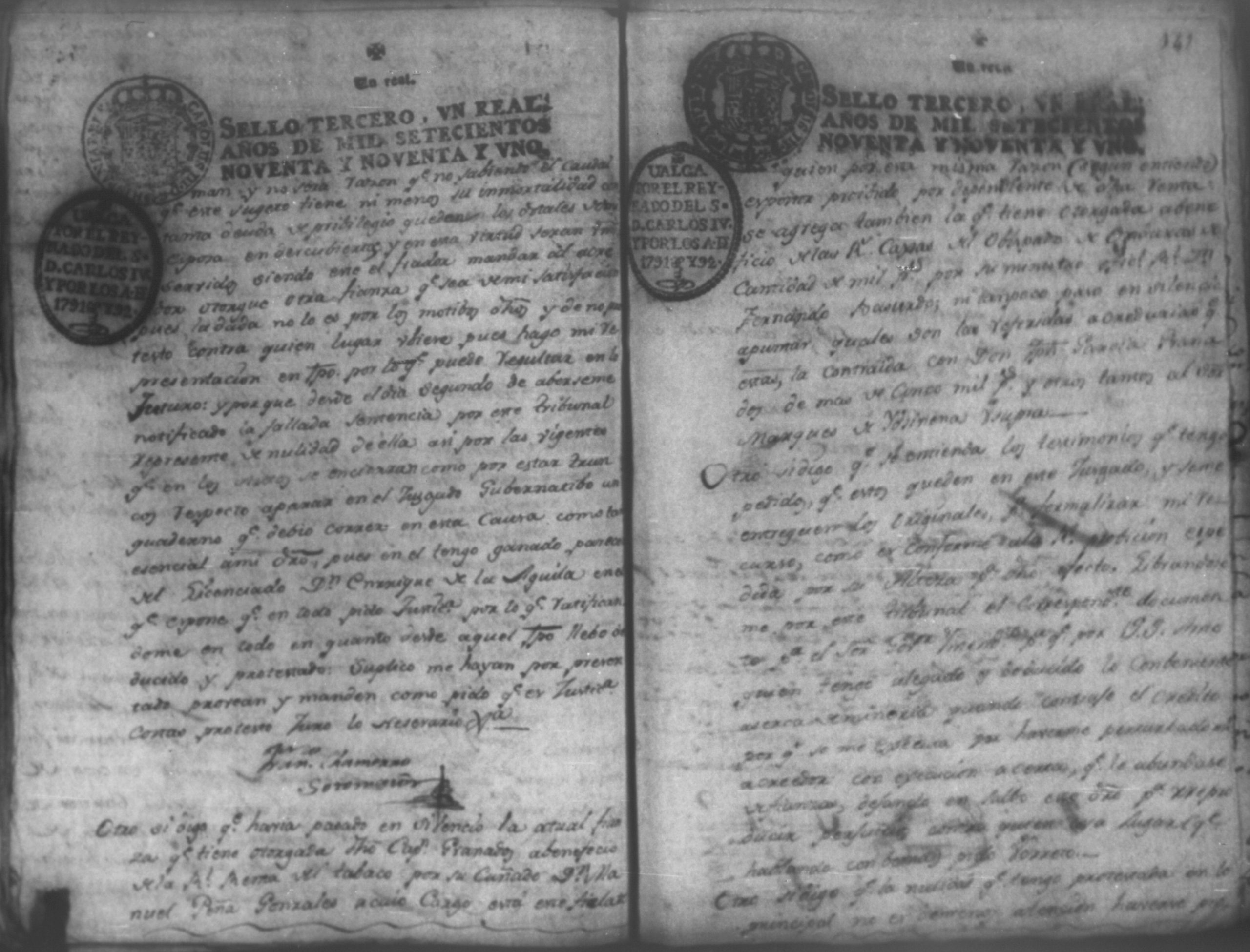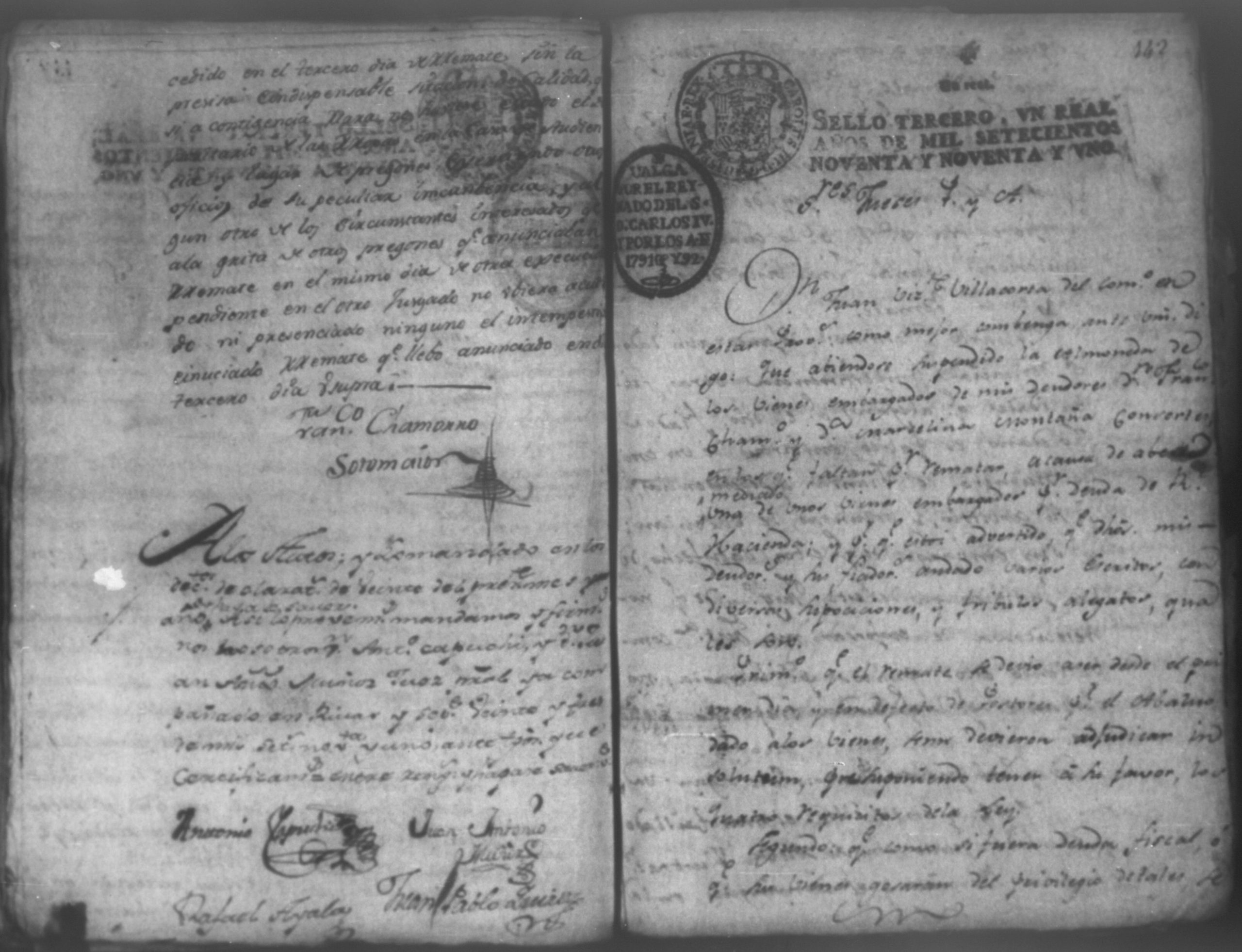 Temática: León, 1792. Correspondiente a la causa de don Juan de Villacorta, con don Francisco Chamorro. Incluye el Artículo de oposición por Don Francisco Chamorro y consorte, en la ejecución que le sigue Don Juan Visente Villacorta. "Señor Alcalde Ordinario. Don Juan Vizente Villacorta del Comercio en esta Provincia en la execucion que contra a Francisco Chamorro y doña Marcelina Martinez Montaña, por cantidad de tres mil pesos, sigo en la mejor forma ante vuestra majestad digo; que por opocicion que el referido Chamorro hiso al remate de la Hacienda (que a cubierta del general y costas que las demando, se aya embargada) se le entregaron los autos en traslado el veinte, y ocho del corriente para que dentro de segundo dia expuciese las essecciones que dise le favorecen, á impedir el enunciado remate, y siendo ya pasado el termino, por contar oy treinta, y uno de este mismo mes de Mayo, en la forma que haya lugar á cuio esta y es el dia, por primera. segunda y tercera vez [...]" (Extracto de los folios 4 y 4v.).