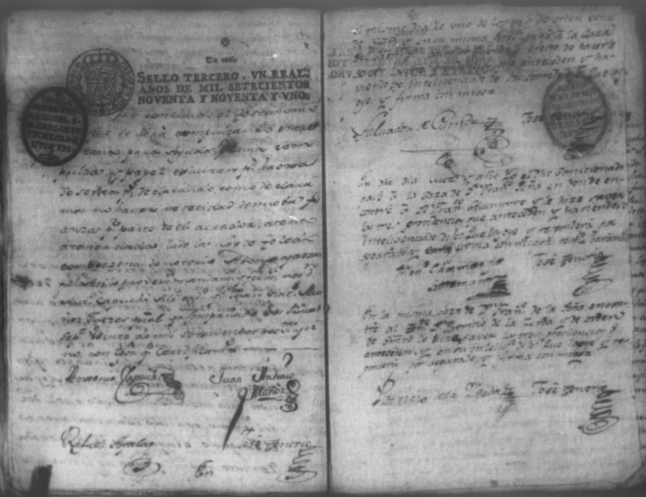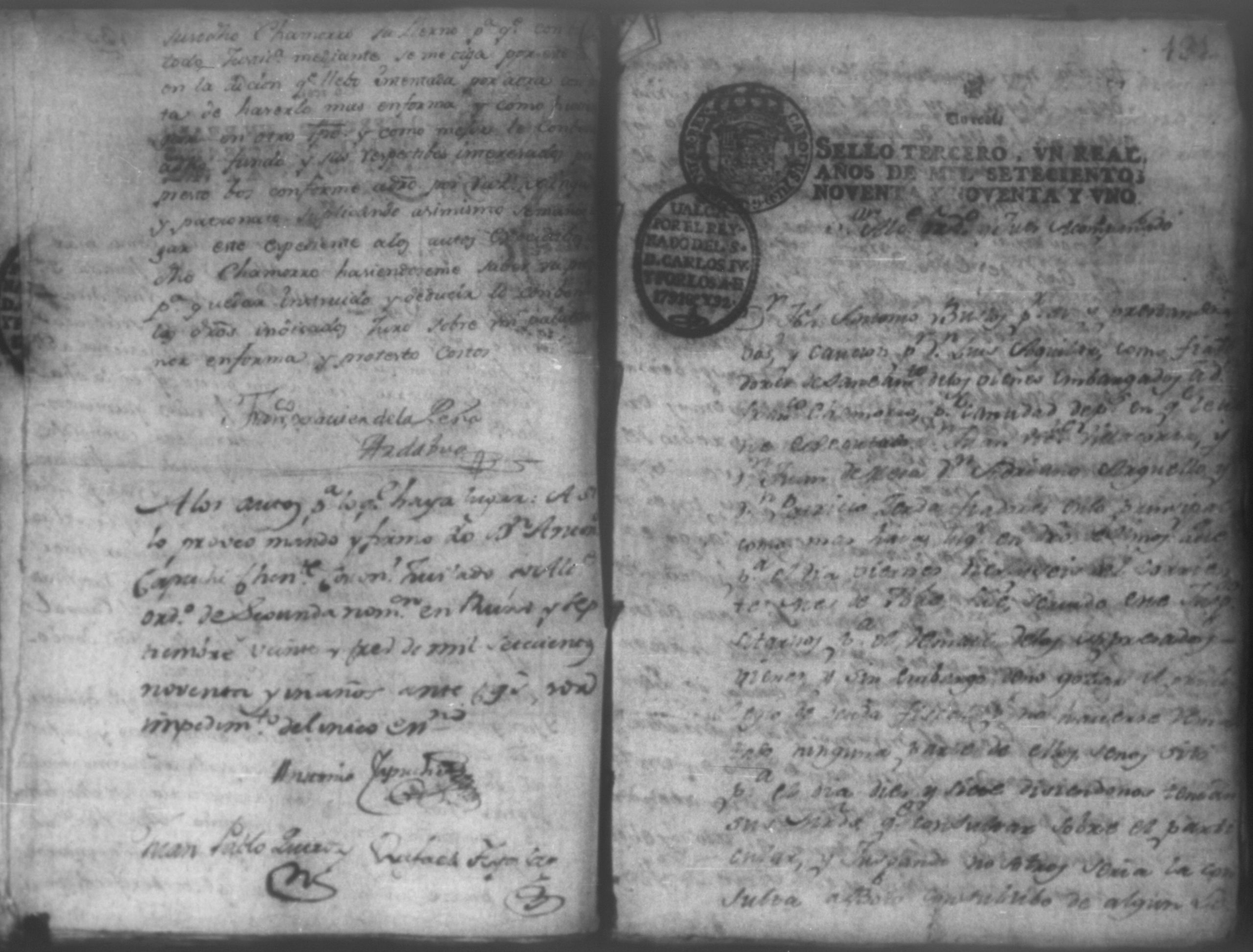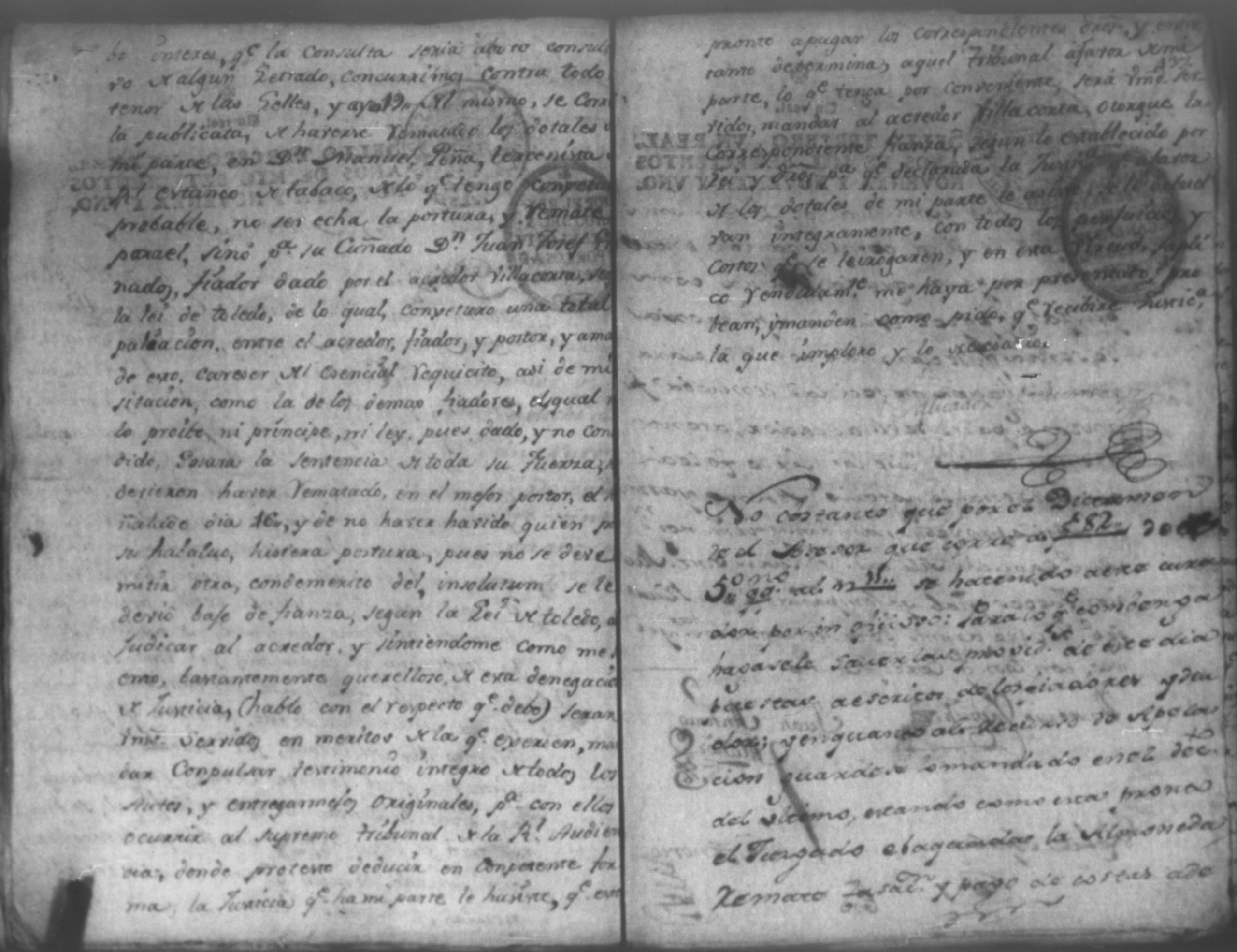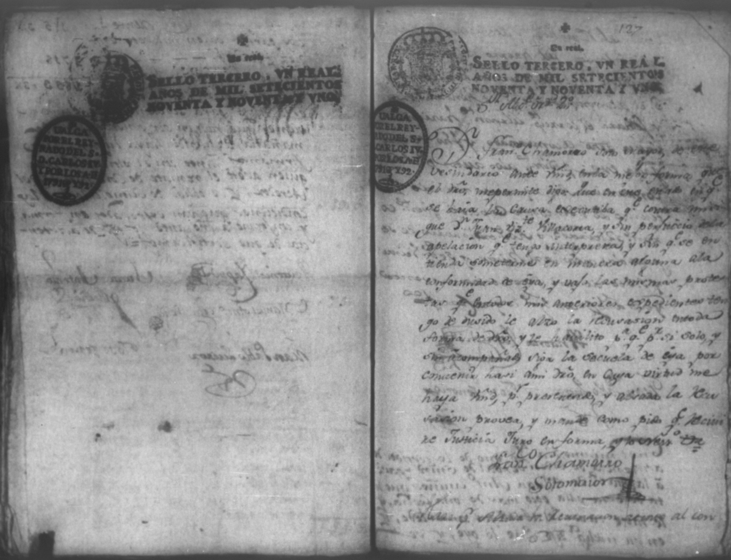 Temática: León, 1792. Correspondiente a la causa de don Juan de Villacorta, con don Francisco Chamorro. Incluye el Artículo de oposición por Don Francisco Chamorro y consorte, en la ejecución que le sigue Don Juan Visente Villacorta. "Señor Alcalde Ordinario. Don Juan Vizente Villacorta del Comercio en esta Provincia en la execucion que contra a Francisco Chamorro y doña Marcelina Martinez Montaña, por cantidad de tres mil pesos, sigo en la mejor forma ante vuestra majestad digo; que por opocicion que el referido Chamorro hiso al remate de la Hacienda (que a cubierta del general y costas que las demando, se aya embargada) se le entregaron los autos en traslado el veinte, y ocho del corriente para que dentro de segundo dia expuciese las essecciones que dise le favorecen, á impedir el enunciado remate, y siendo ya pasado el termino, por contar oy treinta, y uno de este mismo mes de Mayo, en la forma que haya lugar á cuio esta y es el dia, por primera. segunda y tercera vez [...]" (Extracto de los folios 4 y 4v.).