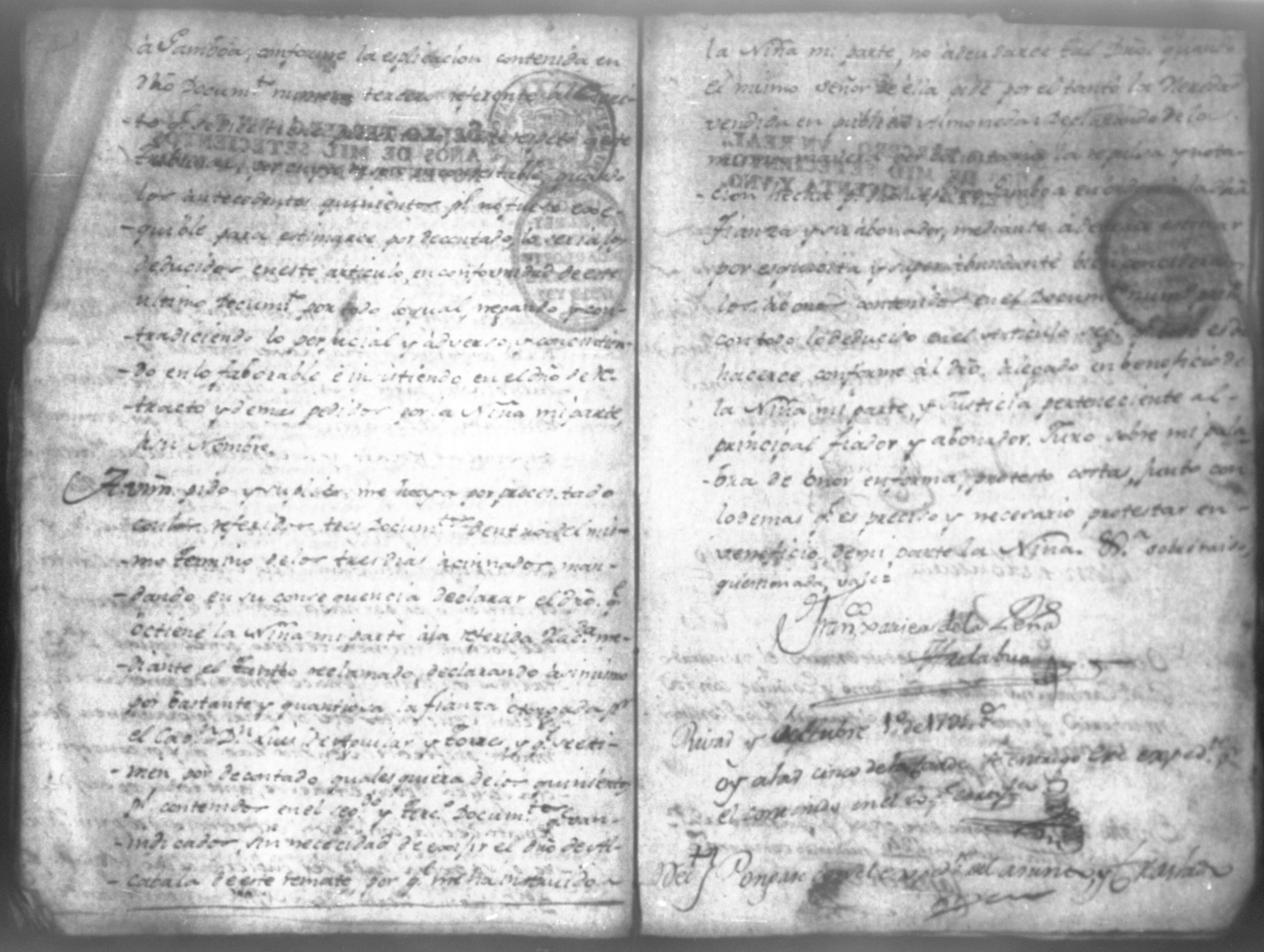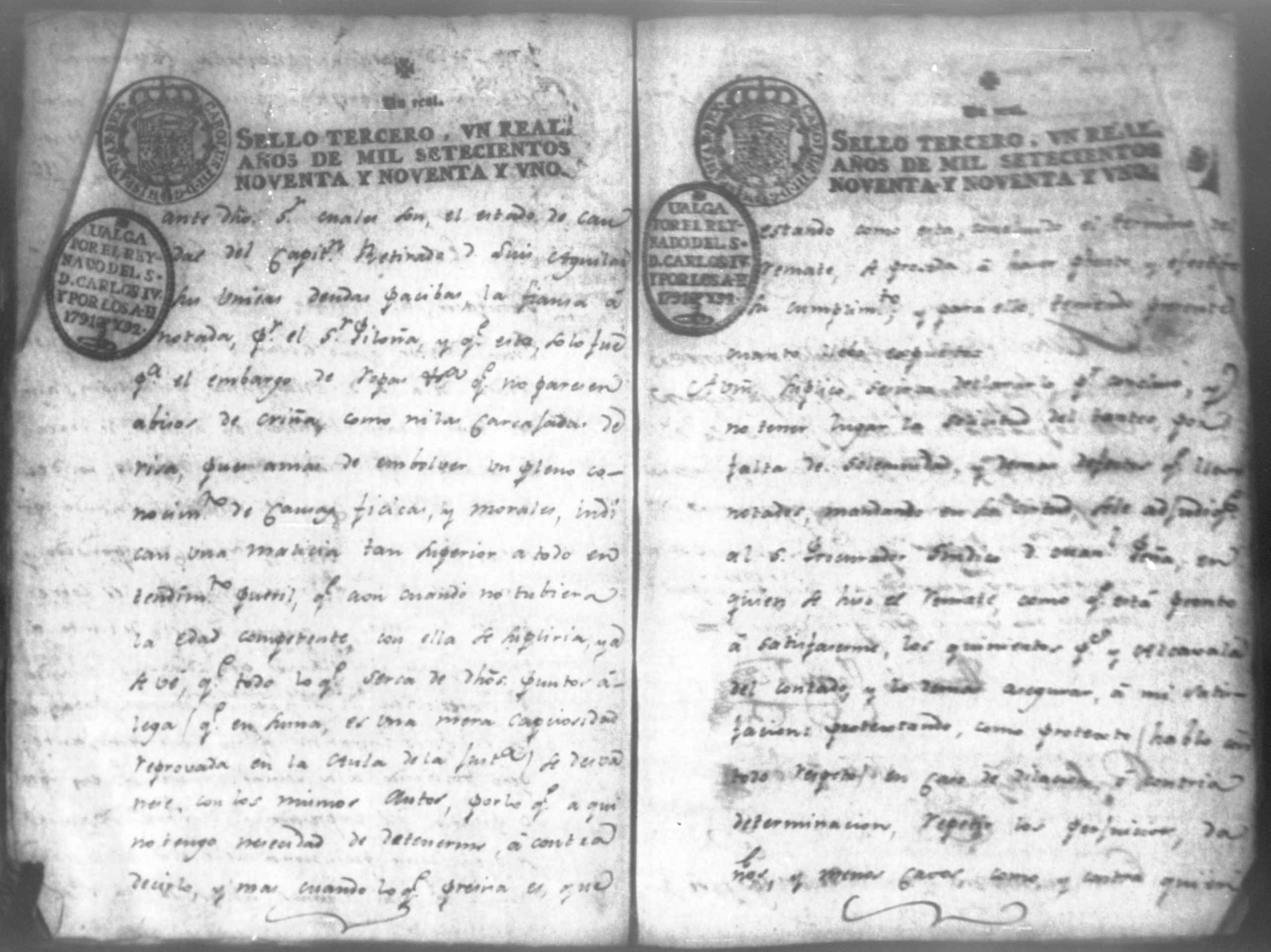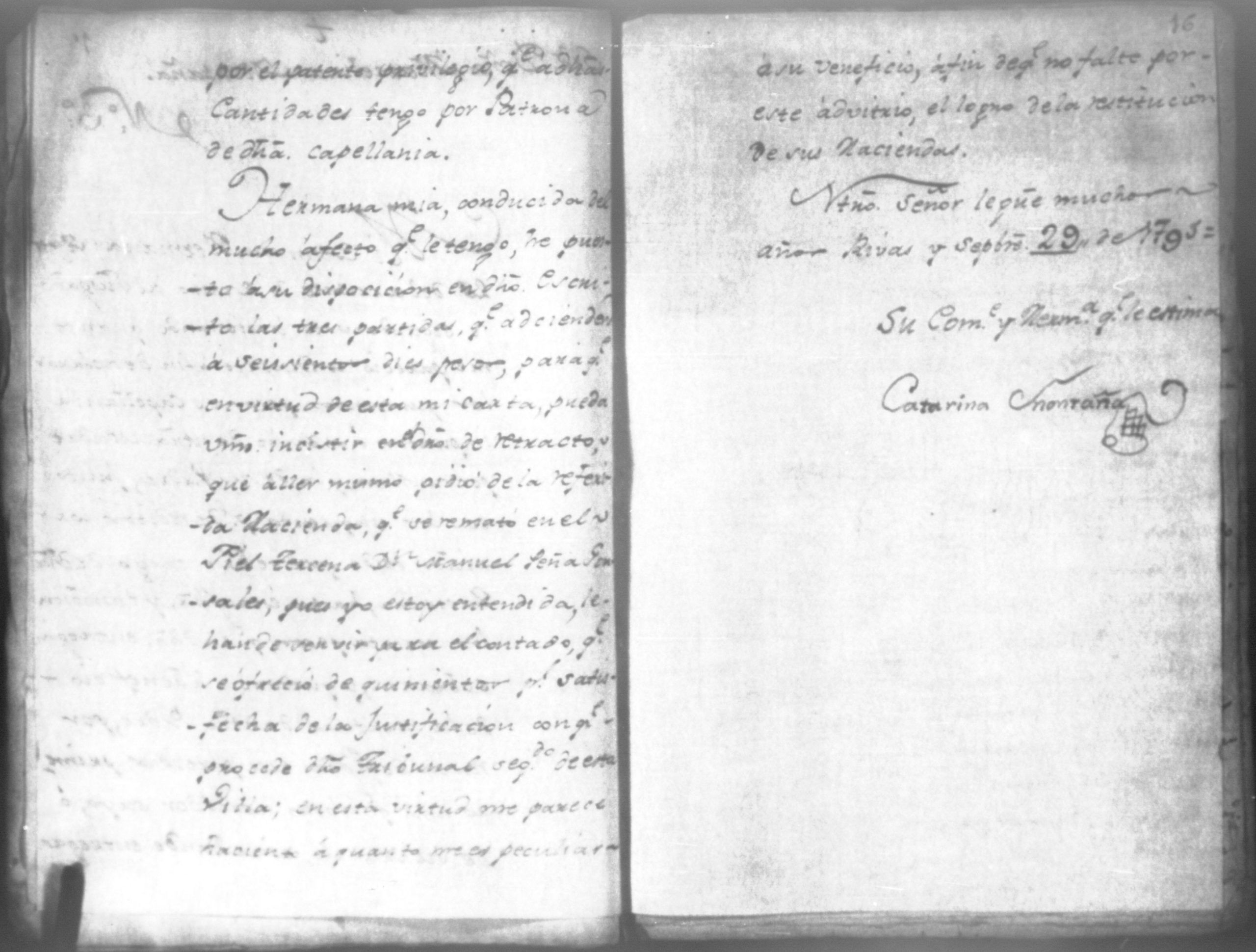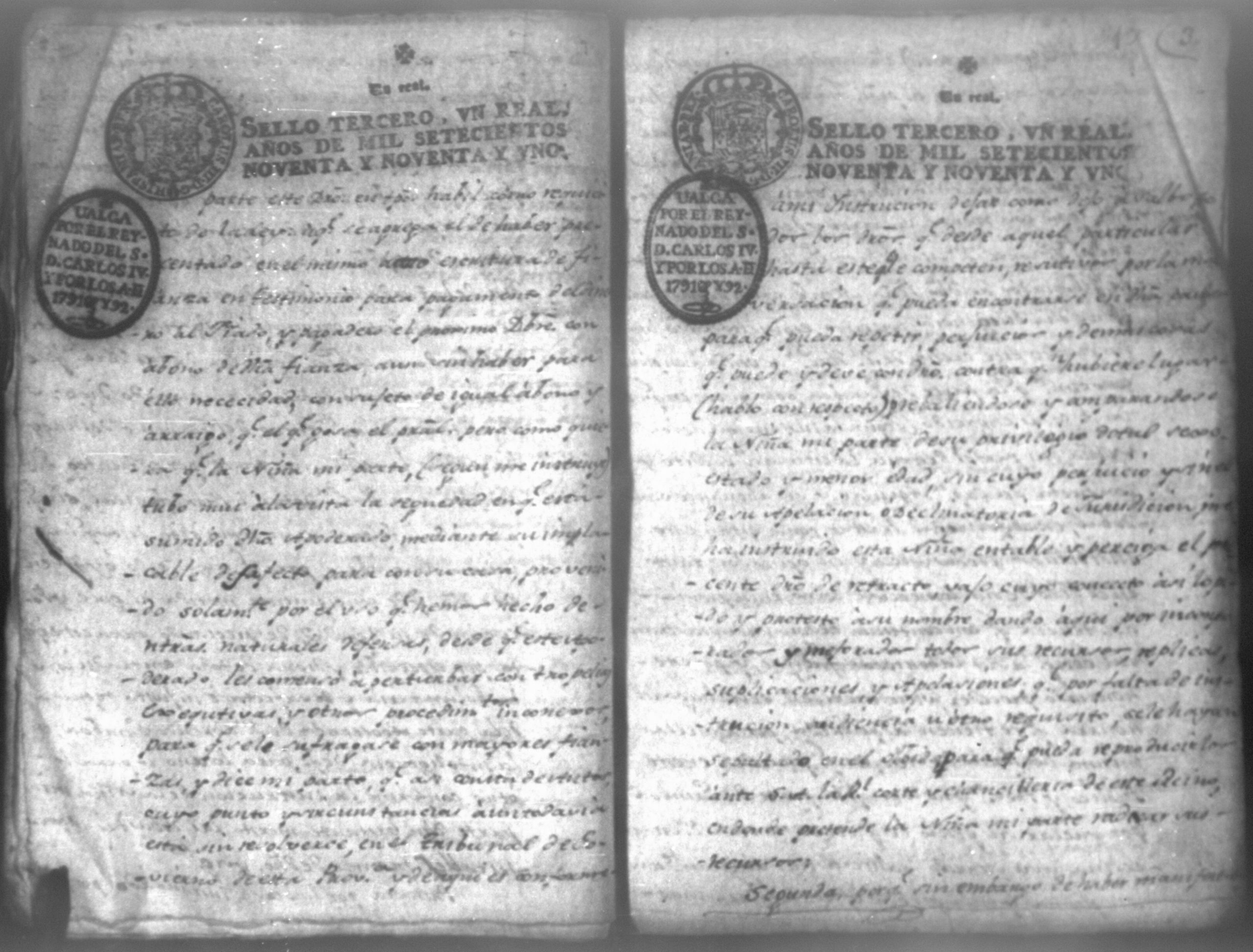 Temática: León, 1792. Correspondiente a la causa de don Juan Villacorta, con don Francisco Chamorro y es de doña Marcelina Martines de Montaña. "Señor Alcalde Segundo. El Capitan Don Francisco Xavier de la Peña [Andabua] deudo afinitivo dentro del segundo grado, de Doña Marcelina Montaña, en los autos executivos y de remate, que contra esta y su consorte ha seguido este Juzgado, por pedimento de su acreedor Villacorta como mas haya lugar en dereho ante Usted paresco con vos de la susodicha y conforme á la recomendacion que por la adjunta carta de fecha de veinte y siete del corriente me ha hecho, para que a su Nombre y representando su propia Persona, pida por el derecho de retracto, que tiene á la Hacienda que se remató en el Real Terceria Don Manuel Peña, Nombrada don Melchor y don Geronimo el dies y nueve, á horas que serian las doce, y poniendolo en efecto usando de dicha Facultad, y la de ser su deudor [...]". (Extracto del folio 5).