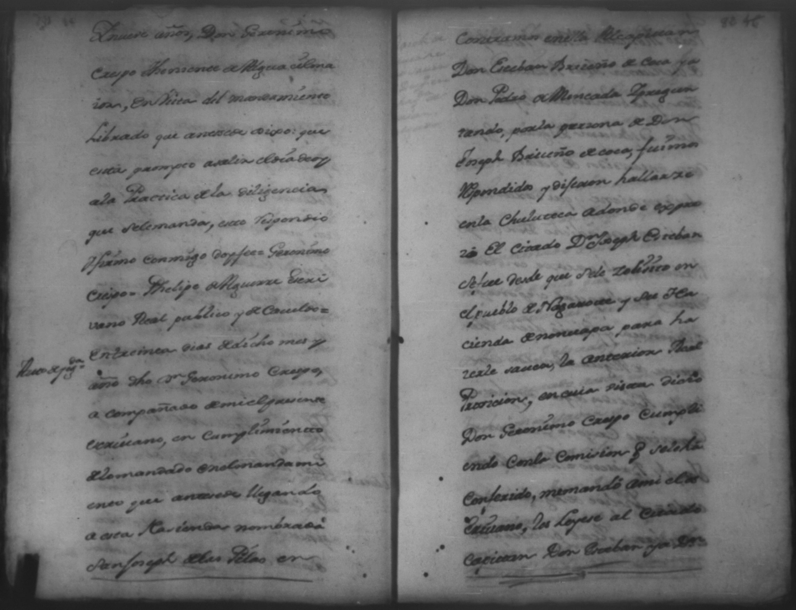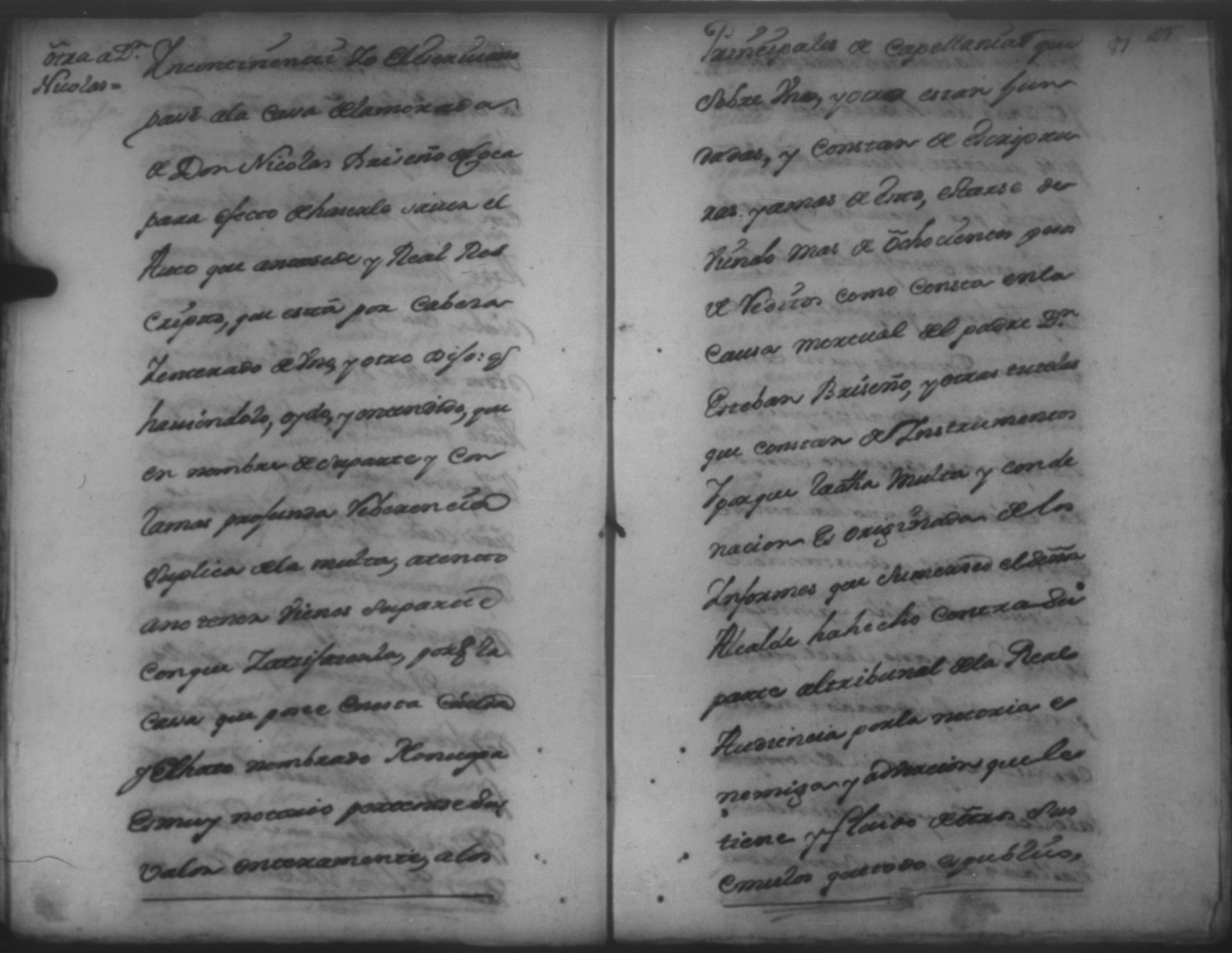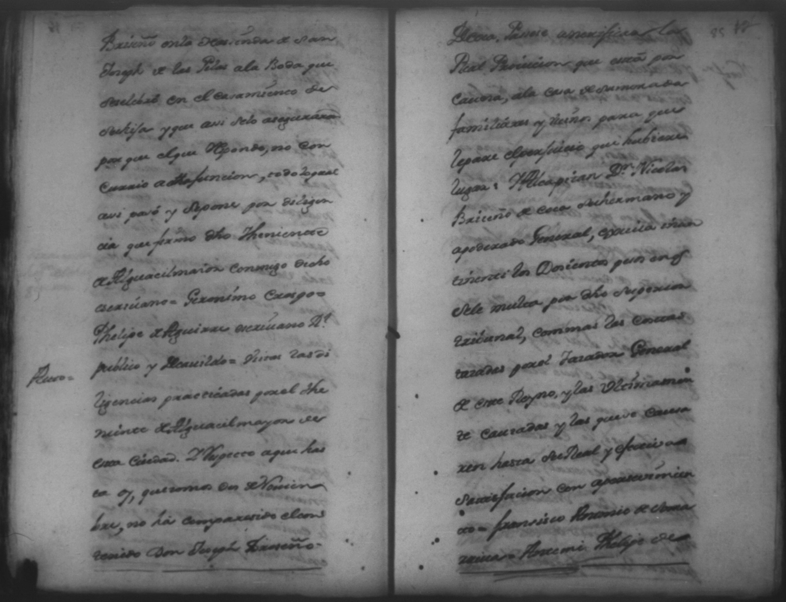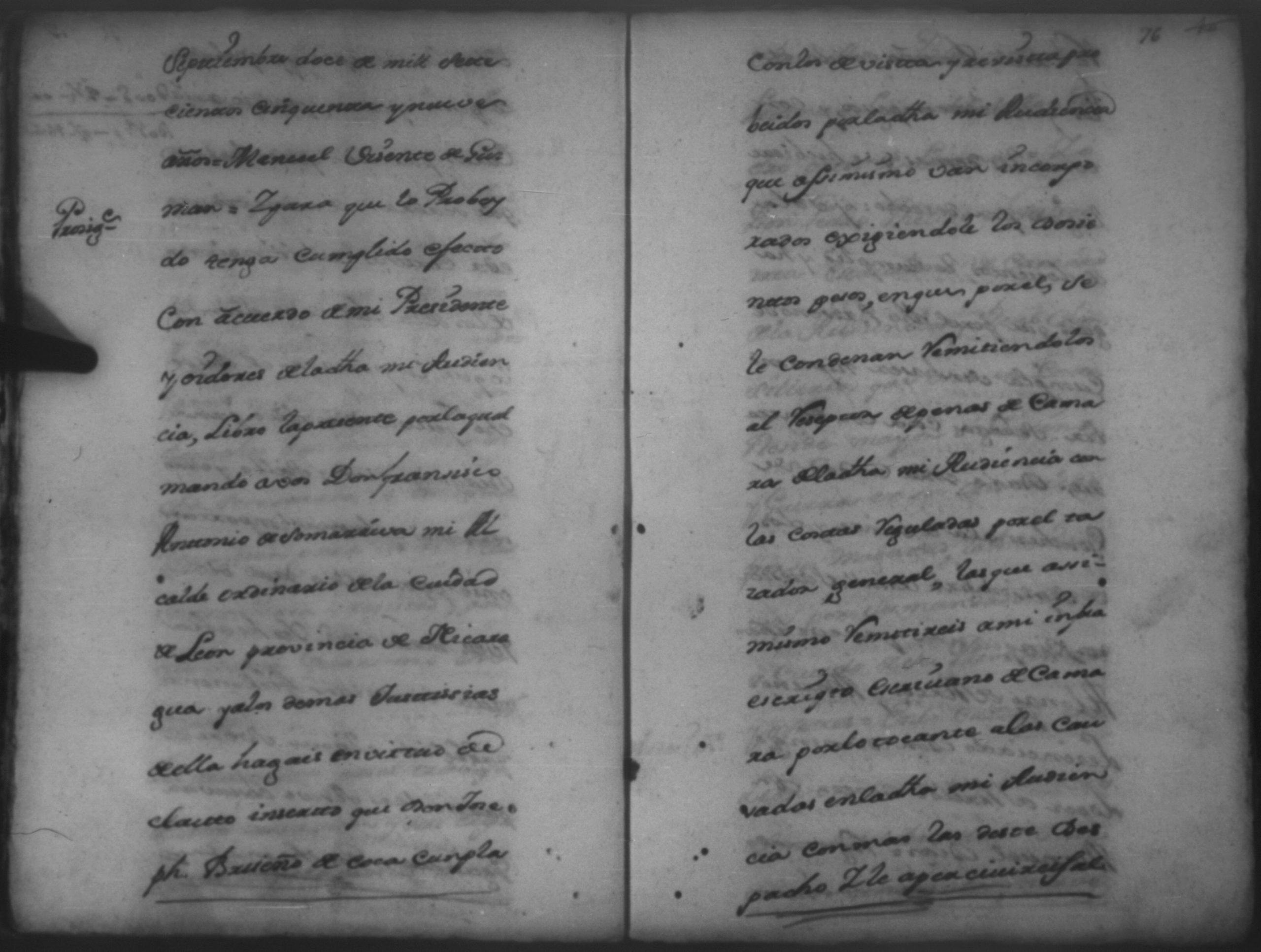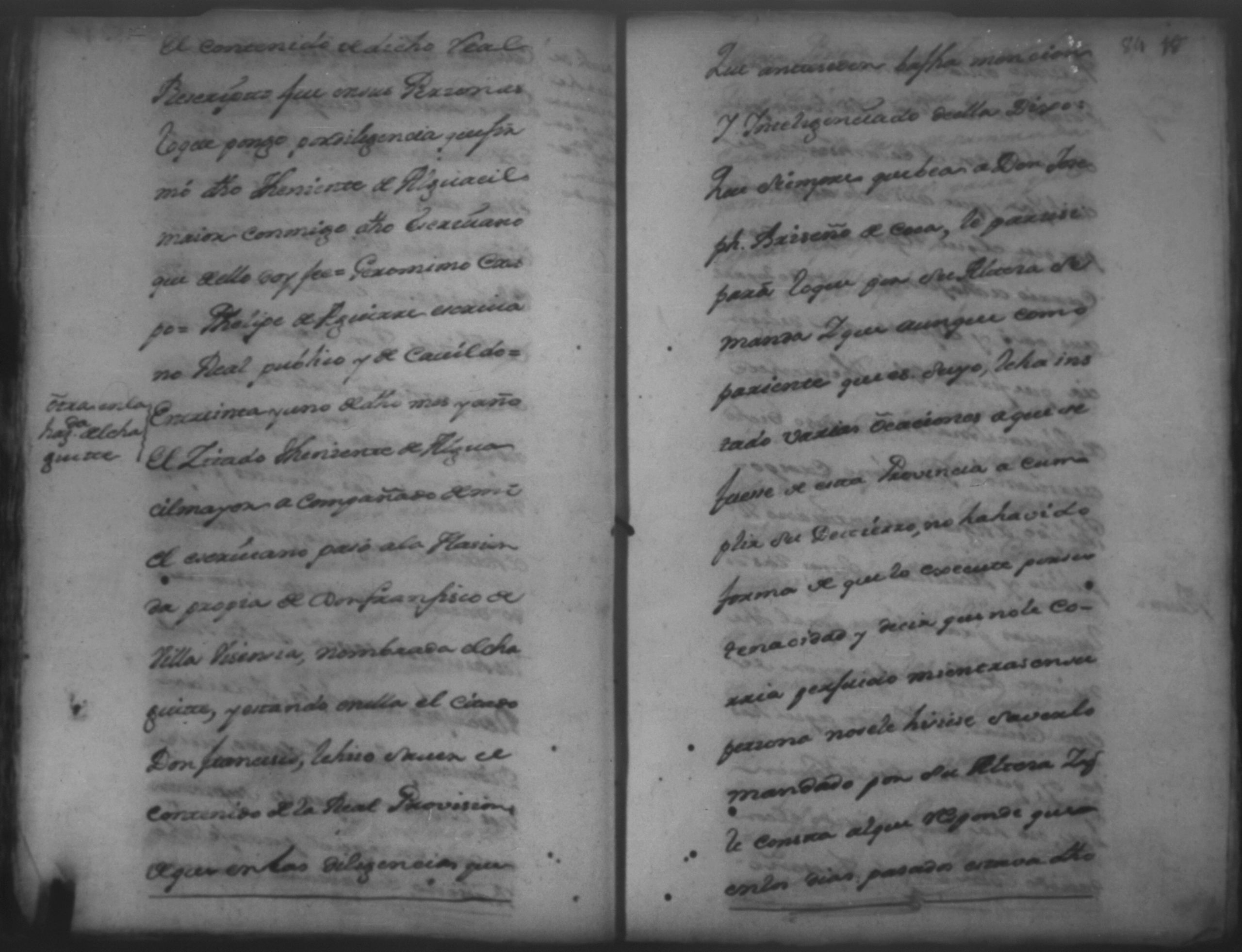 Temática: León. El Señor Capitan Don Francisco Antonio de [Somarriva] Primer Alcalde Ordinario y Theniente de Governador en ella y su jurisficcion dixo que por quanto ha llegado a su notisia que Don Nicolas Briseño de [Coca] esta pretendiendo sacar certificacion de algunos [designos] de esta ciudad.