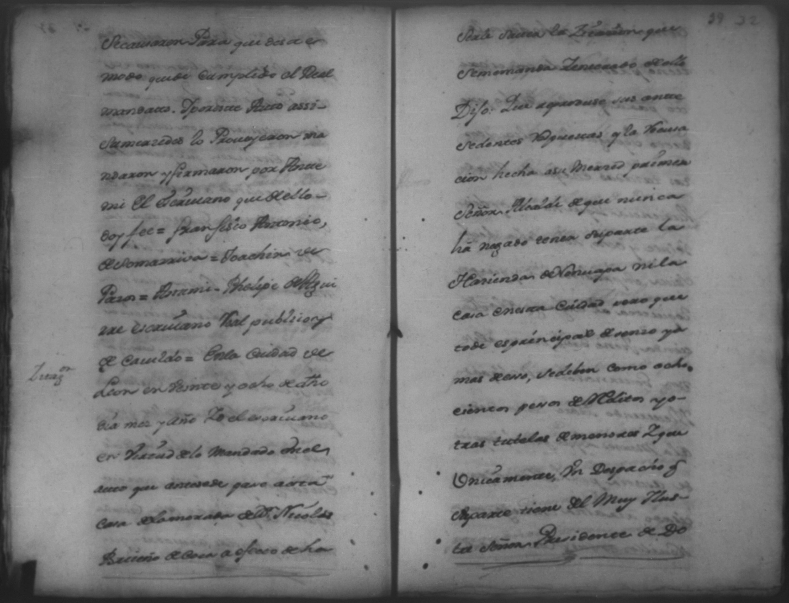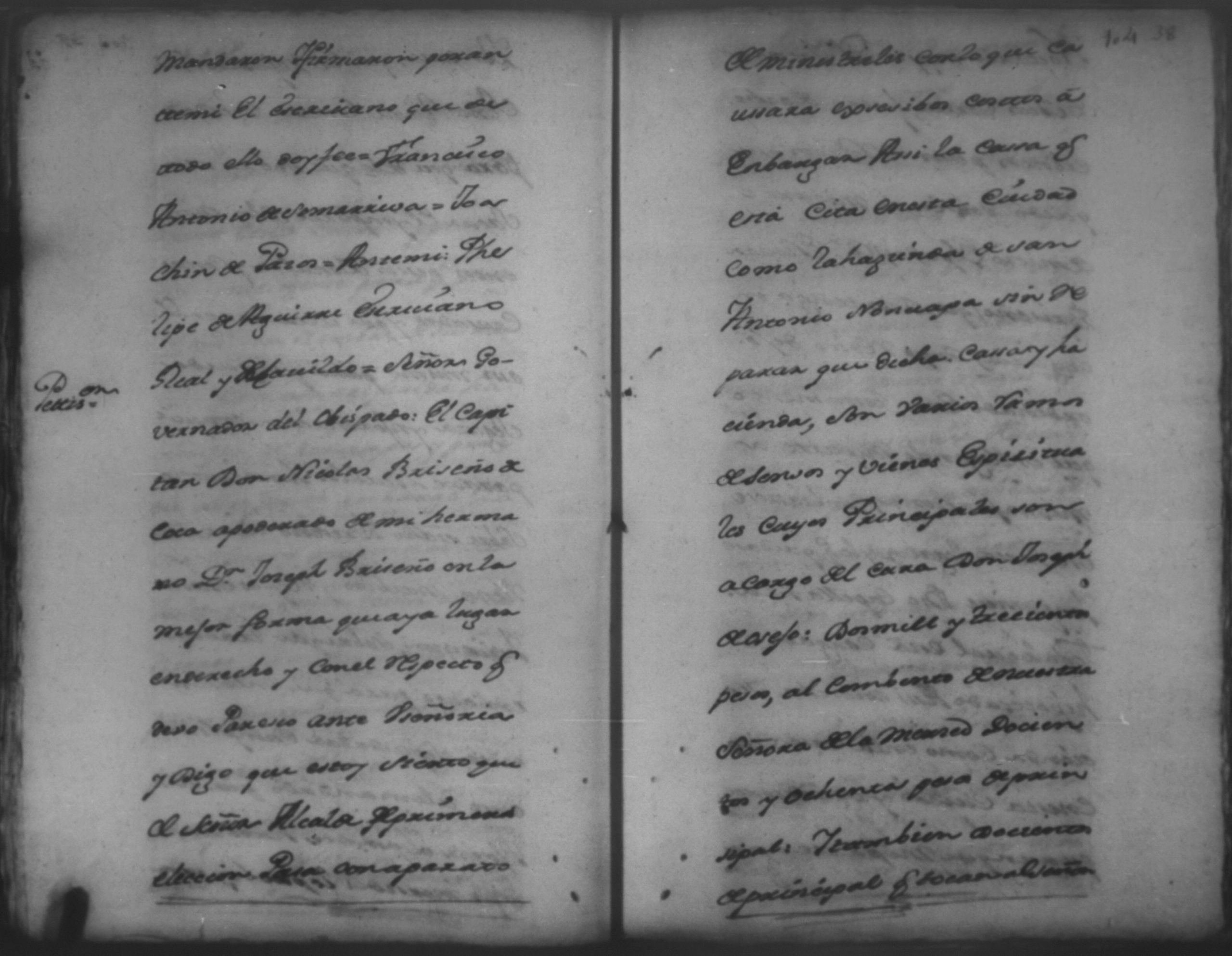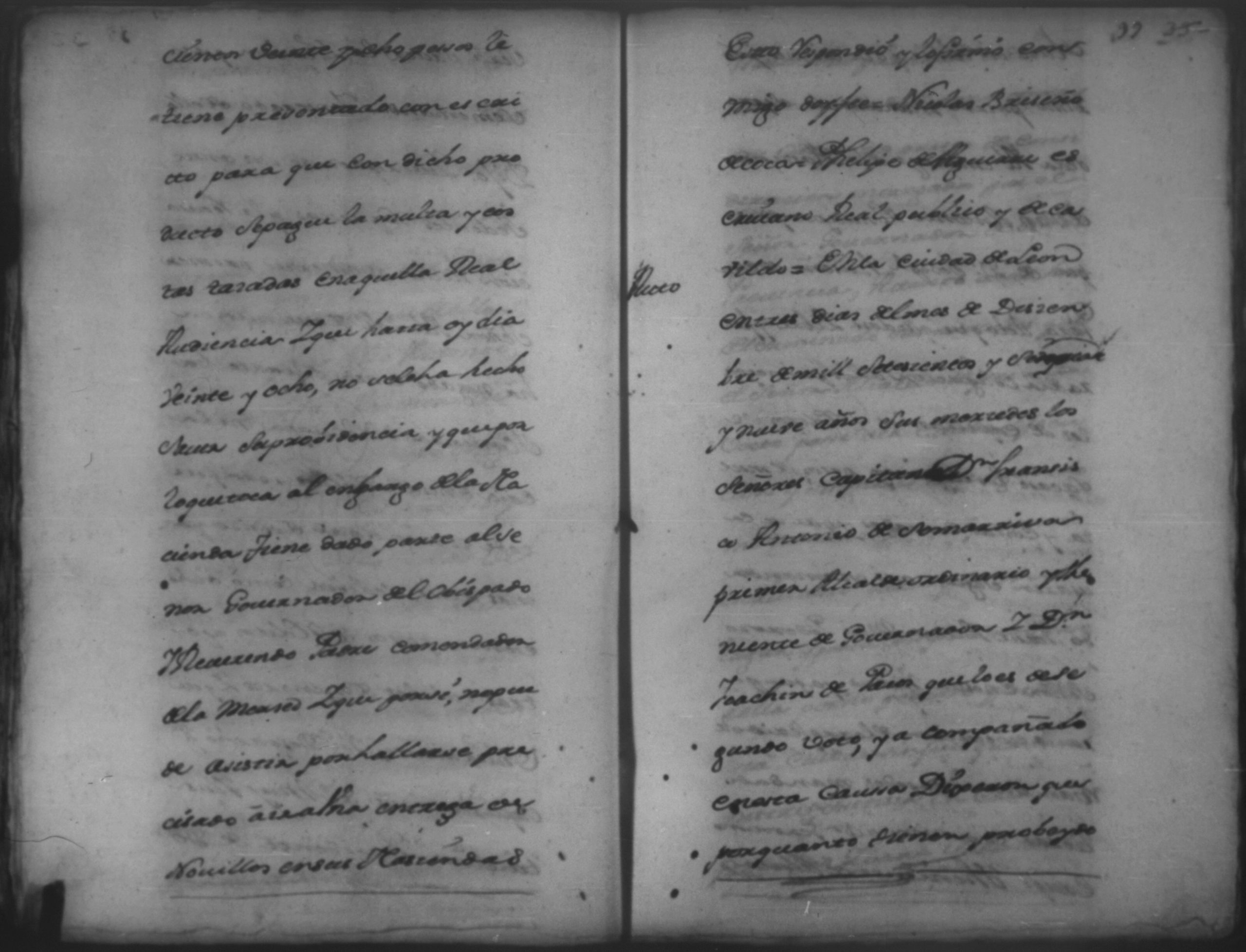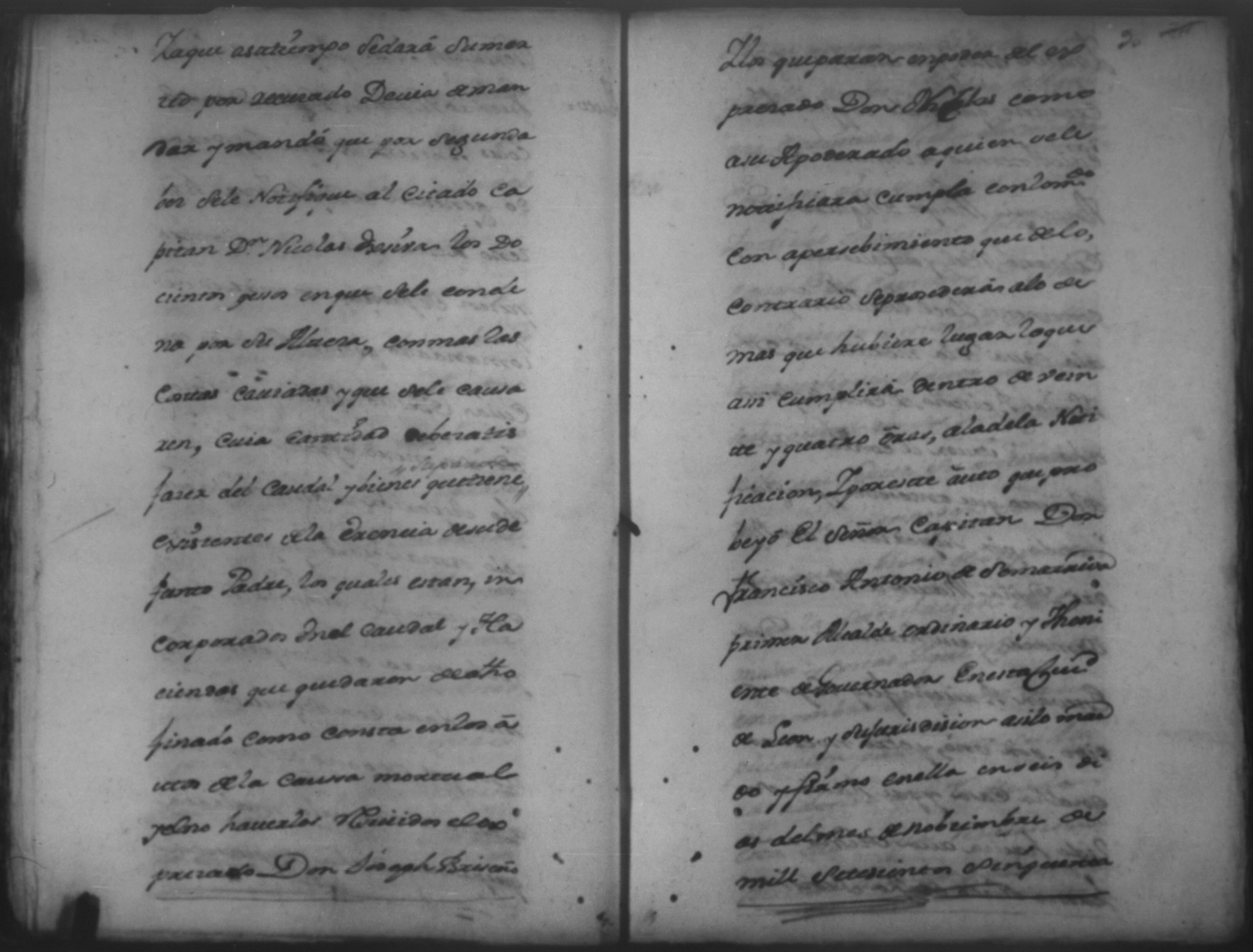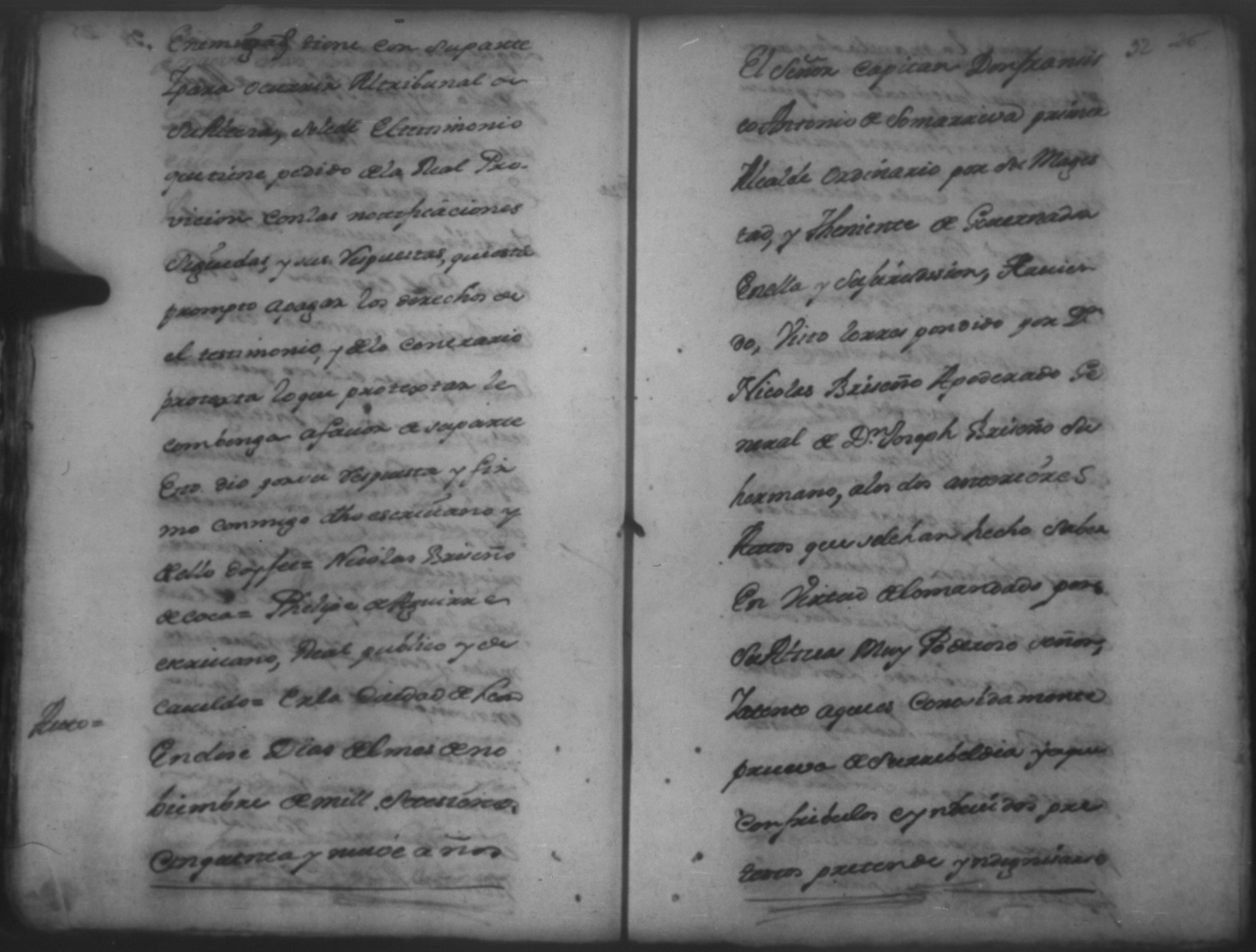 Temática: León. El Señor Capitan Don Francisco Antonio de [Somarriva] Primer Alcalde Ordinario y Theniente de Governador en ella y su jurisficcion dixo que por quanto ha llegado a su notisia que Don Nicolas Briseño de [Coca] esta pretendiendo sacar certificacion de algunos [designos] de esta ciudad.