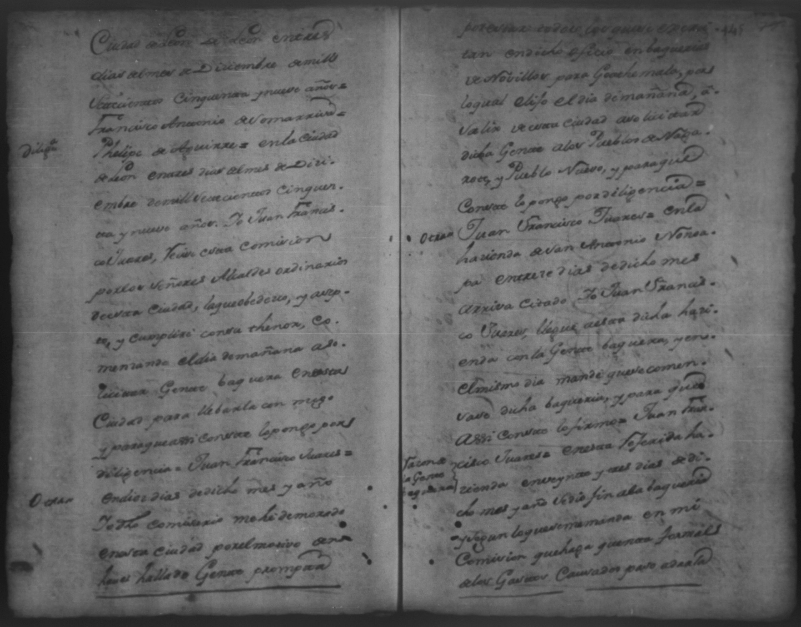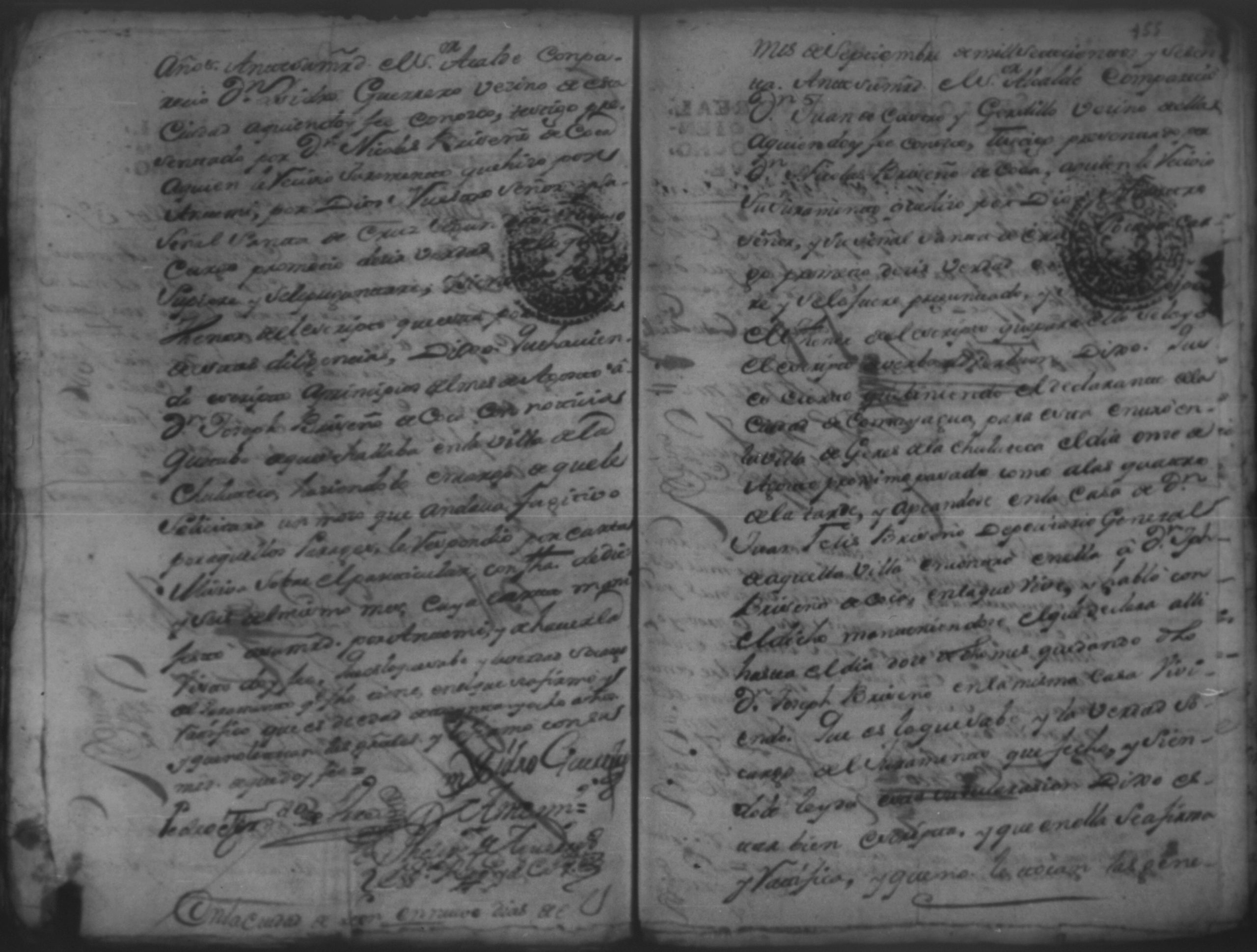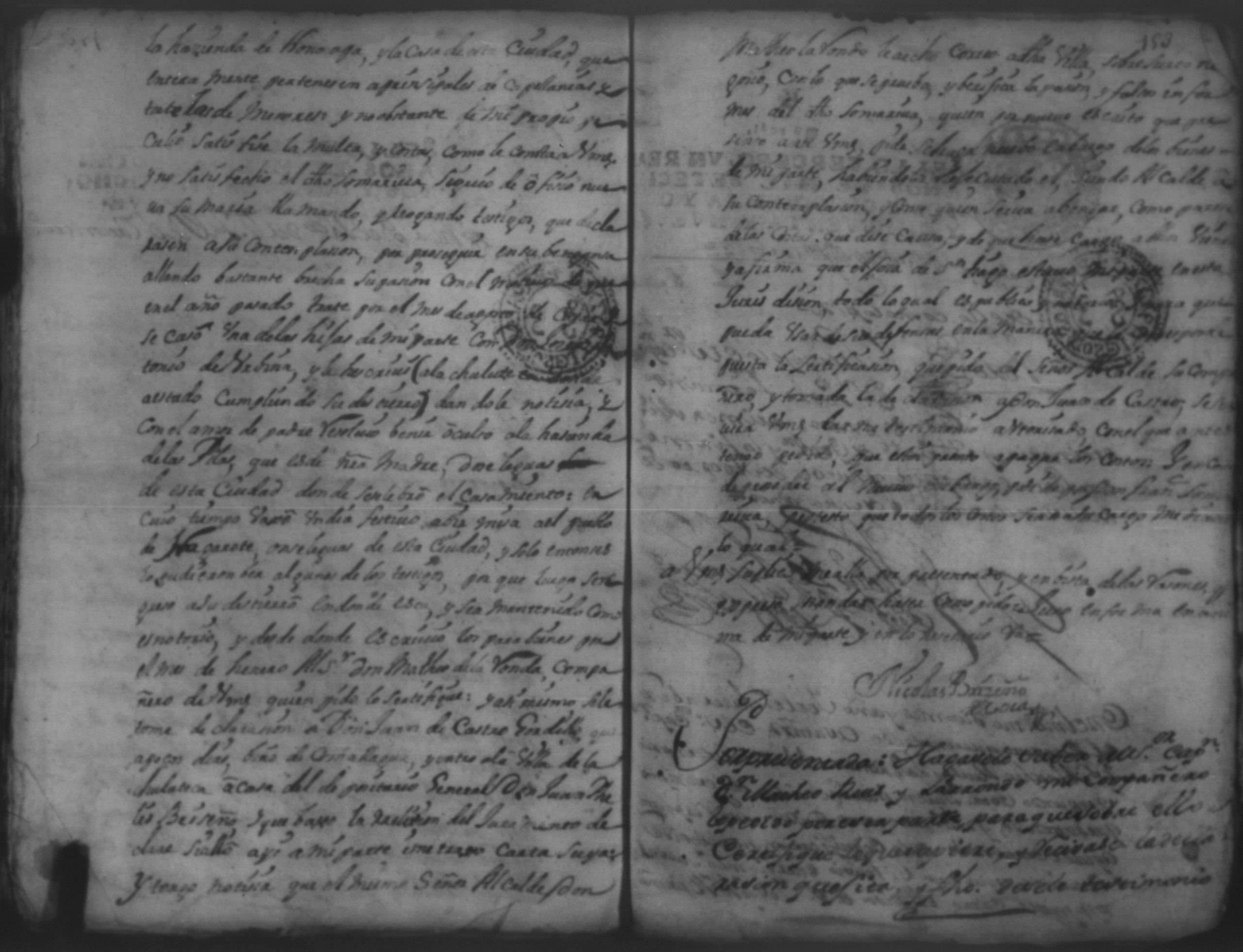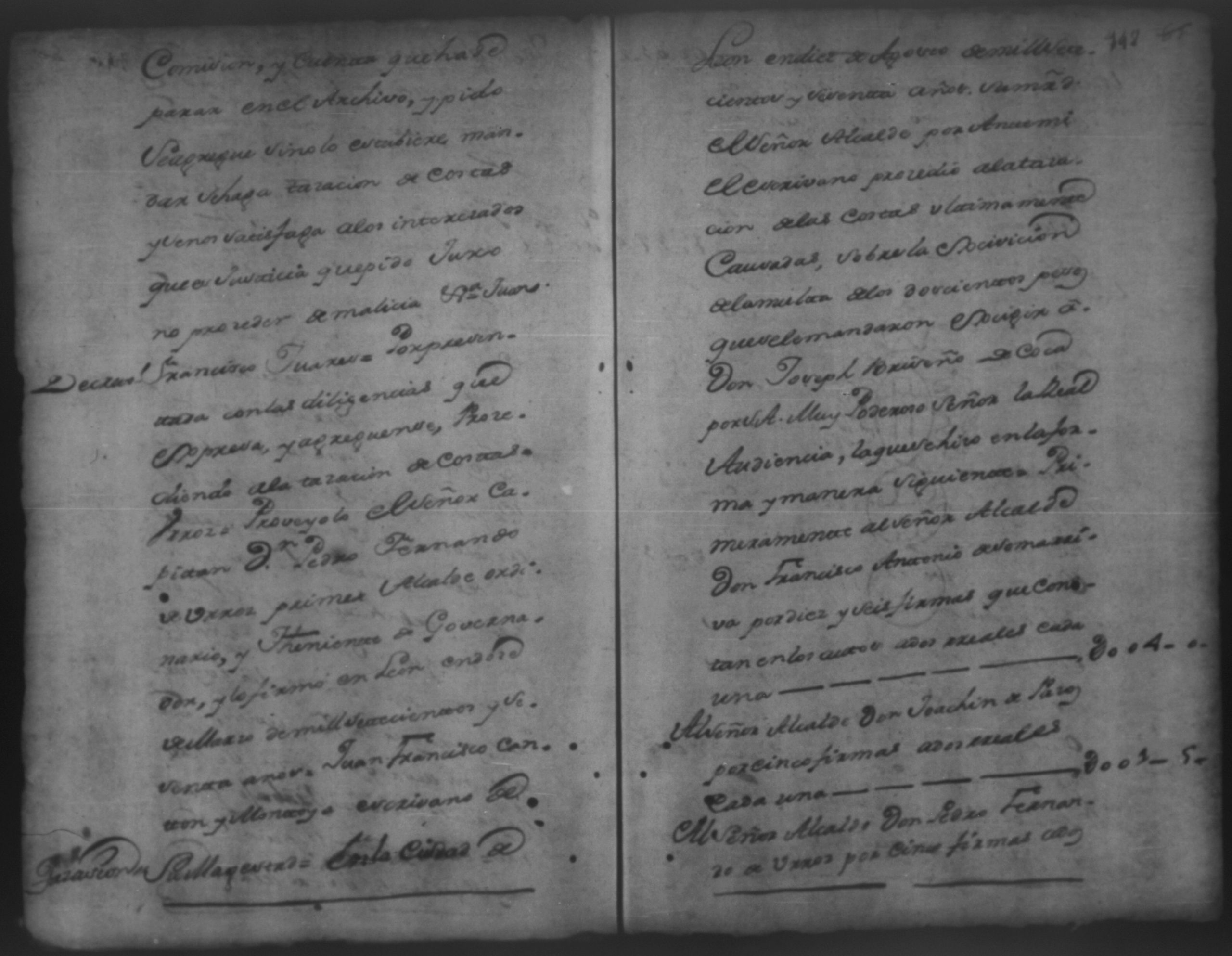 Temática: León. El Señor Capitan Don Francisco Antonio de [Somarriva] Primer Alcalde Ordinario y Theniente de Governador en ella y su jurisficcion dixo que por quanto ha llegado a su notisia que Don Nicolas Briseño de [Coca] esta pretendiendo sacar certificacion de algunos [designos] de esta ciudad.