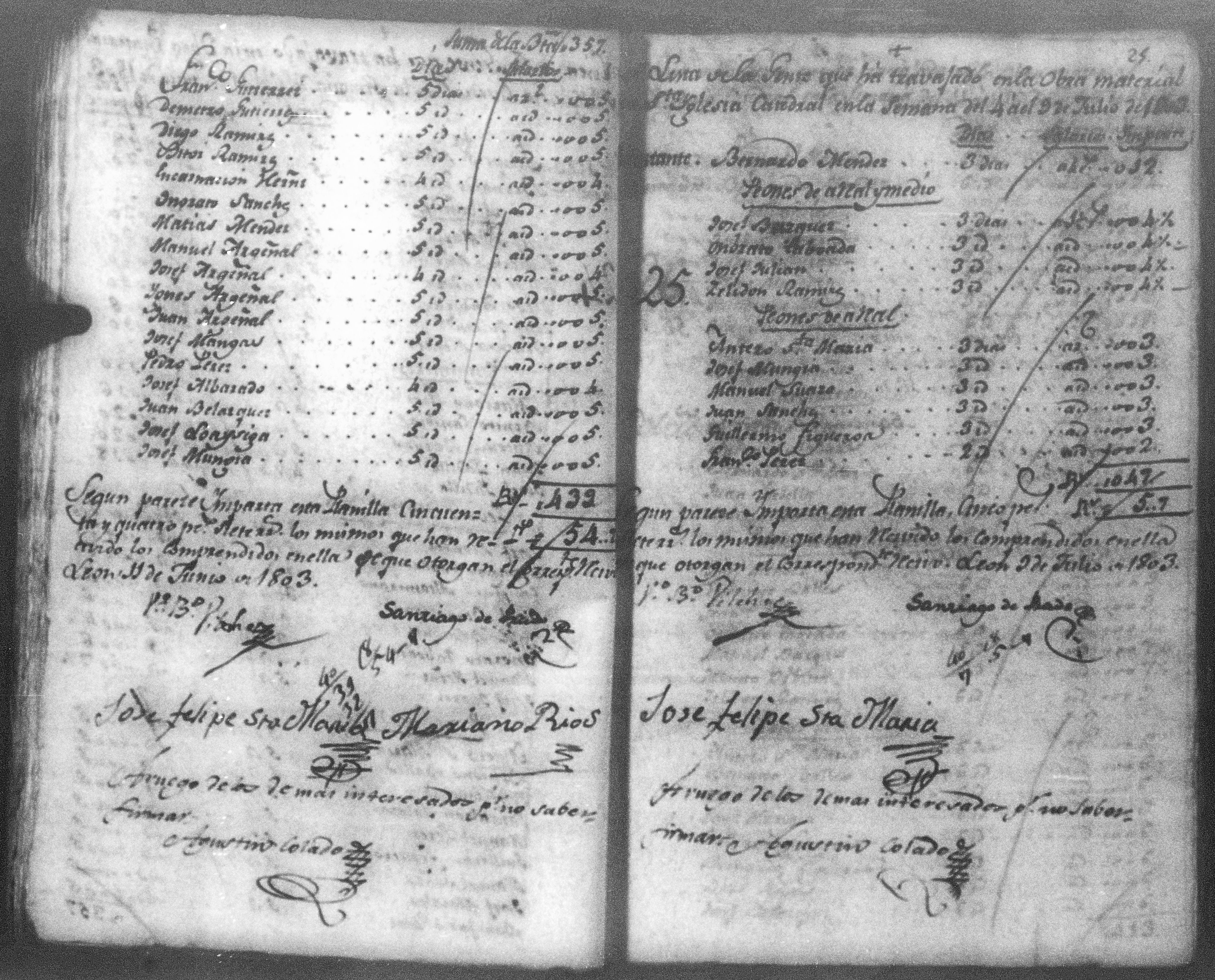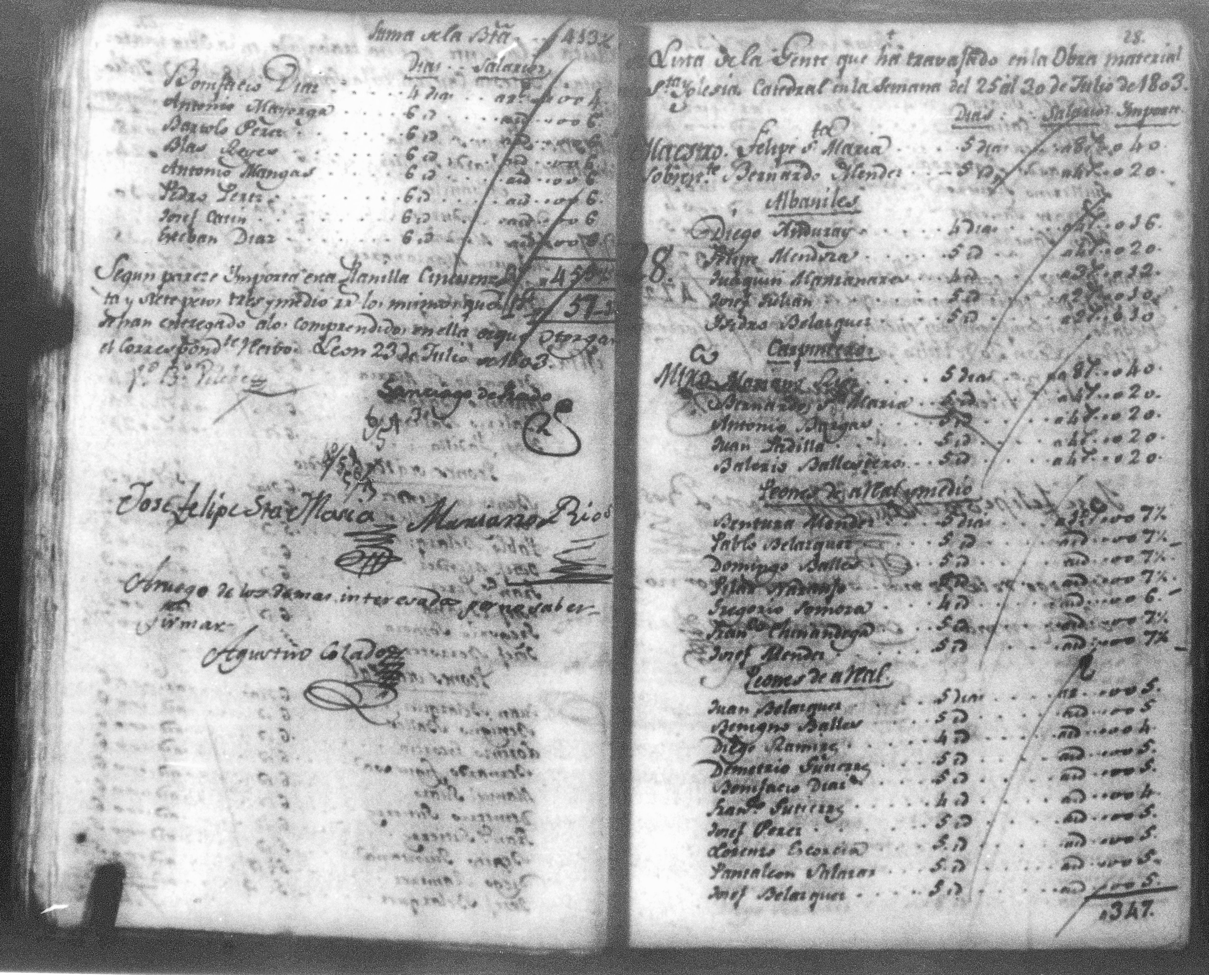 Temática: Año de 1803. Quaderno de setenta y nueve comprobantes, de cargo y data, que acompañan a la cuenta de la Fabrica material de la Santa Yglesia Catedral de Leon, correspondiente a dicho Año. Con 80 foxas utiles.