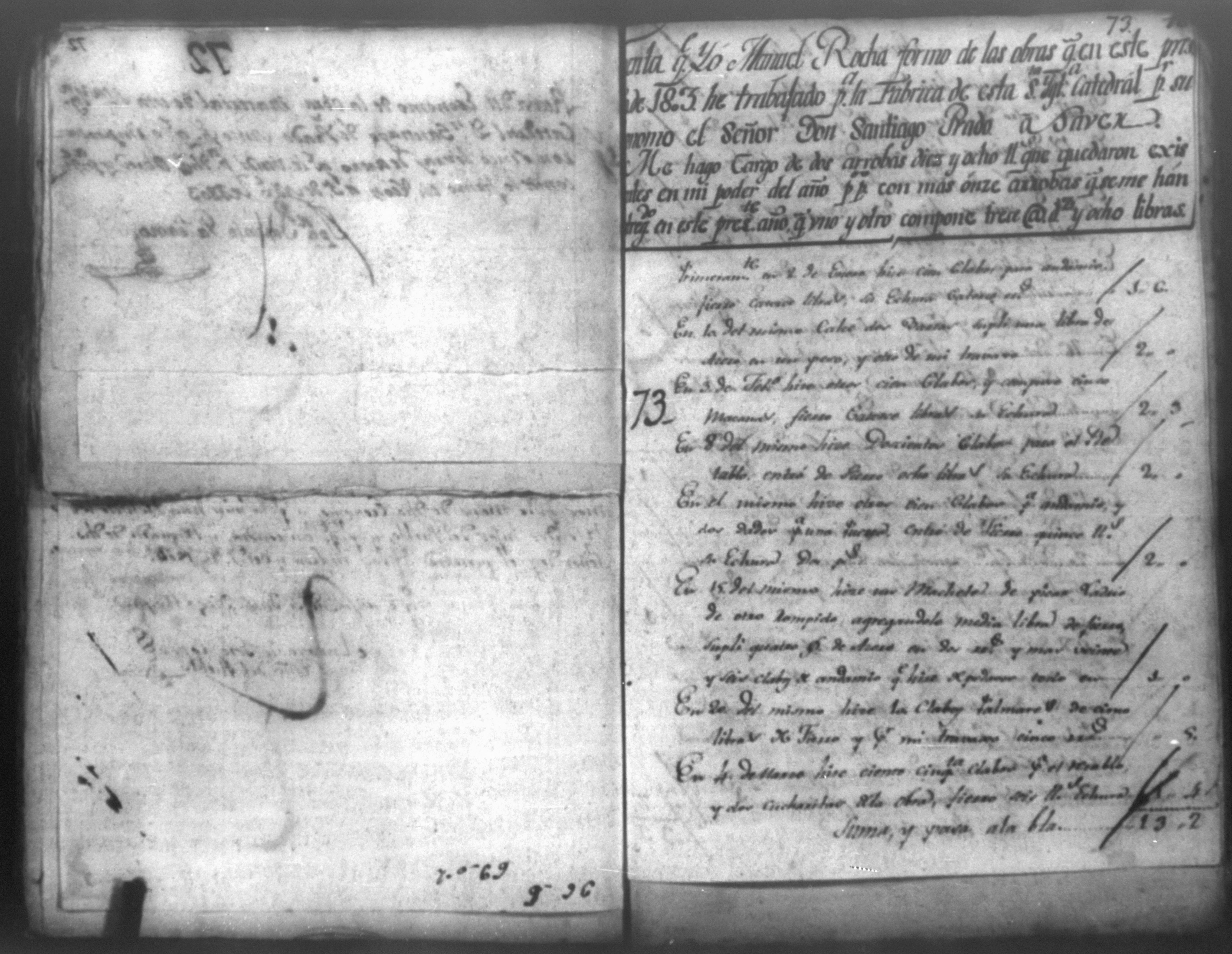 Temática: Año de 1803. Quaderno de setenta y nueve comprobantes, de cargo y data, que acompañan a la cuenta de la Fabrica material de la Santa Yglesia Catedral de Leon, correspondiente a dicho Año. Con 80 foxas utiles.