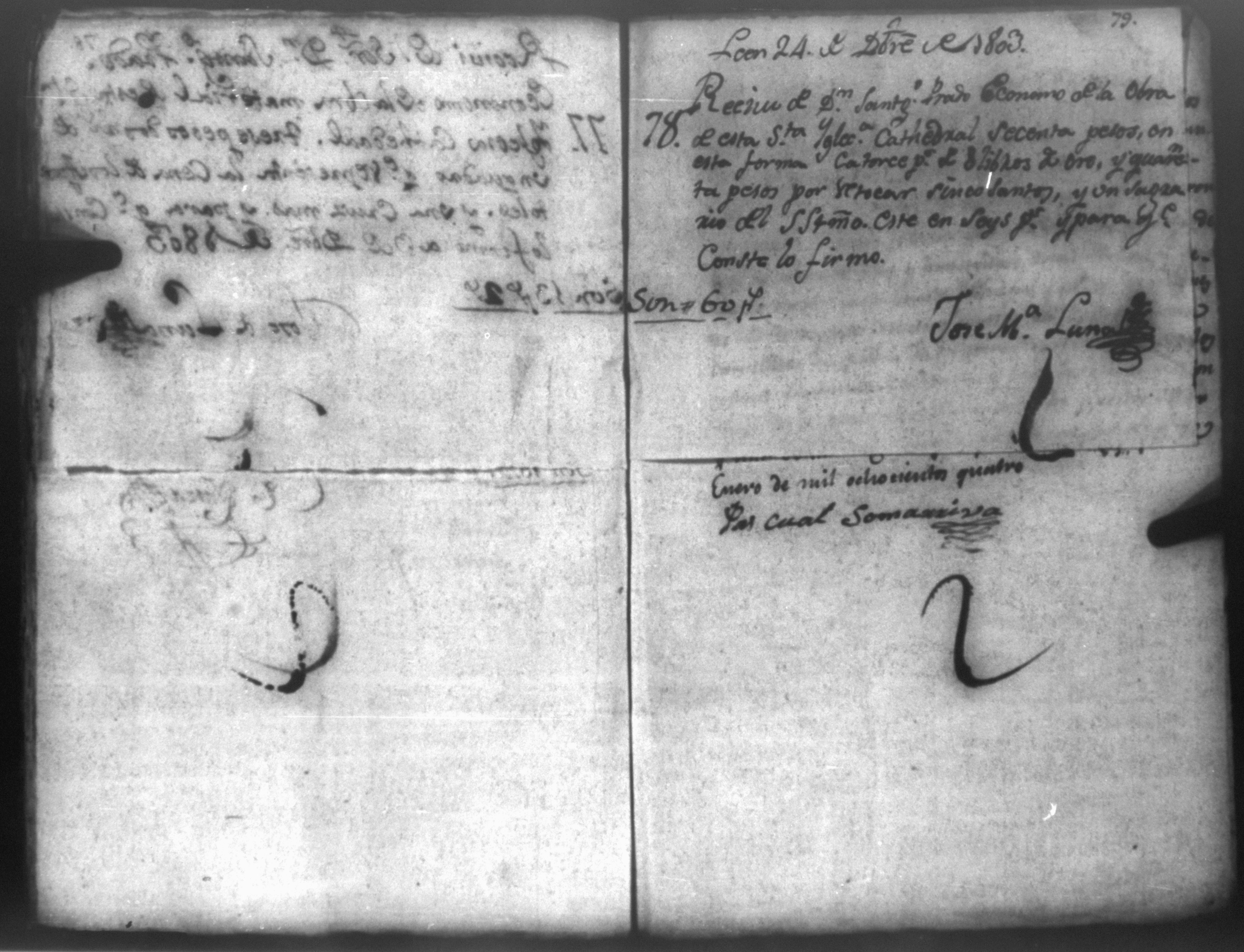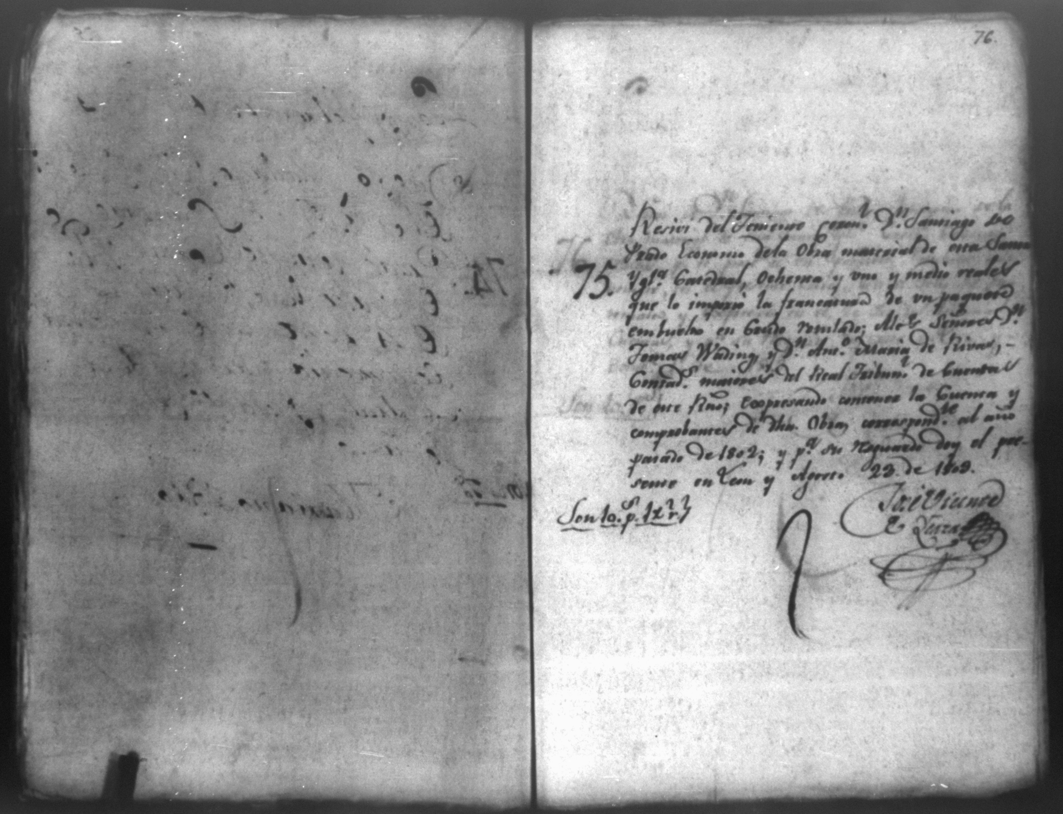 Temática: Año de 1803. Quaderno de setenta y nueve comprobantes, de cargo y data, que acompañan a la cuenta de la Fabrica material de la Santa Yglesia Catedral de Leon, correspondiente a dicho Año. Con 80 foxas utiles.