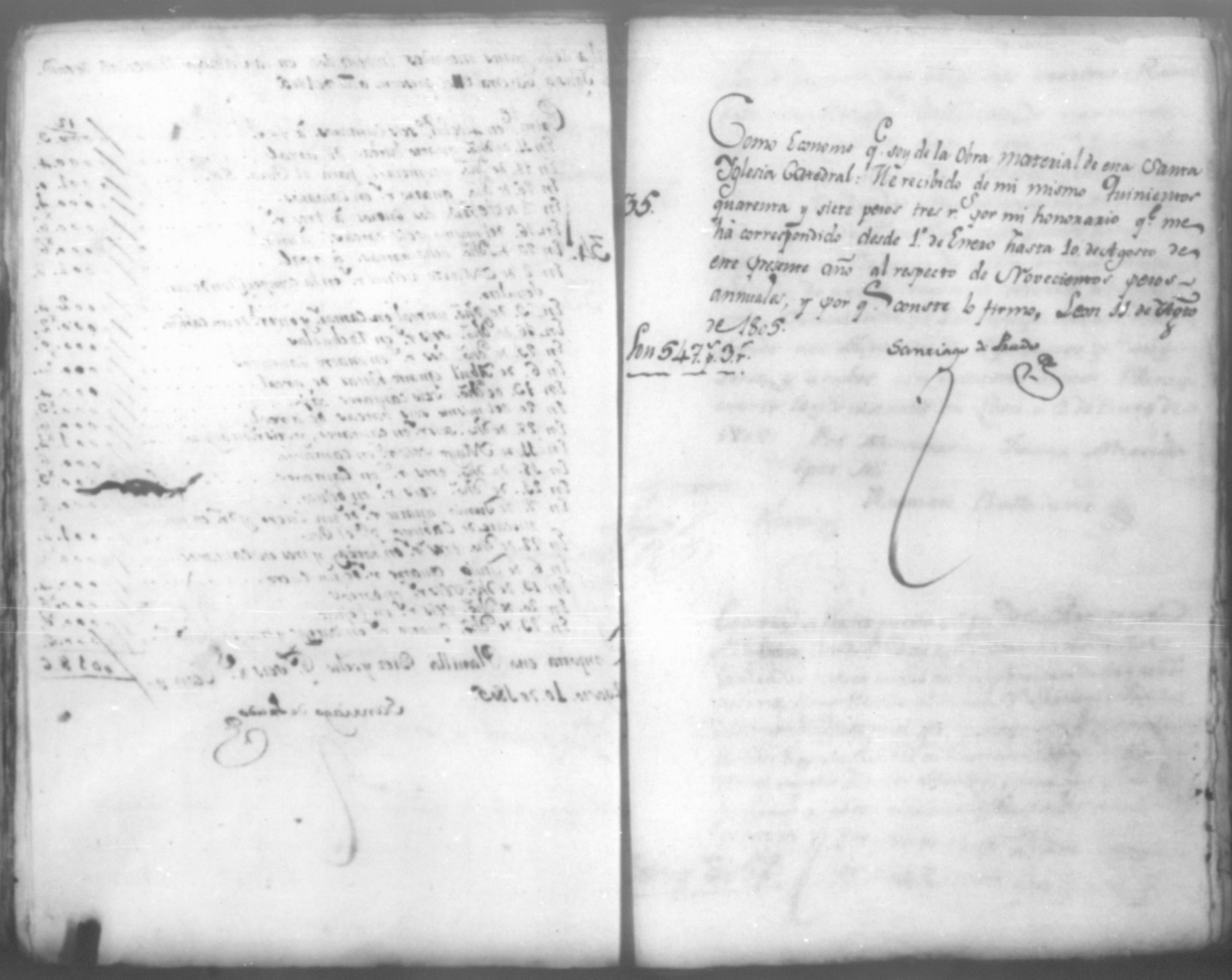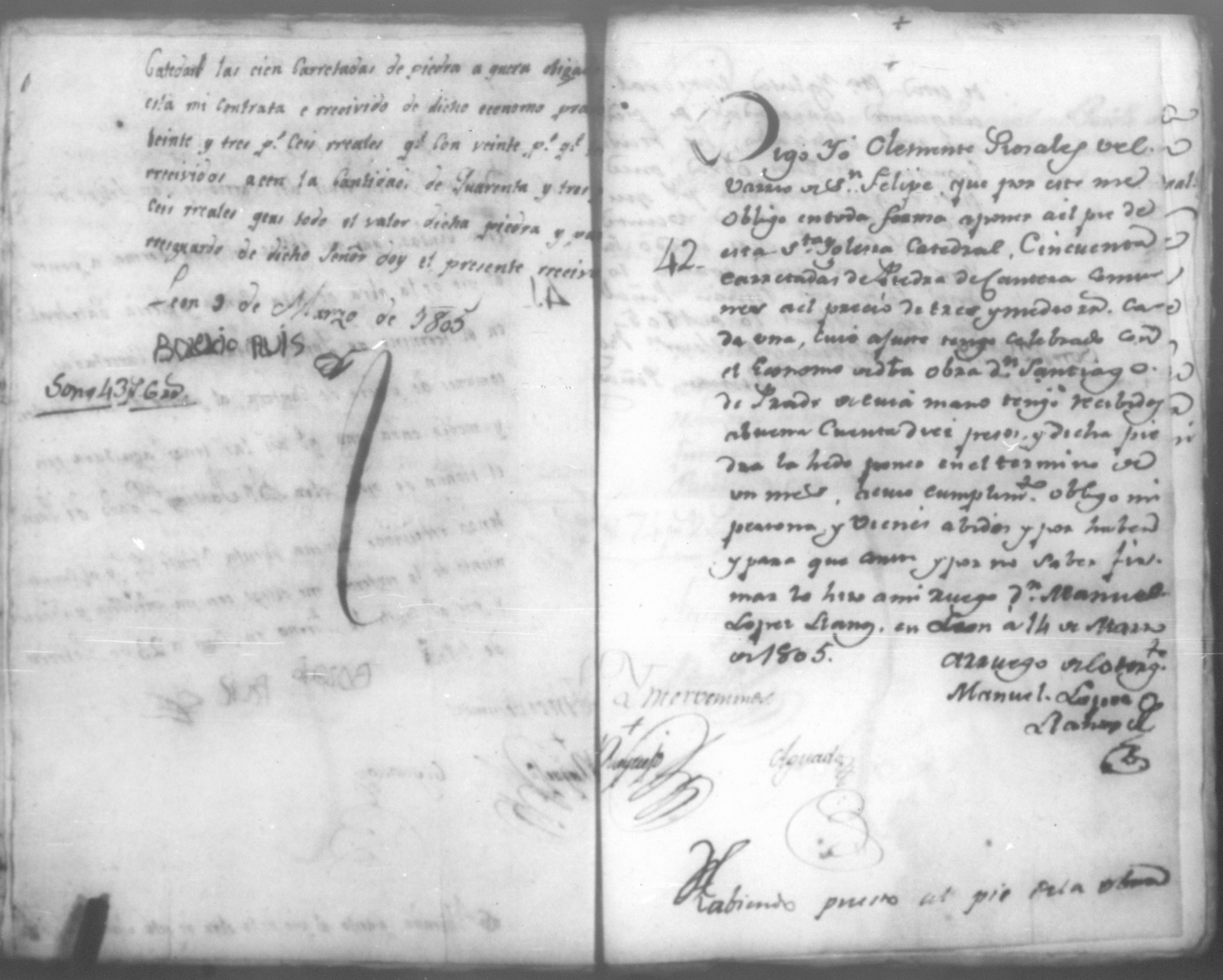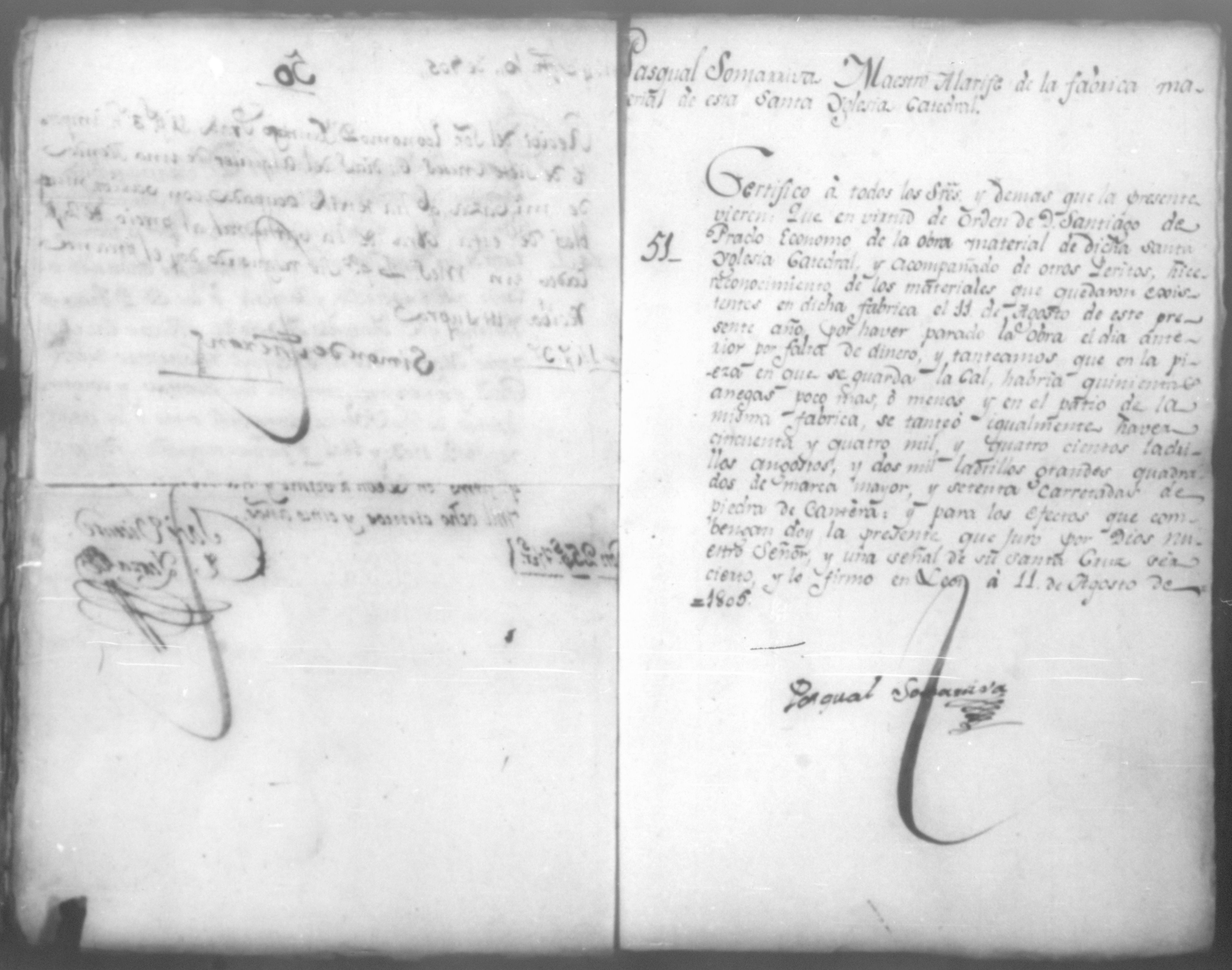 Temática: Año de 1805. Cuaderno que contiene cincuenta y un comprobantes de cargo y data que acompañan a la cuenta de la obra material de la Santa Yglesia Catedral de León correspondiente a dicho año.