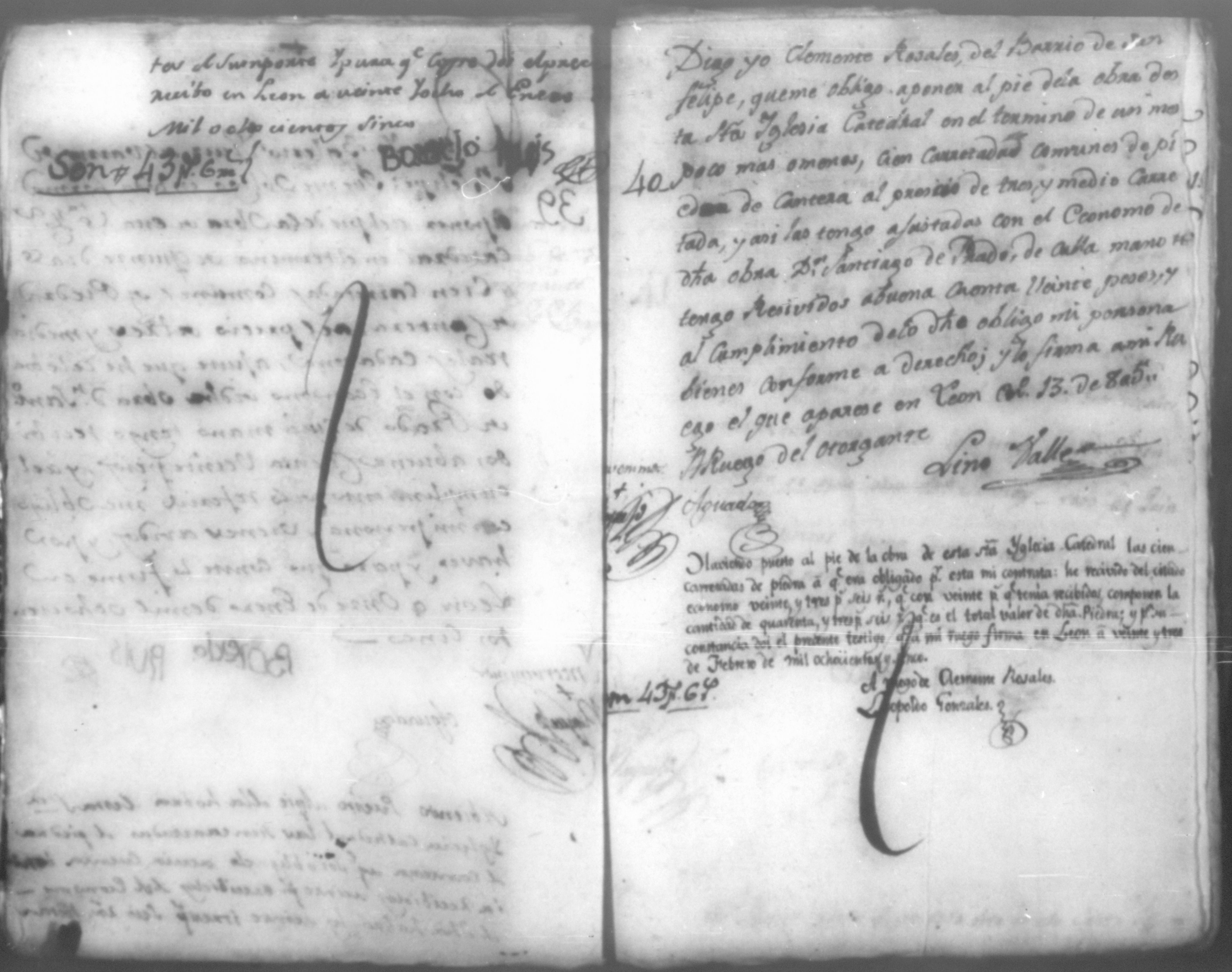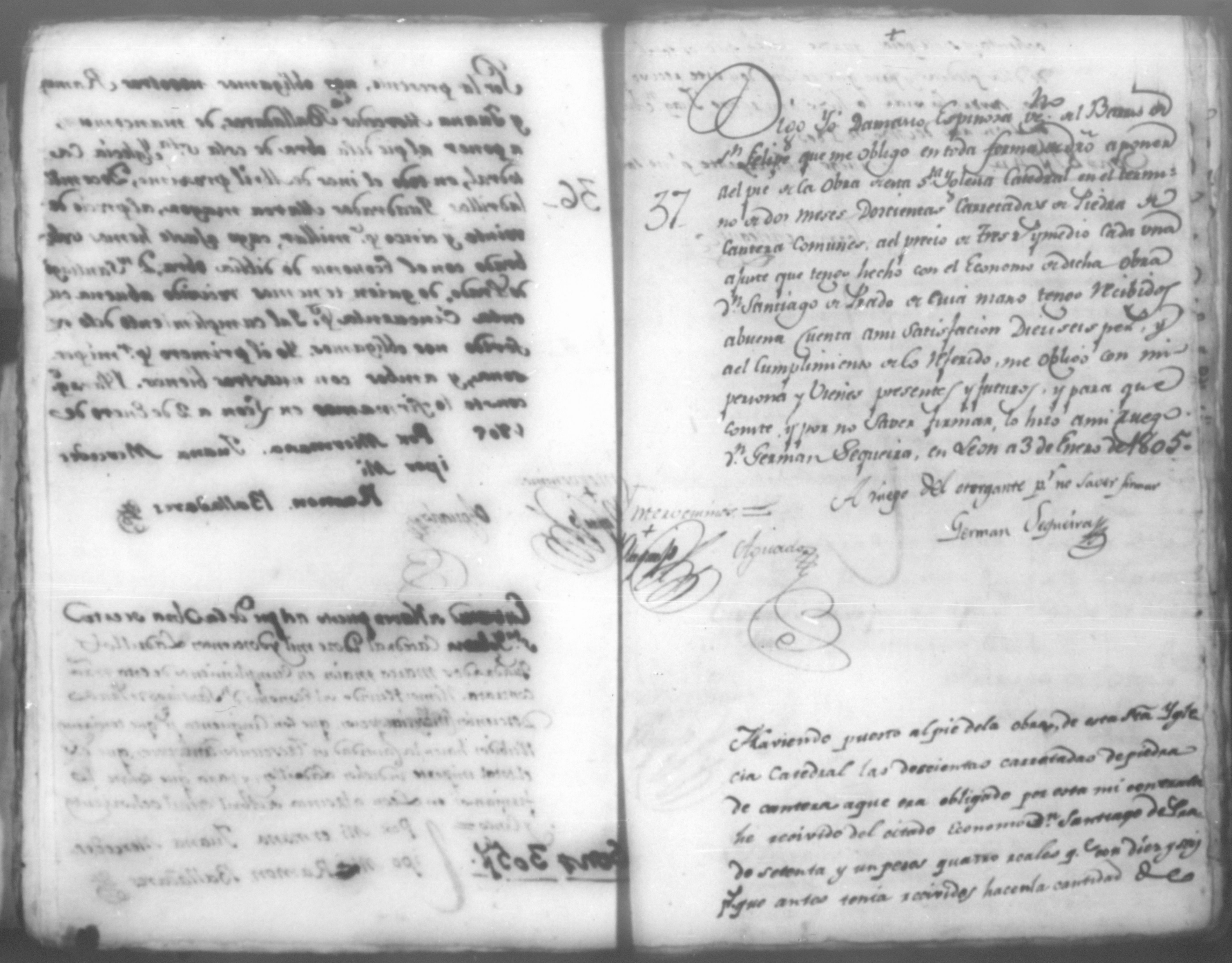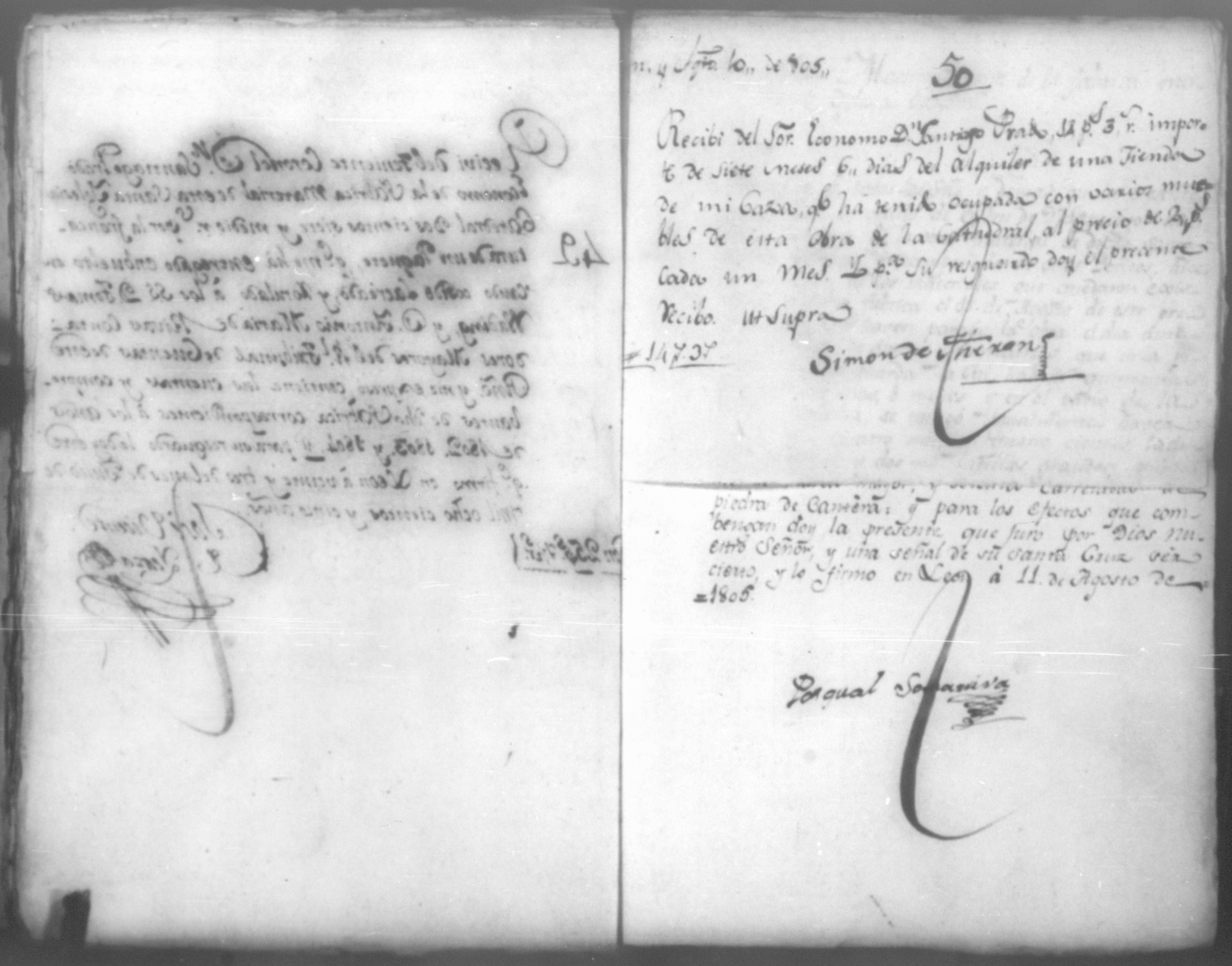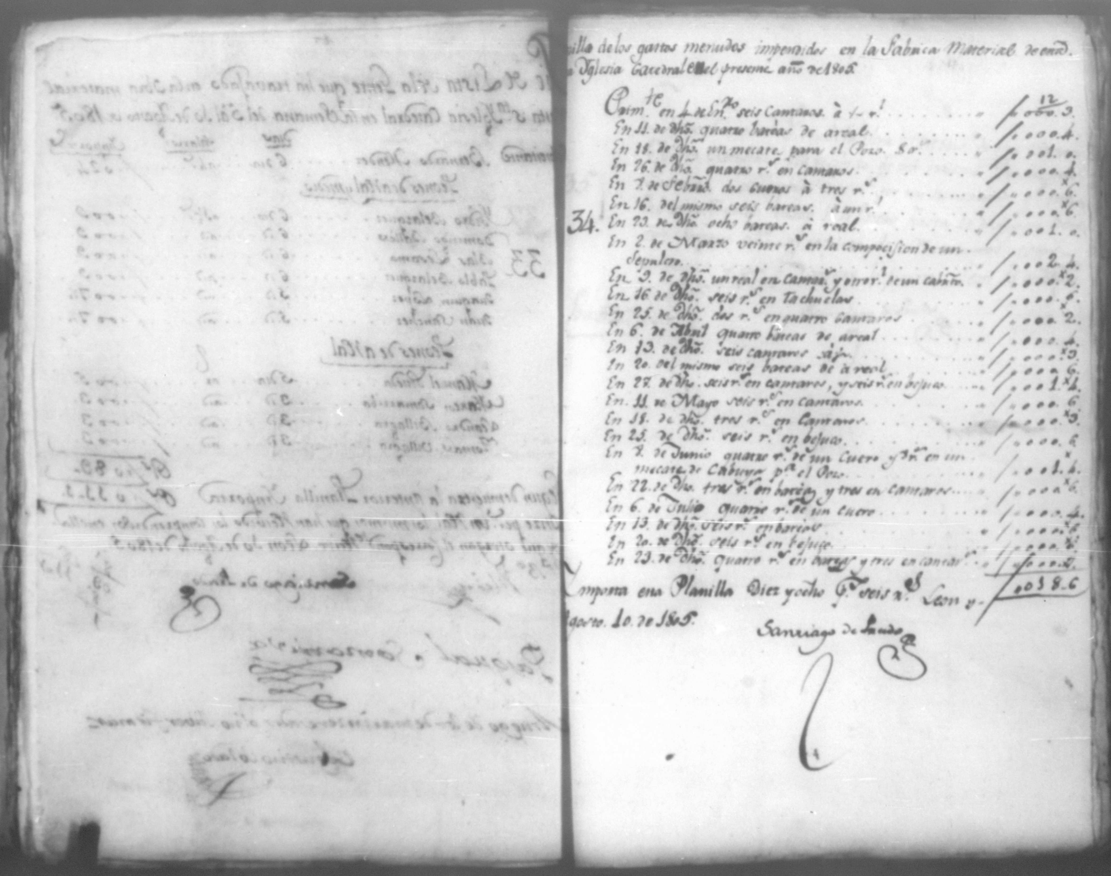 Temática: Año de 1805. Cuaderno que contiene cincuenta y un comprobantes de cargo y data que acompañan a la cuenta de la obra material de la Santa Yglesia Catedral de León correspondiente a dicho año.