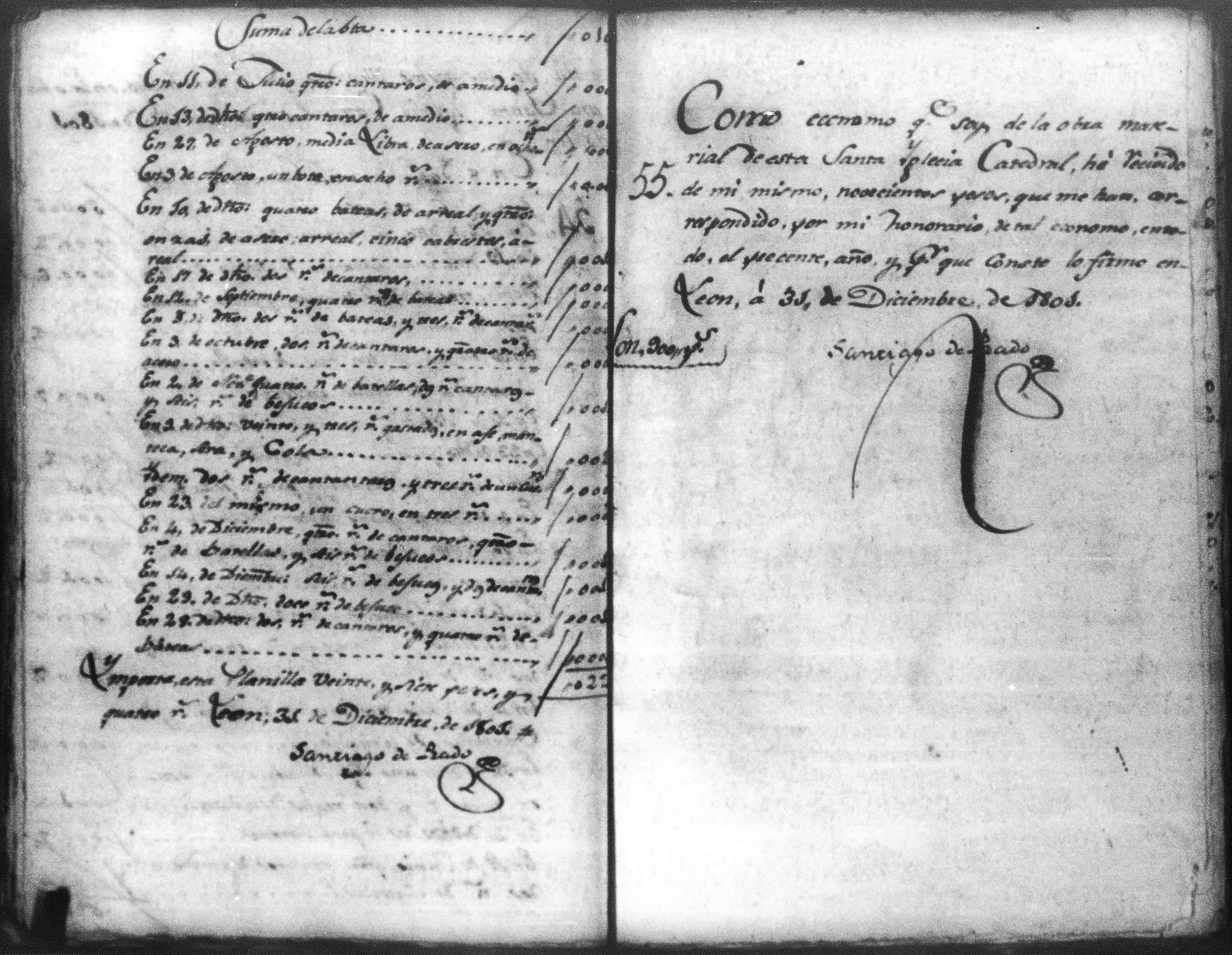 Cuaderno de comprobantes y cuenta de la obra de la Iglesia Catedral. León, 1801