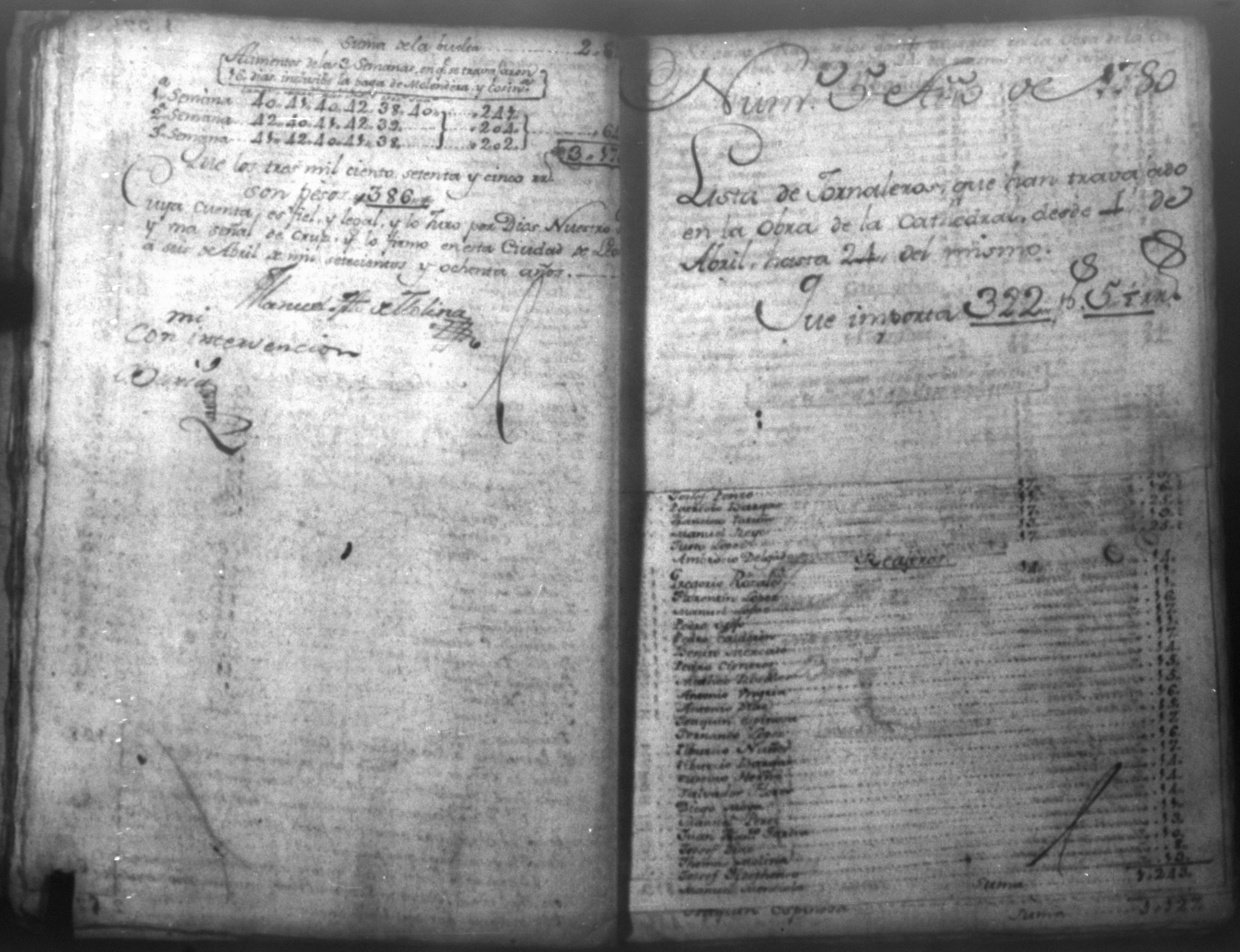 Temática: Cuaderno que comprehende diecisiete listas de los oficiales y jornaleros que en el año que arriba se cita se mantuvieron trabajando en la obra de esta Santa Iglesia Cathedral.