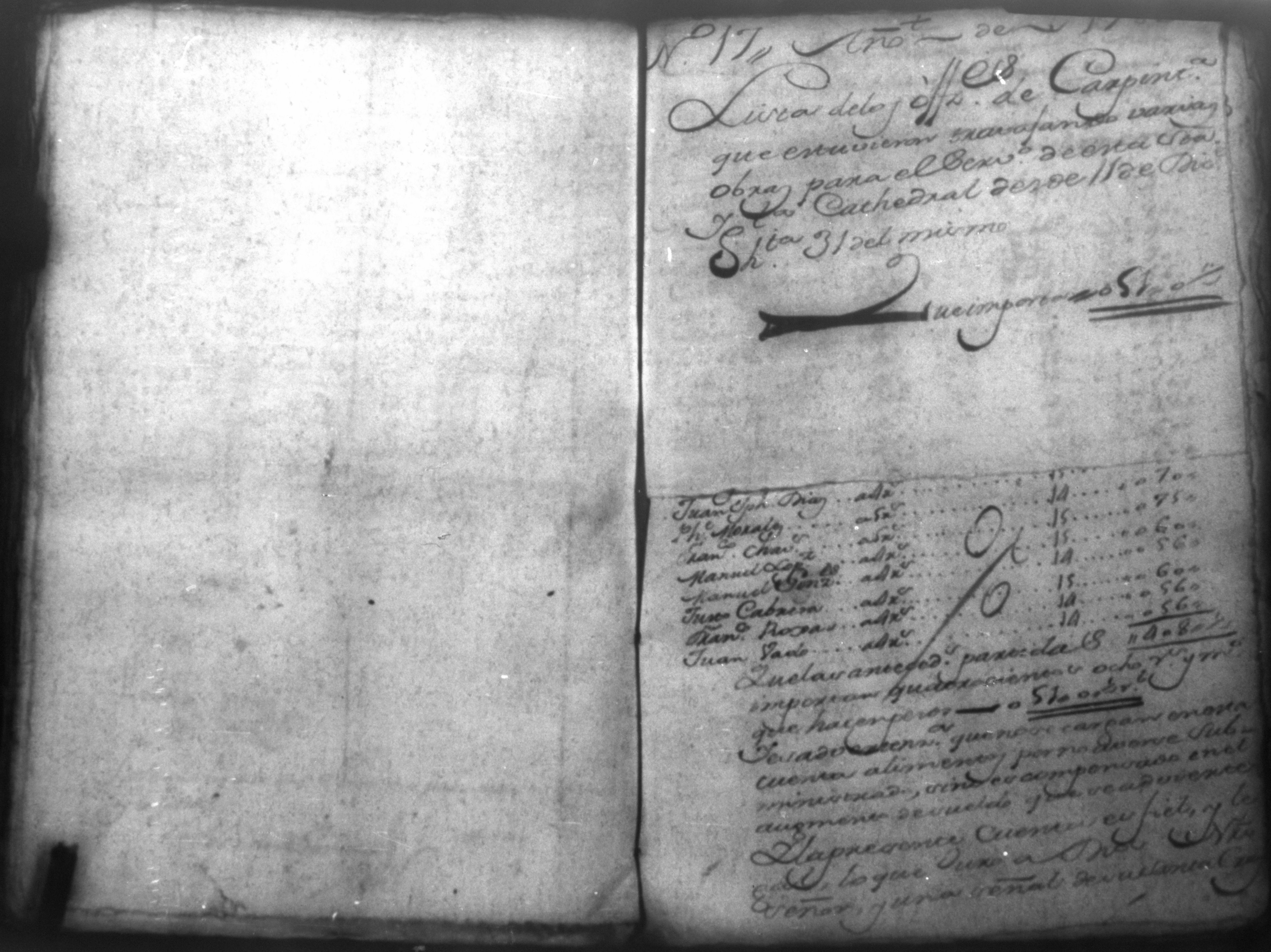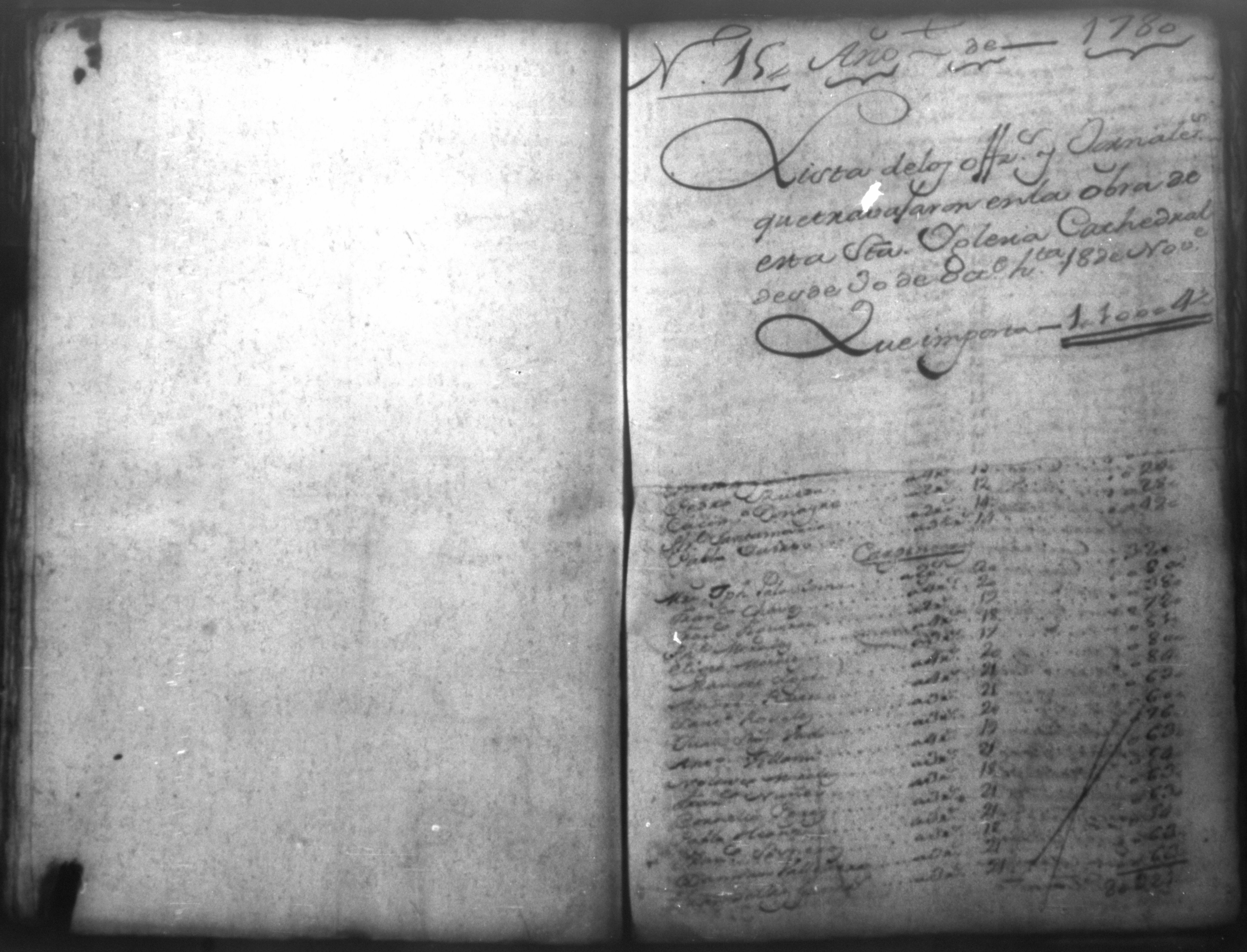 Cuaderno de oficiales y jornaleros de la obra de esta Santa Yglesia Cathedral, Nicaragua 1780
