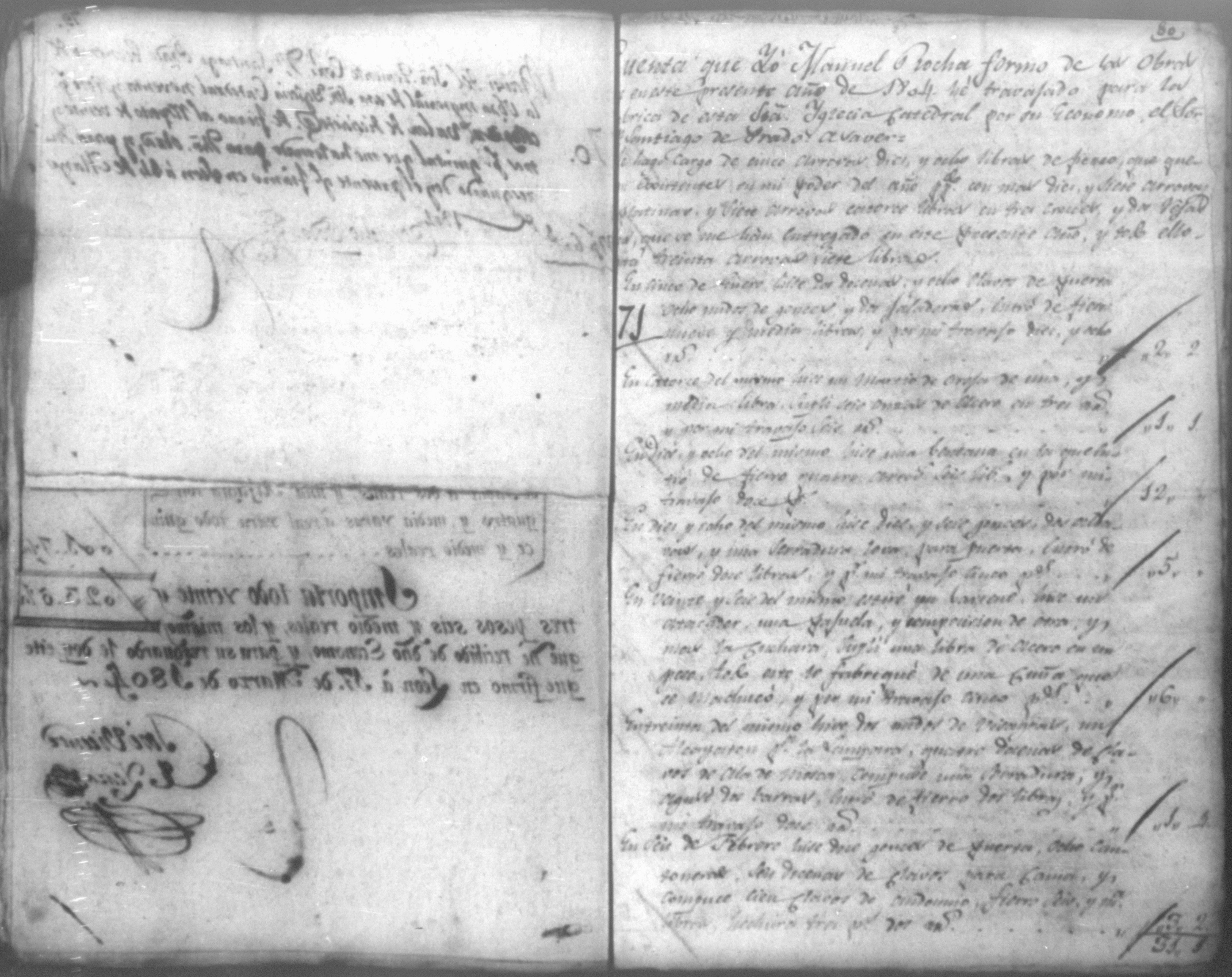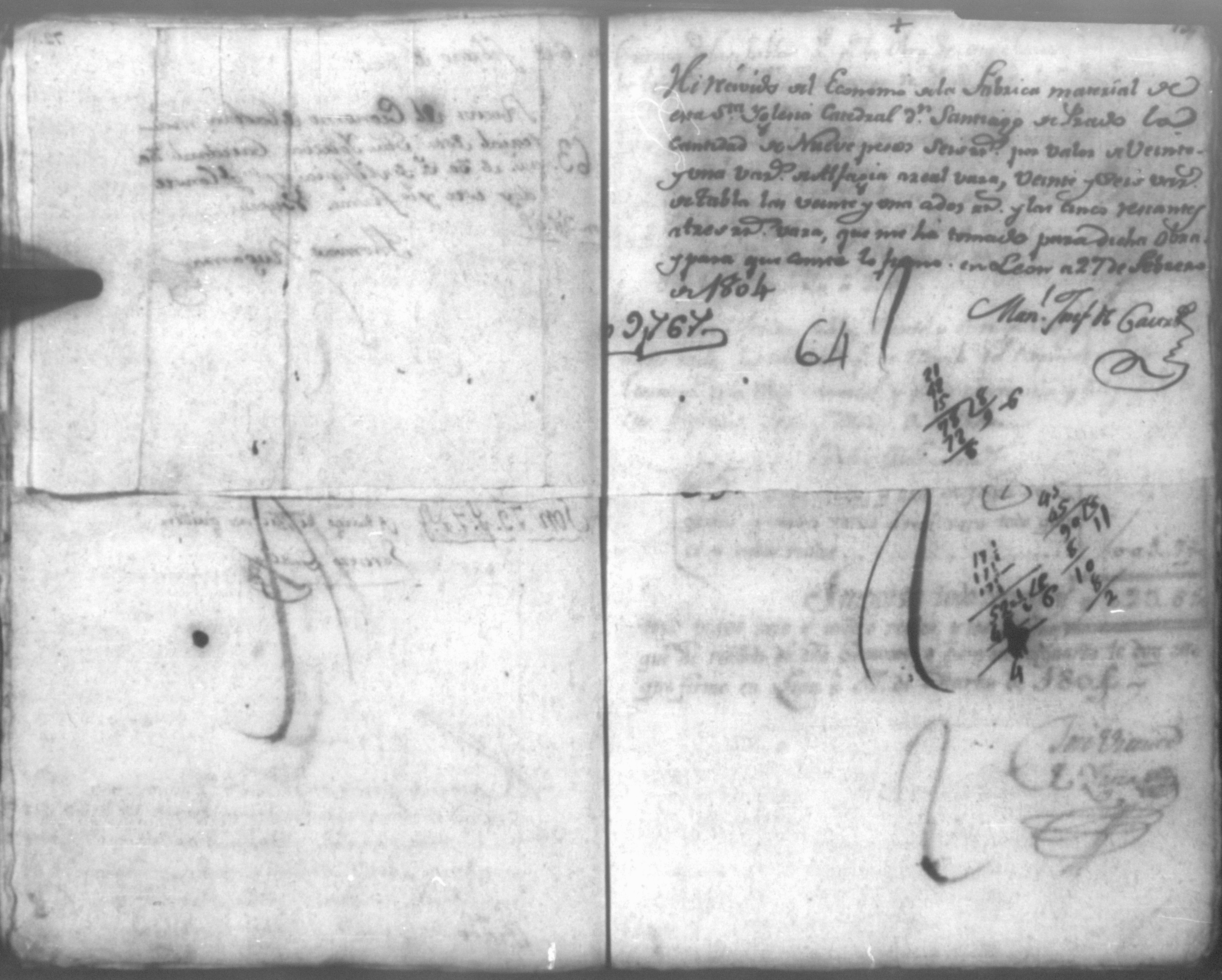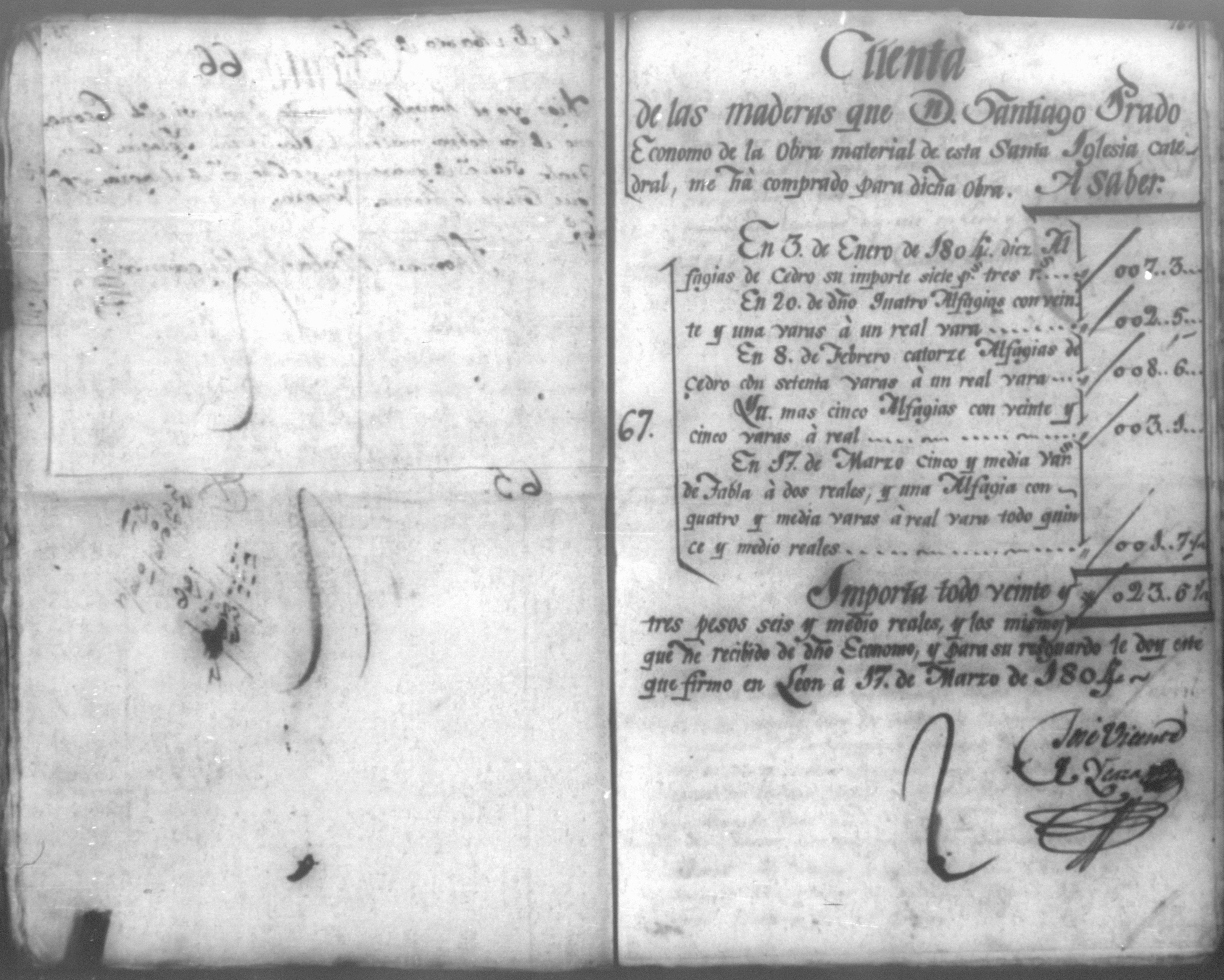 Temática: Año de 1804. Cuaderno de ochenta y un comprobantes de cargo y data que acompañan a la cuenta de la fabrica material de la Santa Iglesia Catedral de León que se remite al Real Tribunal de este reino correspondiente a este año. Con 91 foxas útiles