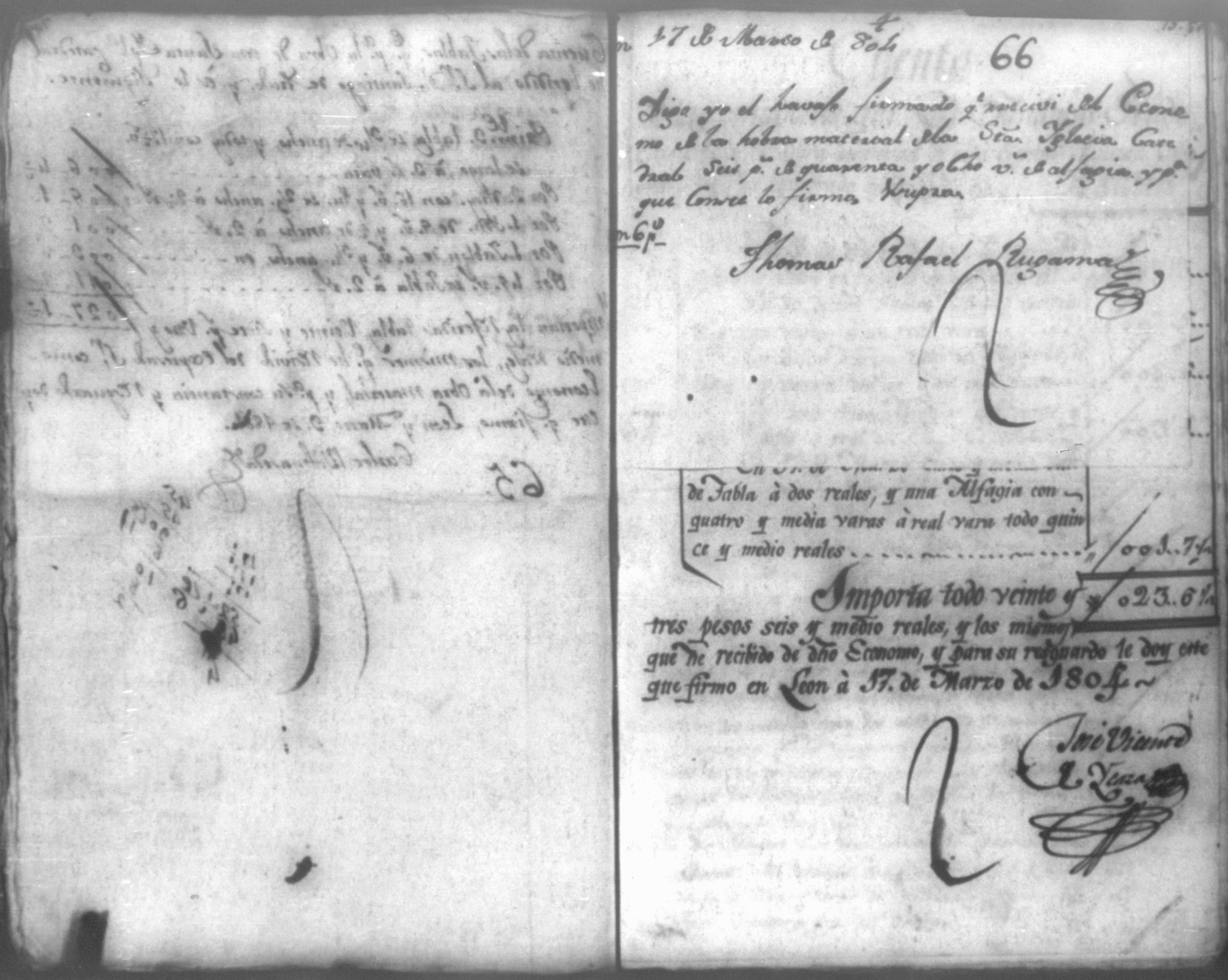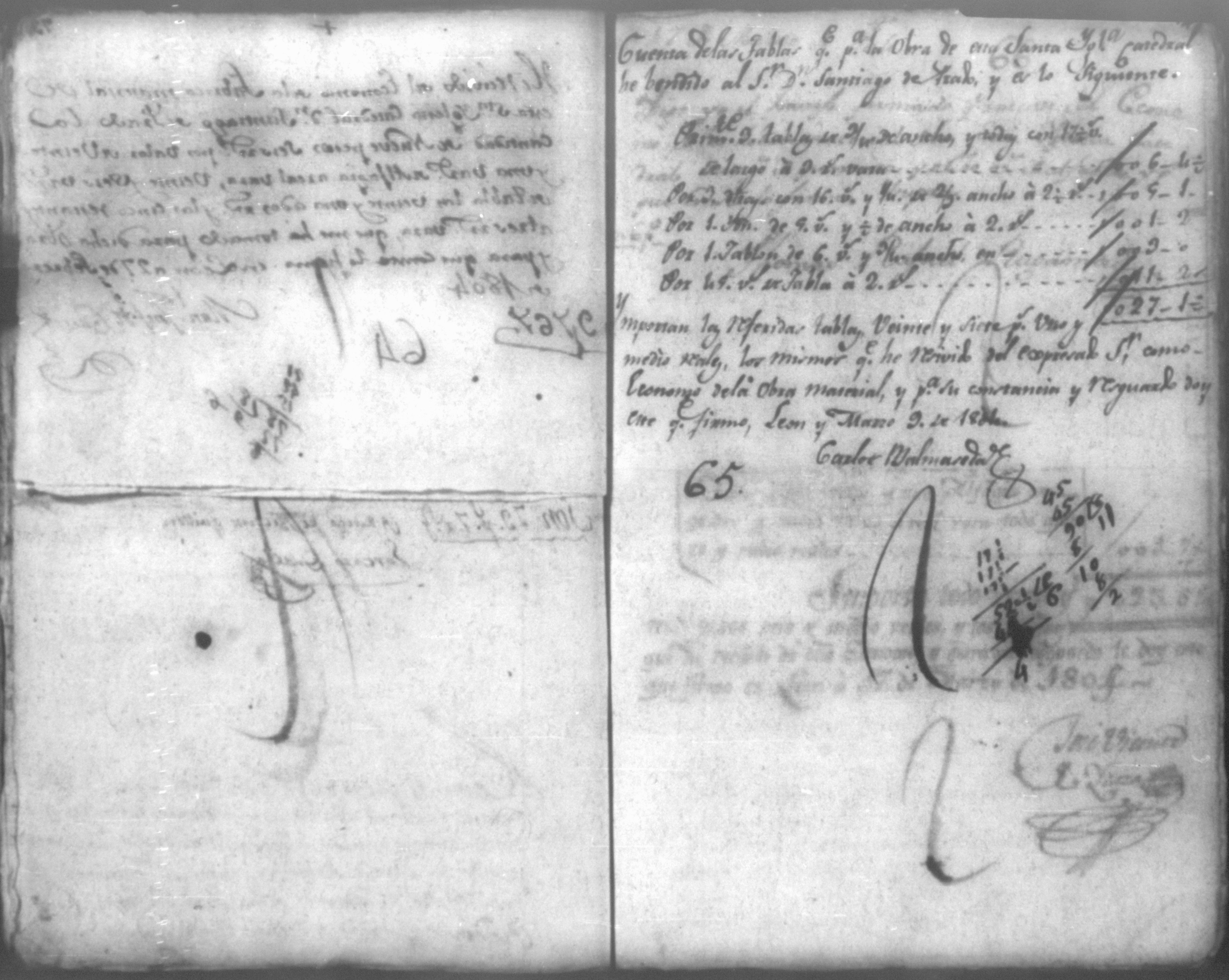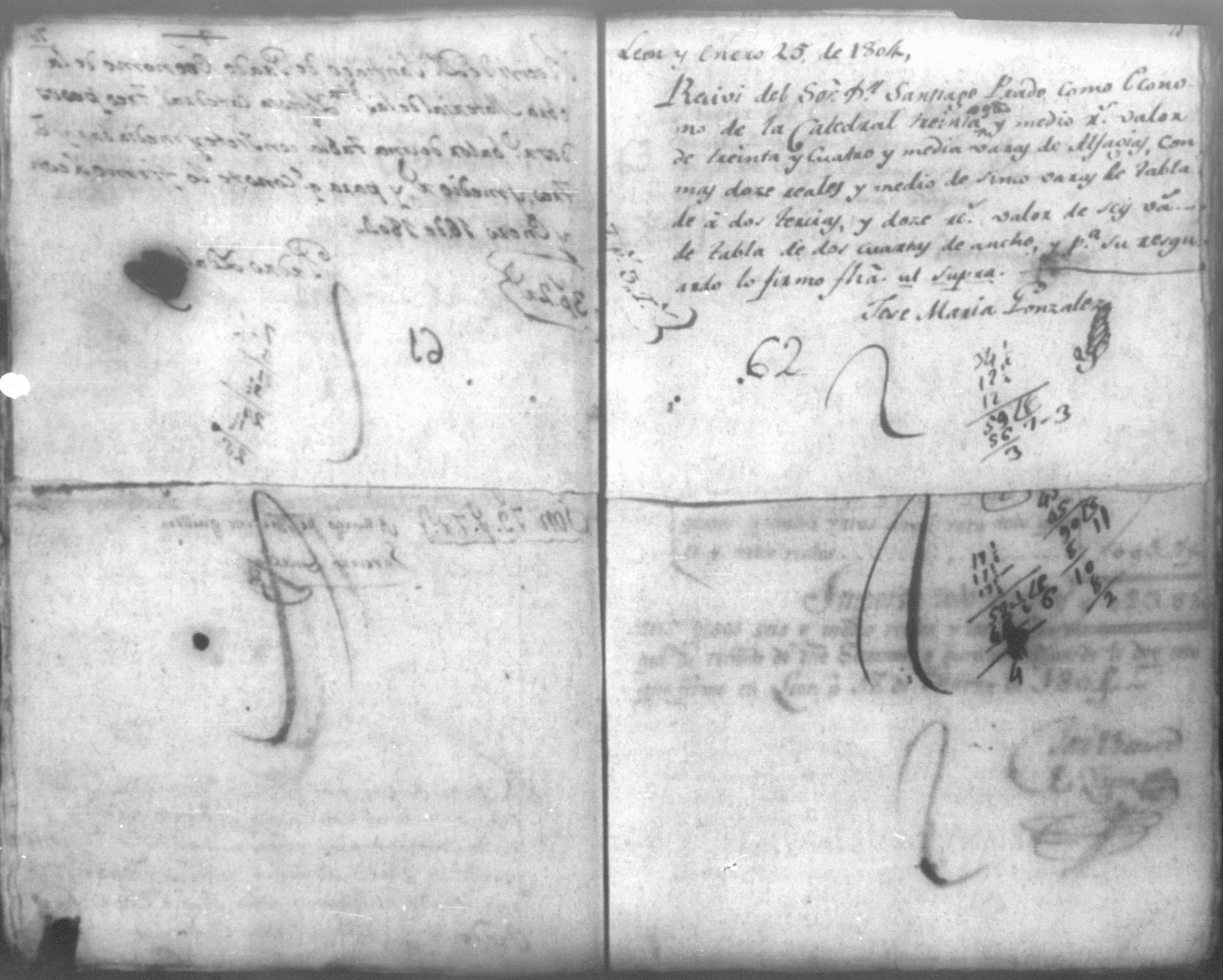 Temática: Año de 1804. Cuaderno de ochenta y un comprobantes de cargo y data que acompañan a la cuenta de la fabrica material de la Santa Iglesia Catedral de León que se remite al Real Tribunal de este reino correspondiente a este año. Con 91 foxas útiles