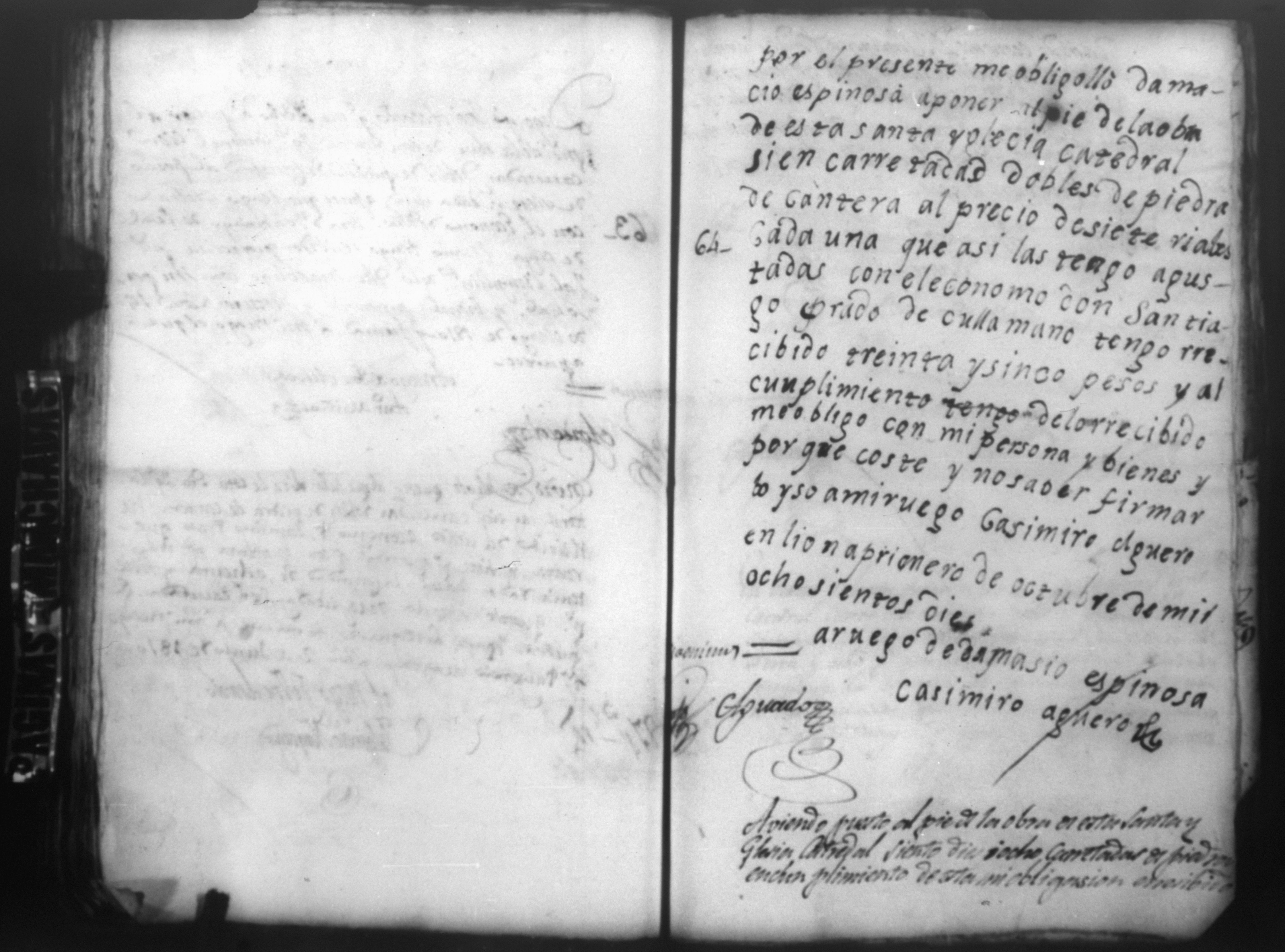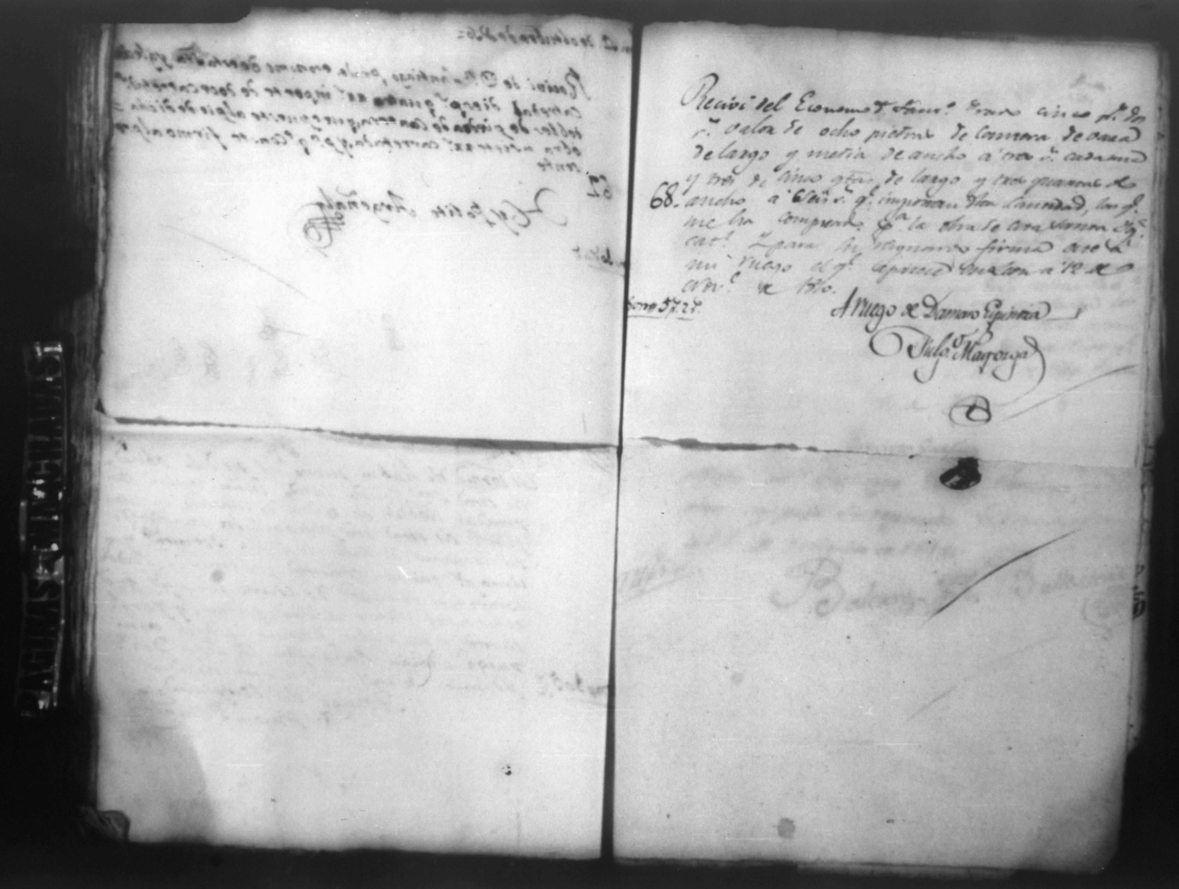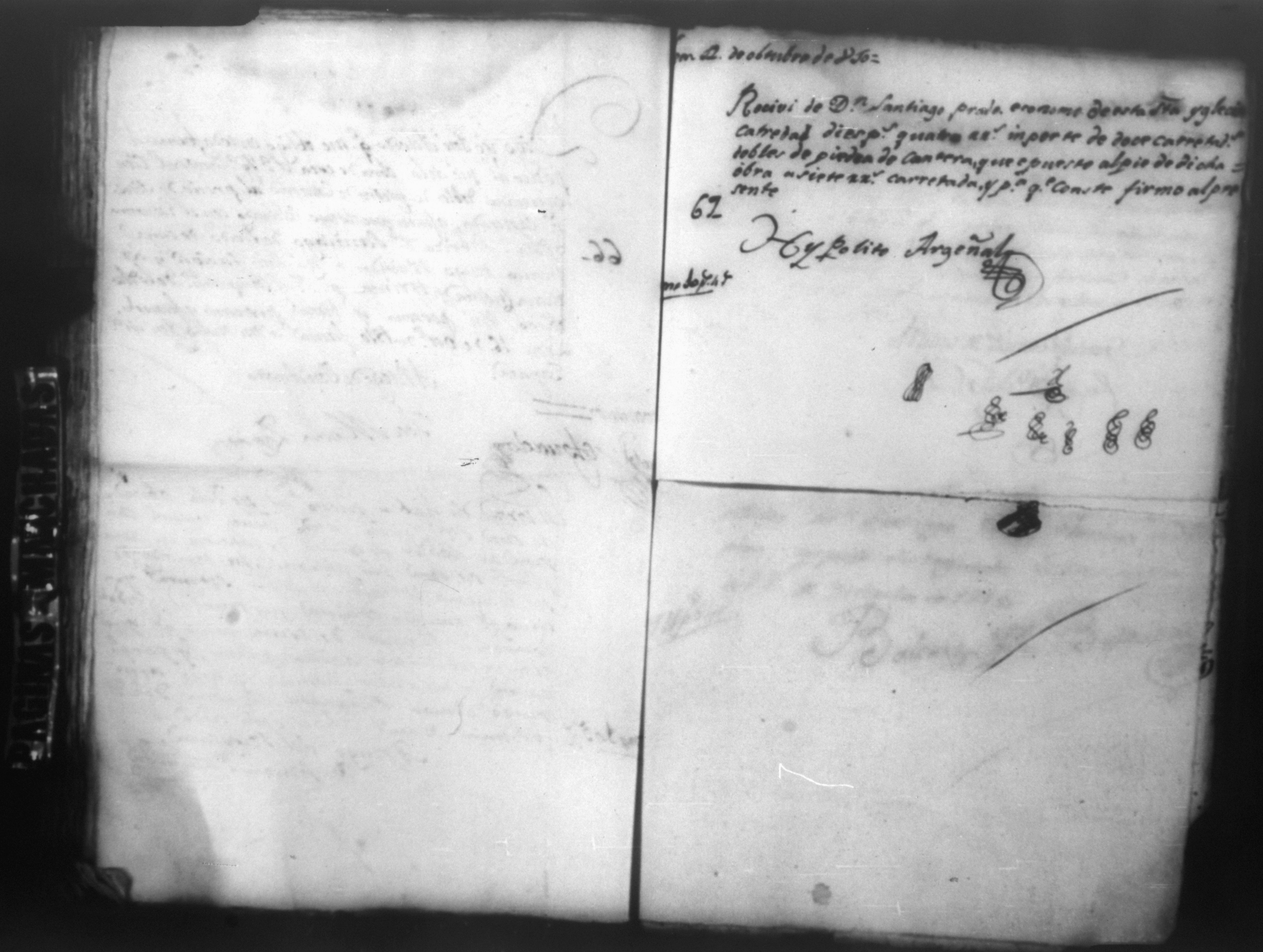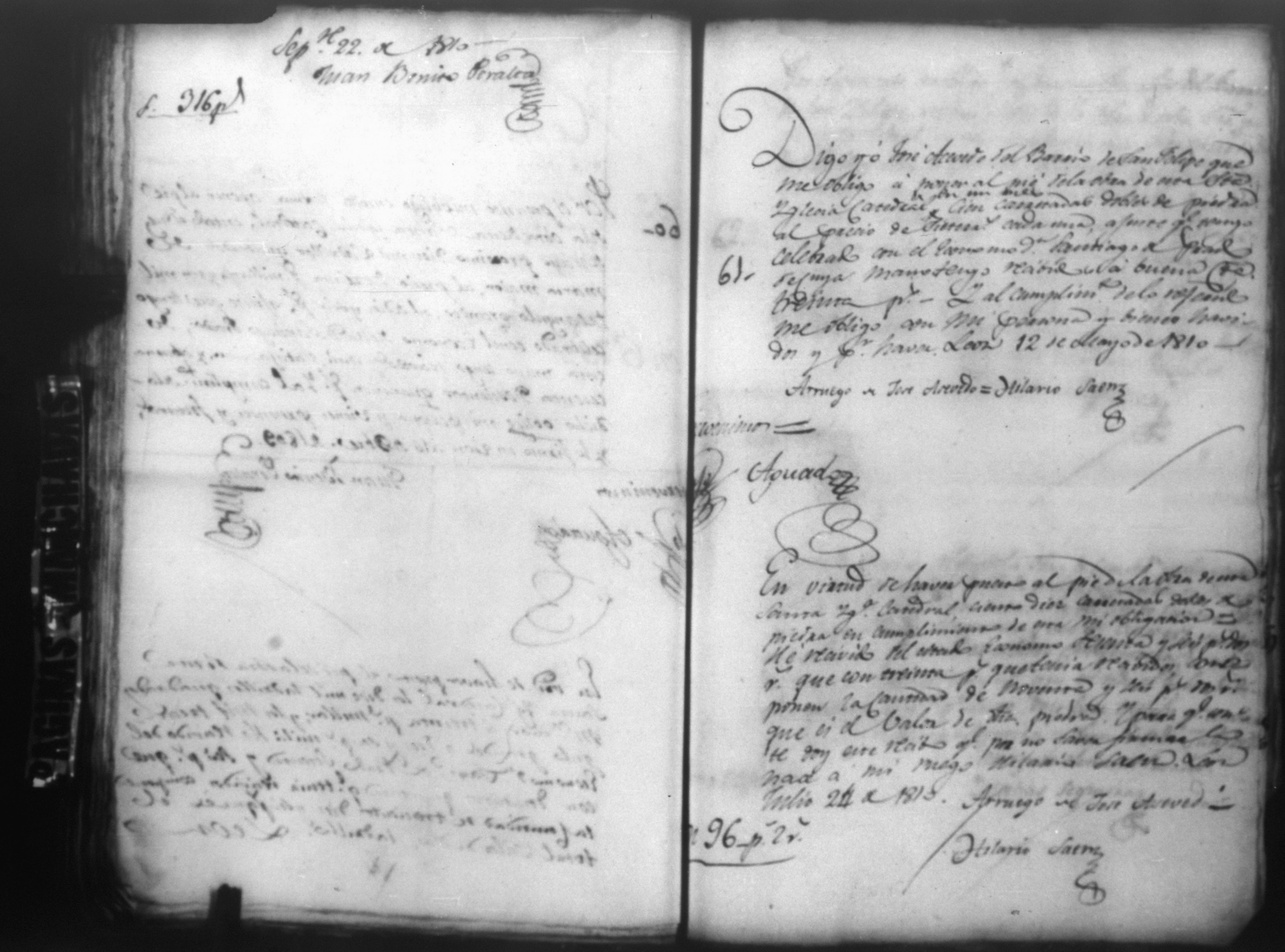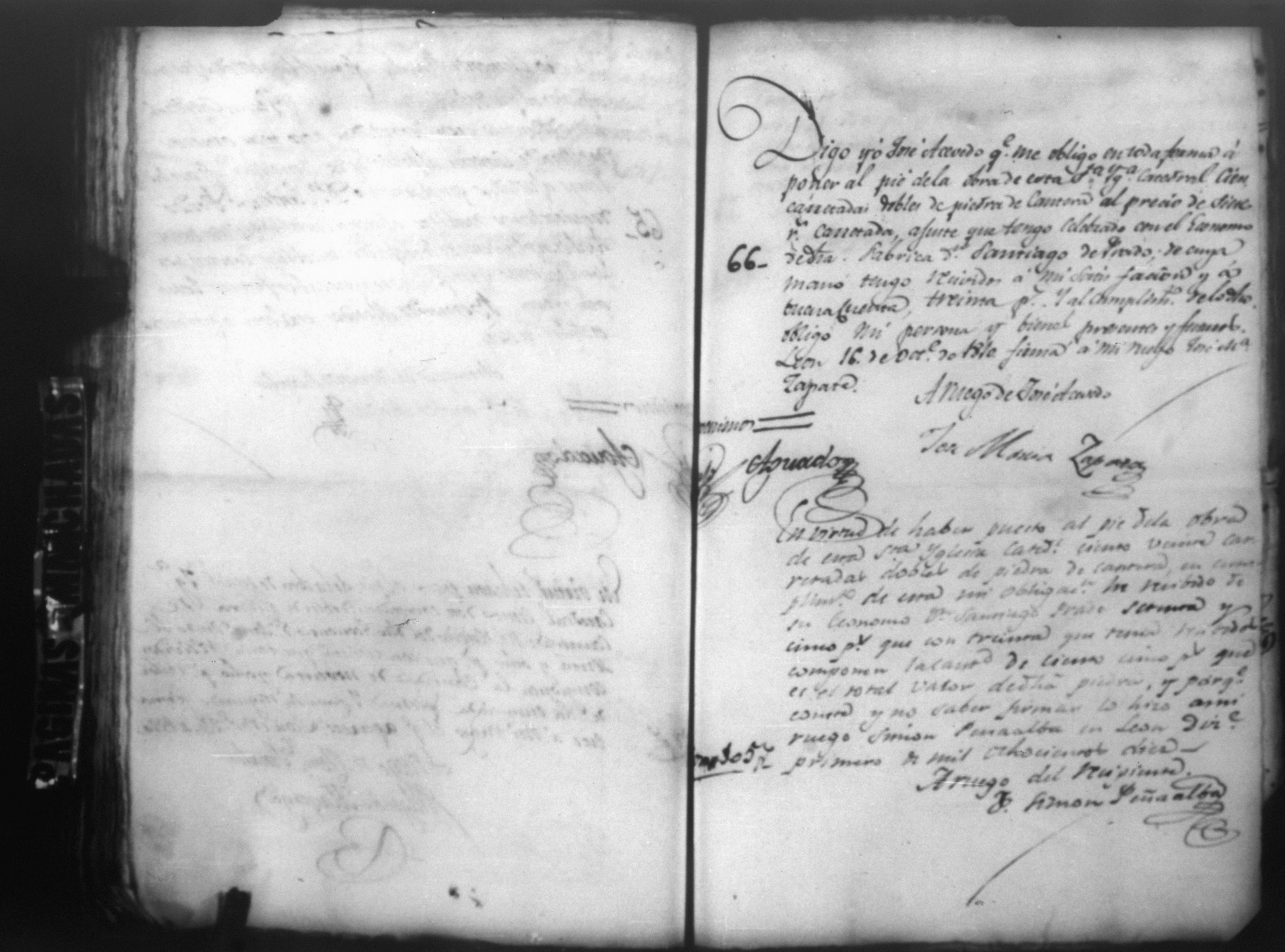 Temática: PÁGINAS MANCHADAS. Año de 1810 Quaderno Que comprende setenta y nueve comprobantes de Cargo y de Data, con Ochenta foxas que aconpañan a la Cuenta de la obra material de la Santa Yglesia Catedral de Leon, correpondiente a dicho año y se dirixe al Real Tribunal […] de Contaduria [mayor] de este Reyno.