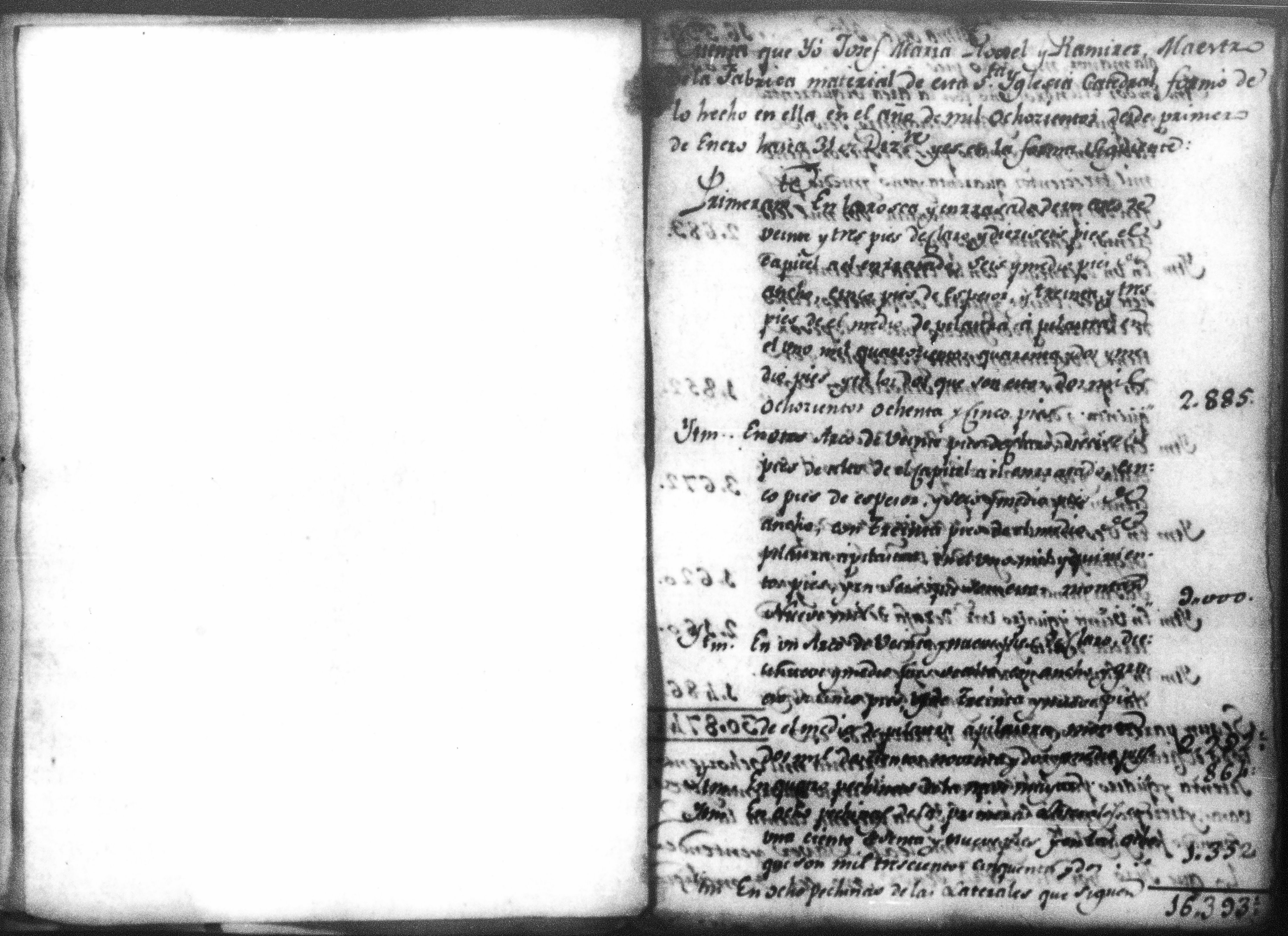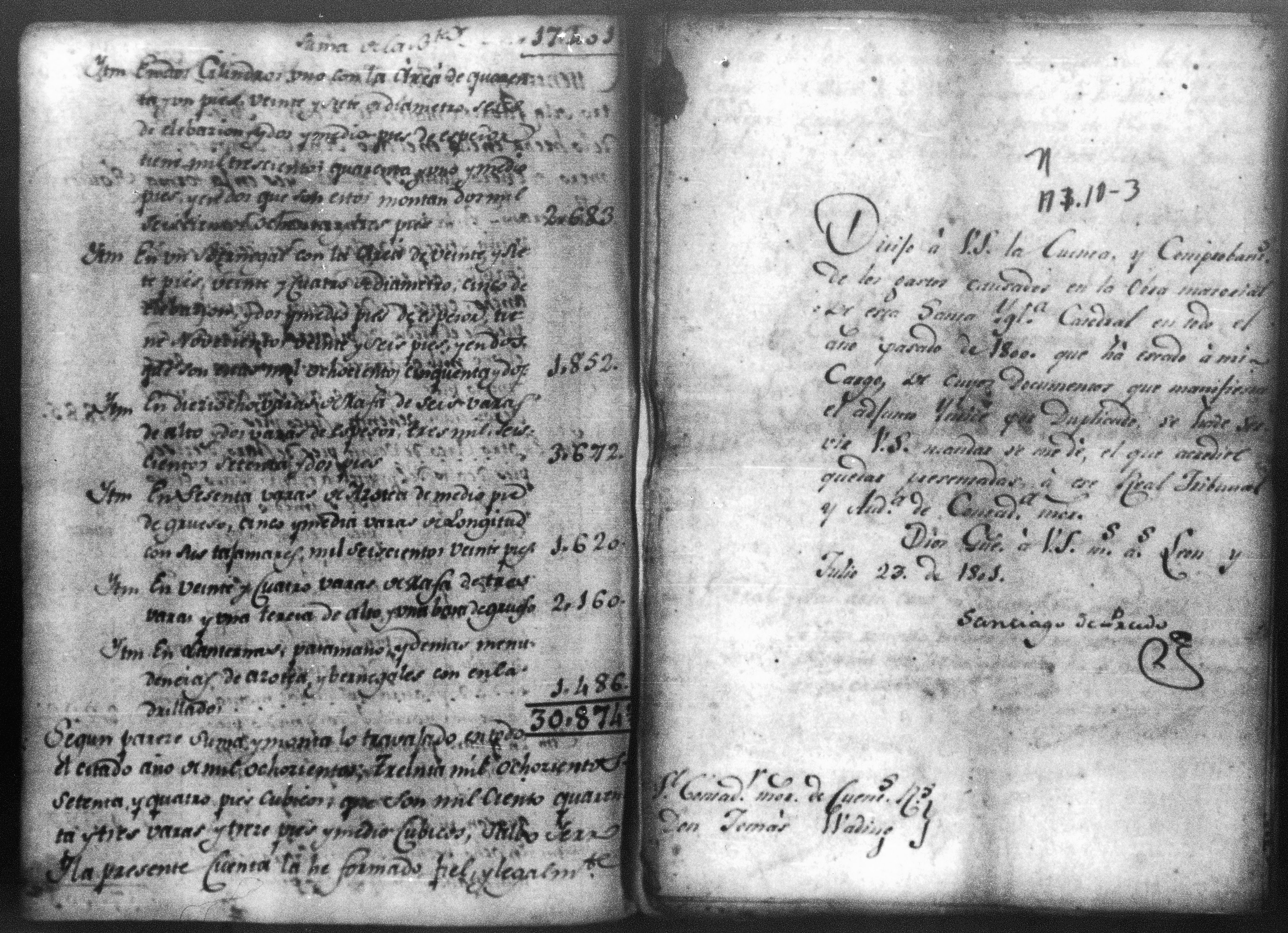 Temática: Cuenta de Josef María Roxel y Ramirez, Maestro de la fabrica material de esta Santa Yglesia Catedral de lo hecho en el año de mil y ochocientos