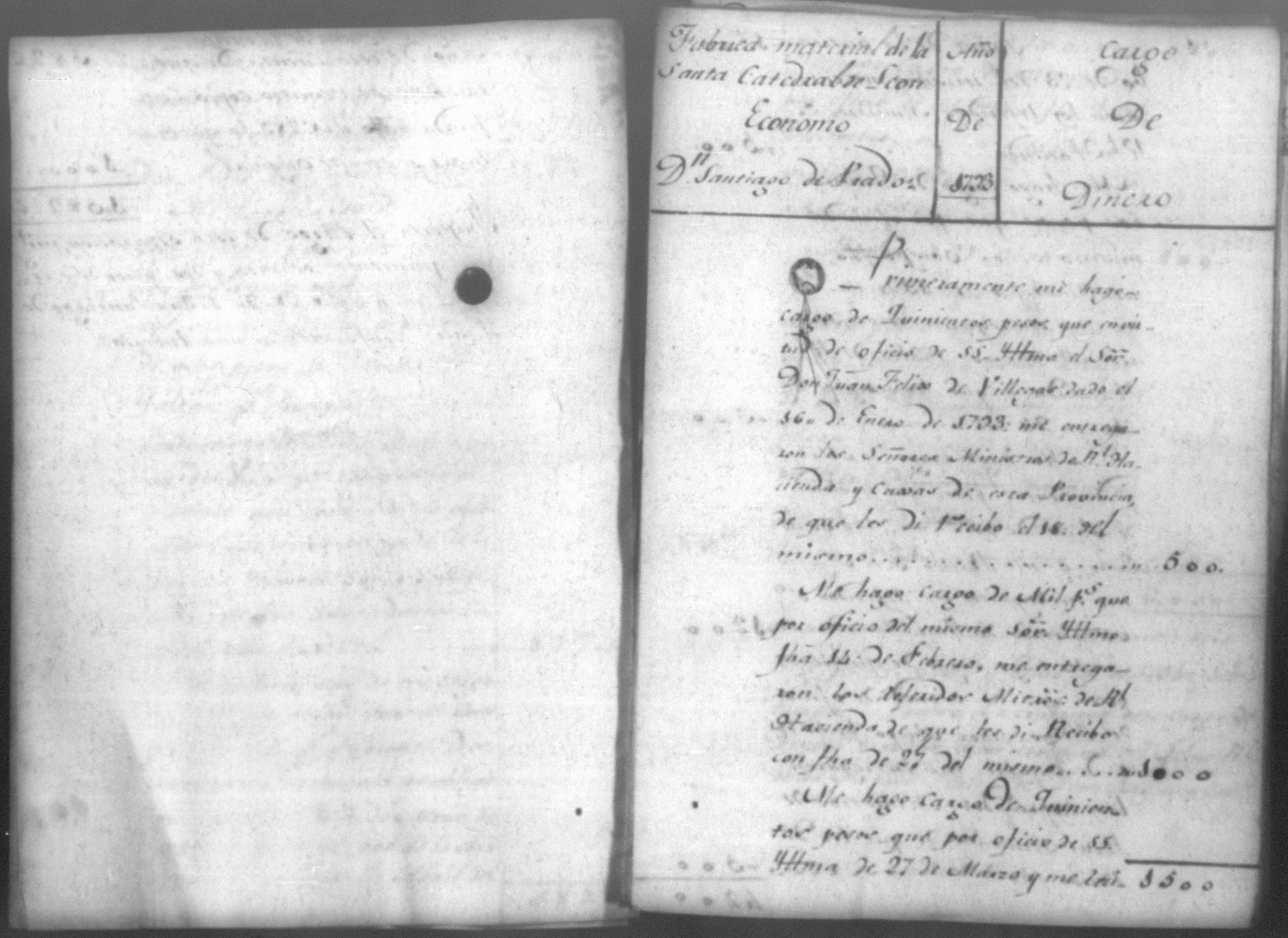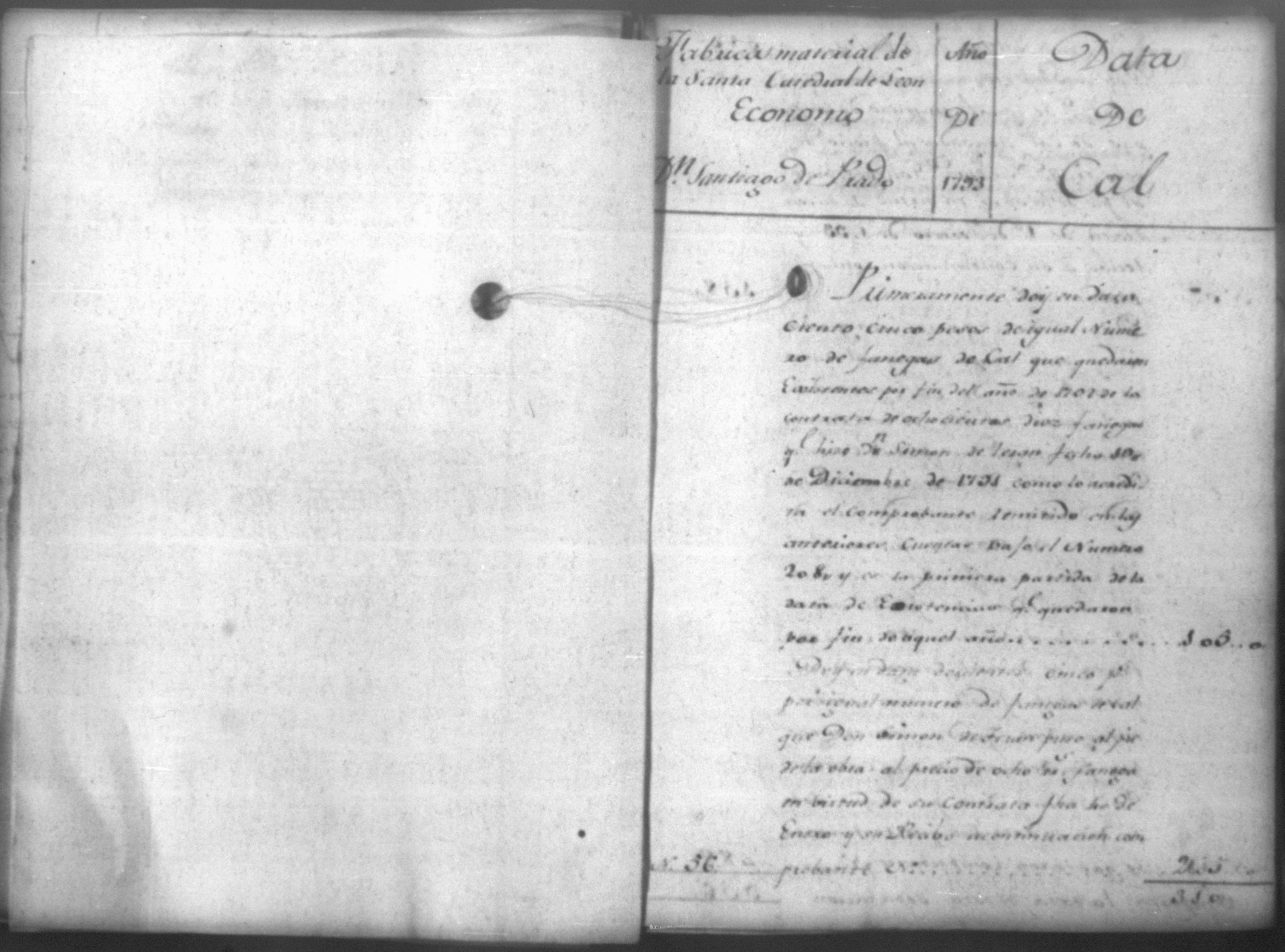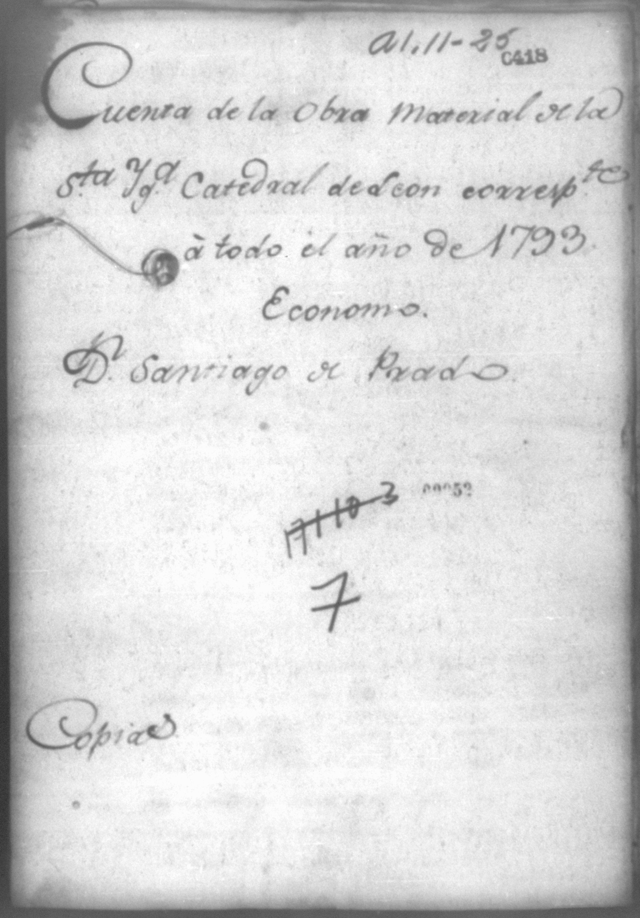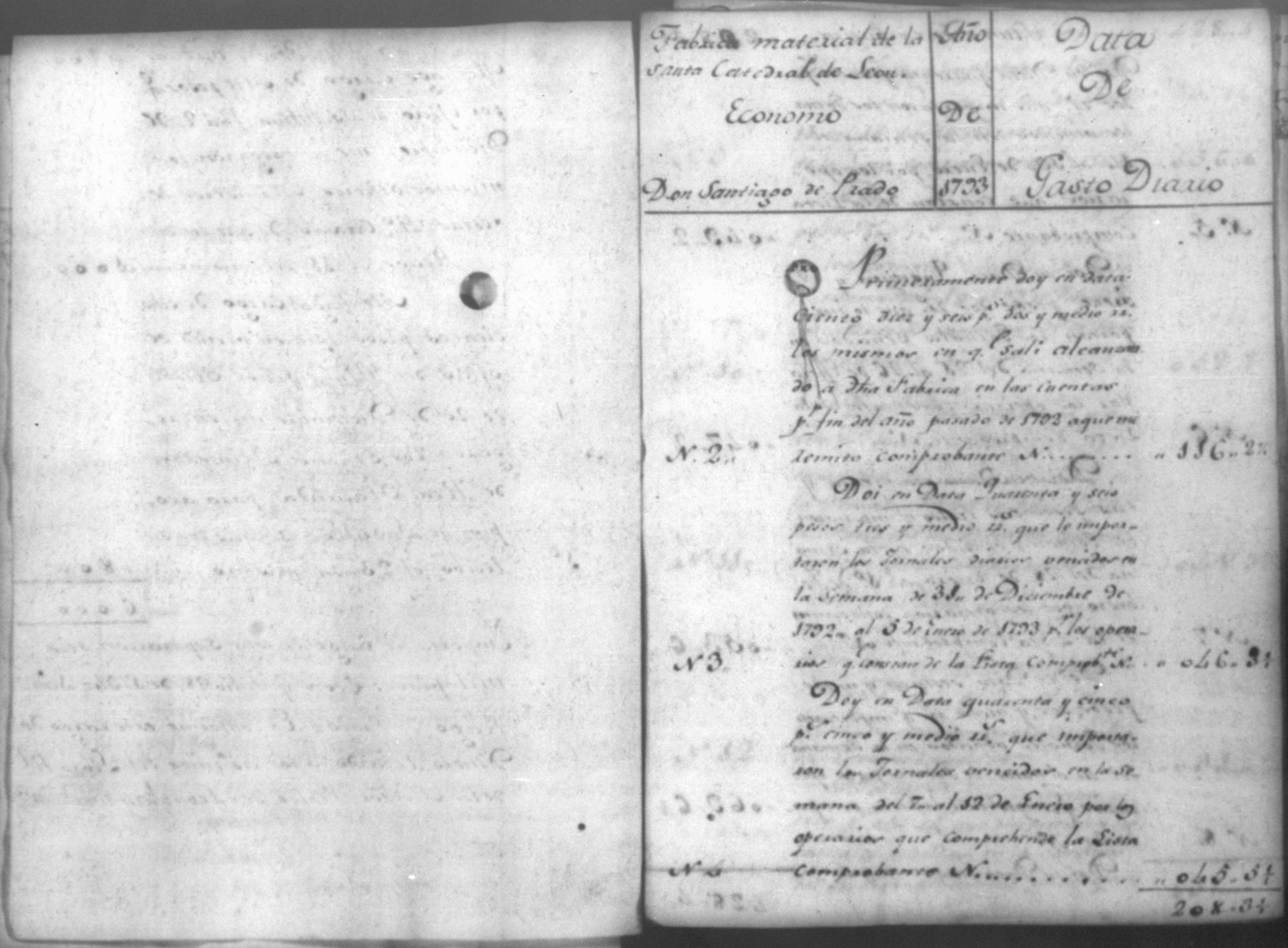 Temática: Cuenta de la obra material de la Santa Iglesia Catedral de Leon correspondiente a todo el año de 1793. Economo, Don Santiago de Prado.