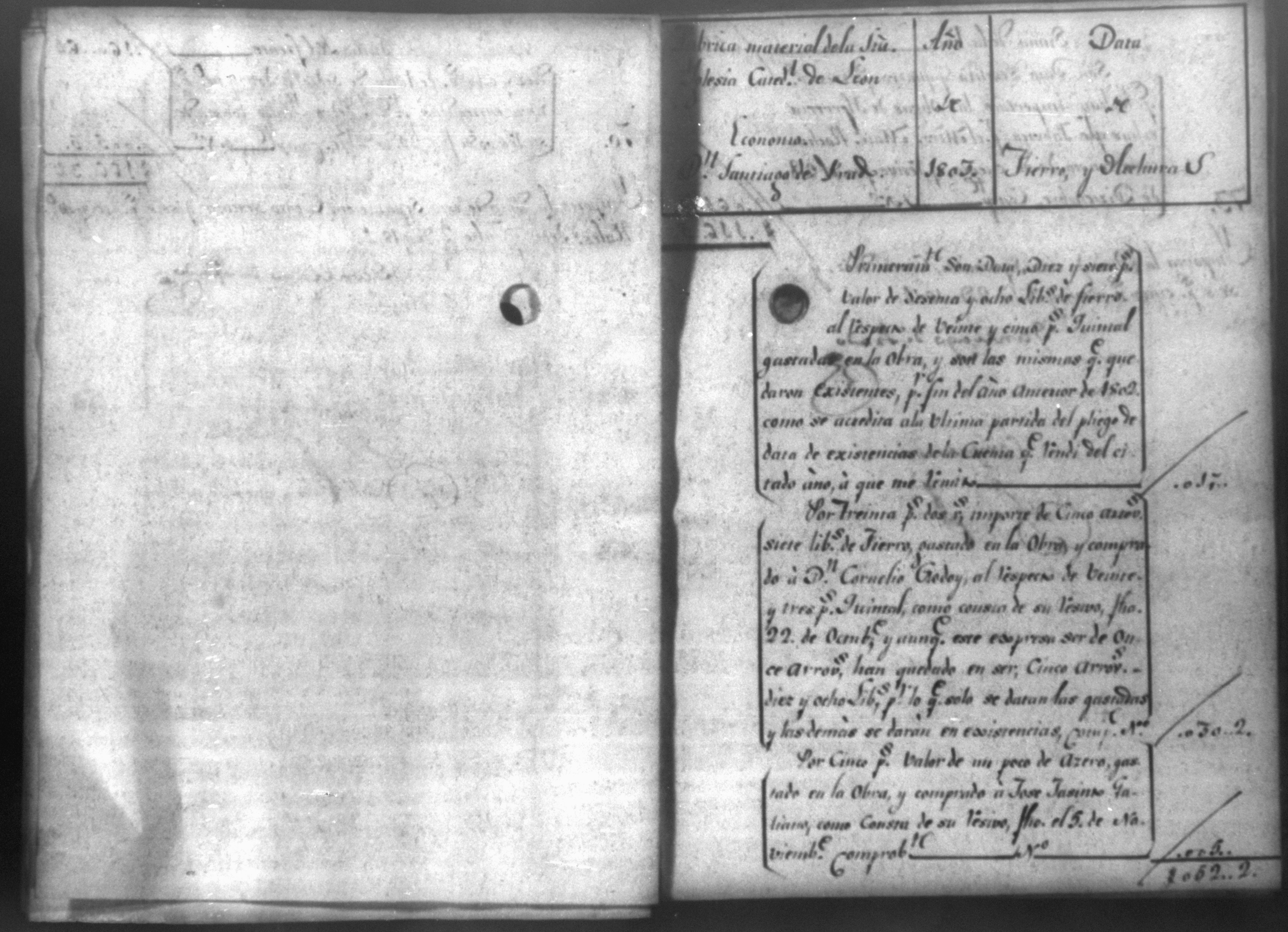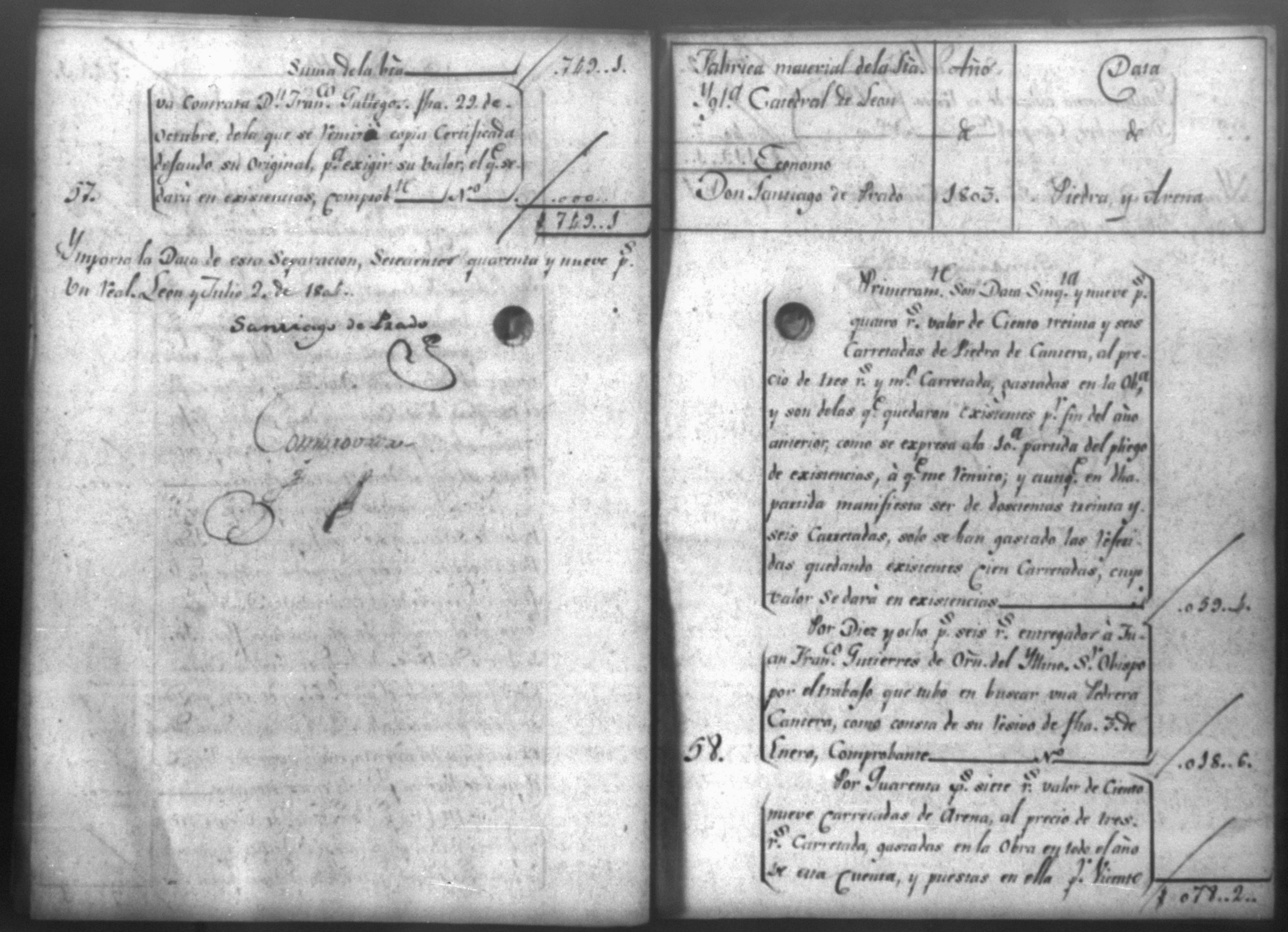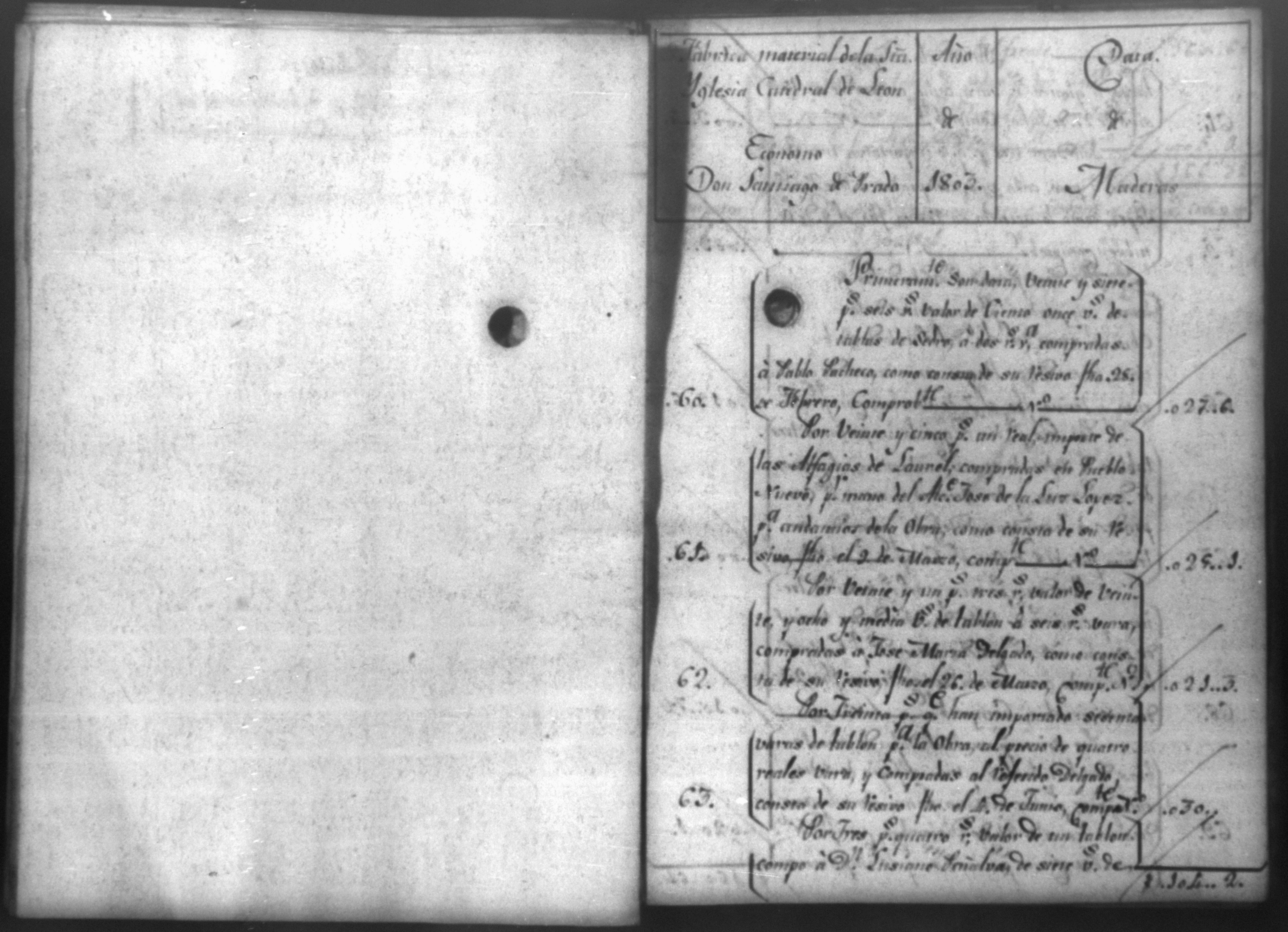 Cuenta del maestro de la obra de Catedral, León, 1803