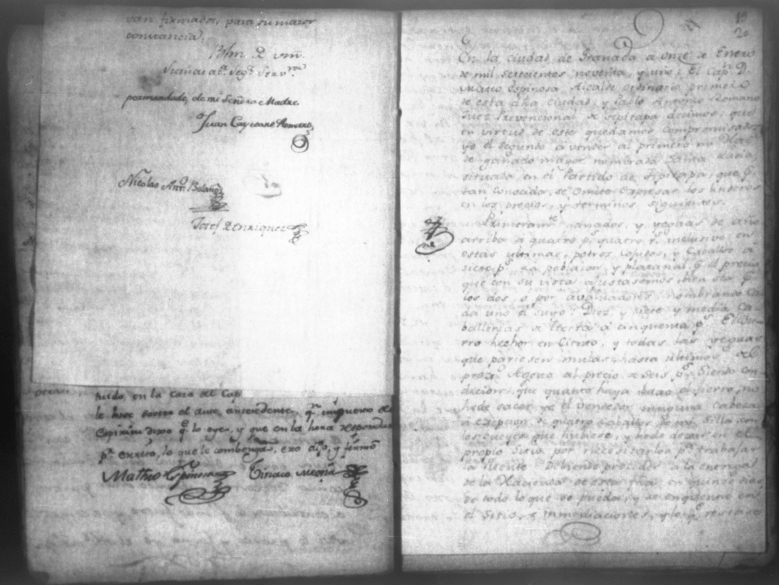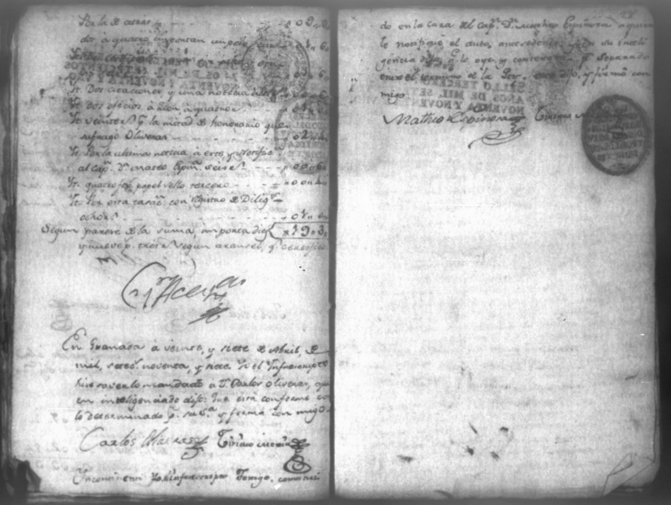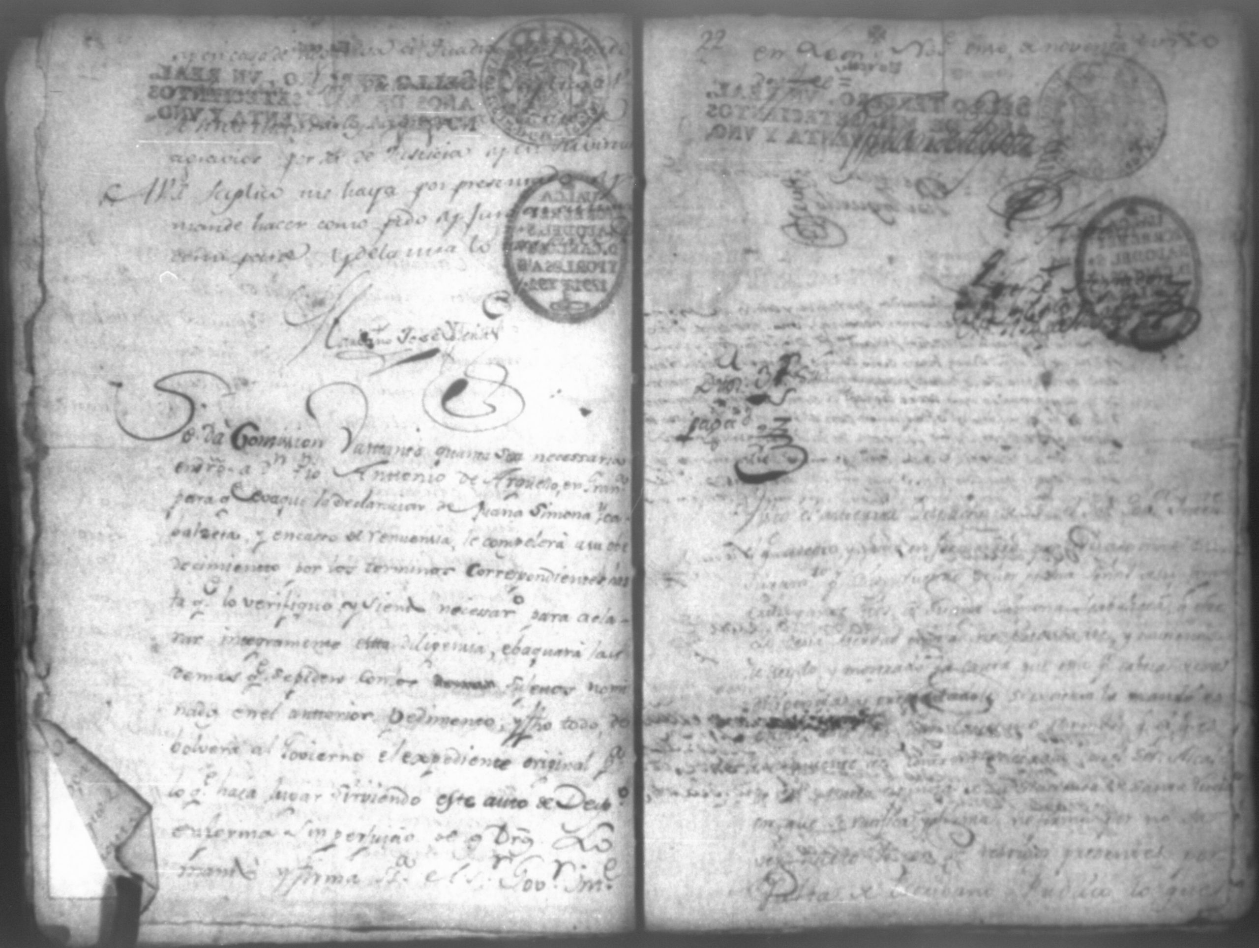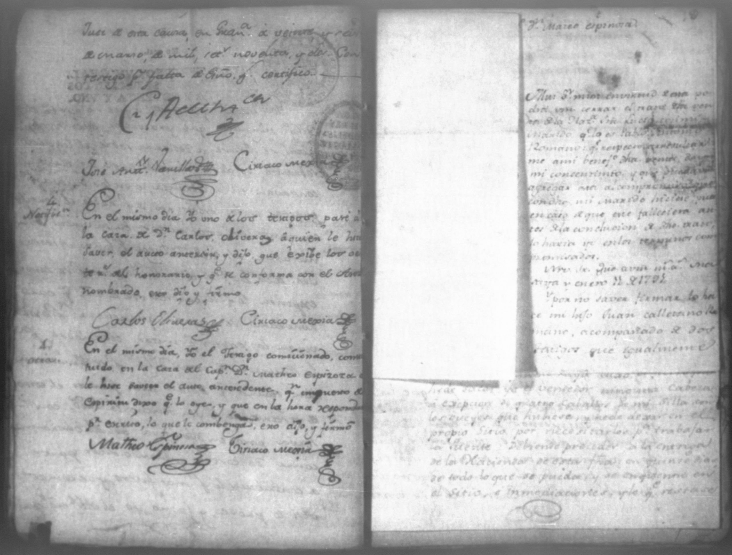 Temática: Audiencia León, 1792. De los Autos que sigue don Cayetano Pavón con don Carlos Oliveras sobre que se satisfaga con preferencia la libranza que obtuvo el primero de don Mateo Espinosa a la que este dio después a favor del segundo. Contiene: la instancia seguida en Costa Rica. "+ Señor Alcalde de primer voto. Don Carlos Olivares, vecino de esta Ciudad, en la mejor forma que haya lugar en derecho: ante Vuestro Señor parezco y digo: Que sin perjuicio del derecho que tengo contra el principal deudor, ó endosante Don Josef Arguello en la cantidad de mil novecientos y veinte pesos de que me tiene endorsada libranza de Pablo Romano, en este forma: mil y quatrocientos pesos para el primer plazo que fue en Agosto de noventa y uno; Y los quinientos y veinte para enero de noventa y dos: Y haviendosle presentado al Capital Don Matheo Espinosa que está por caveza, la aceptó y quedó a pagarla del liquido valor de la Hacienda expresada en dicha libranza [...] suplico á Vuestro Señor que por los terminos de la via executiva se sirva compeler a dicho Don Matheo a que cumpla su aceptacion que ofrecio, vajo de su firma [...]" (Extracto de los folios 11 y 11v.)