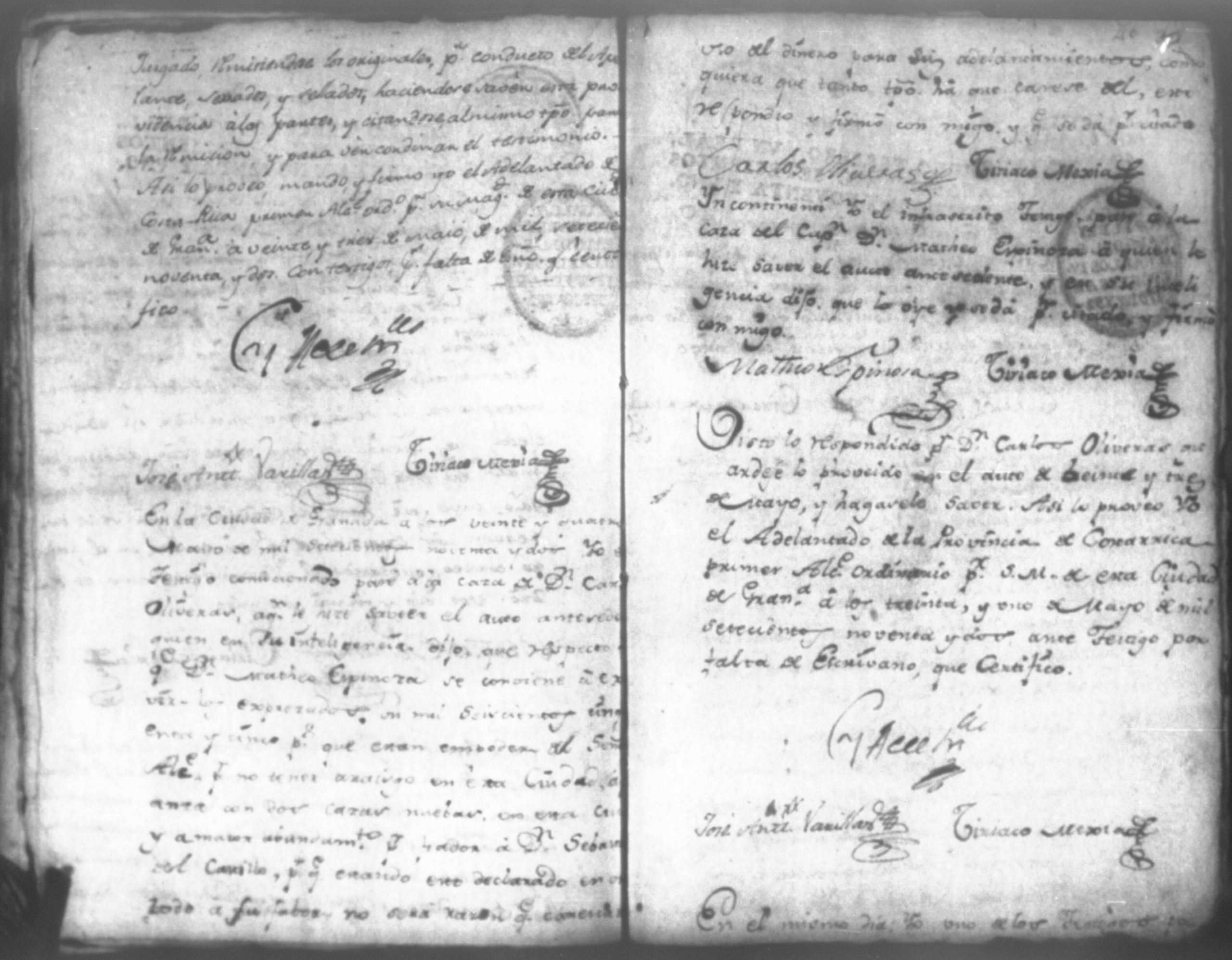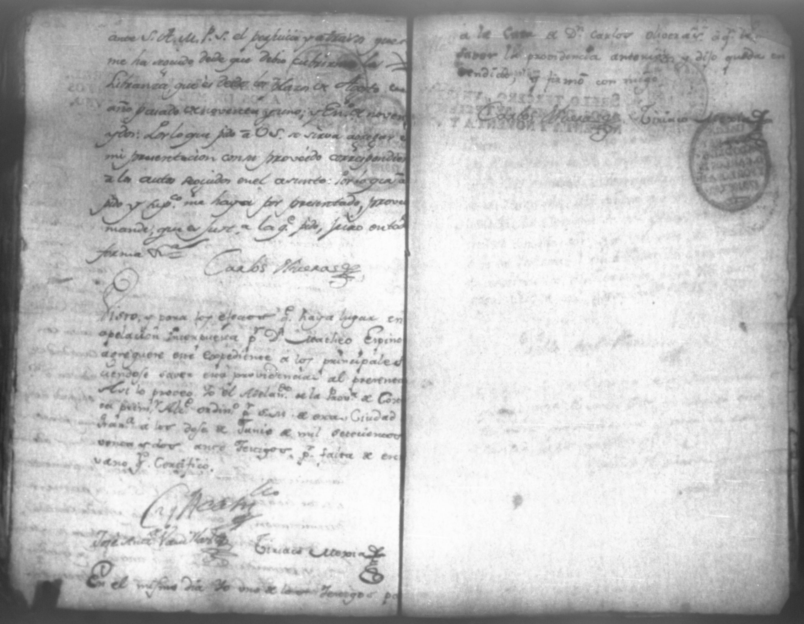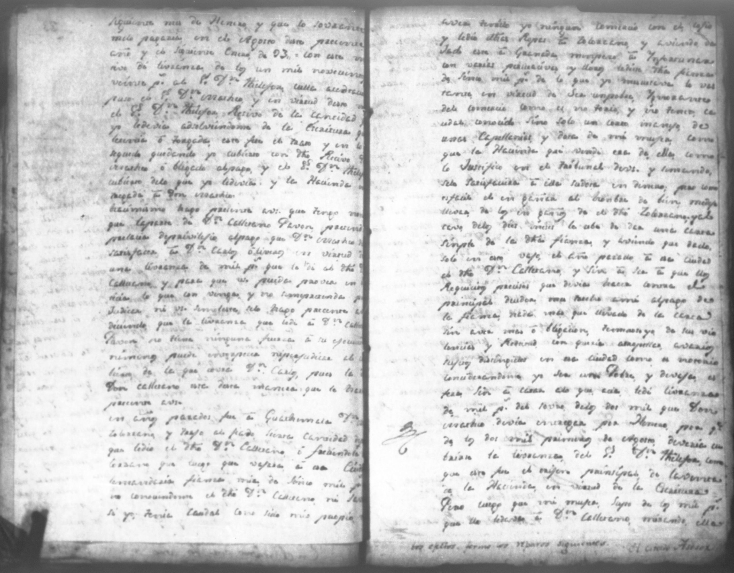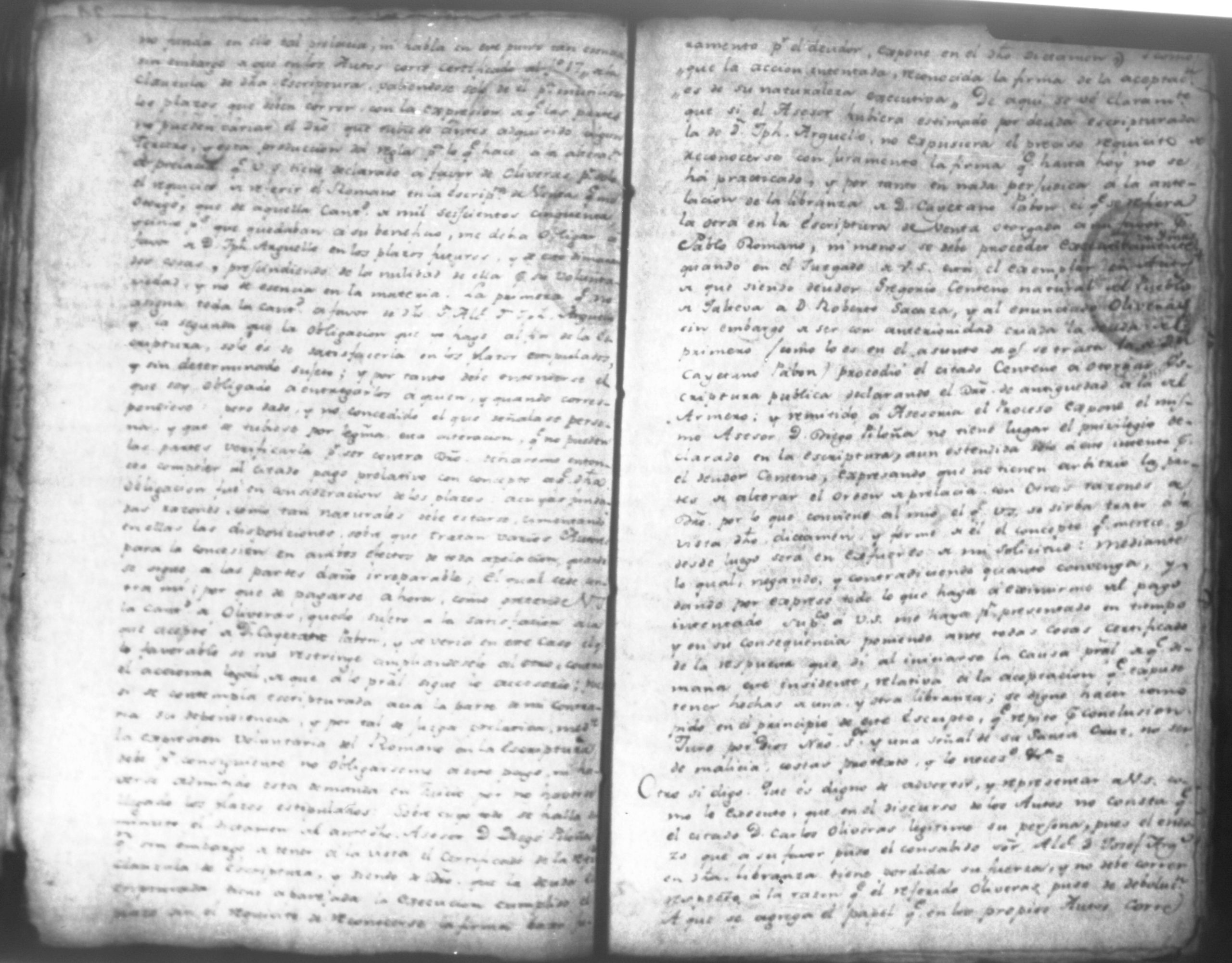 Temática: Audiencia León, 1792. De los Autos que sigue don Cayetano Pavón con don Carlos Oliveras sobre que se satisfaga con preferencia la libranza que obtuvo el primero de don Mateo Espinosa a la que este dio después a favor del segundo. Contiene: la instancia seguida en Costa Rica. "+ Señor Alcalde de primer voto. Don Carlos Olivares, vecino de esta Ciudad, en la mejor forma que haya lugar en derecho: ante Vuestro Señor parezco y digo: Que sin perjuicio del derecho que tengo contra el principal deudor, ó endosante Don Josef Arguello en la cantidad de mil novecientos y veinte pesos de que me tiene endorsada libranza de Pablo Romano, en este forma: mil y quatrocientos pesos para el primer plazo que fue en Agosto de noventa y uno; Y los quinientos y veinte para enero de noventa y dos: Y haviendosle presentado al Capital Don Matheo Espinosa que está por caveza, la aceptó y quedó a pagarla del liquido valor de la Hacienda expresada en dicha libranza [...] suplico á Vuestro Señor que por los terminos de la via executiva se sirva compeler a dicho Don Matheo a que cumpla su aceptacion que ofrecio, vajo de su firma [...]" (Extracto de los folios 11 y 11v.)