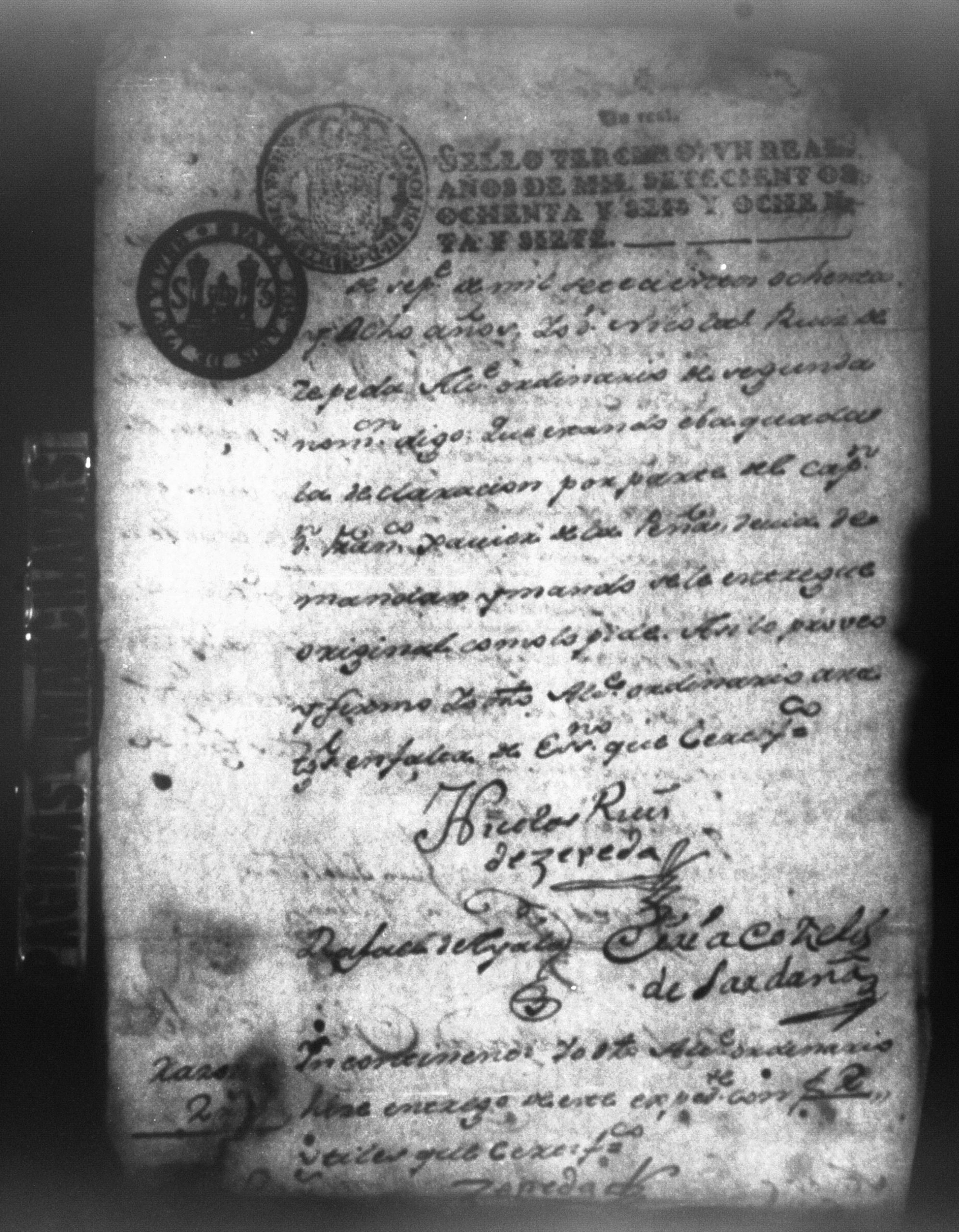 Temática: Nicoya, 1788. Declaración general bajo juramento de don Juan Zavaleta acerca de la cantidad de novillos que vendió a la Hacienda Las Trancas y por cuanta cantidad de dinero.