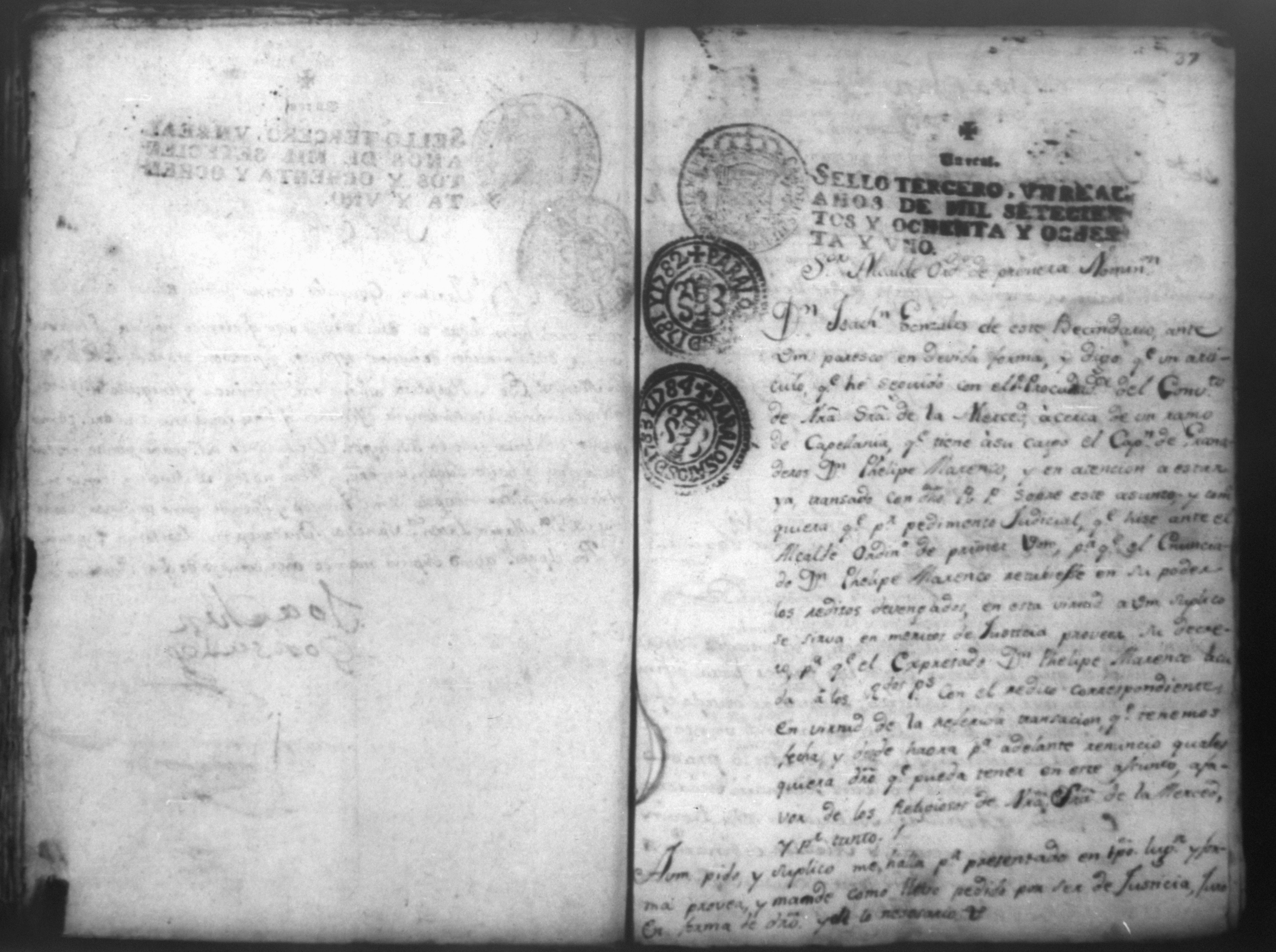 Temática: Año de 1780. Civil. Demanda por Don Joaquin Gonzales por una capellania depositaria del Convento de Nuestra Señora de las Mercedes.