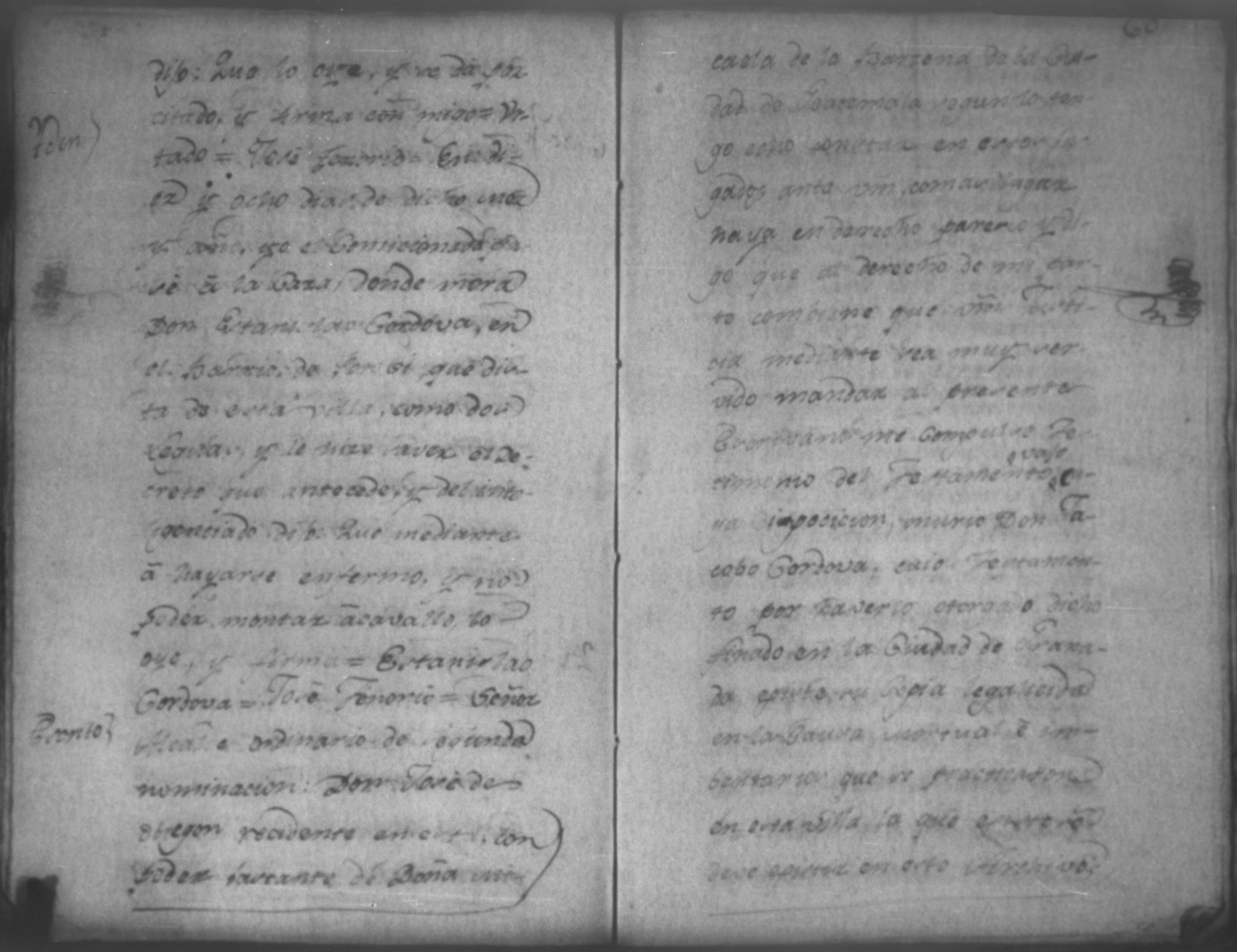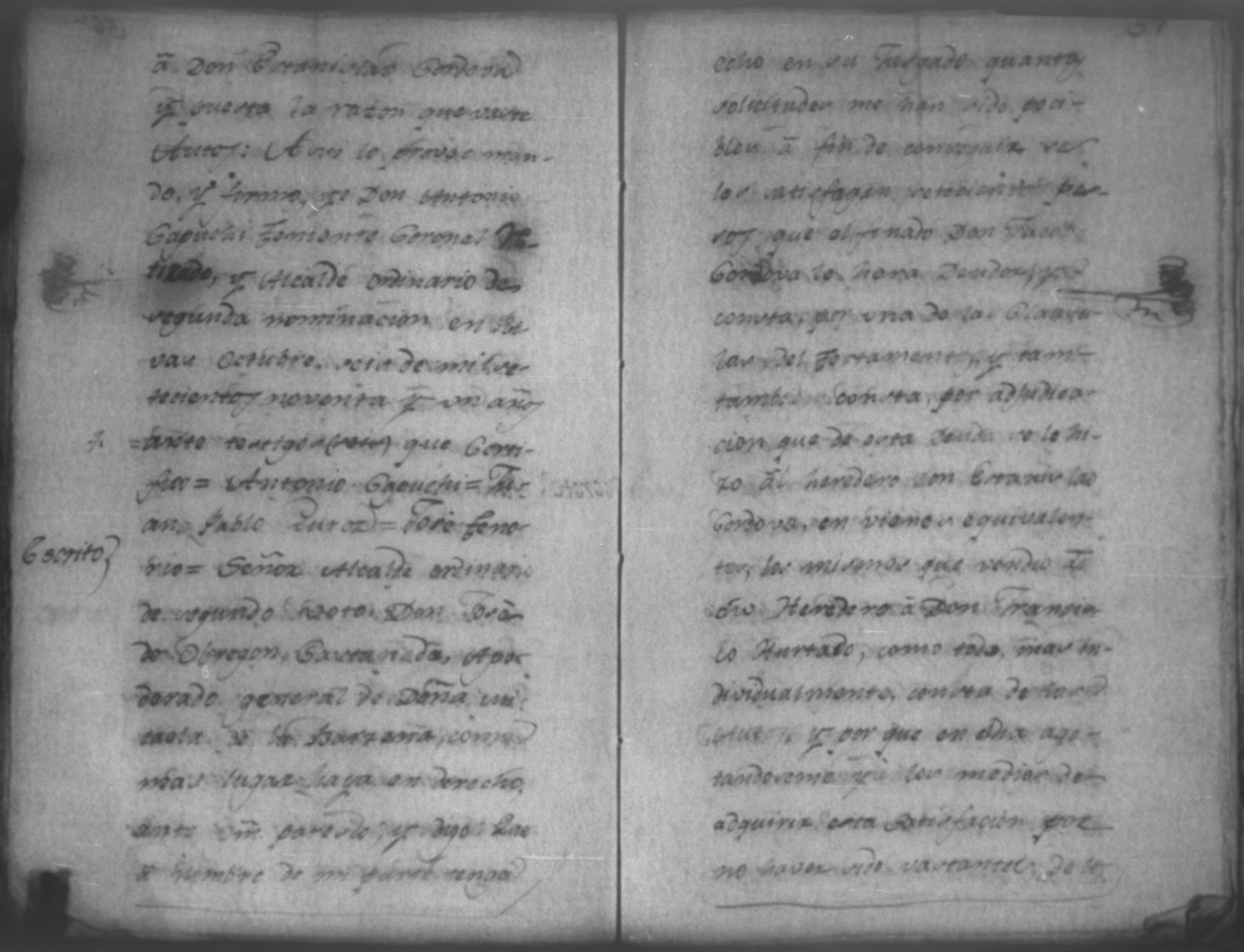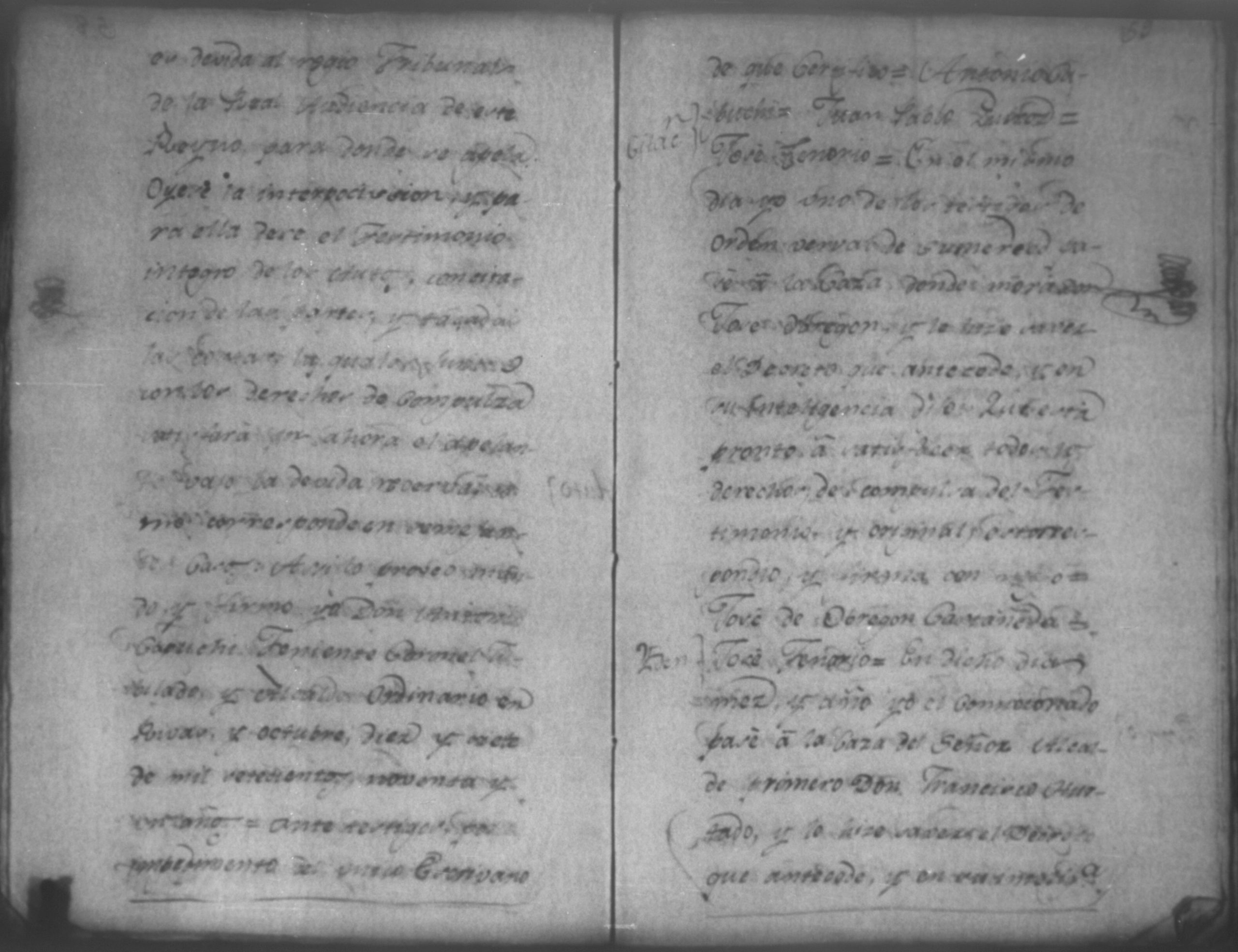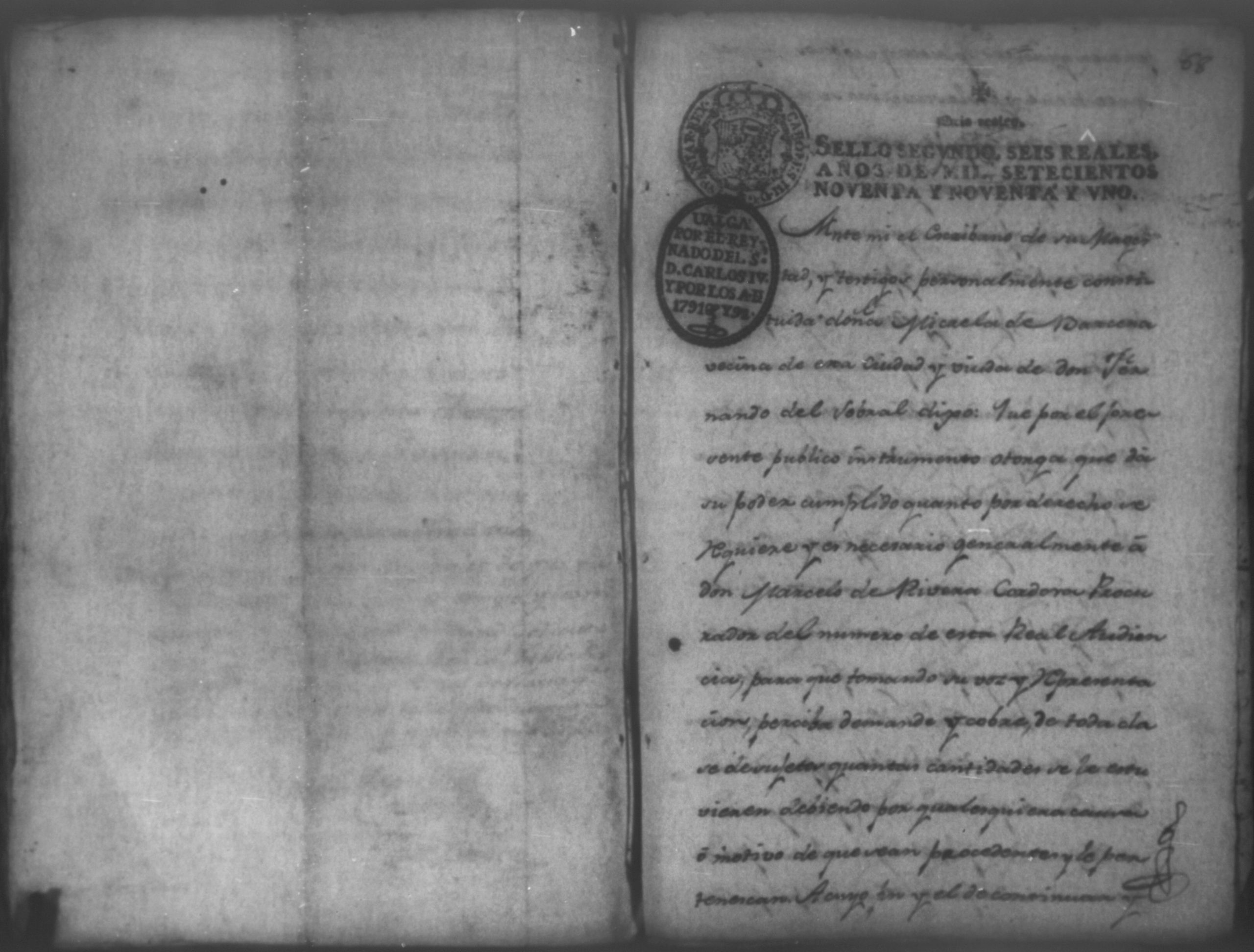 Temática: Audiencia de León, 1792. Demanda de Doña Michaela de la Barcena contra Don Jacobo Cordoba por cantidad de 700 pesos. "Señor Don Manuel de la Barzena: Muy Señor mio: El Rexidor Don Jacobo Cordoba en el Testamento que otorgo el año de ochenta y dos en que fallecio, declara deve á vuestra majestad setecientos pesos de plazo pasado; estos se dieron en vienes a su hijo Don Estanislao, y como este me ha vendido la parte que le supó de herencia, se me hace preciso ocurrir a vuestra majestad para escusarme de responsabilidad dando esta noticia para que en caso que vuestra majestad guste admitirme como inquilina á este pago con plazo de diez y ocho mezes me avice en el primer correo [...]" (Extracto de los folios 1 y 1v.)