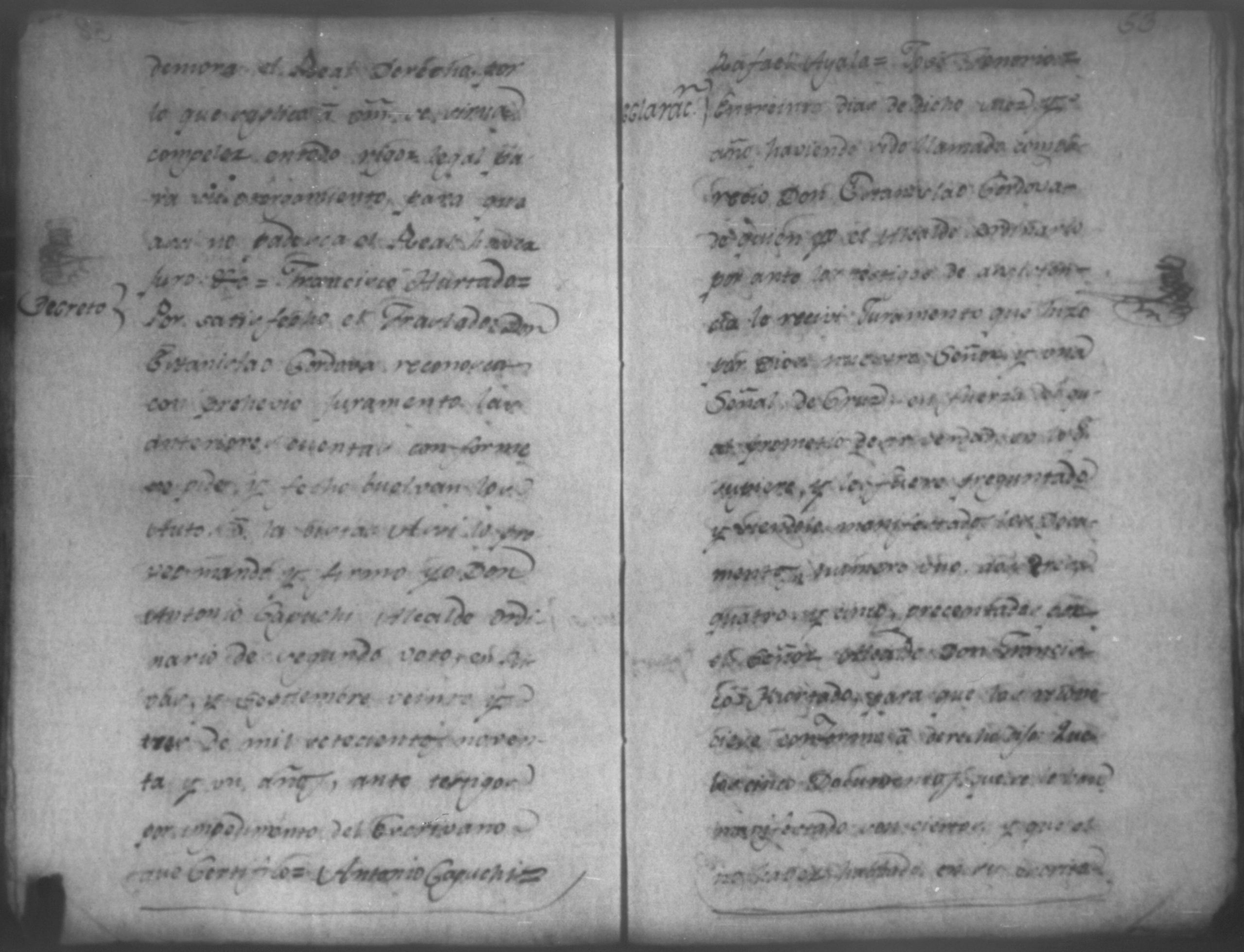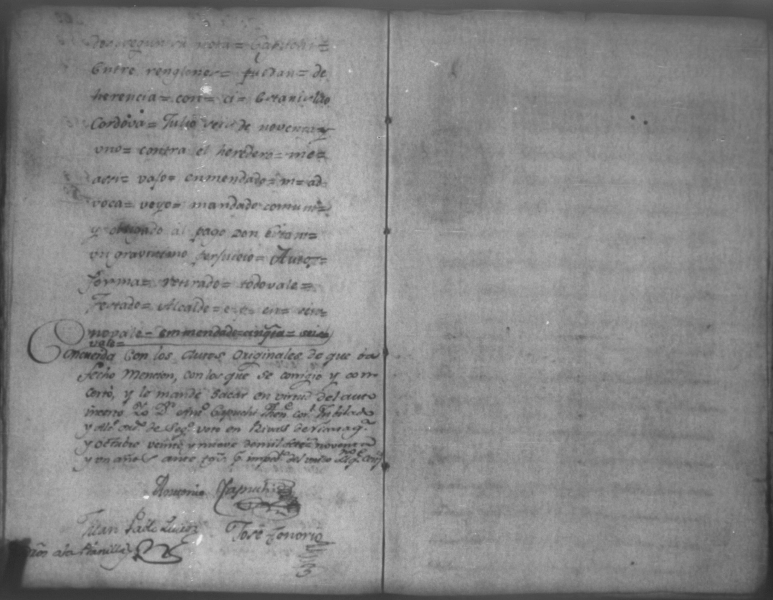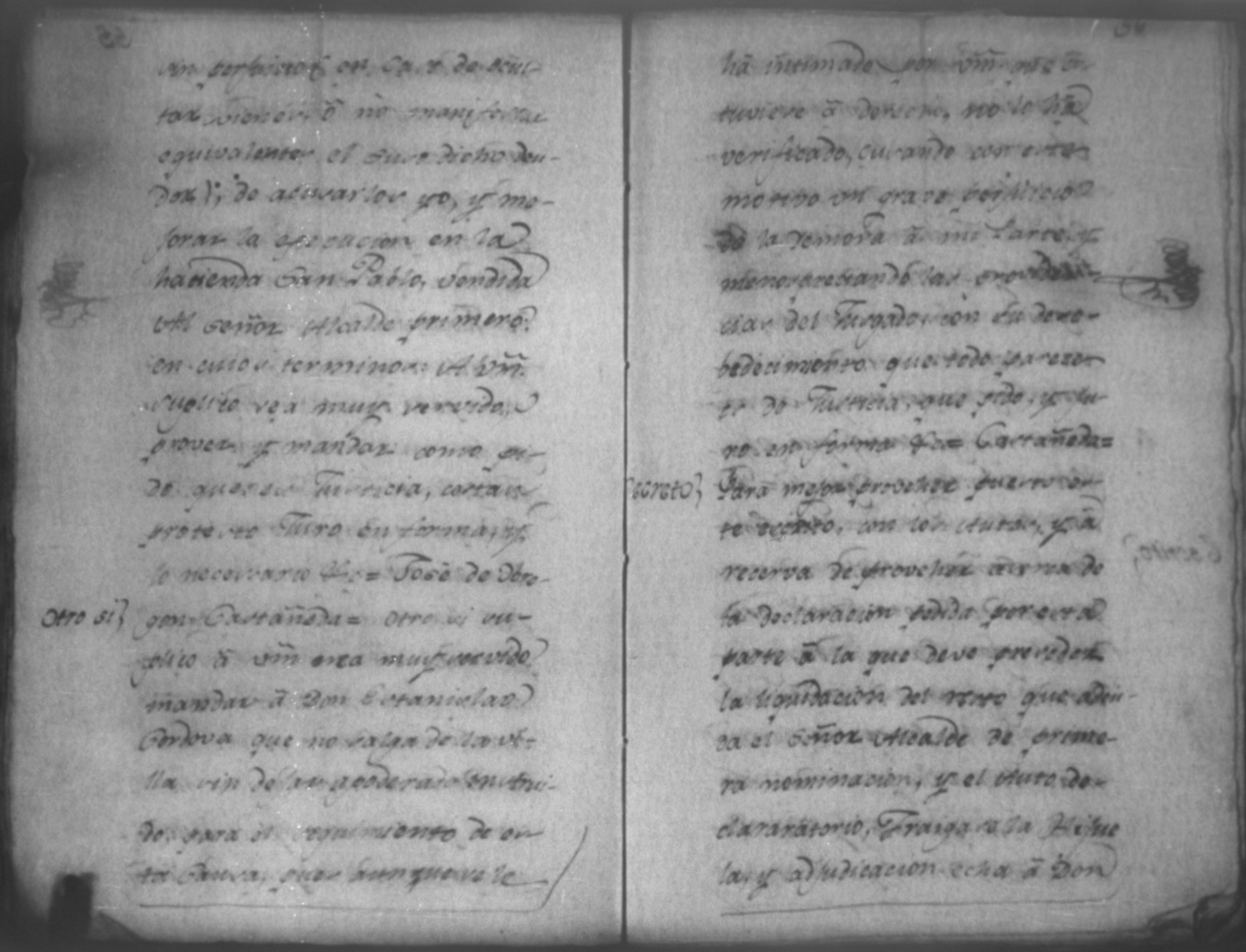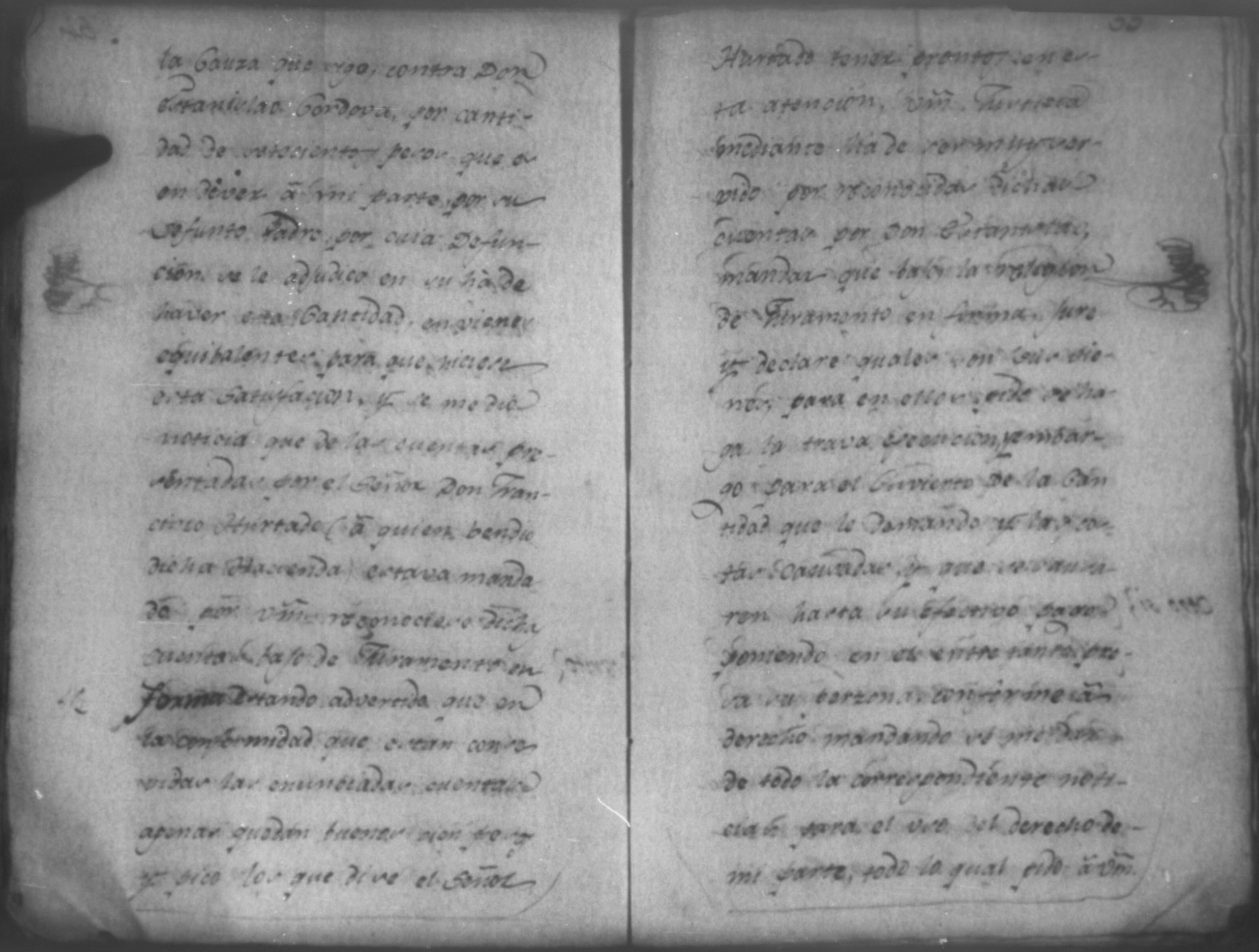 Temática: Audiencia de León, 1792. Demanda de Doña Michaela de la Barcena contra Don Jacobo Cordoba por cantidad de 700 pesos. "Señor Don Manuel de la Barzena: Muy Señor mio: El Rexidor Don Jacobo Cordoba en el Testamento que otorgo el año de ochenta y dos en que fallecio, declara deve á vuestra majestad setecientos pesos de plazo pasado; estos se dieron en vienes a su hijo Don Estanislao, y como este me ha vendido la parte que le supó de herencia, se me hace preciso ocurrir a vuestra majestad para escusarme de responsabilidad dando esta noticia para que en caso que vuestra majestad guste admitirme como inquilina á este pago con plazo de diez y ocho mezes me avice en el primer correo [...]" (Extracto de los folios 1 y 1v.)