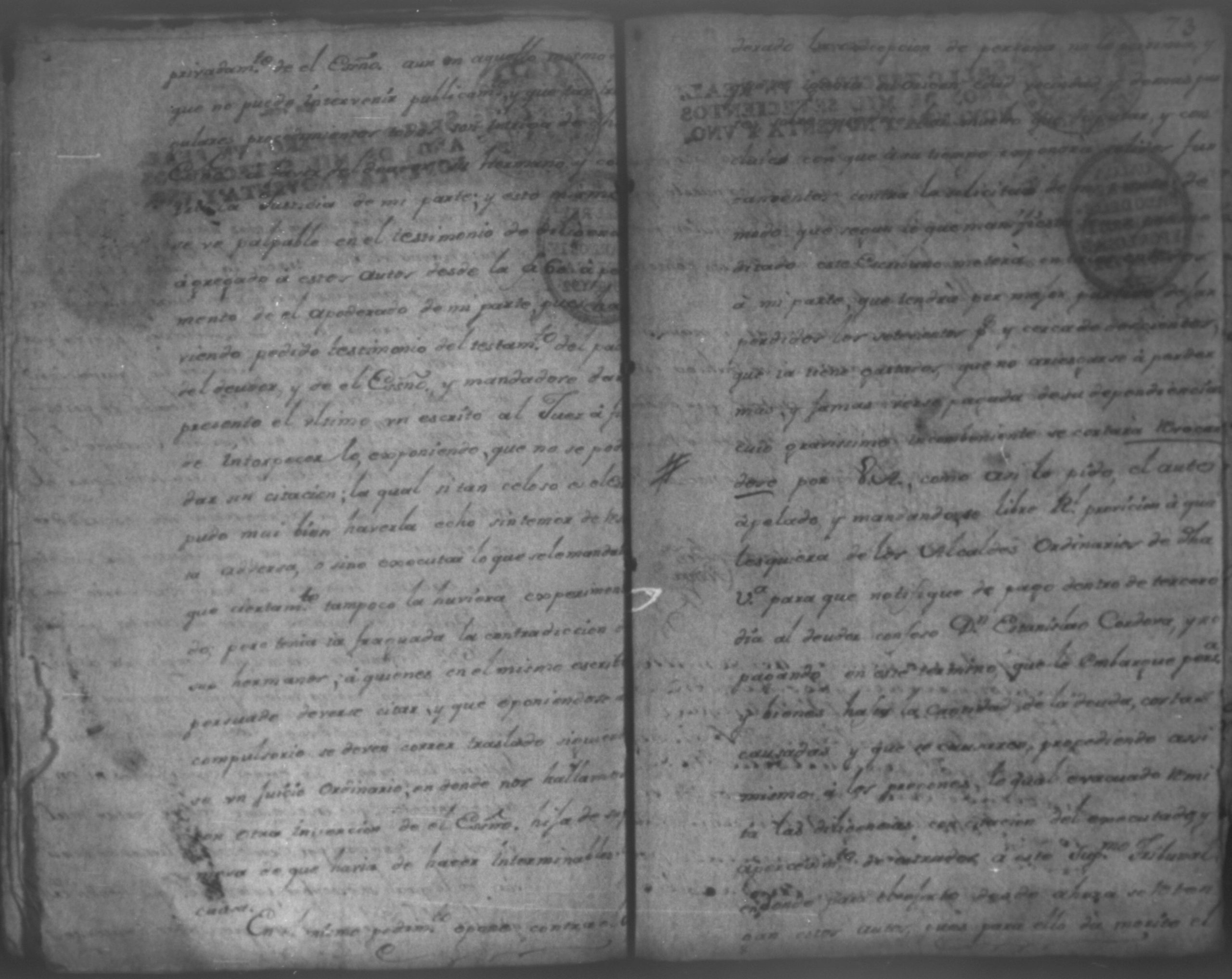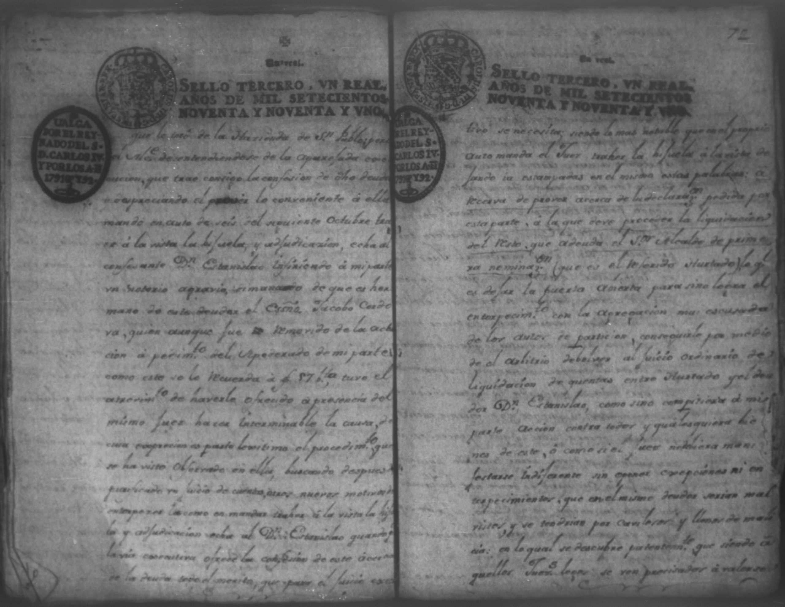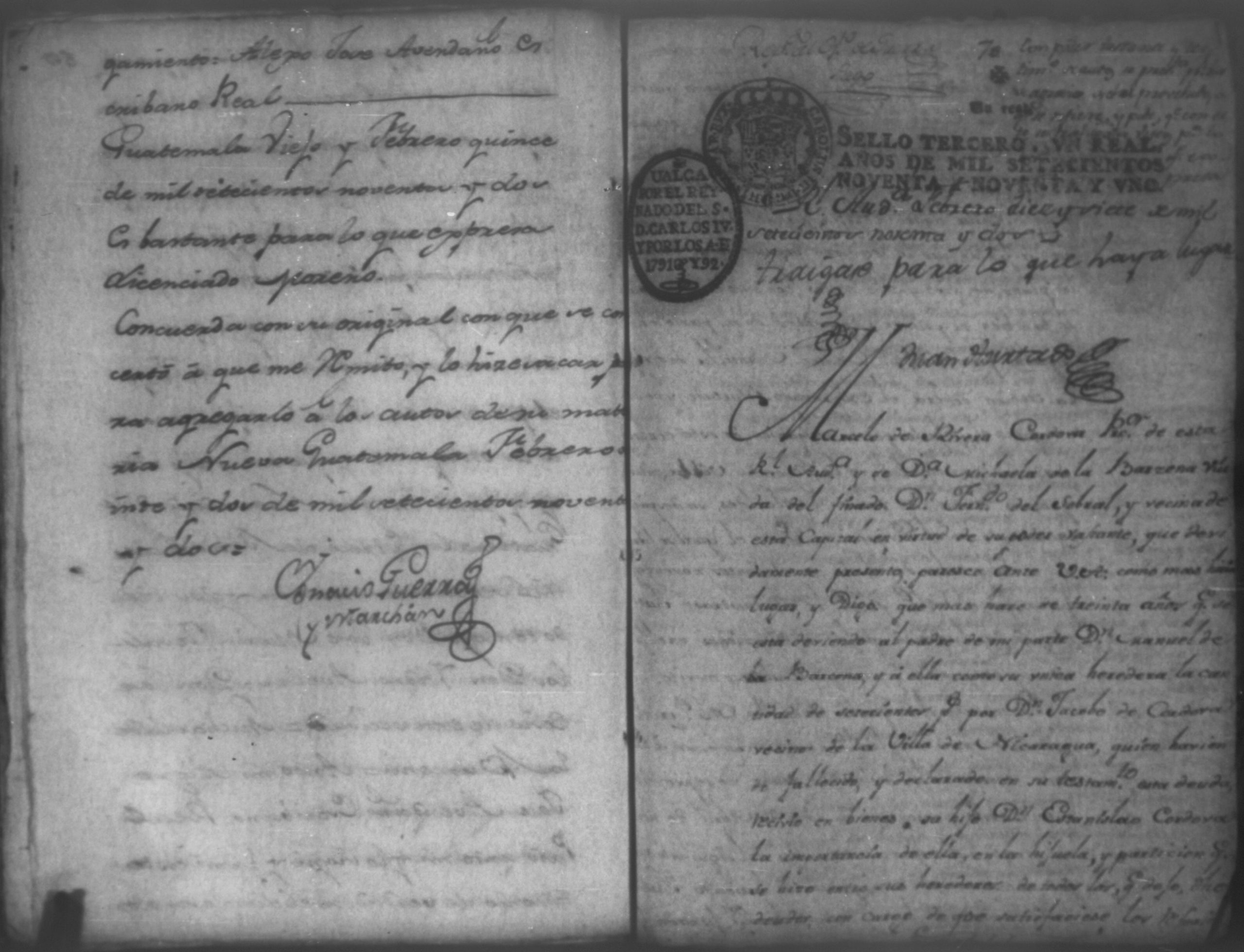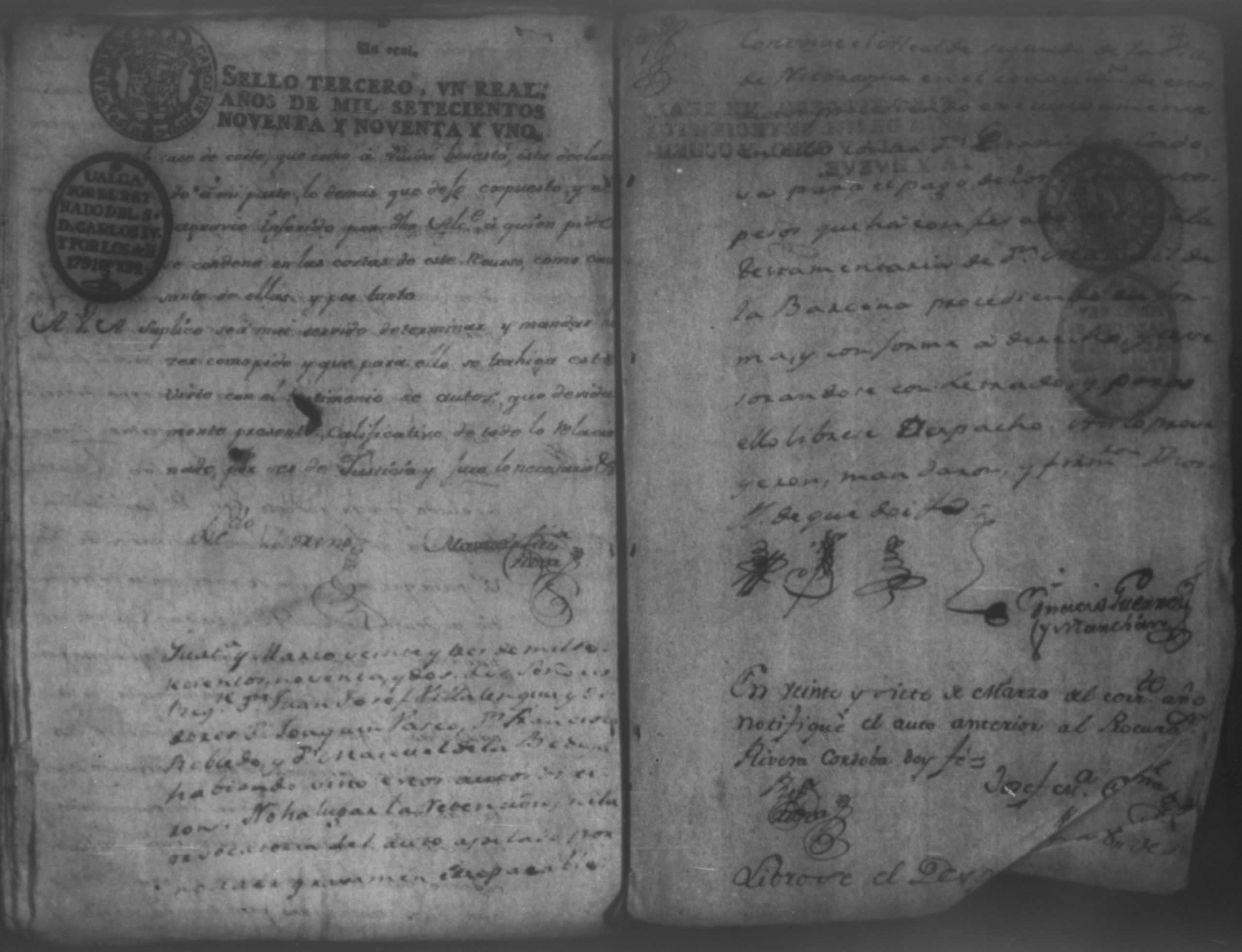 Temática: Audiencia de León, 1792. Demanda de Doña Michaela de la Barcena contra Don Jacobo Cordoba por cantidad de 700 pesos. "Señor Don Manuel de la Barzena: Muy Señor mio: El Rexidor Don Jacobo Cordoba en el Testamento que otorgo el año de ochenta y dos en que fallecio, declara deve á vuestra majestad setecientos pesos de plazo pasado; estos se dieron en vienes a su hijo Don Estanislao, y como este me ha vendido la parte que le supó de herencia, se me hace preciso ocurrir a vuestra majestad para escusarme de responsabilidad dando esta noticia para que en caso que vuestra majestad guste admitirme como inquilina á este pago con plazo de diez y ocho mezes me avice en el primer correo [...]" (Extracto de los folios 1 y 1v.)