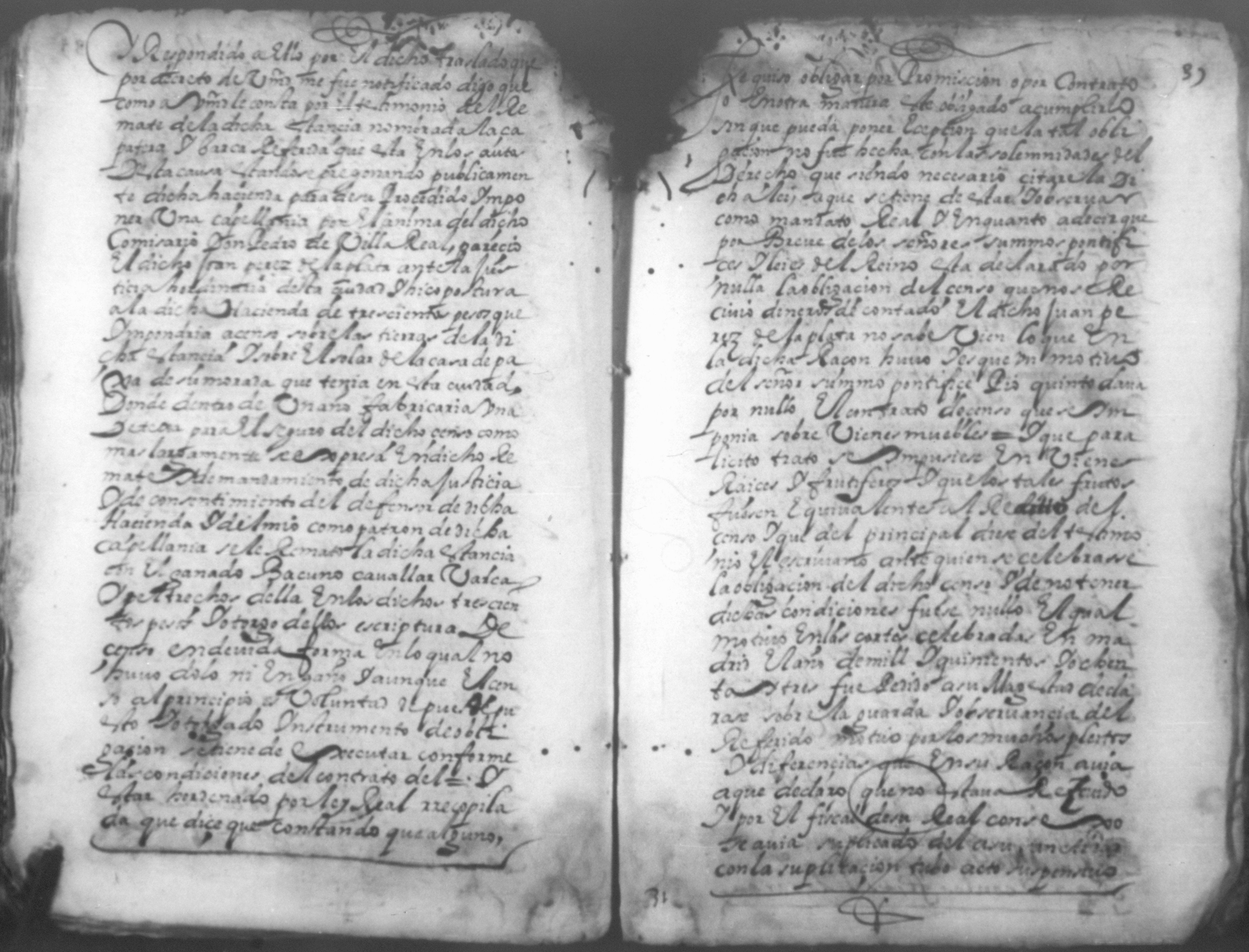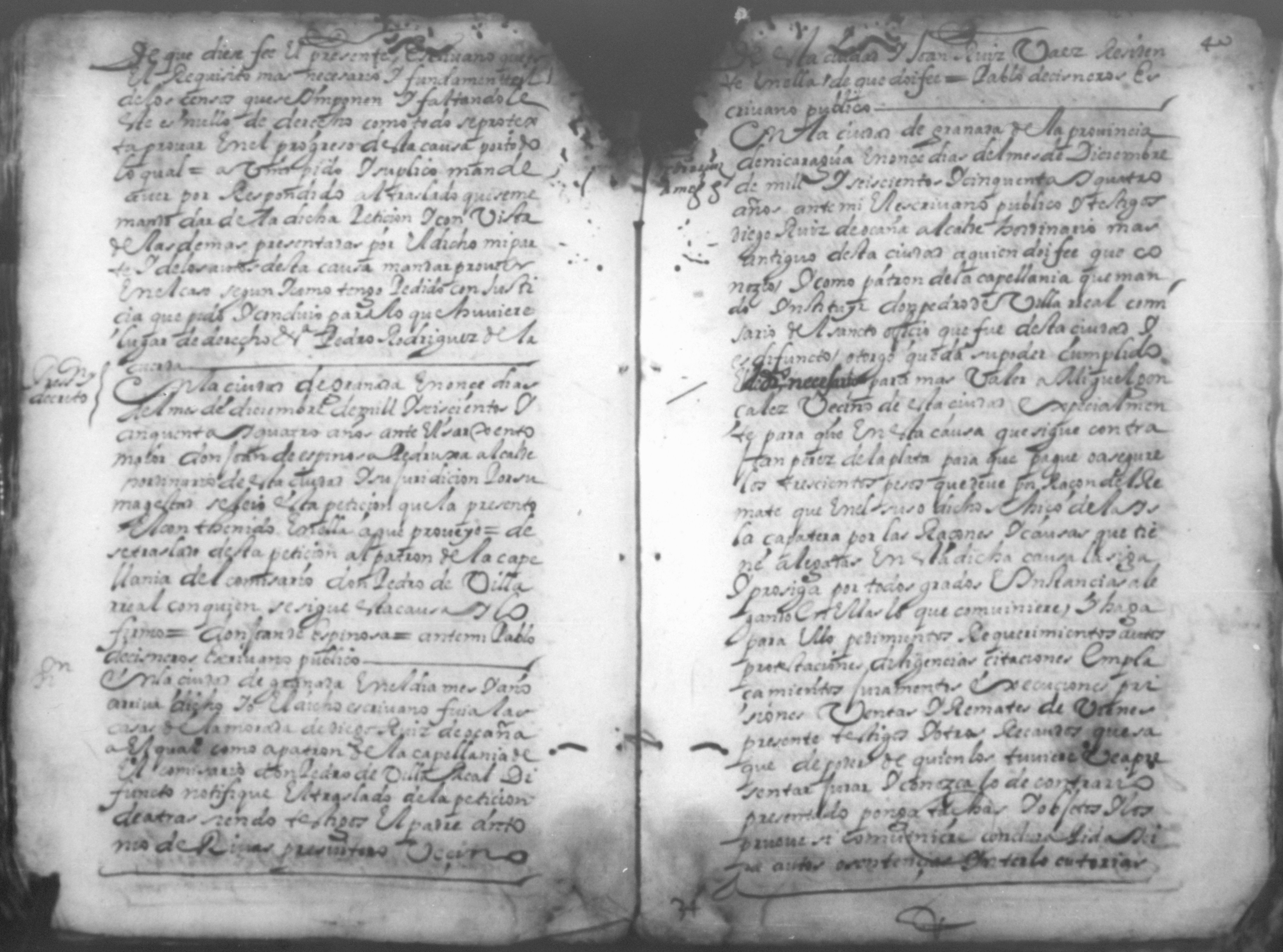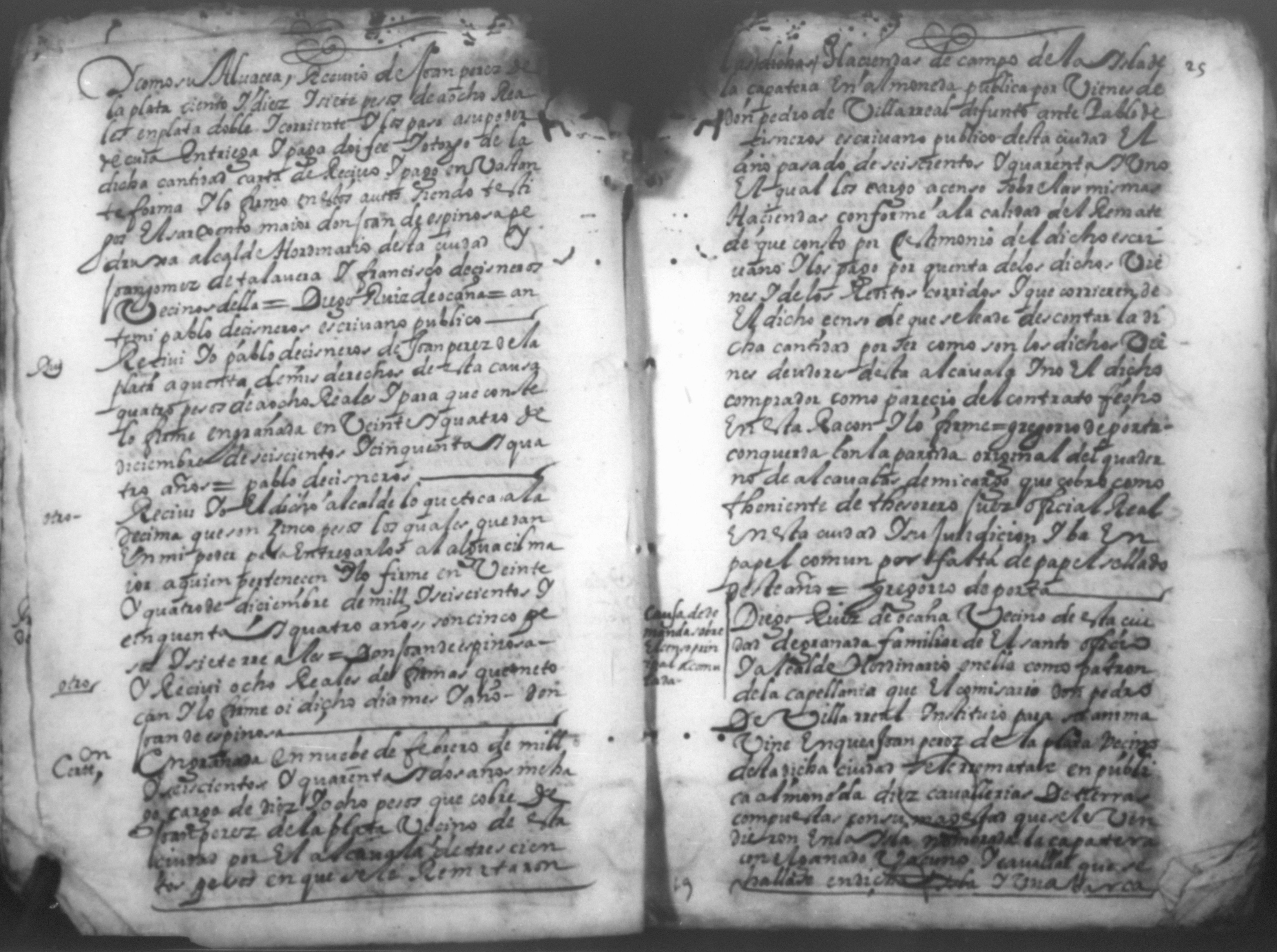 Temática: Civil de Granada. Año de 1654. Don Diego Ruiz de Ocaña, demanda ejecutivamente a Juan Pérez de la Plata y Juan Gutierrez, su fiador por los reditos de una cantidad que prestó al primero del capital de una capellanía fundada por don Pedro de Villa Real