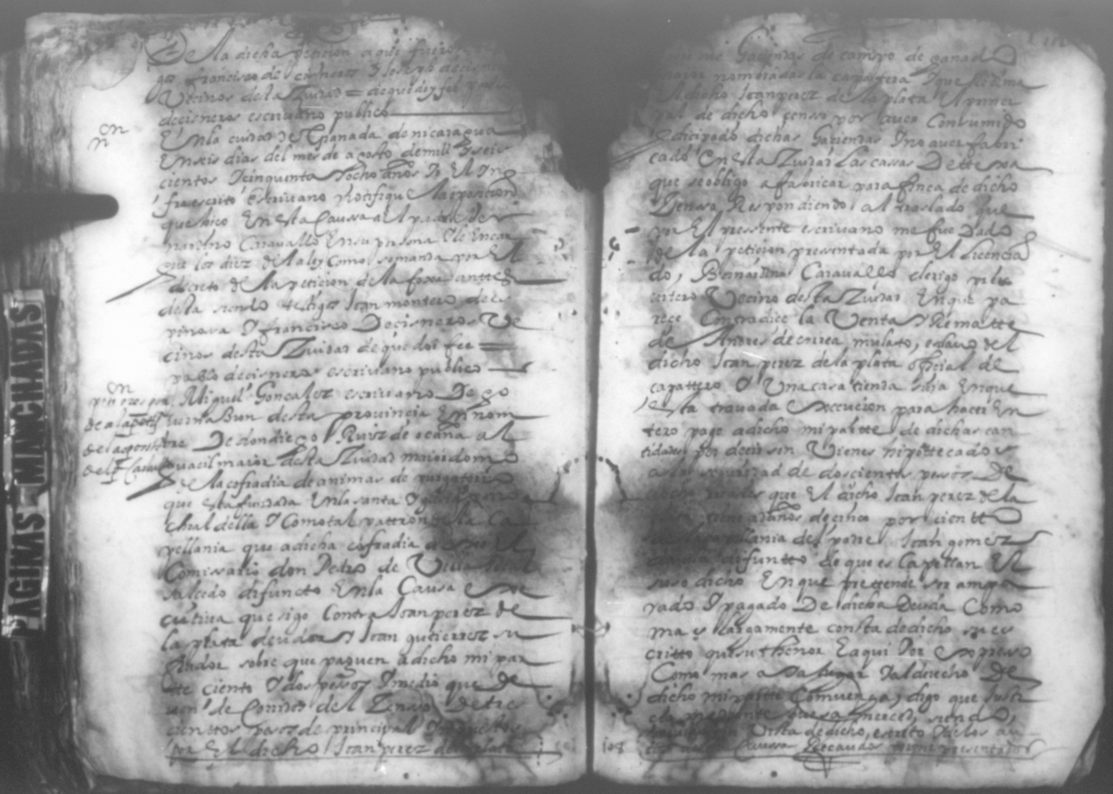 Temática: Civil de Granada. Año de 1654. Don Diego Ruiz de Ocaña, demanda ejecutivamente a Juan Pérez de la Plata y Juan Gutierrez, su fiador por los reditos de una cantidad que prestó al primero del capital de una capellanía fundada por don Pedro de Villa Real