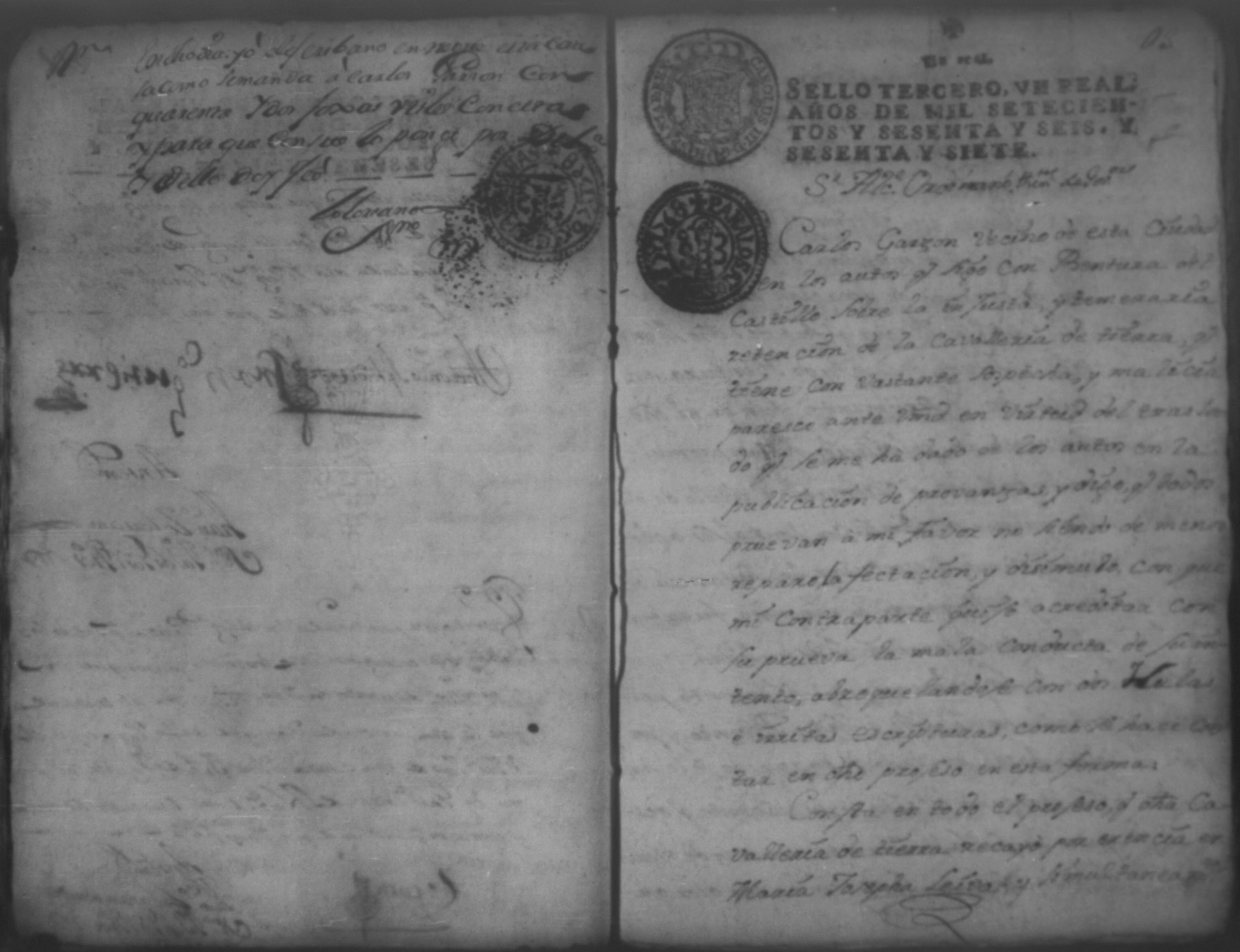 Temática: Nicaragua, 1767. Demanda puesta por Carlos Garzon contra el Teniente Buenaventura del Castillo sobre la venta de una cavalleria de tierra.