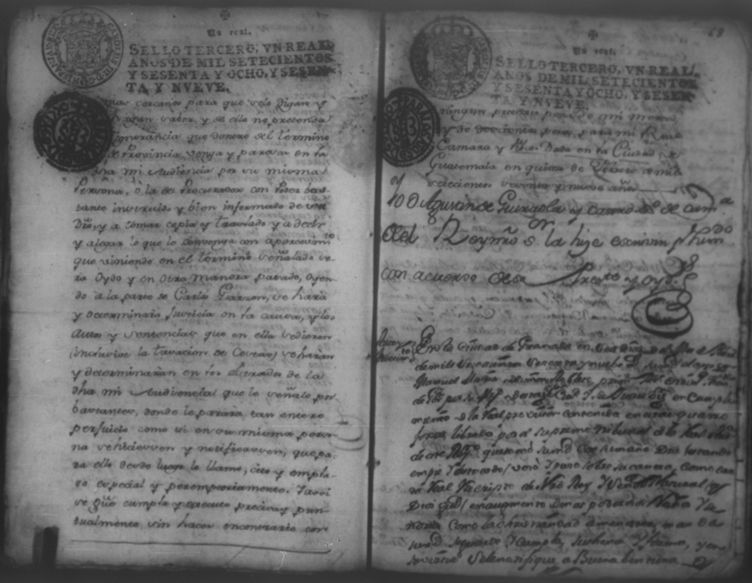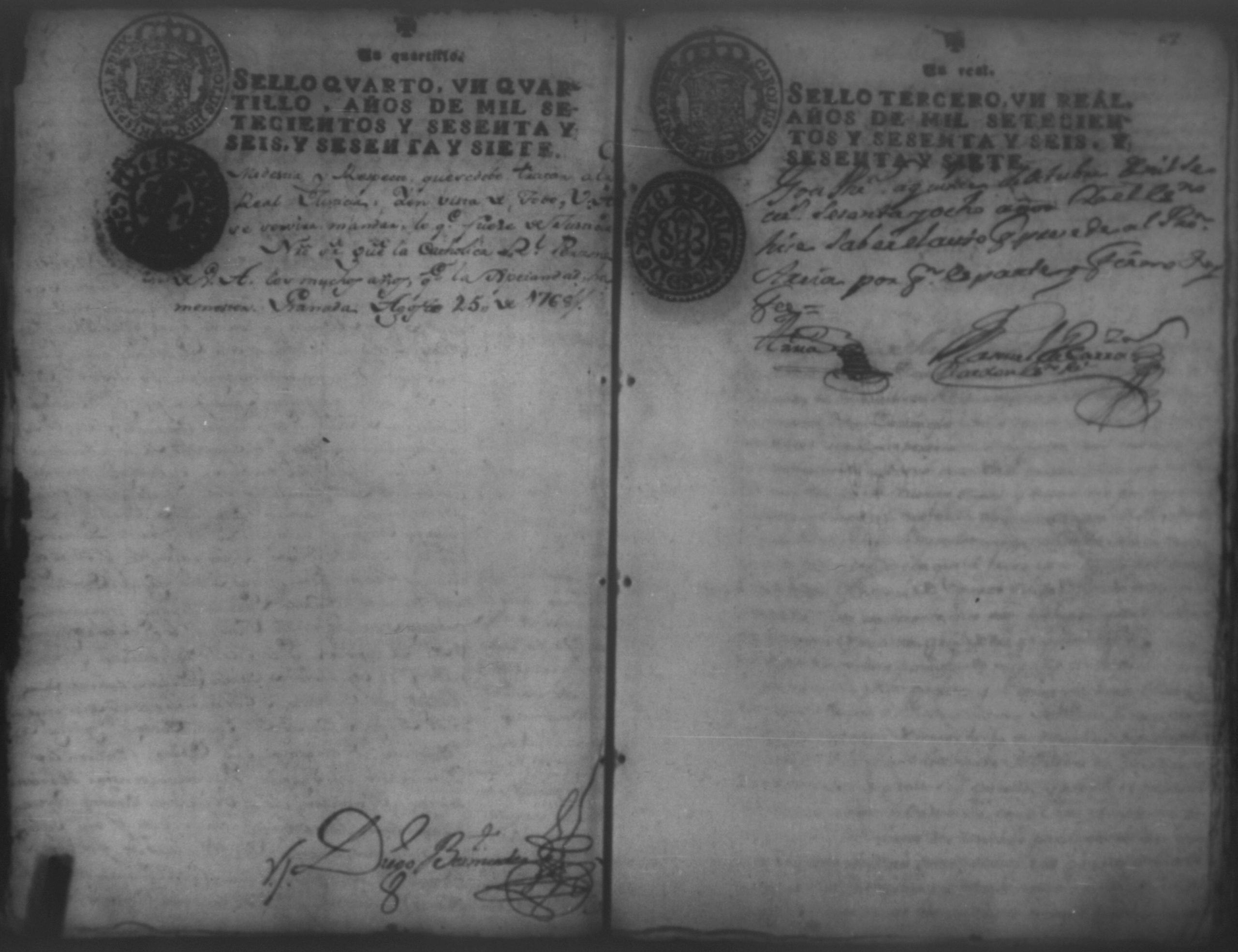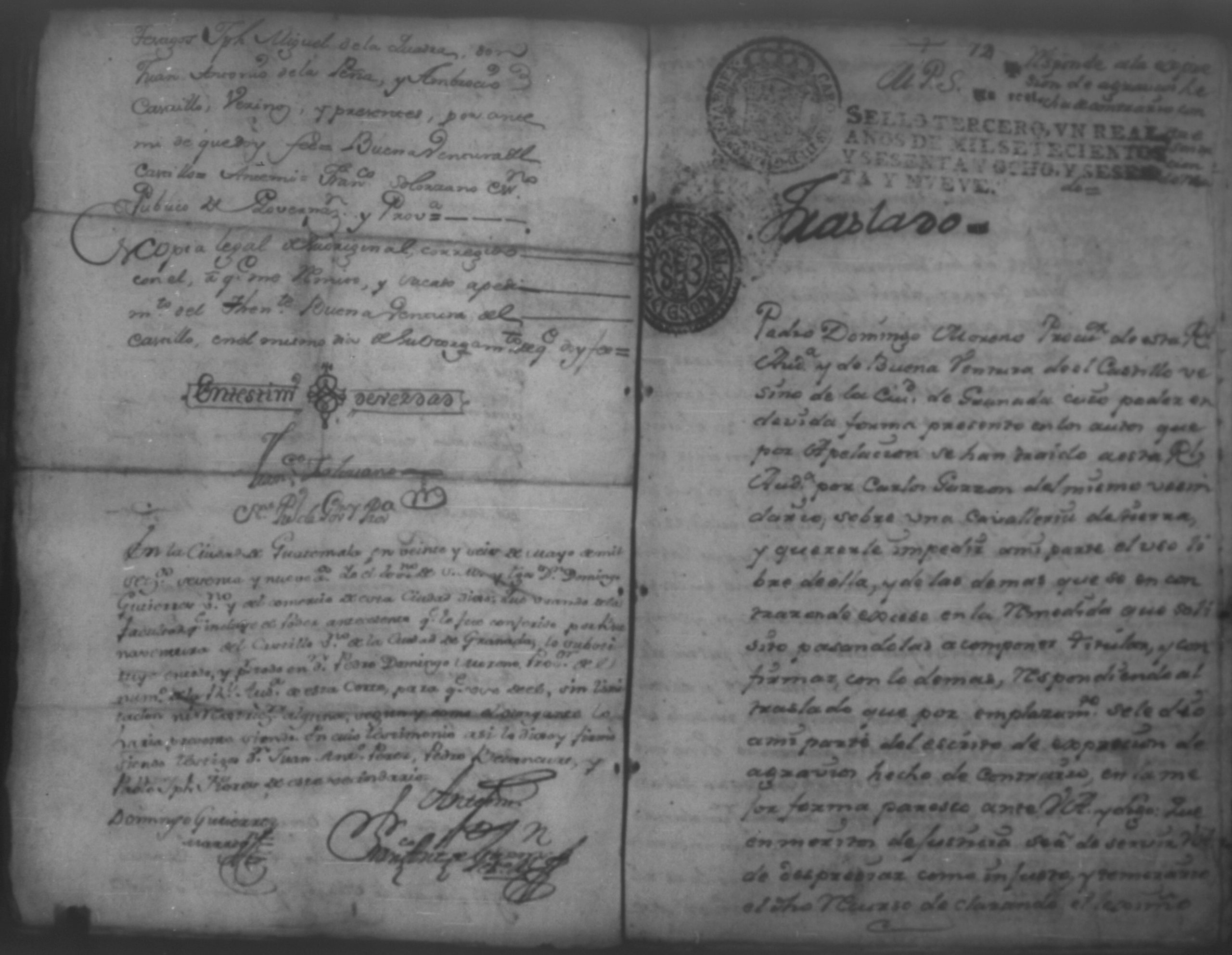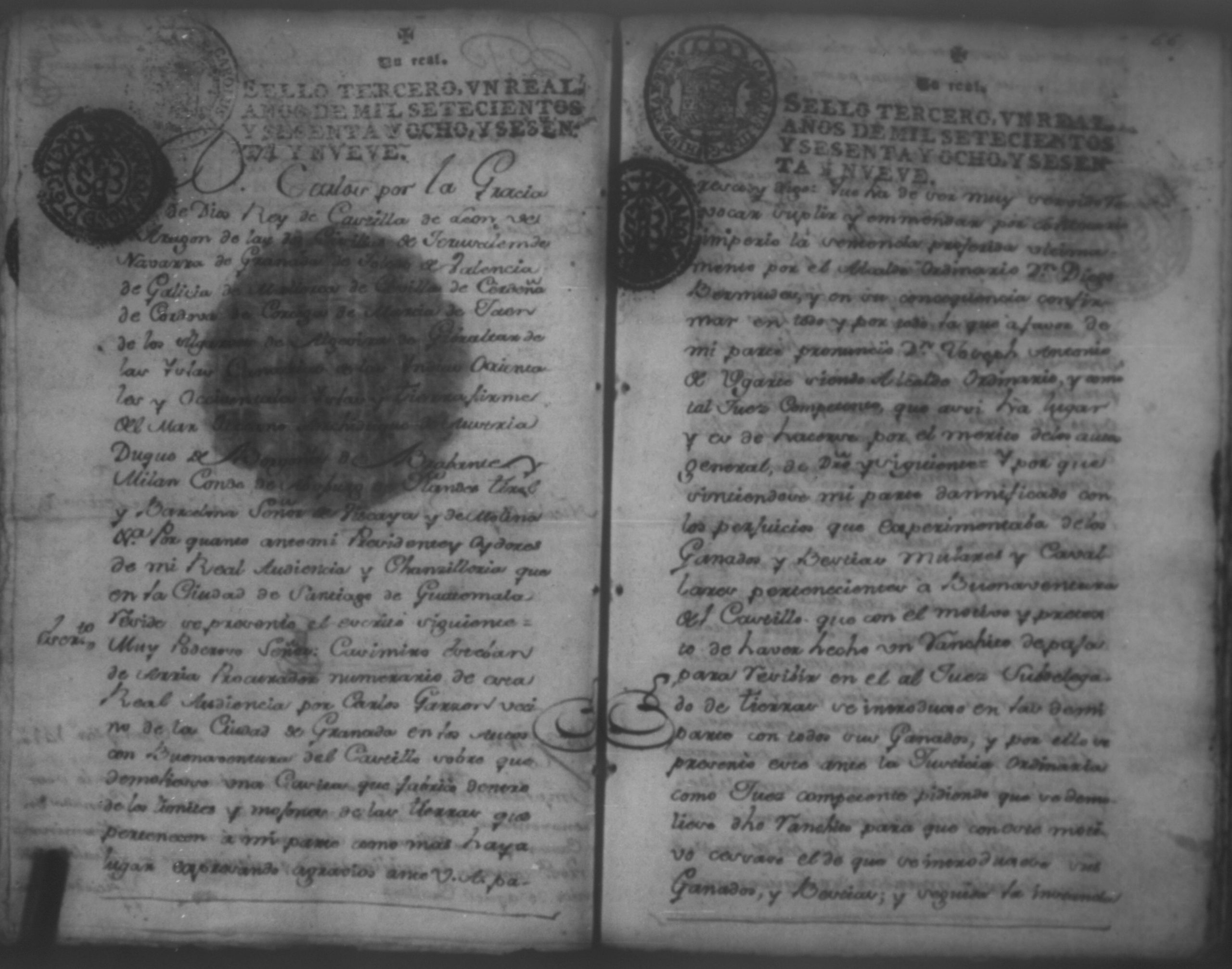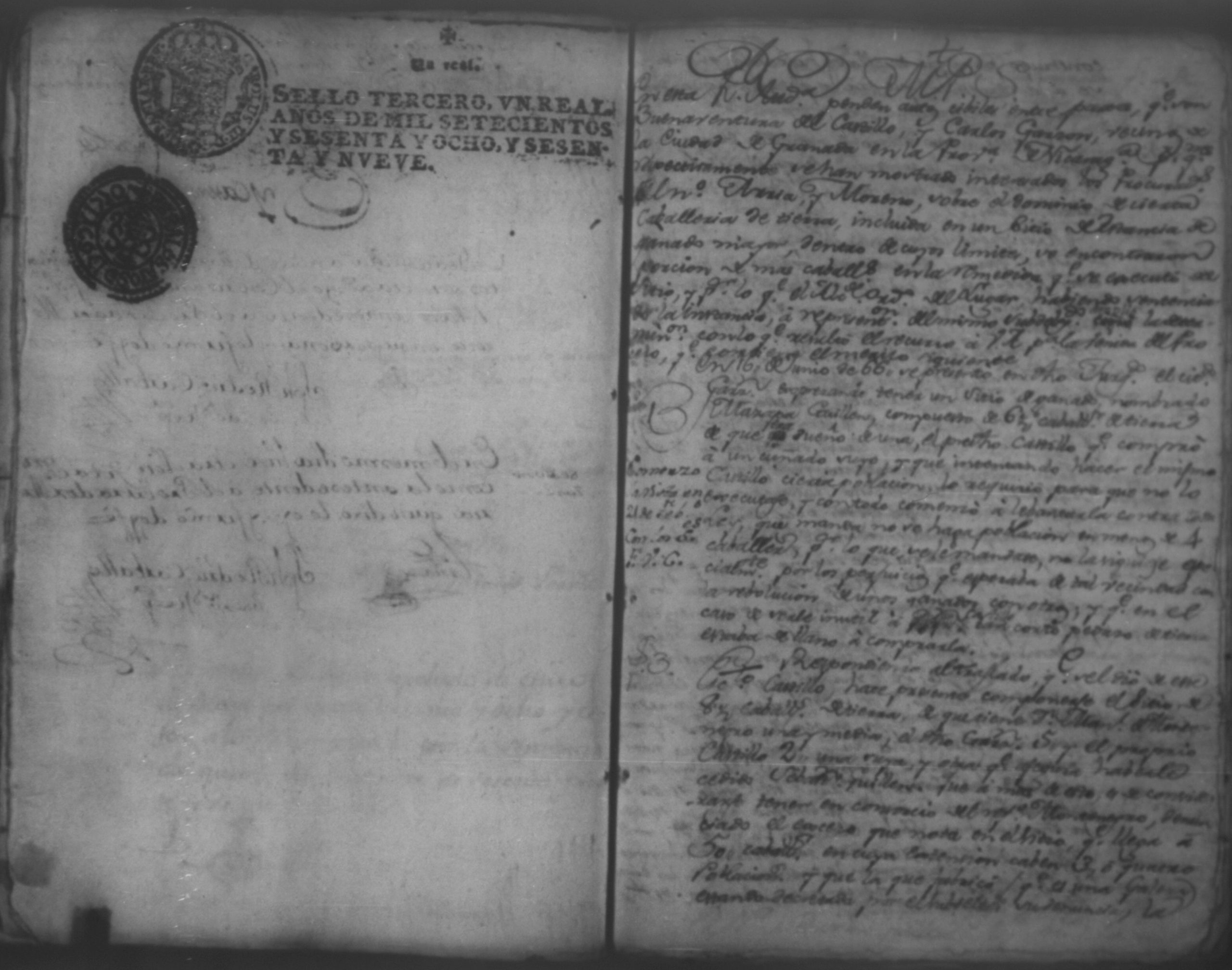 Temática: Nicaragua, 1767. Demanda puesta por Carlos Garzon contra el Teniente Buenaventura del Castillo sobre la venta de una cavalleria de tierra.