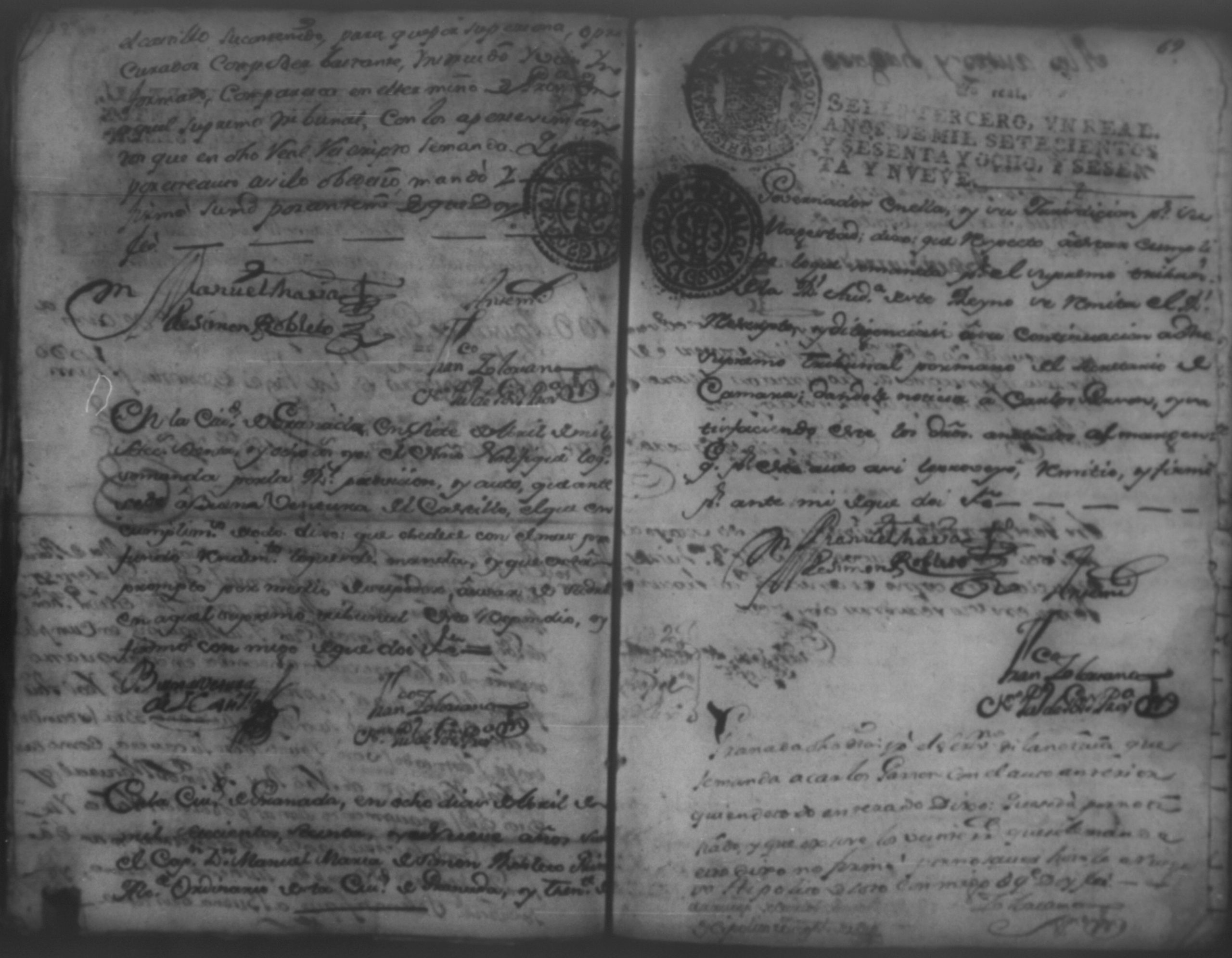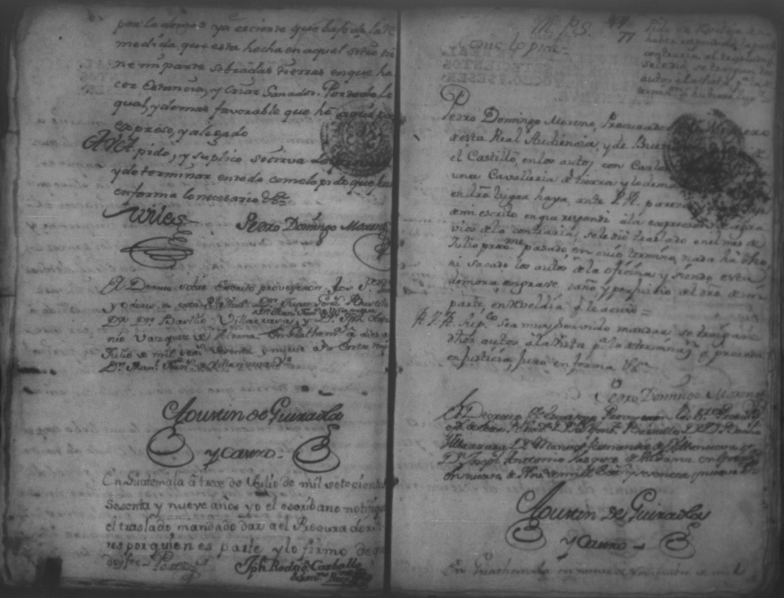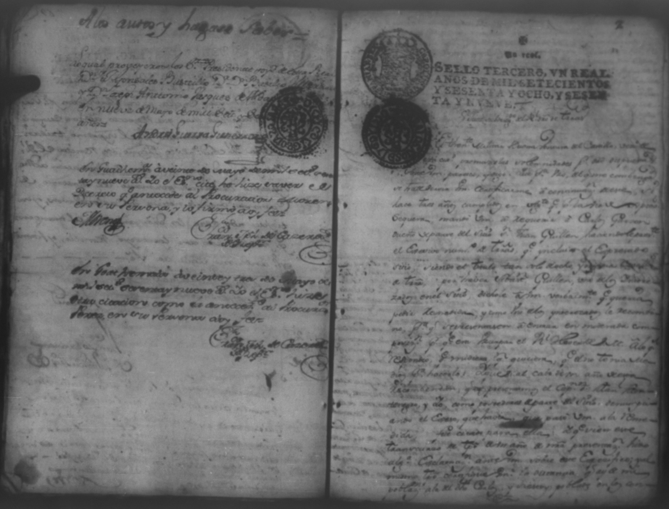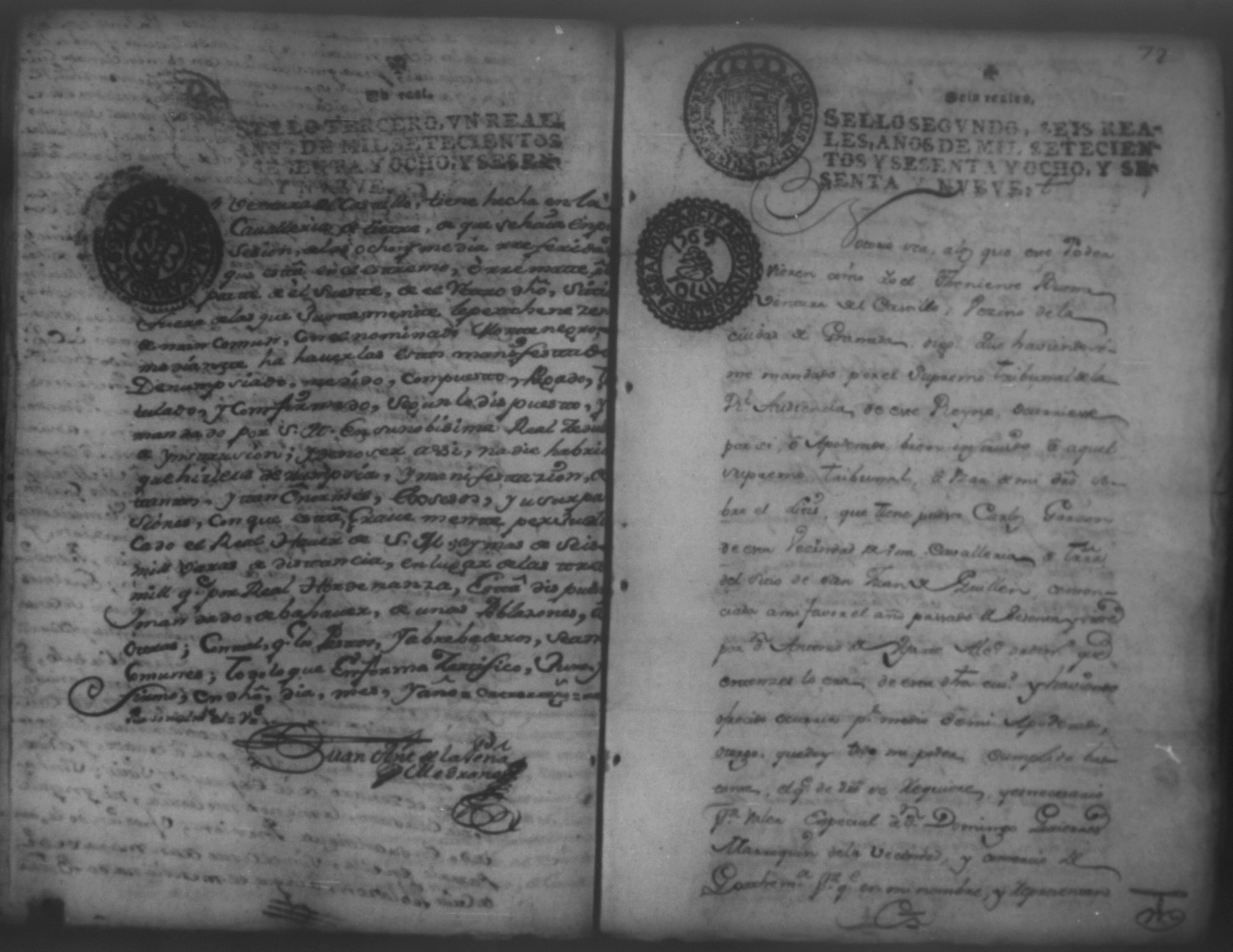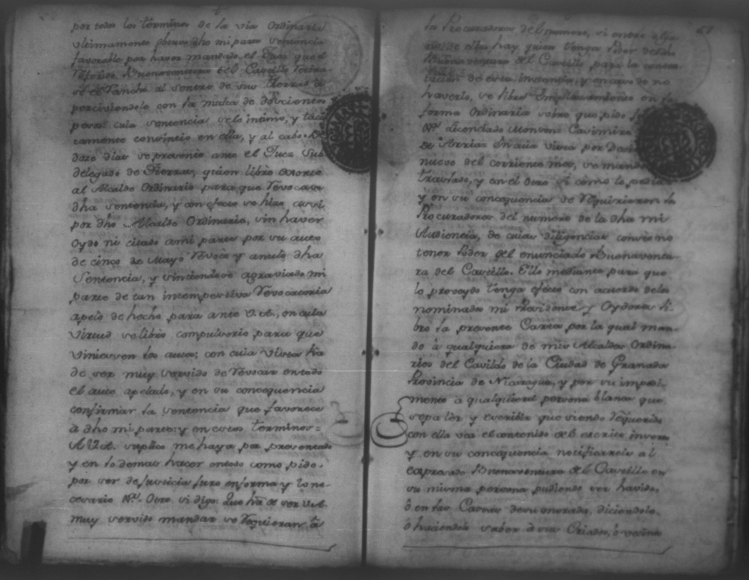 Temática: Nicaragua, 1767. Demanda puesta por Carlos Garzon contra el Teniente Buenaventura del Castillo sobre la venta de una cavalleria de tierra.