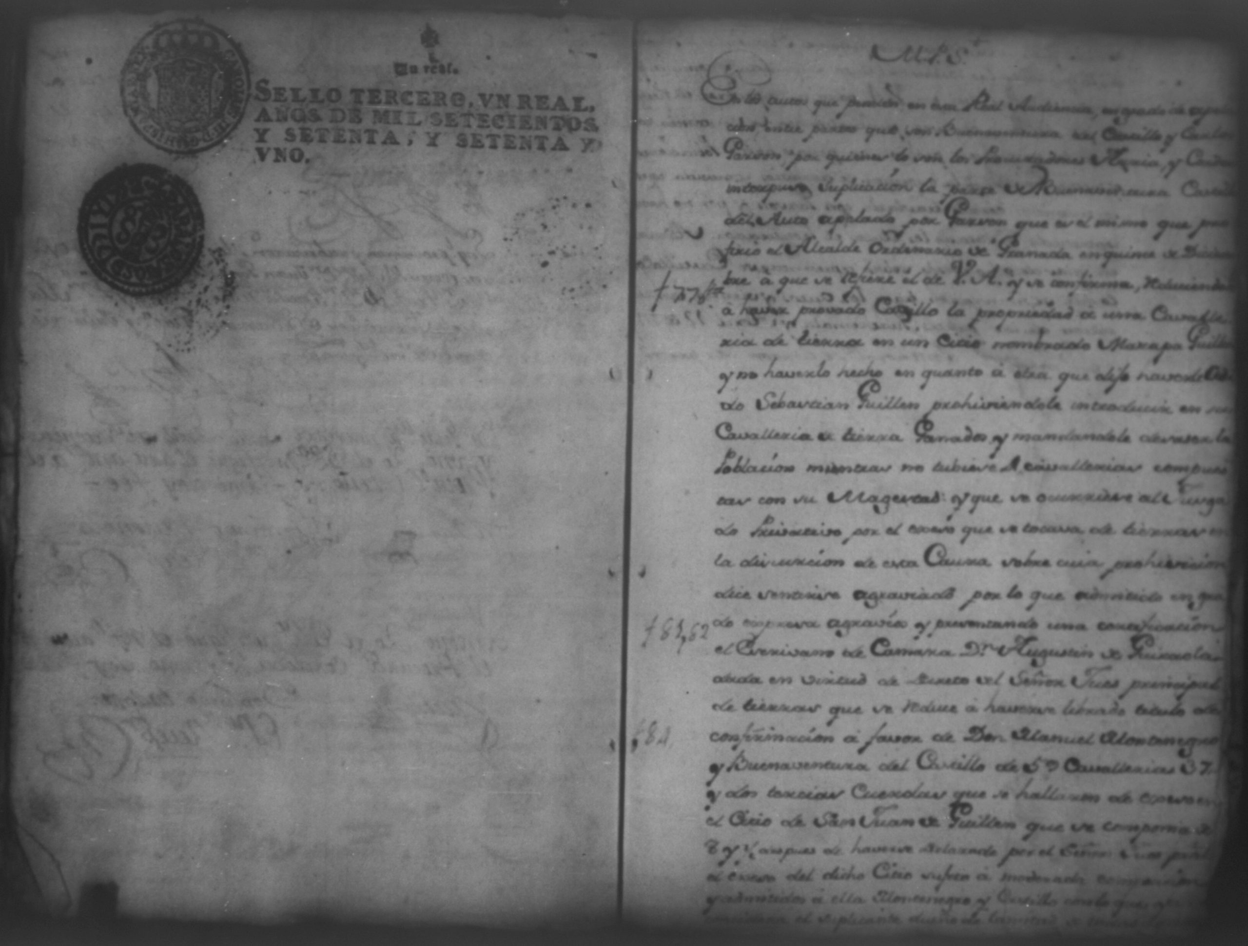 Temática: Nicaragua, 1767. Demanda puesta por Carlos Garzon contra el Teniente Buenaventura del Castillo sobre la venta de una cavalleria de tierra.