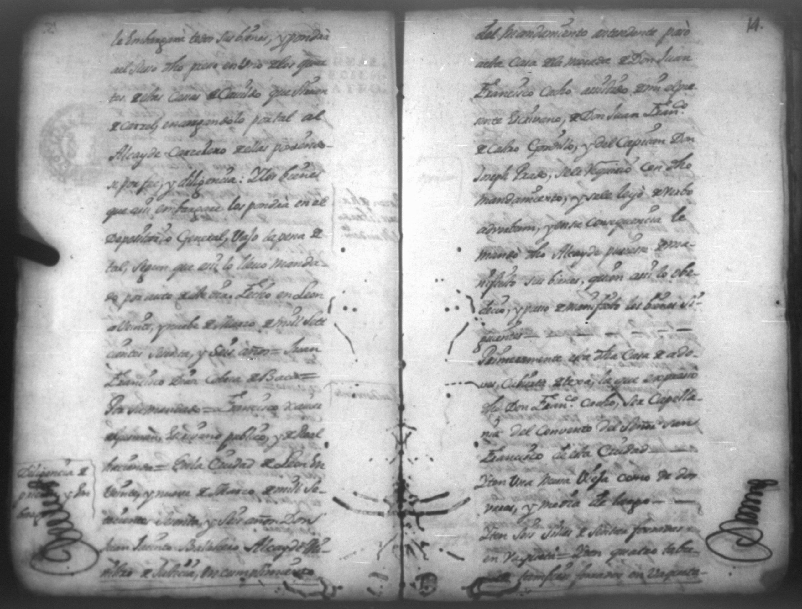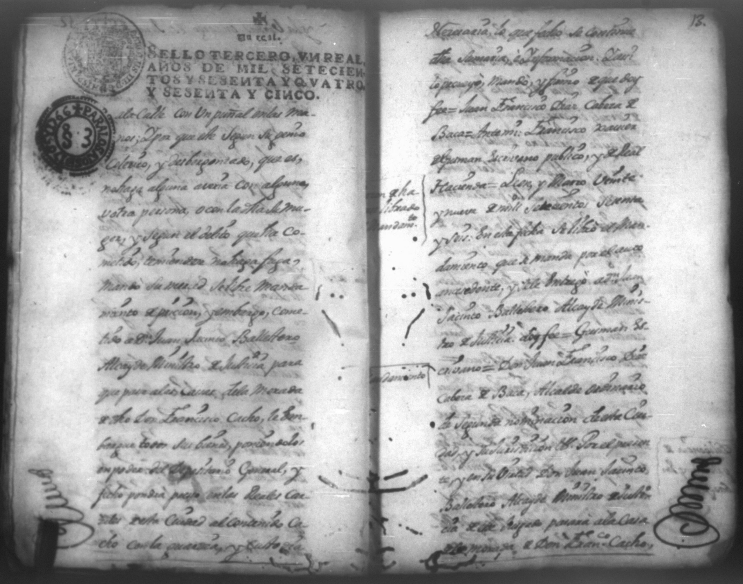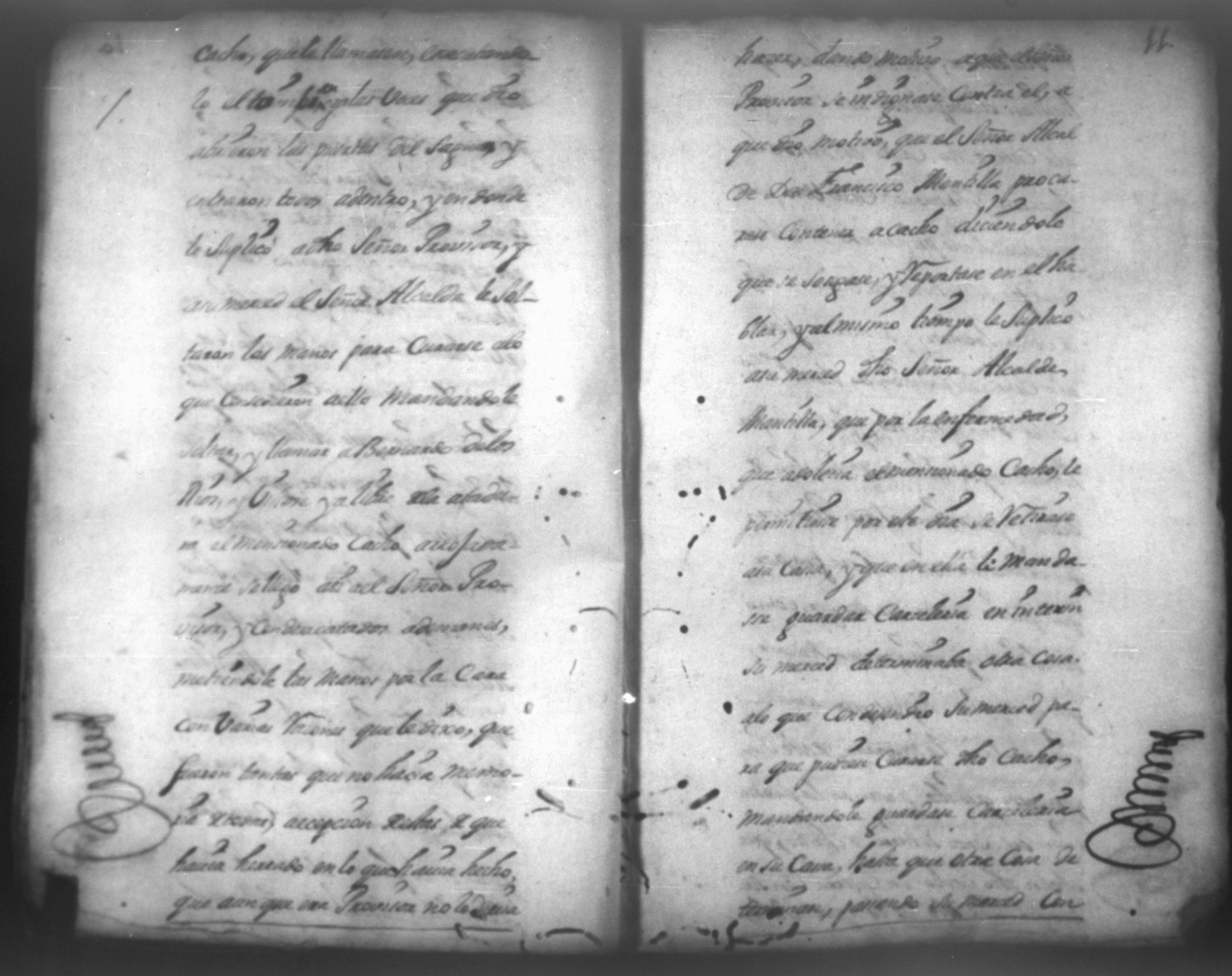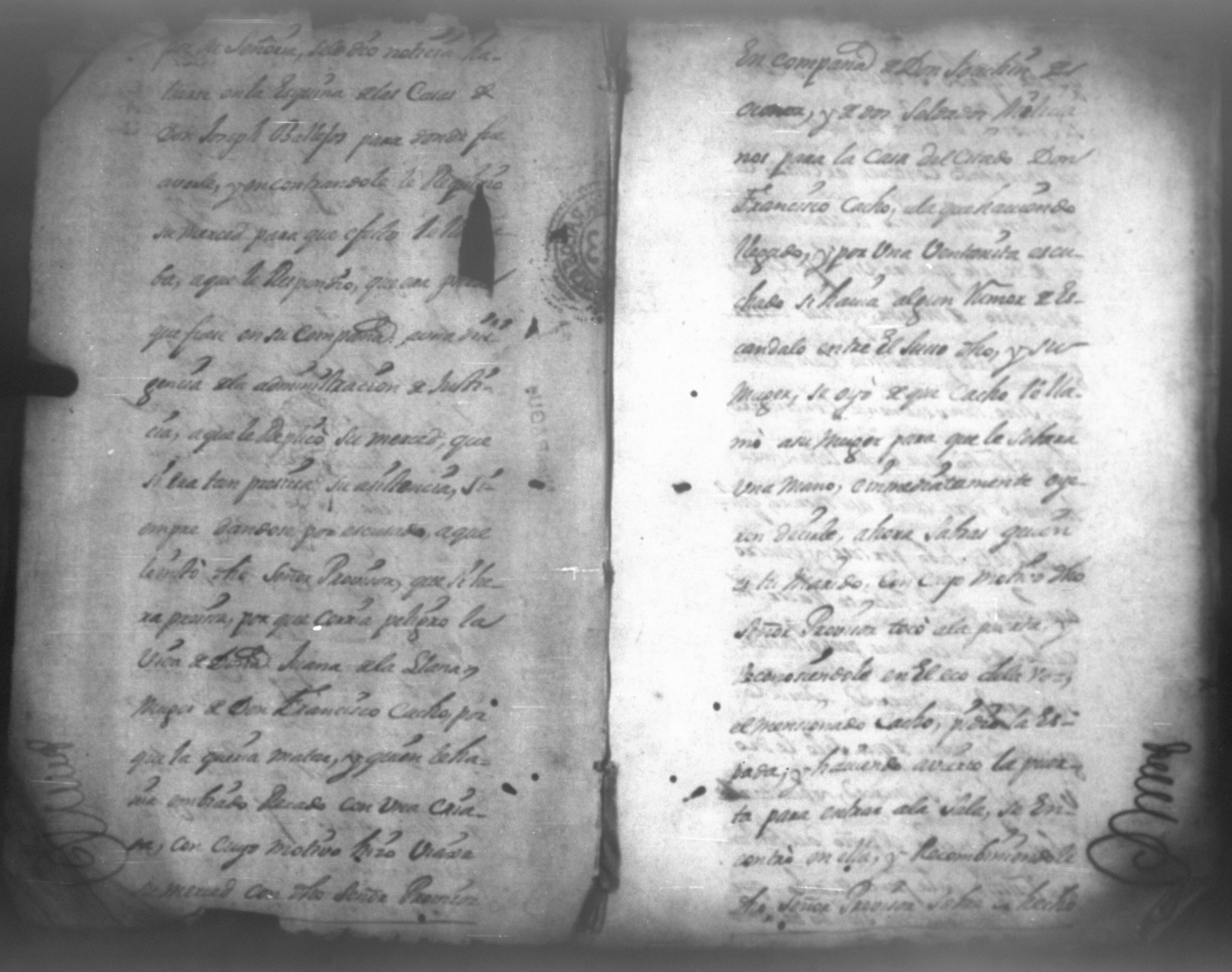 Temática: En la ciudad de Leon, Don Pedro Chamorro por aviso que le hiciero que Don Francisco Cacho vecino de esta ciudad de León queria matar a su mujer Doña Juana Garcia de la Llana mando con un criado a Don Juan Francisco Cabeza de Baca, Alcalde Ordinario segundo voto de esta referida ciudad de Leon a fin de que le auxilie para impedir la [...] denuncia que se la habia hecho