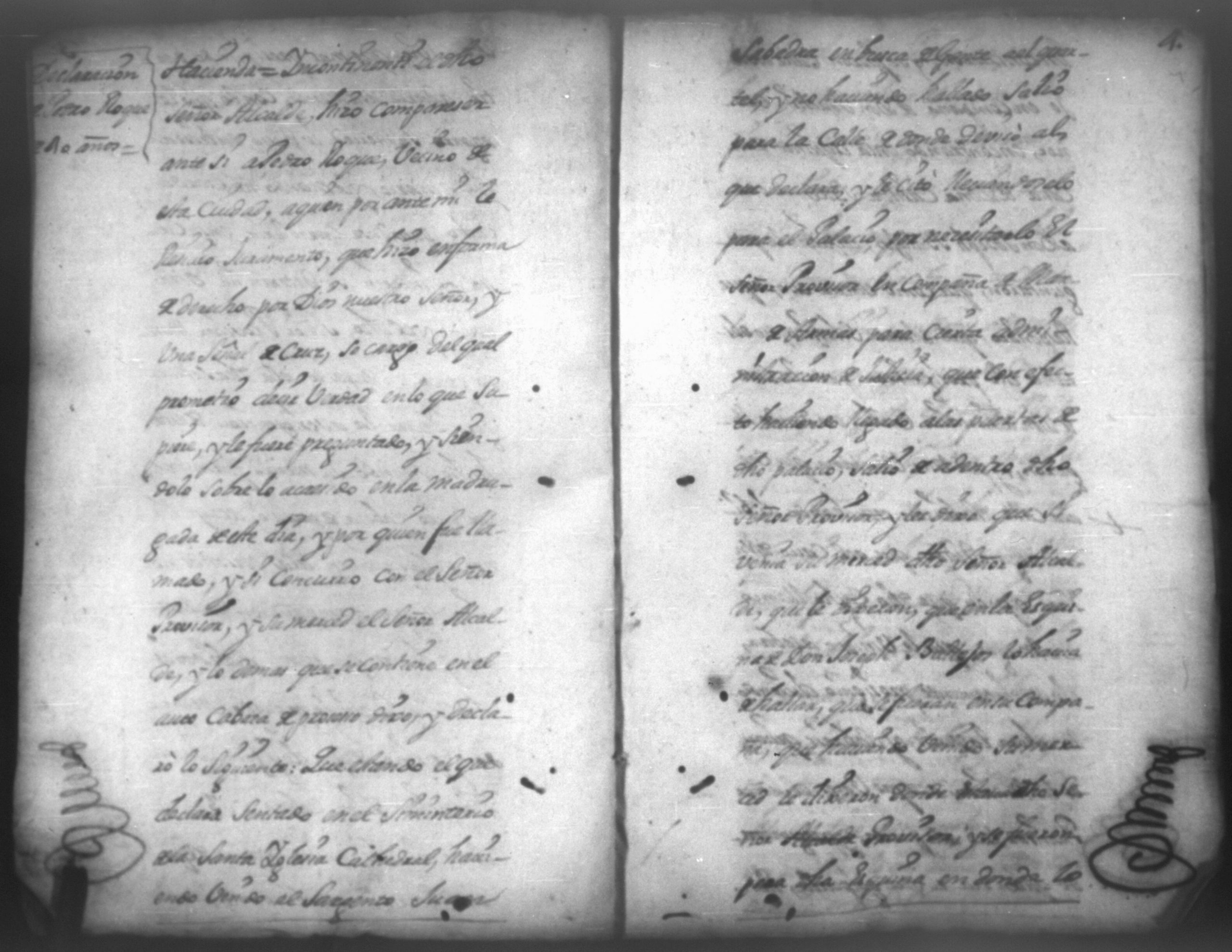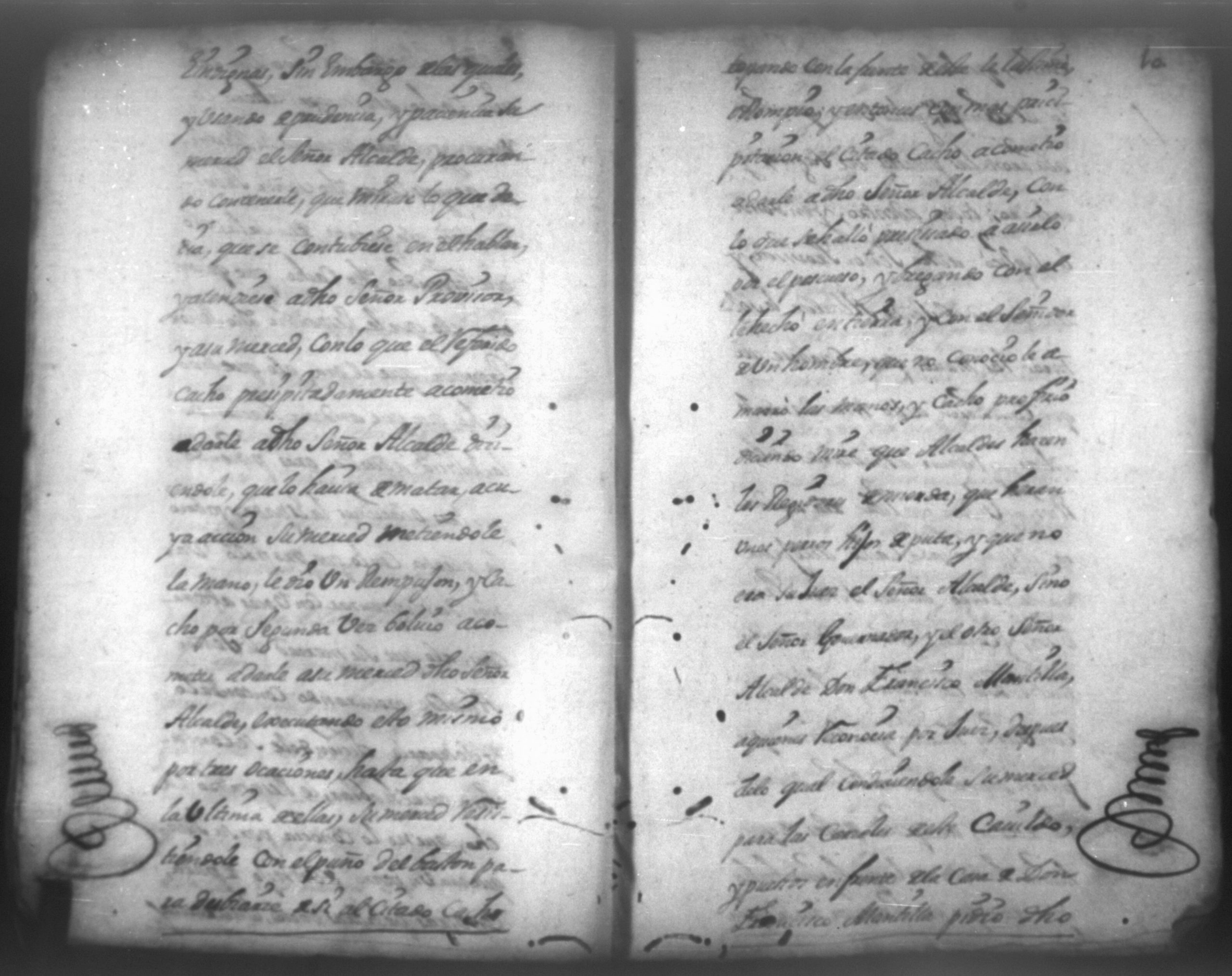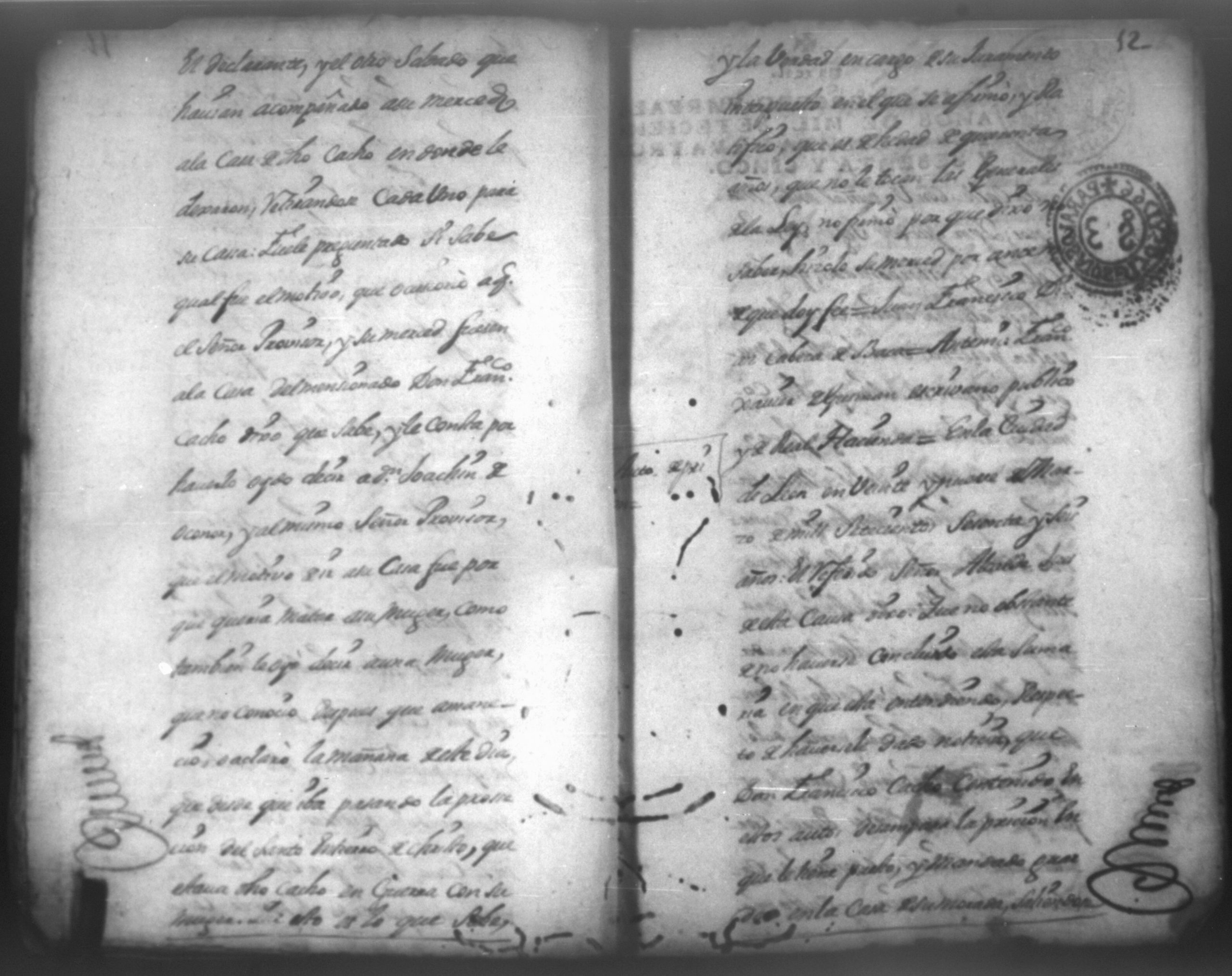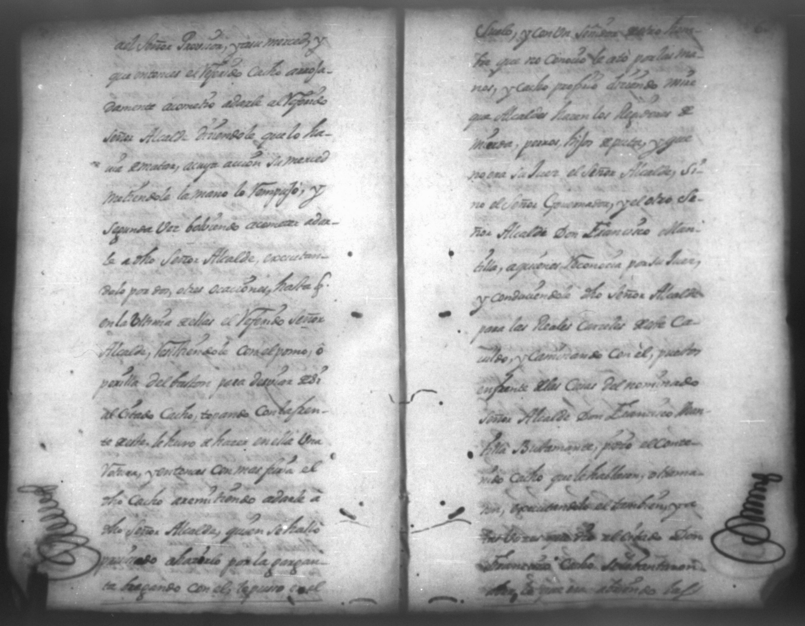 Temática: En la ciudad de Leon, Don Pedro Chamorro por aviso que le hiciero que Don Francisco Cacho vecino de esta ciudad de León queria matar a su mujer Doña Juana Garcia de la Llana mando con un criado a Don Juan Francisco Cabeza de Baca, Alcalde Ordinario segundo voto de esta referida ciudad de Leon a fin de que le auxilie para impedir la [...] denuncia que se la habia hecho
