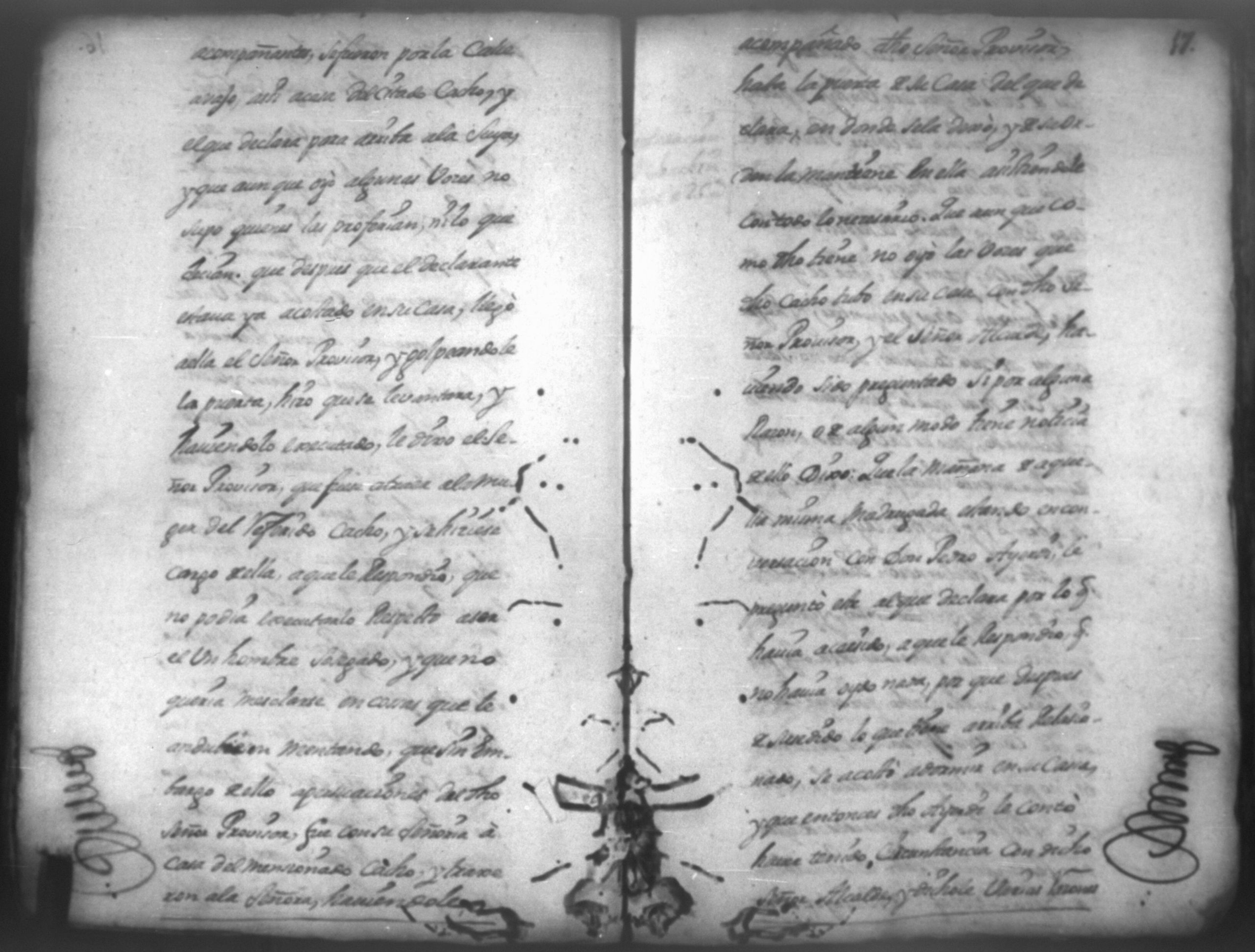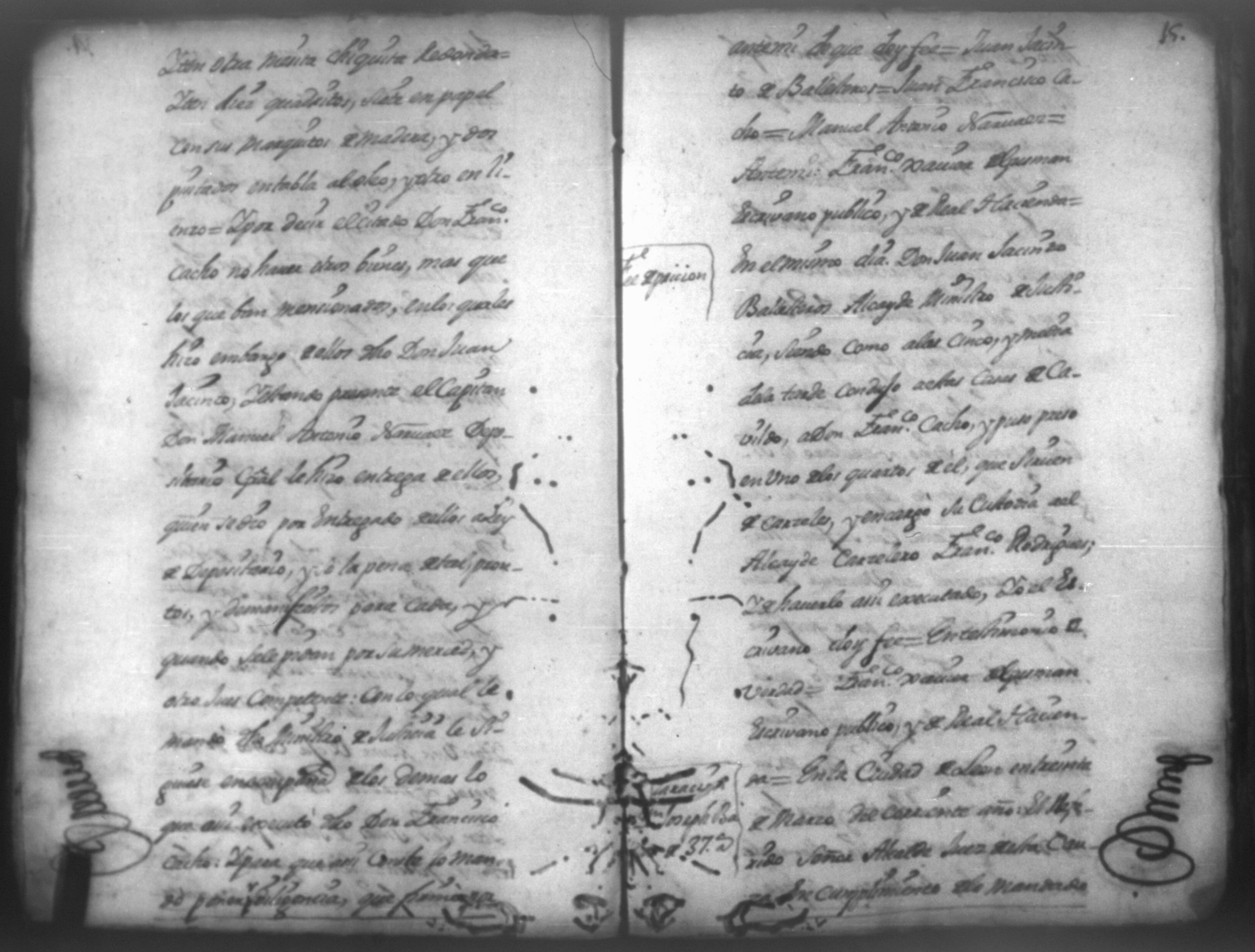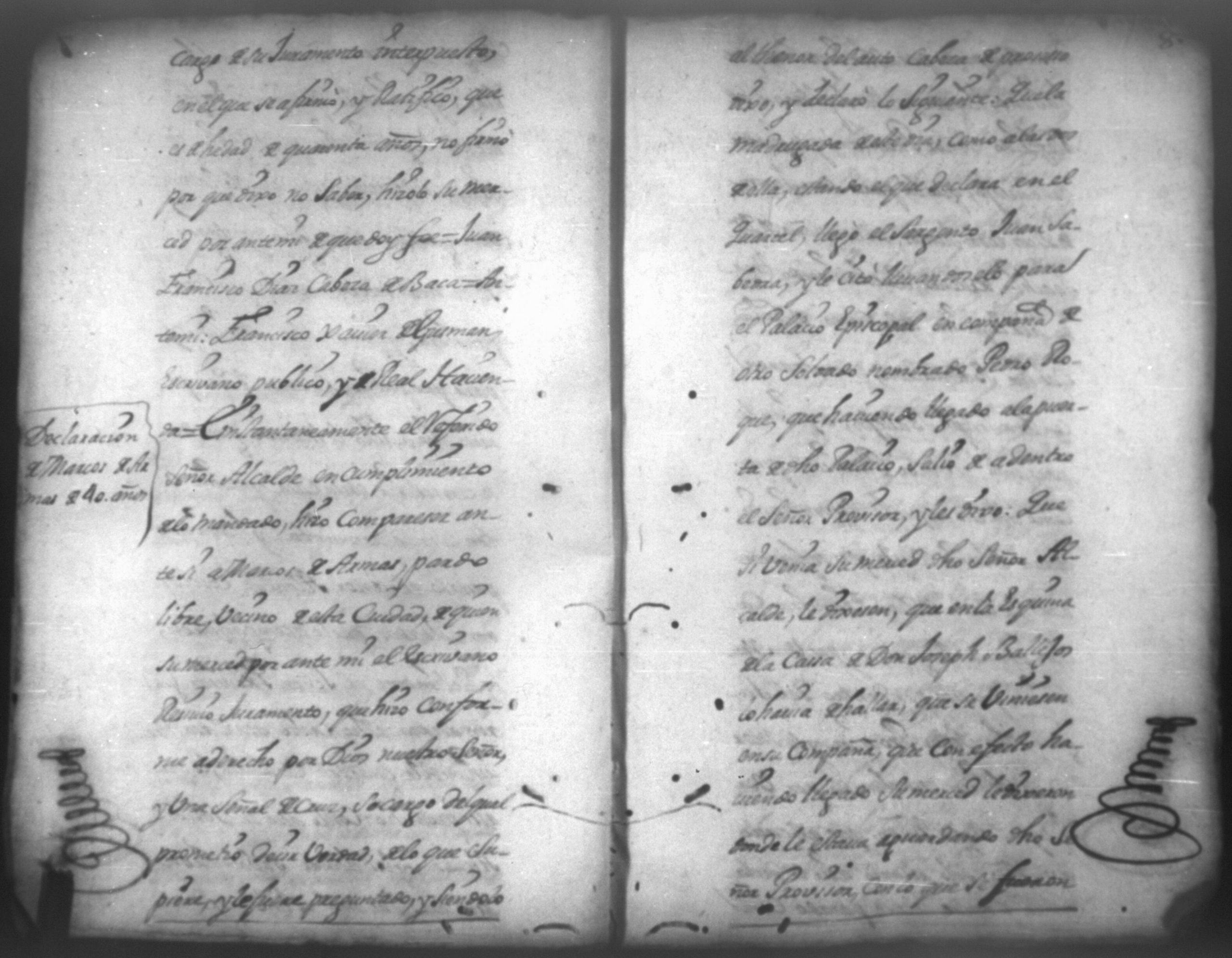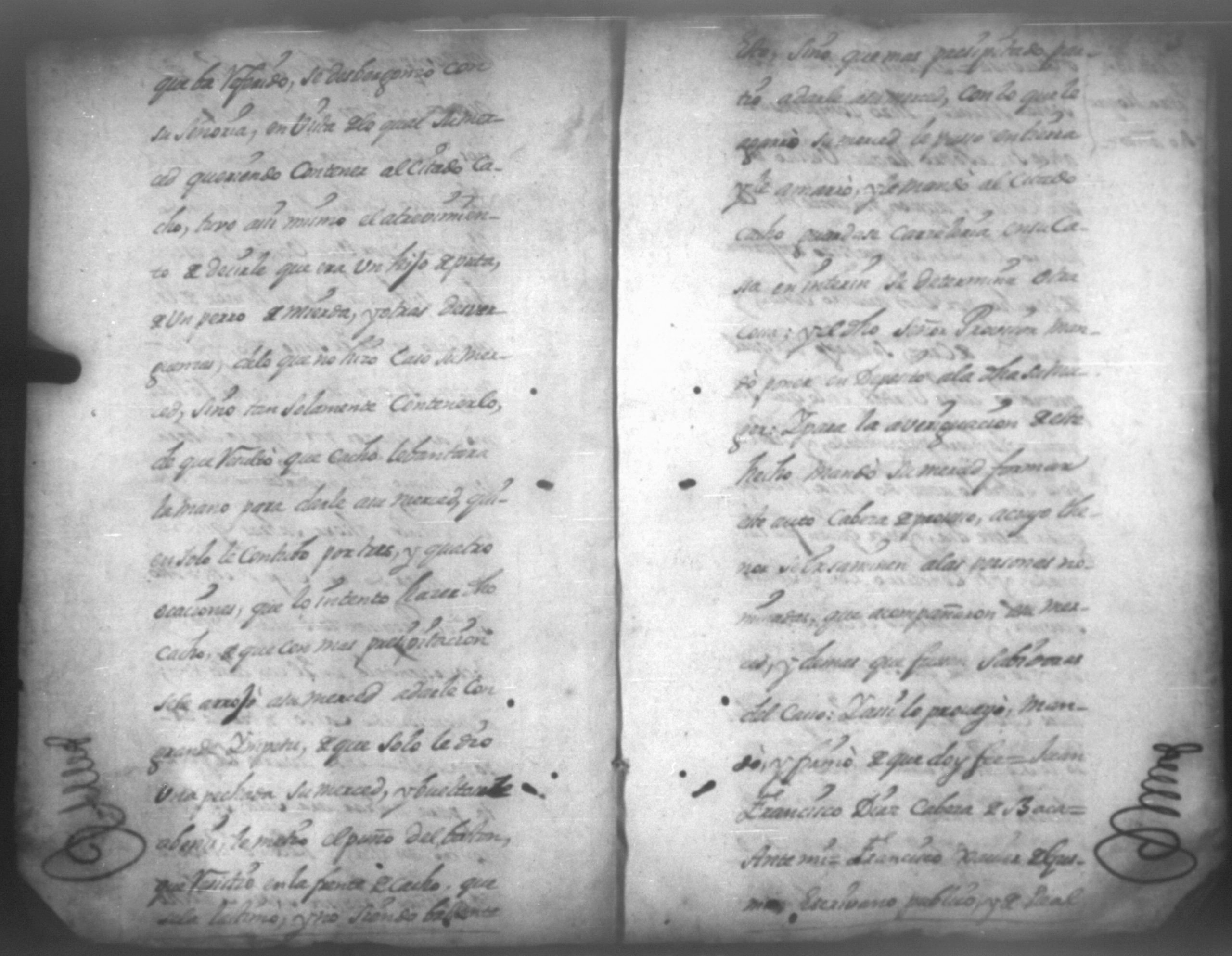 Temática: En la ciudad de Leon, Don Pedro Chamorro por aviso que le hiciero que Don Francisco Cacho vecino de esta ciudad de León queria matar a su mujer Doña Juana Garcia de la Llana mando con un criado a Don Juan Francisco Cabeza de Baca, Alcalde Ordinario segundo voto de esta referida ciudad de Leon a fin de que le auxilie para impedir la [...] denuncia que se la habia hecho