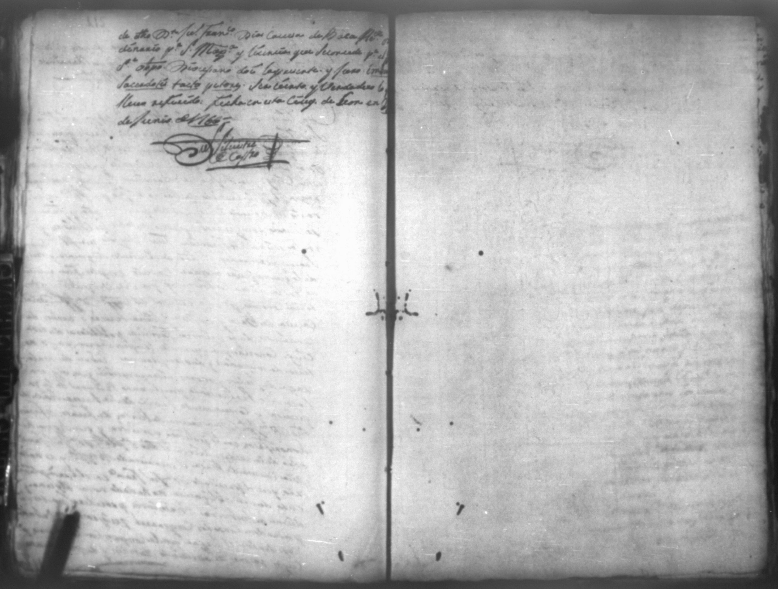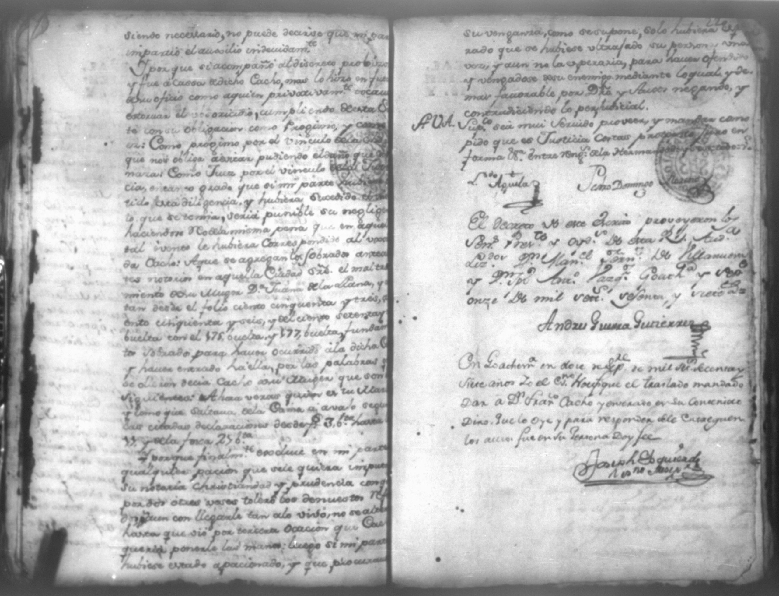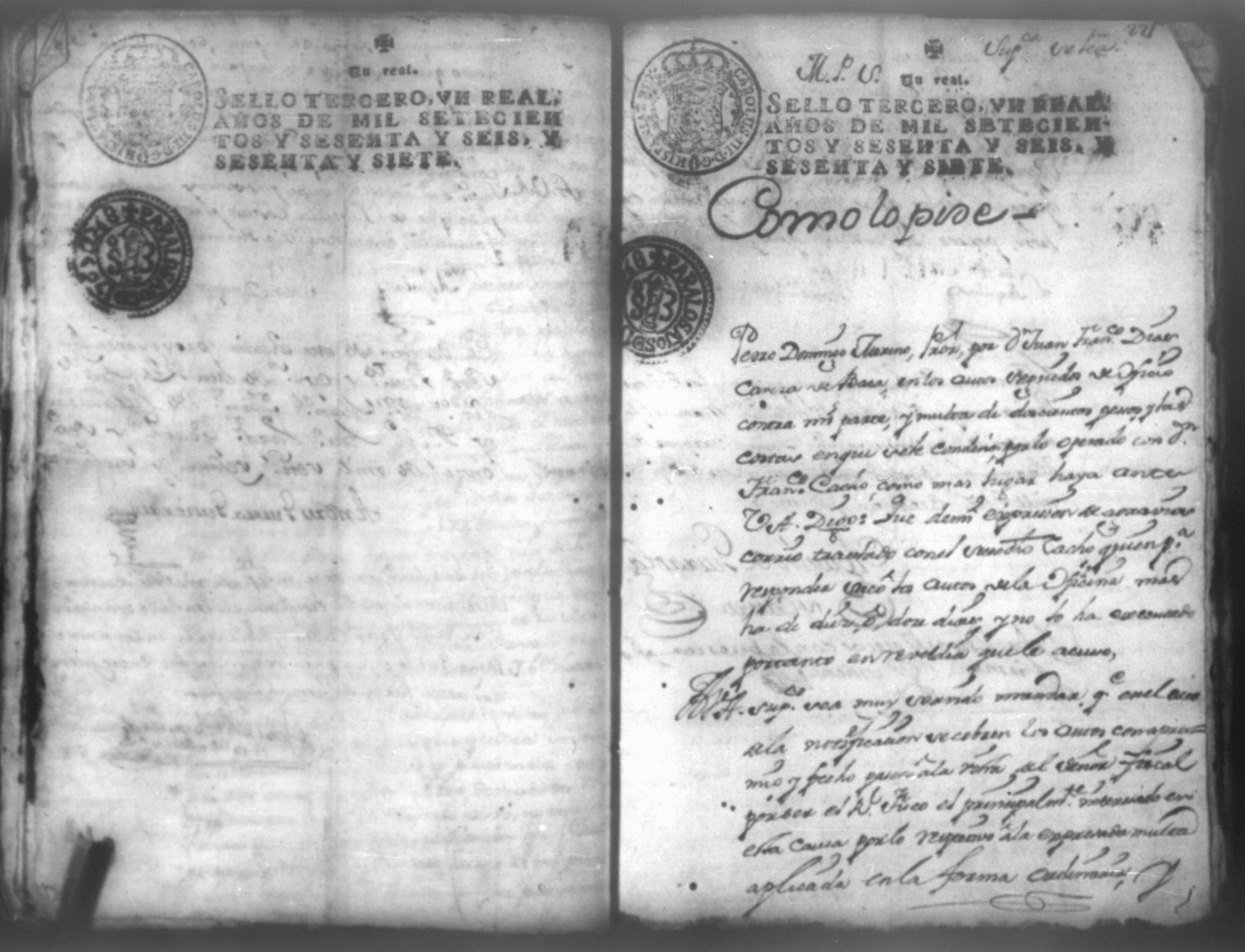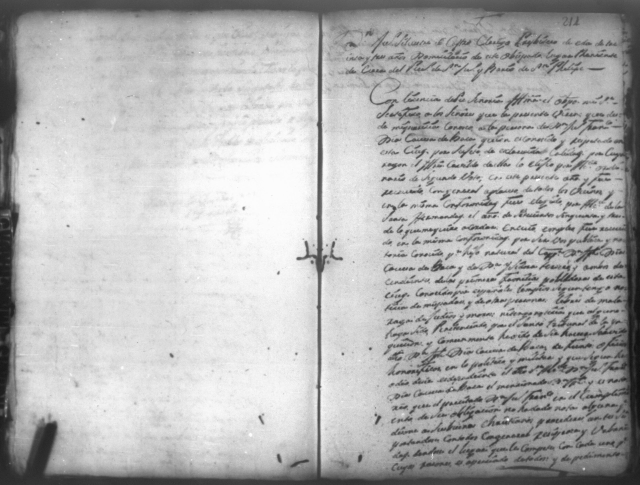 Temática: En la ciudad de Leon, Don Pedro Chamorro por aviso que le hiciero que Don Francisco Cacho vecino de esta ciudad de León queria matar a su mujer Doña Juana Garcia de la Llana mando con un criado a Don Juan Francisco Cabeza de Baca, Alcalde Ordinario segundo voto de esta referida ciudad de Leon a fin de que le auxilie para impedir la [...] denuncia que se la habia hecho