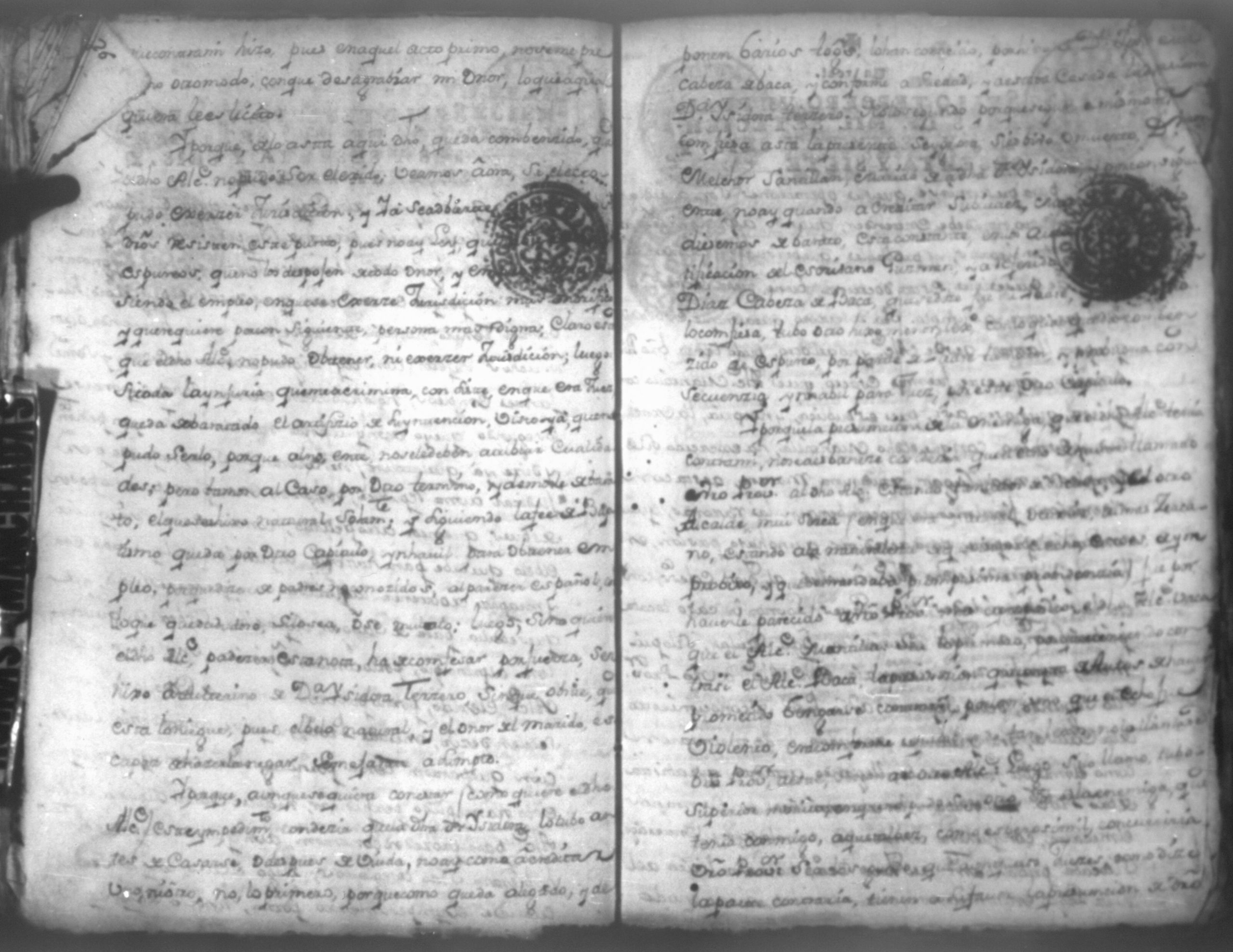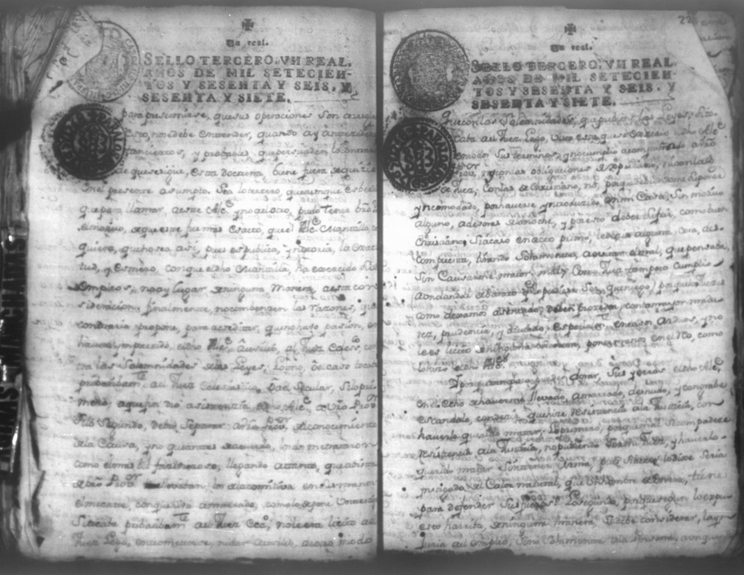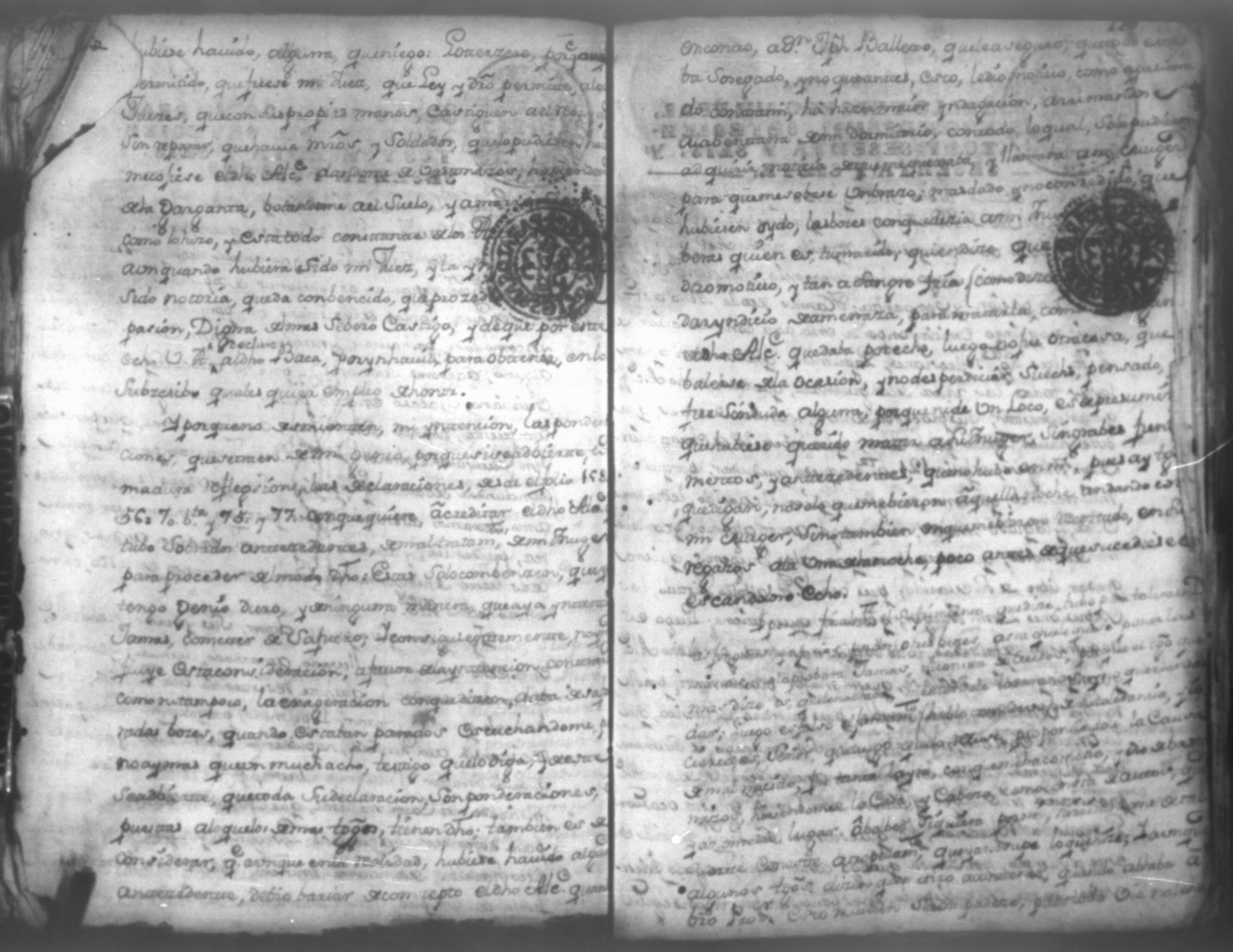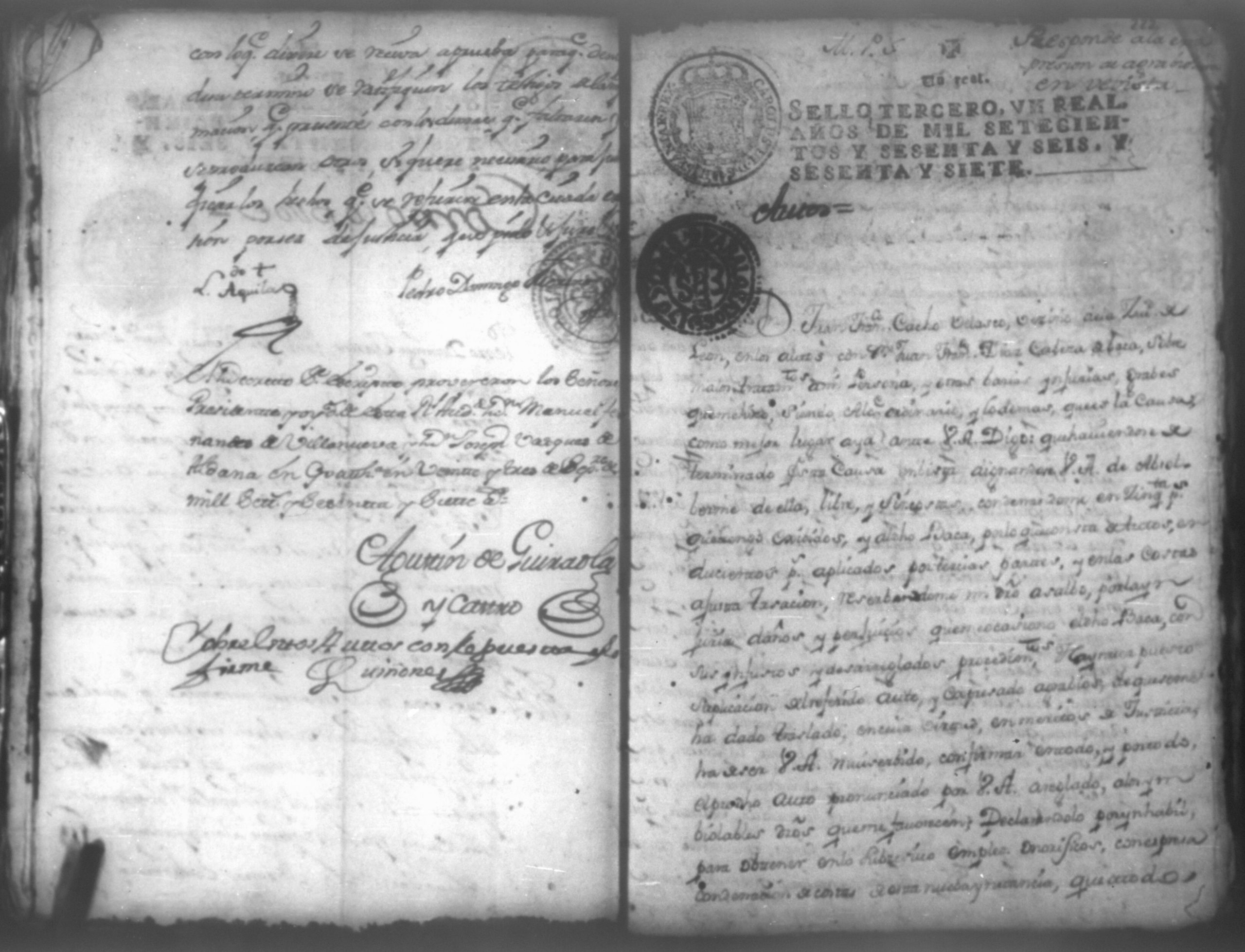 Temática: En la ciudad de Leon, Don Pedro Chamorro por aviso que le hiciero que Don Francisco Cacho vecino de esta ciudad de León queria matar a su mujer Doña Juana Garcia de la Llana mando con un criado a Don Juan Francisco Cabeza de Baca, Alcalde Ordinario segundo voto de esta referida ciudad de Leon a fin de que le auxilie para impedir la [...] denuncia que se la habia hecho