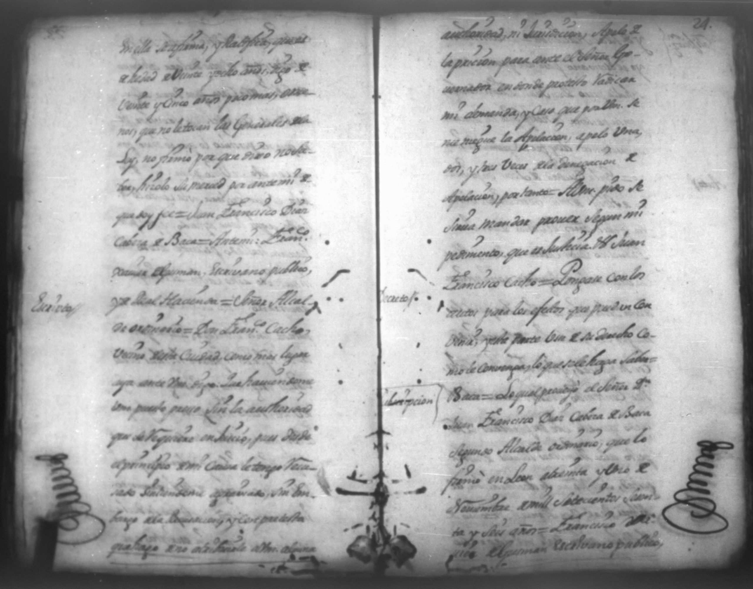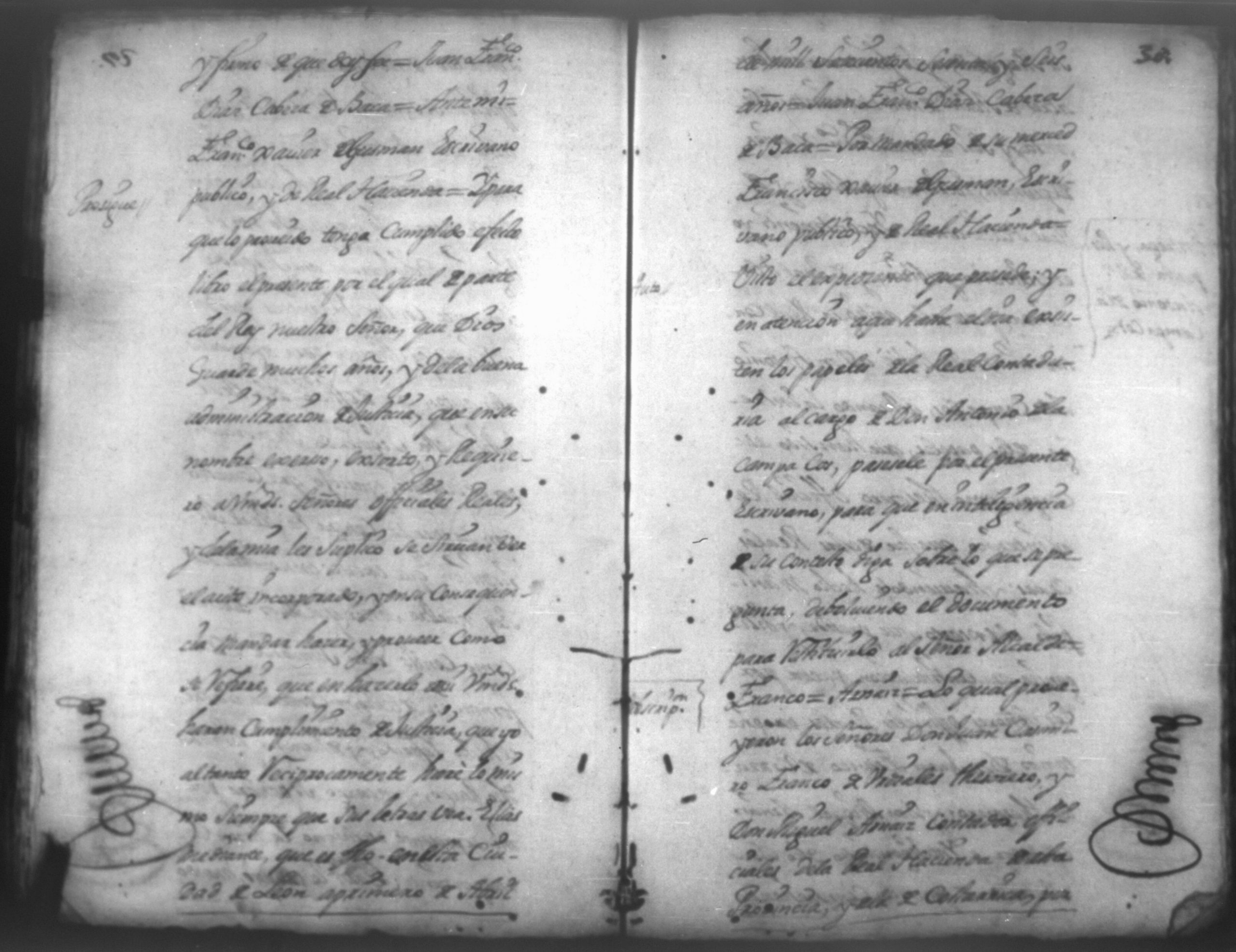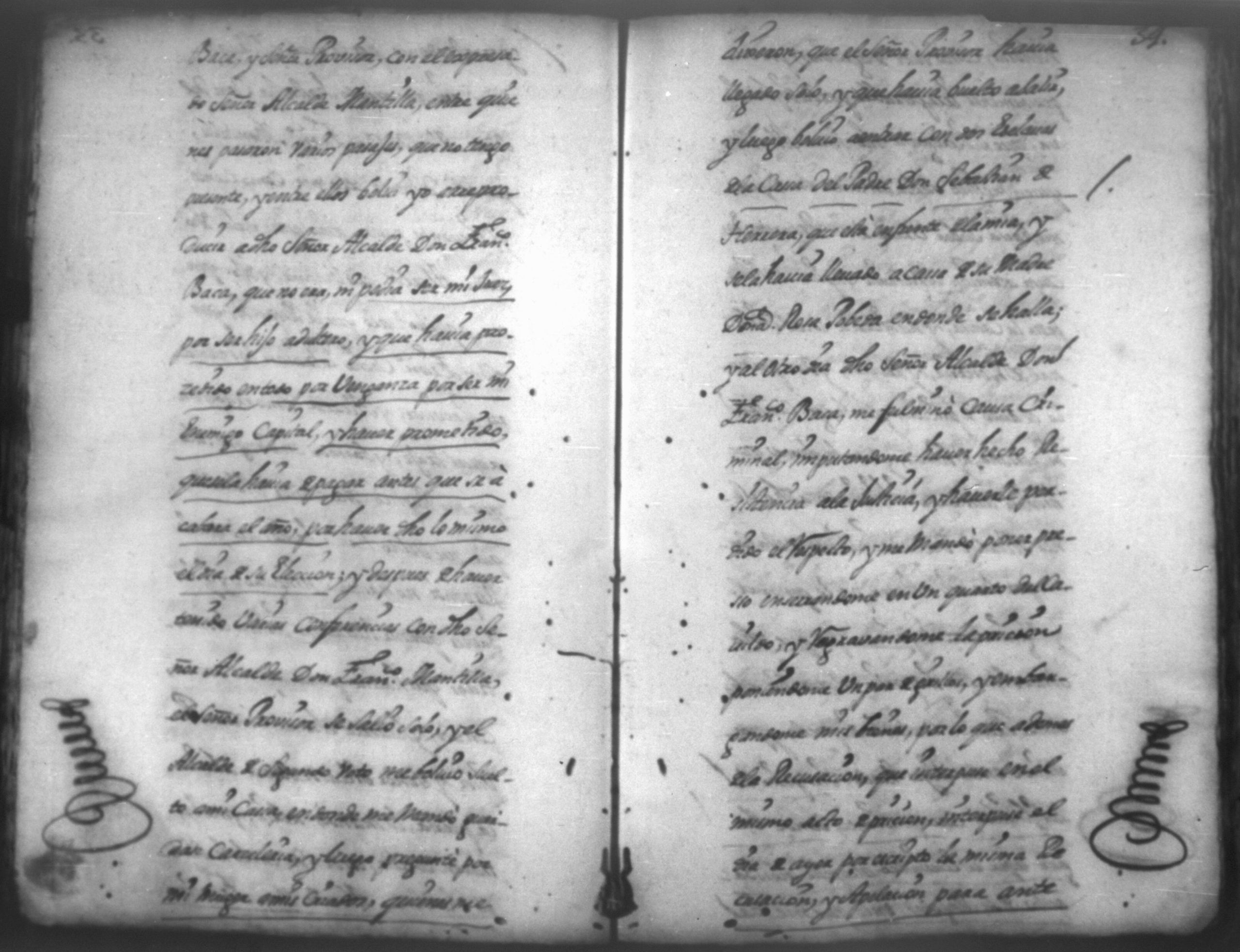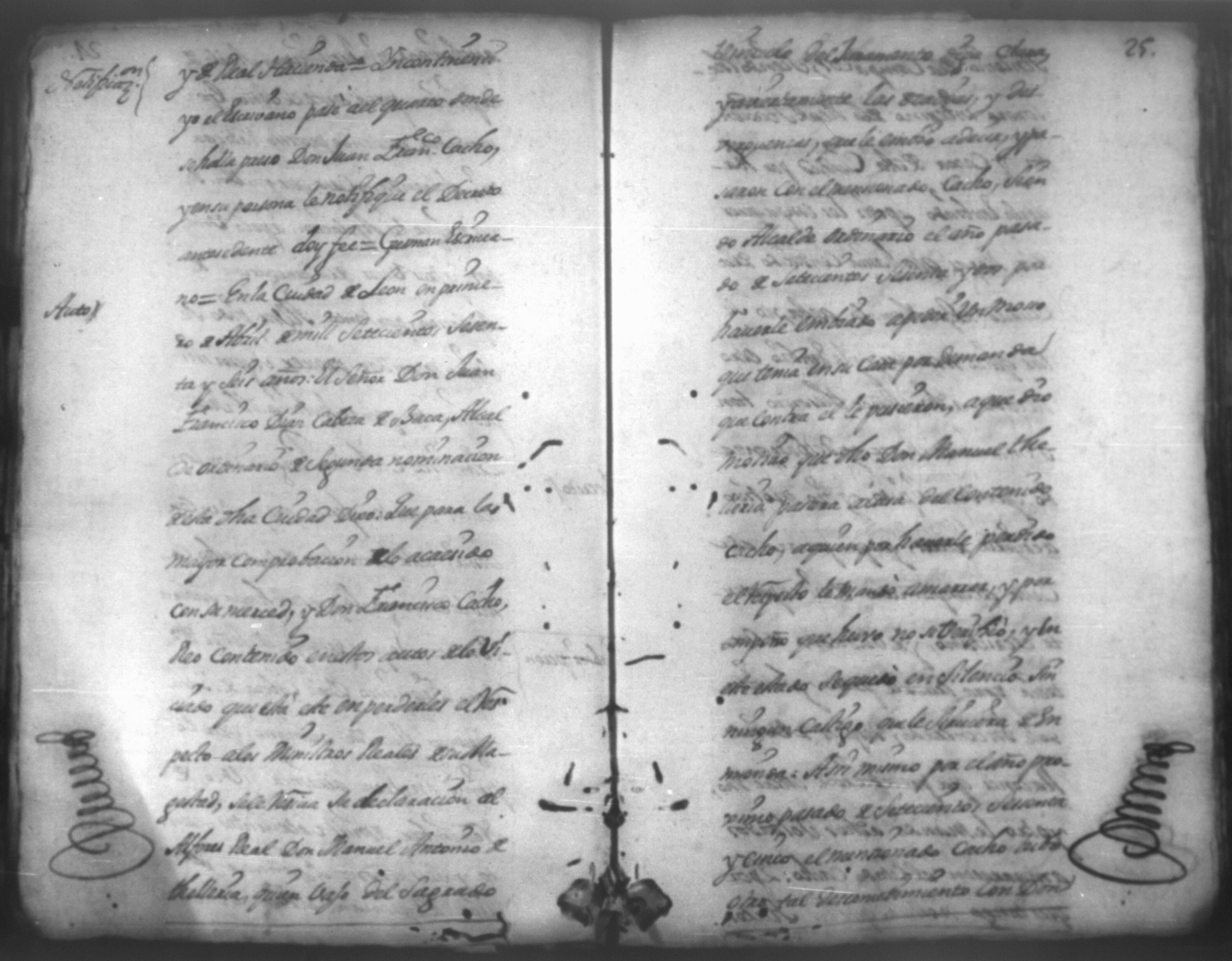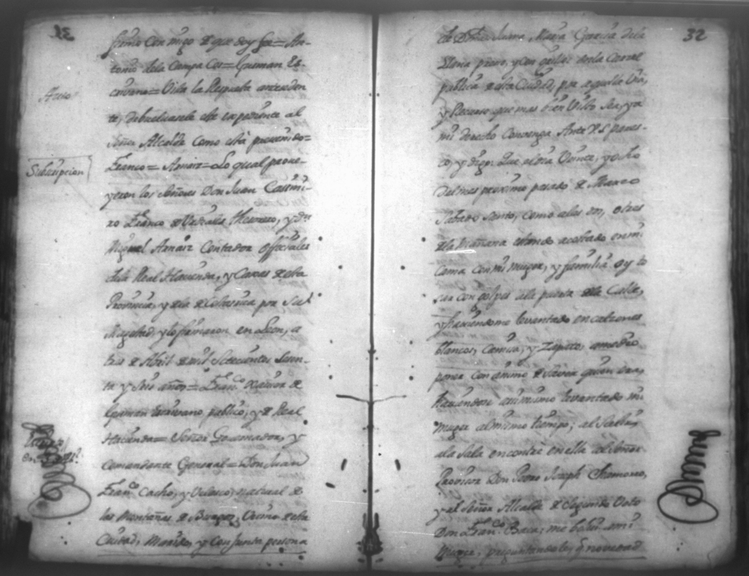 Temática: En la ciudad de Leon, Don Pedro Chamorro por aviso que le hiciero que Don Francisco Cacho vecino de esta ciudad de León queria matar a su mujer Doña Juana Garcia de la Llana mando con un criado a Don Juan Francisco Cabeza de Baca, Alcalde Ordinario segundo voto de esta referida ciudad de Leon a fin de que le auxilie para impedir la [...] denuncia que se la habia hecho