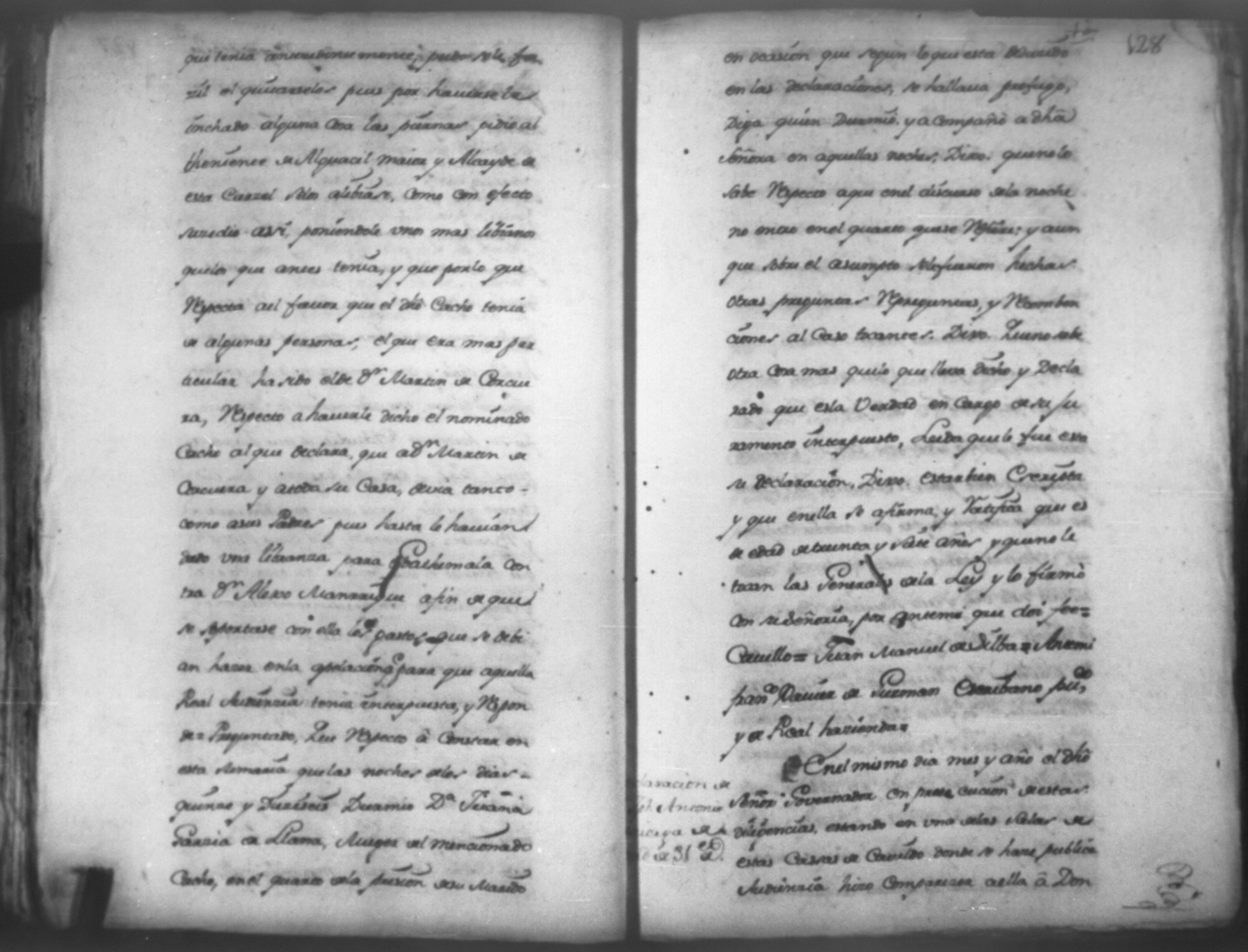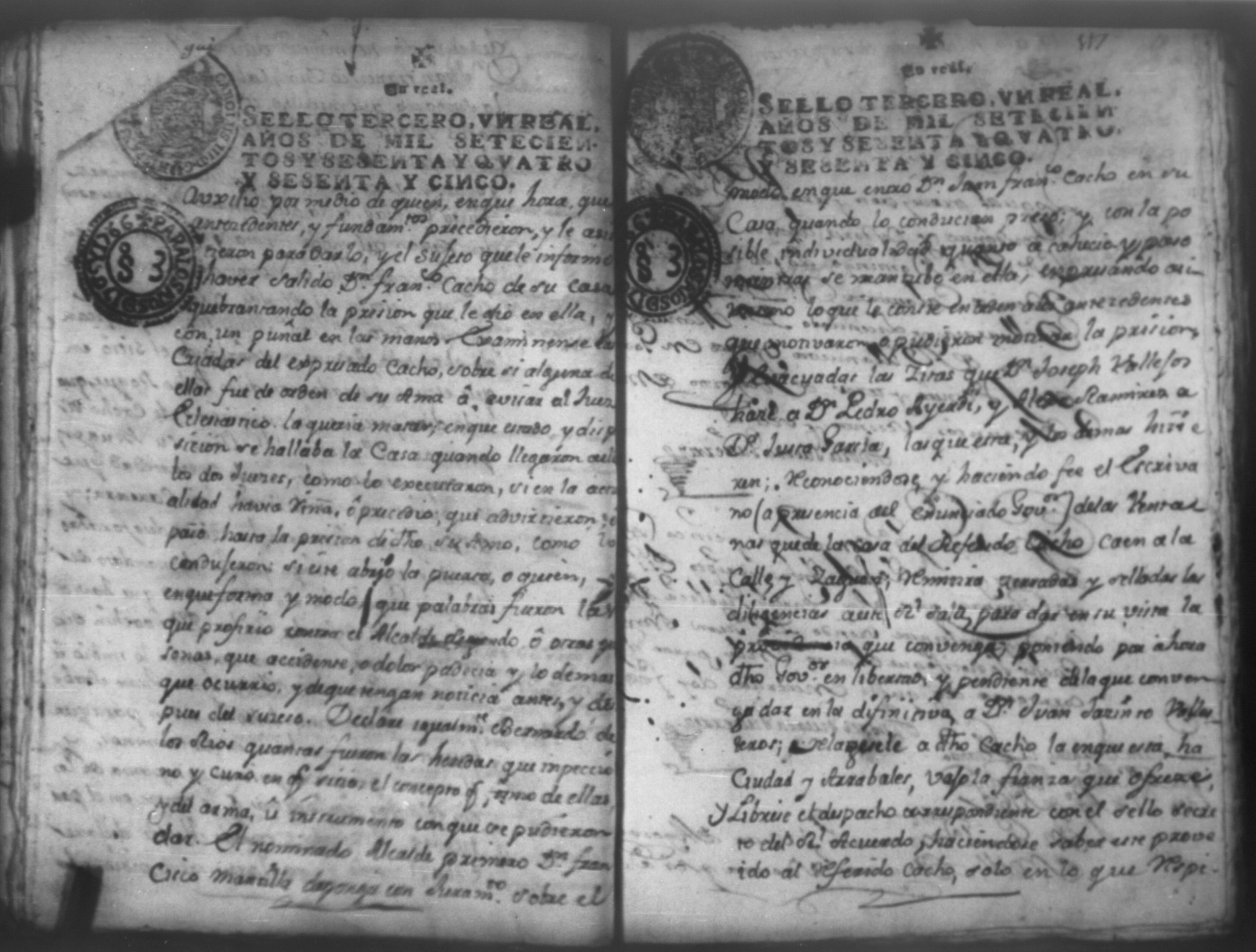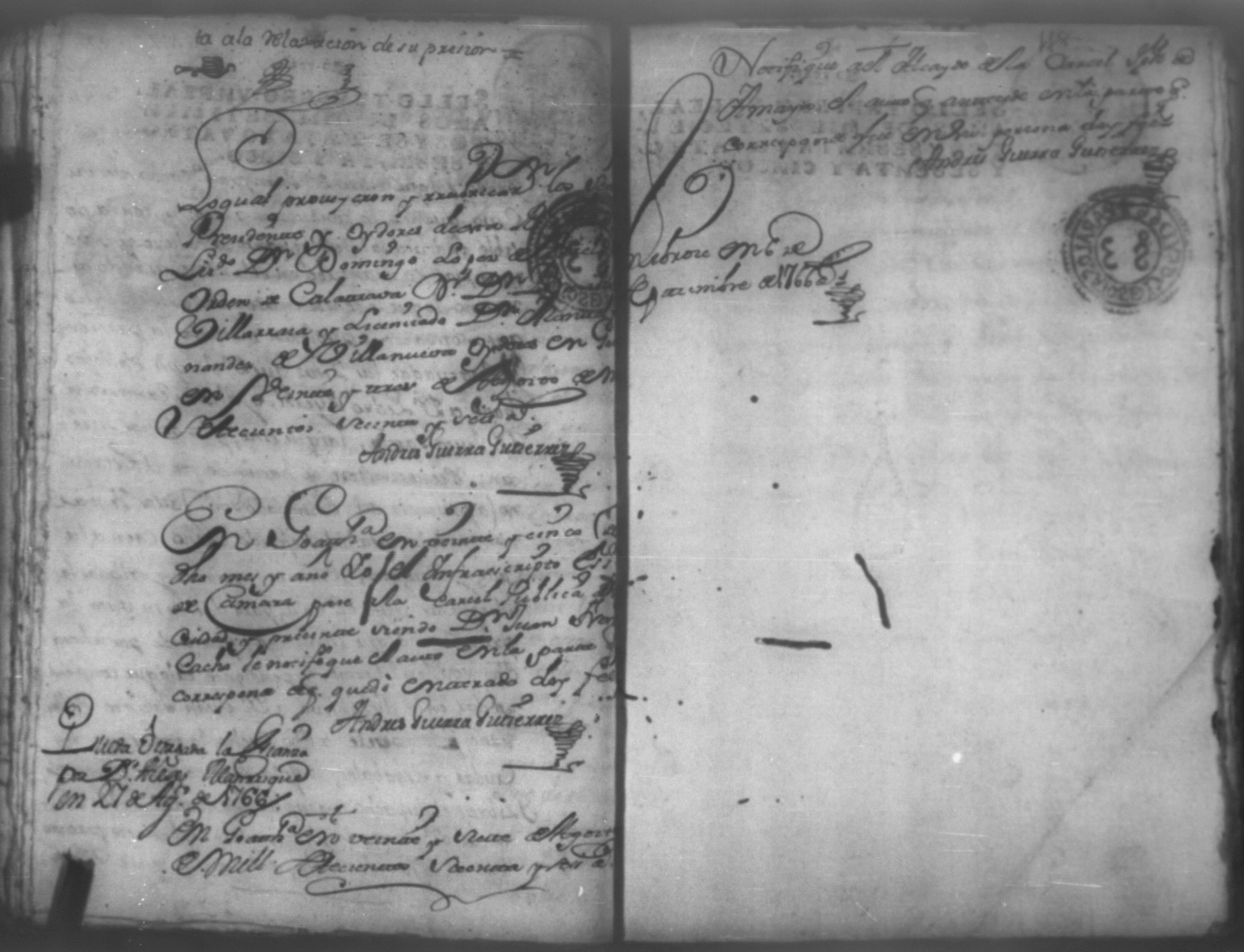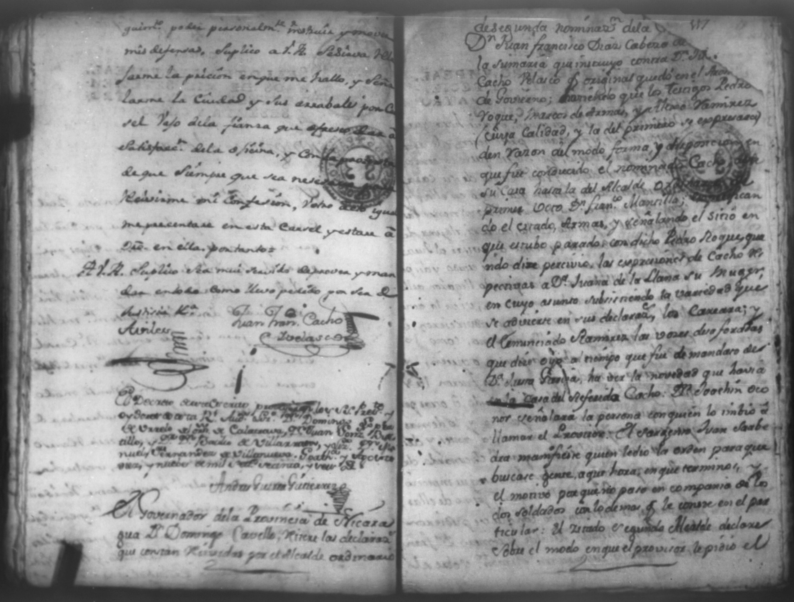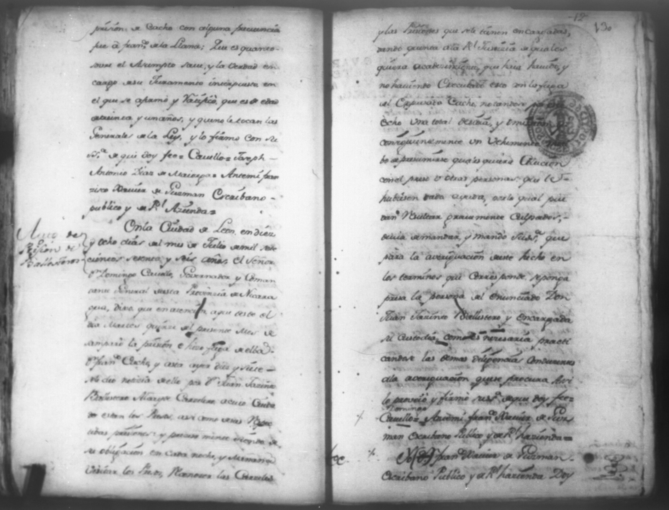 Temática: En la ciudad de Leon, Don Pedro Chamorro por aviso que le hiciero que Don Francisco Cacho vecino de esta ciudad de León queria matar a su mujer Doña Juana Garcia de la Llana mando con un criado a Don Juan Francisco Cabeza de Baca, Alcalde Ordinario segundo voto de esta referida ciudad de Leon a fin de que le auxilie para impedir la [...] denuncia que se la habia hecho
