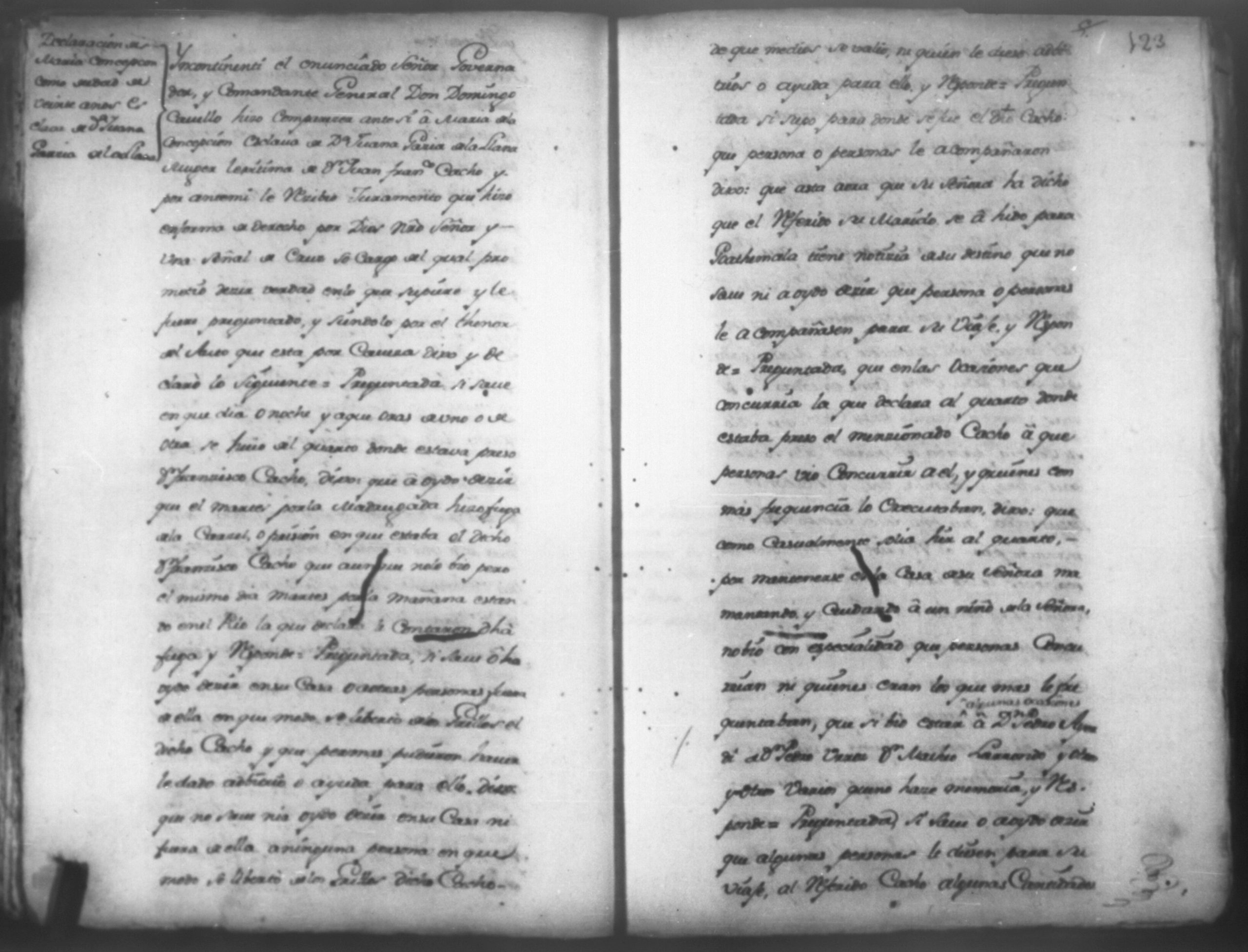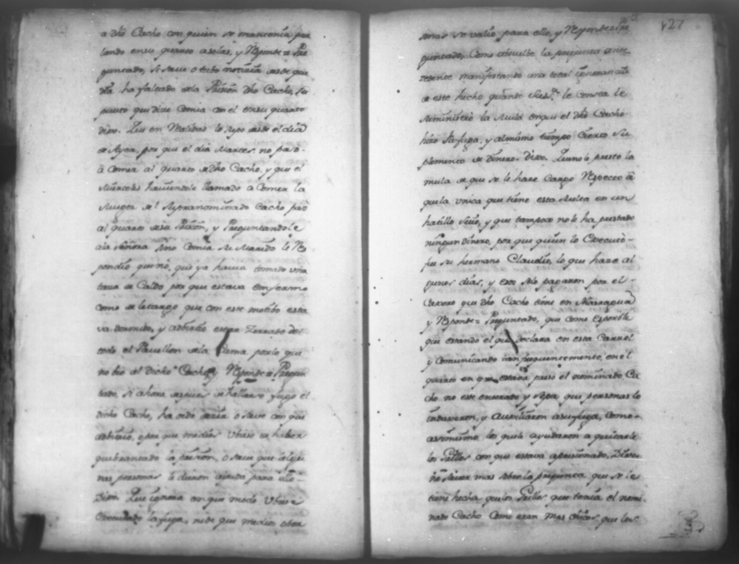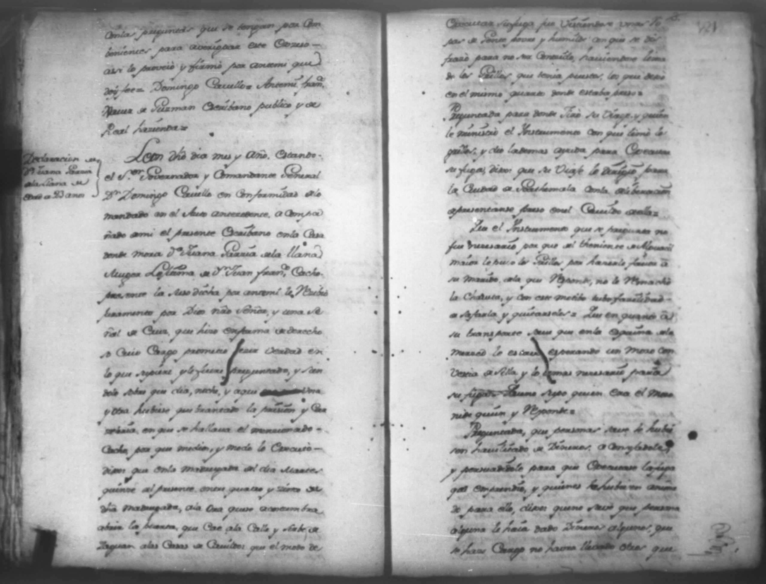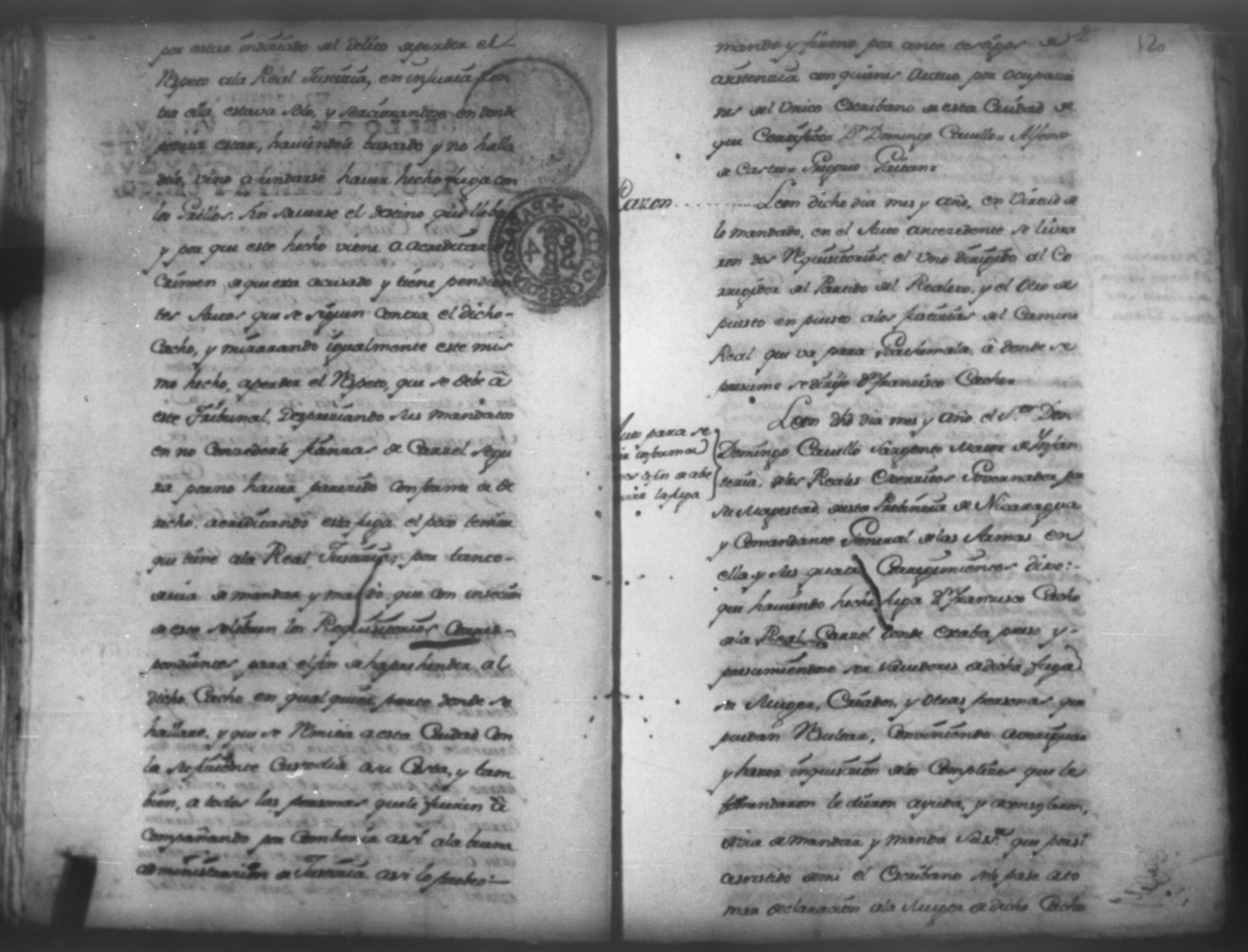 Temática: En la ciudad de Leon, Don Pedro Chamorro por aviso que le hiciero que Don Francisco Cacho vecino de esta ciudad de León queria matar a su mujer Doña Juana Garcia de la Llana mando con un criado a Don Juan Francisco Cabeza de Baca, Alcalde Ordinario segundo voto de esta referida ciudad de Leon a fin de que le auxilie para impedir la [...] denuncia que se la habia hecho