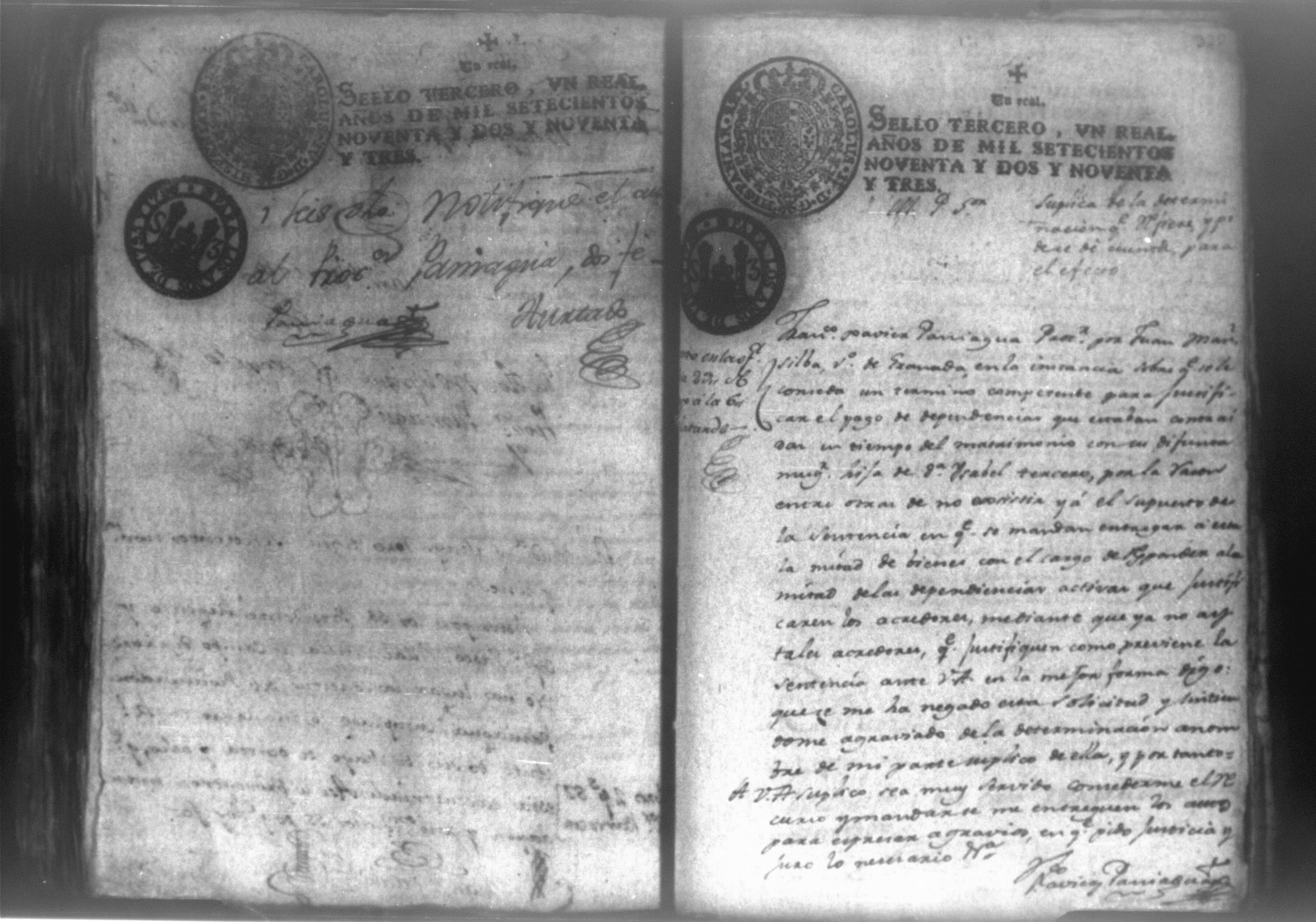 Temática: Audiencia Leon, 1791. Diligencias instruidas a pedimiento de Doña Maria Isabel Tercero Pidiendo el reconocimiento de los bienes que tiene Juan Manuel de Silva como marido que fue de Doña Antonia Roa su hija. Se incluye el inventario de todos los bienes muebles e inmuebles. "Doña Ysabel Tersero, viuda, y vesina de esta Ciudad como mas aya lugar ante vuestra merced paresco, y digo que mi hija Doña Antonia Roa fue casada con Juan Manuel Silva, treinta años poco mas o menos, la que fallesio intestada, en el año pasado de ochenta, sin tener hijo que sucediera en sus acciones, y atendiendo en que al tiempo y quando contrajo dicho Matrimonio estavan iguales sin tener Caudal ni vienes conocidos como es Notorio [...] en aquel tiempo solo era al Credito Caudal ageno y mediante a que durante la vida de mi hija de mancomun adquirieron caudal de fincas y muebles conocidos: usando del pribilegio que en tal caso me corresponde, como unica heredera, que lo soy sin disputa, [...] suplico a vuestra alteza se sirva en merito de Justicia [...]" (Extracto del folio 1, imagen 6)
