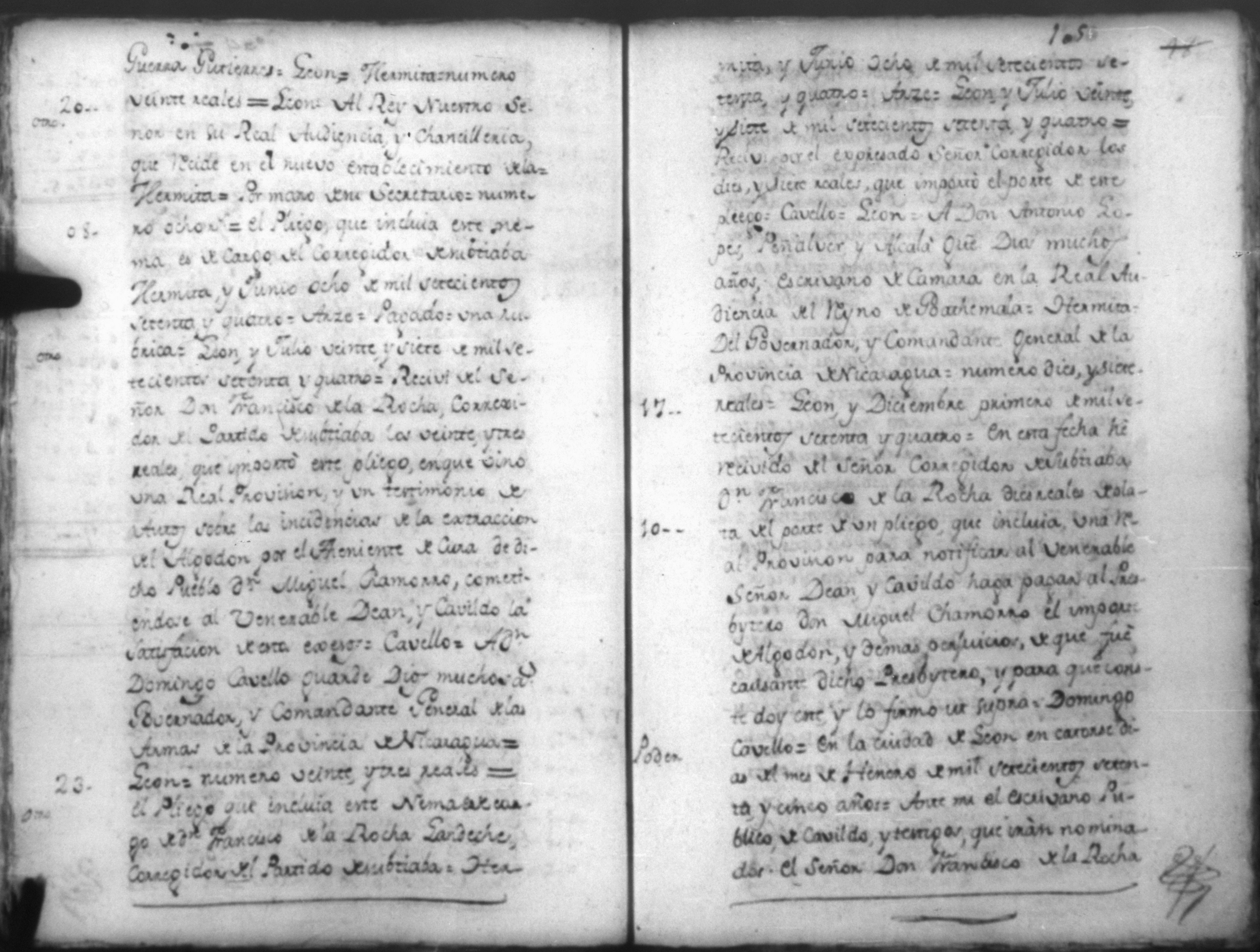 Temática: Diligencias practicadas sobre la indagación las libras de algodón que han quedado en descubierto de dejarse de entregar a las indias del Pueblo de Subtiaba, con las incidencias del hilo que por está razón han dejado de entregar al Corregidor don Francisco Rocha por defecto del Theniente de Cura que fue de dicho pueblo el Padre Don Miguel Chamorro, contra quien se promueven los daños, perjucios y menos cabos, que presta causa originada al Corregidor del expresado partido.