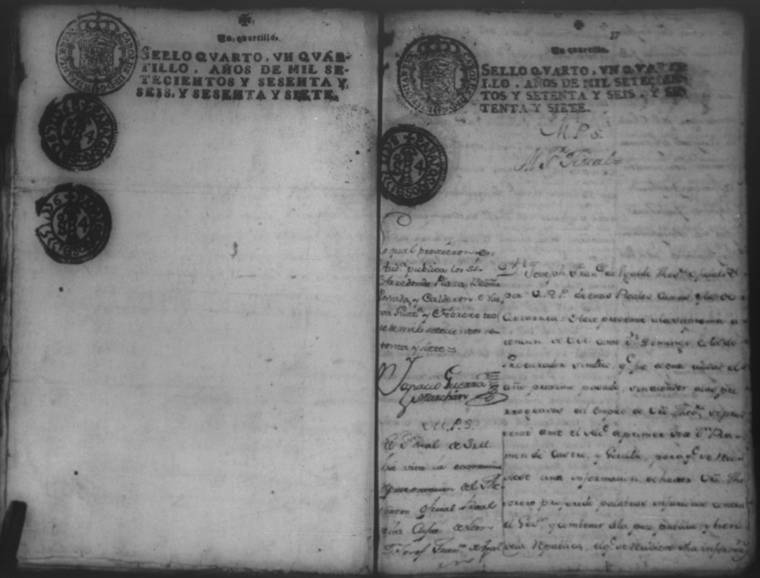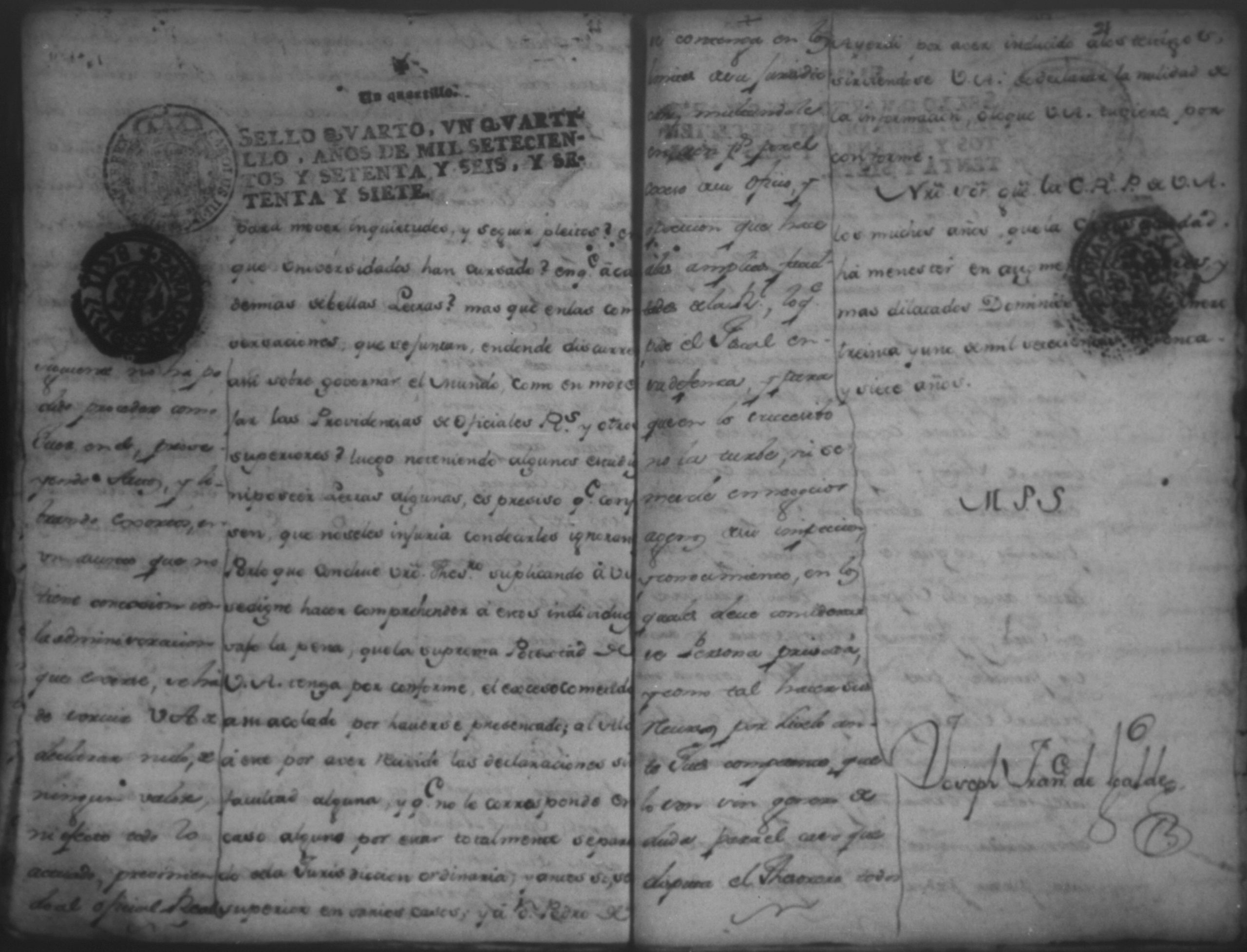 Temática: Leon, Año de 1776. Diligencias seguidas por el Alcade Ordinario Don Ramon de Castro y Gordillo a pedimento de Don Domingo Colado, suponiendo que el Señor Hescribano oficial real propietario Don Joseph Francisco de Ygalde […] proferido varias injurias contra el señor governador y Comite General de las Armas de esta Provincia. Don Manuel de Quiroga.