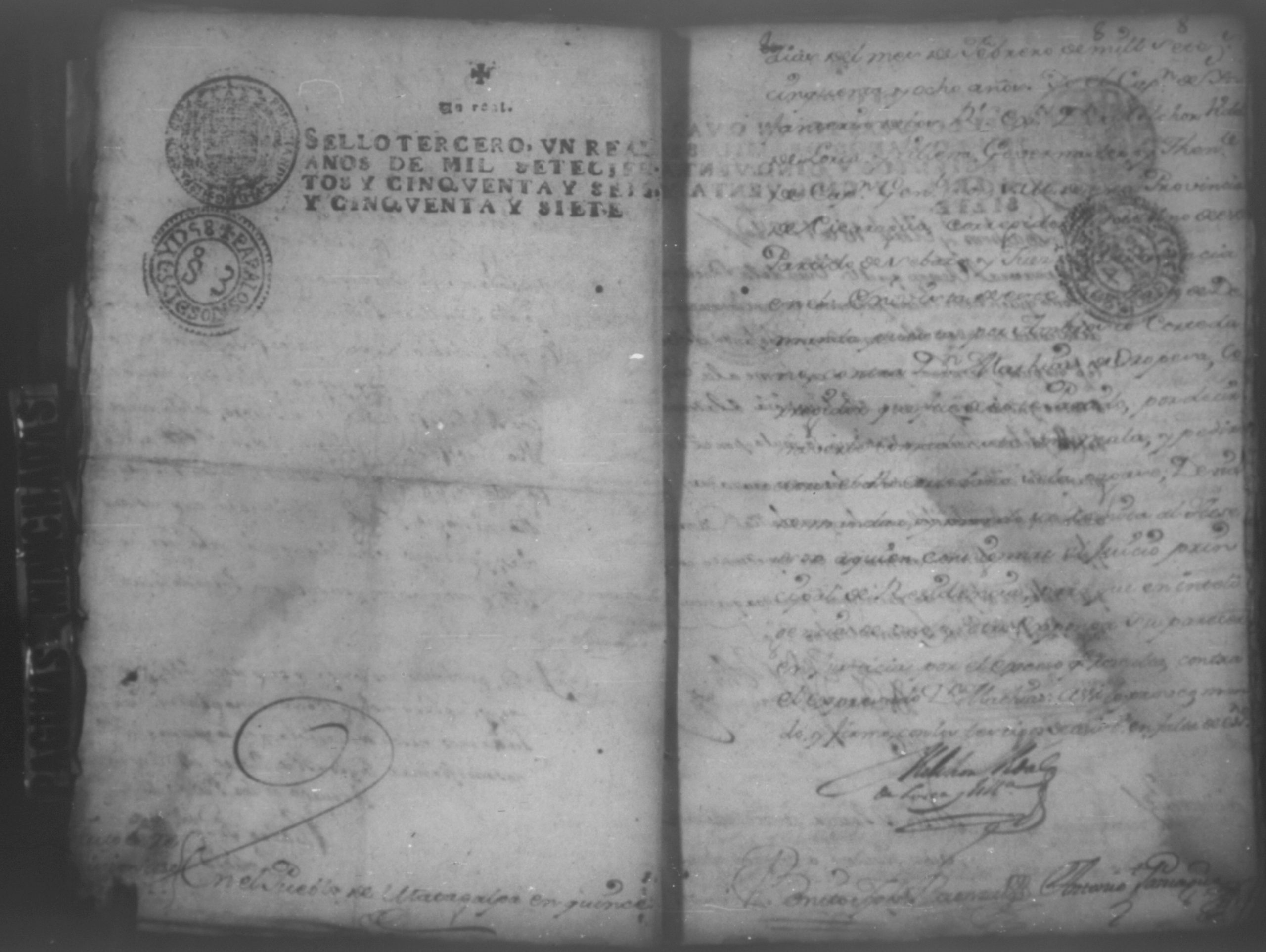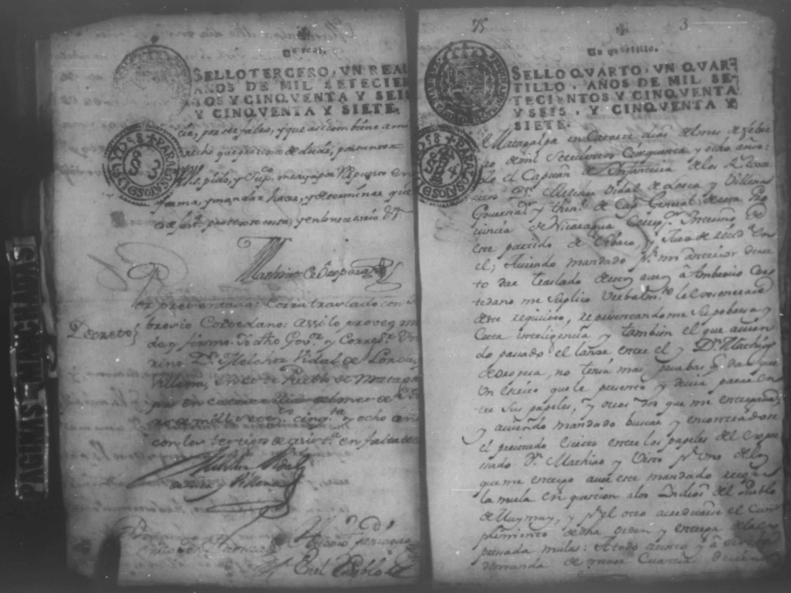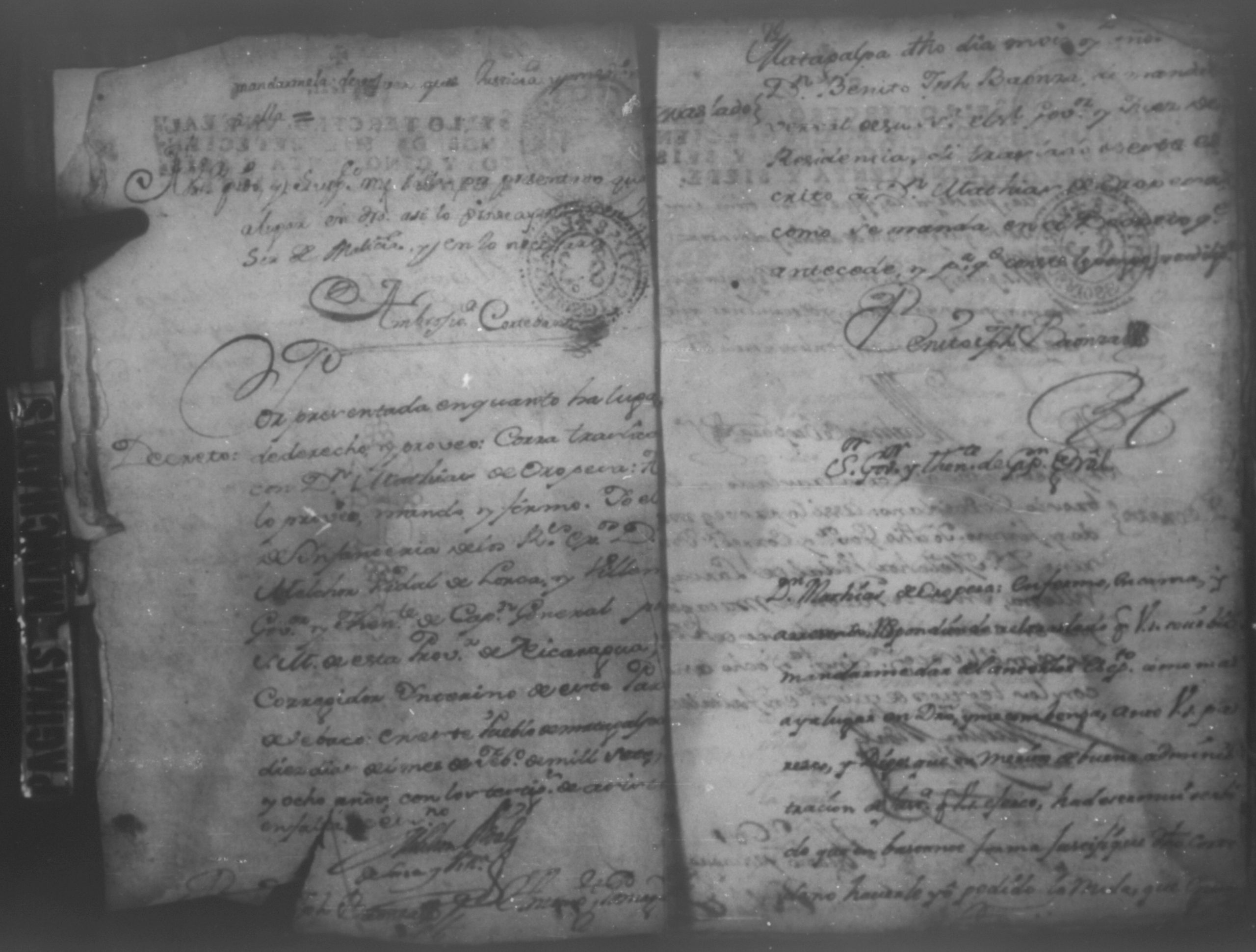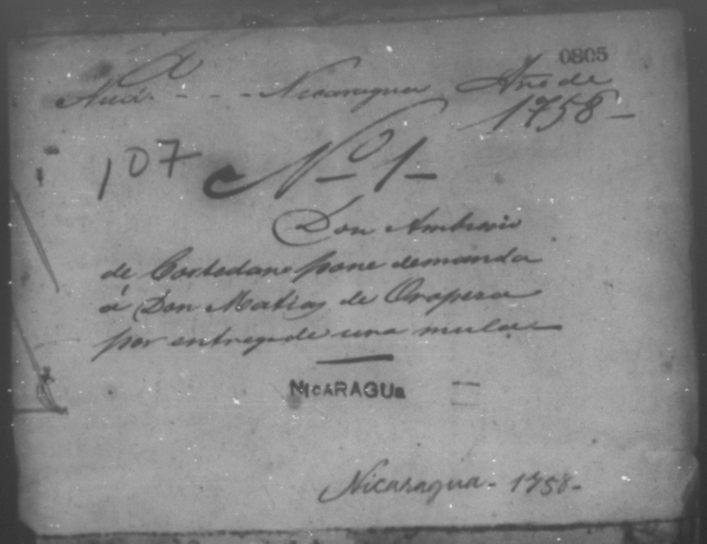 Temática: Audiencia de Nicaragua. Año de 1758. N°. 1. Don Ambrosio de Cortedano pone demanda a Don Matias de Oropesa por entrega de una mula.